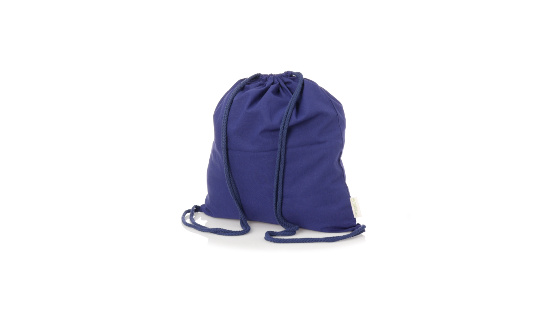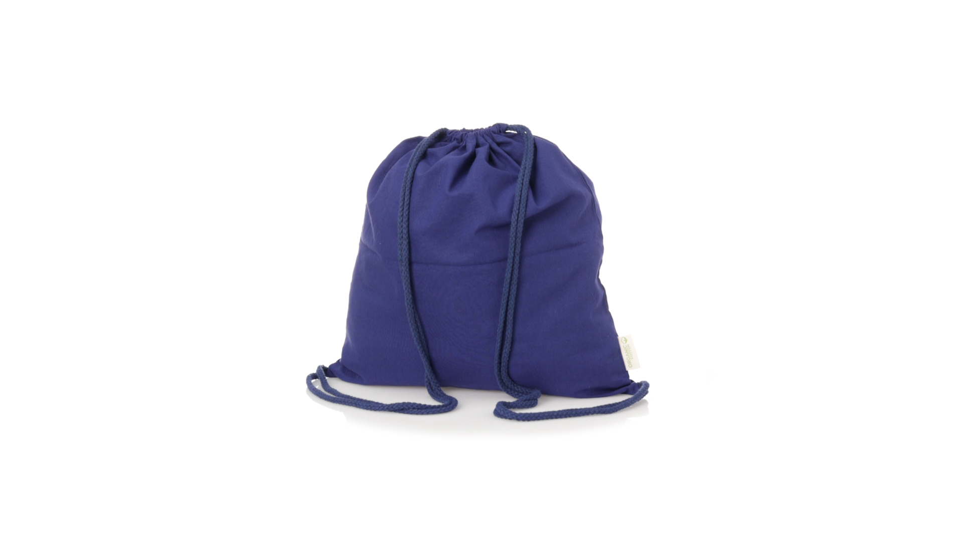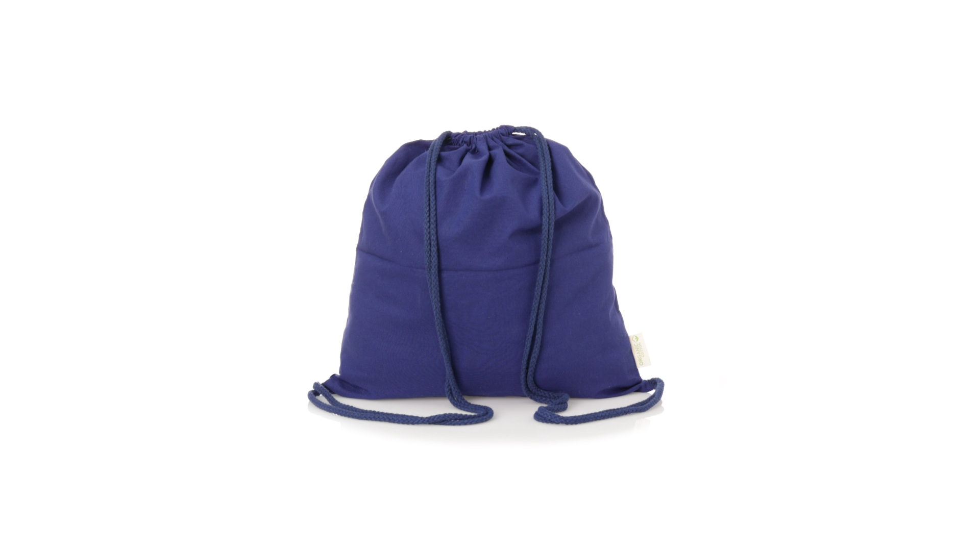 Linie Natur Rucksack mit Kordelzug aus Bio-Baumwolle 120g/m2. Hauptfach mit Baumwollkordelzug und Aussenetikett mit dem Bio-Baumwollkennzeichen. Erhältlich in einer breiten Palette von Farben.