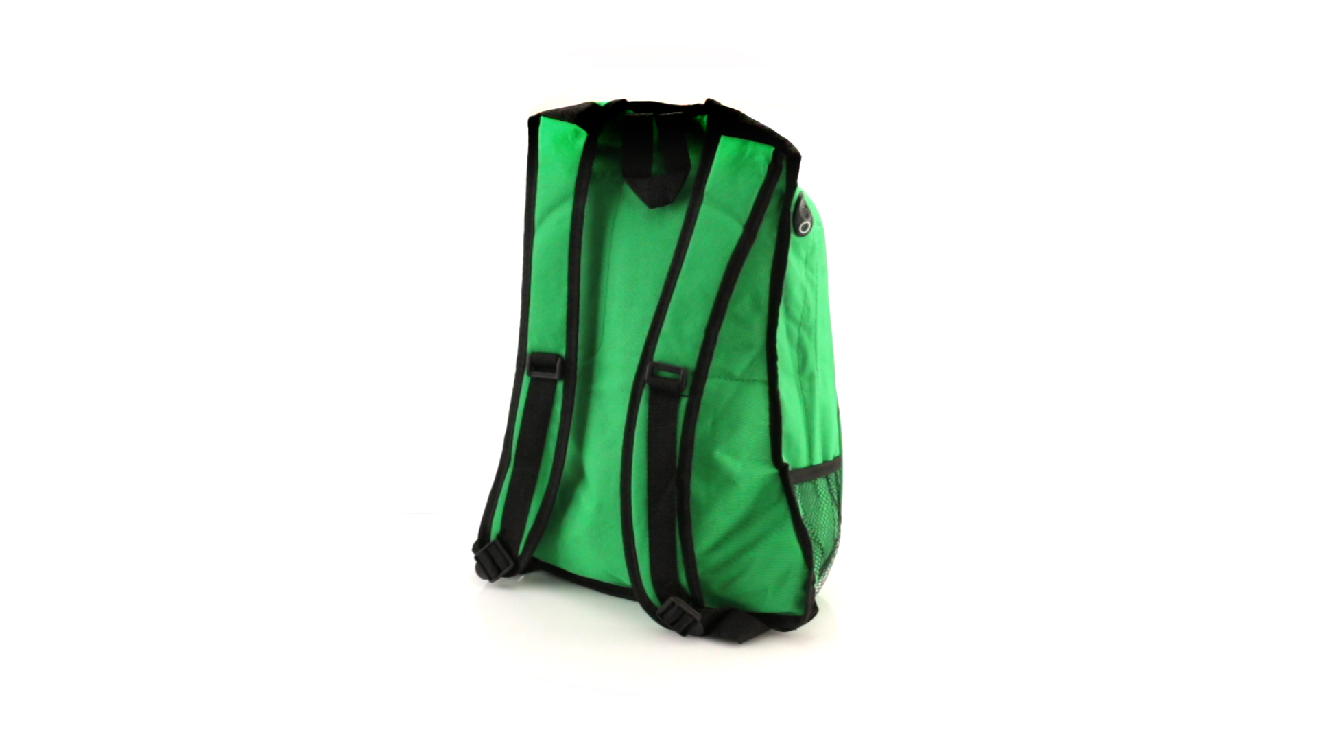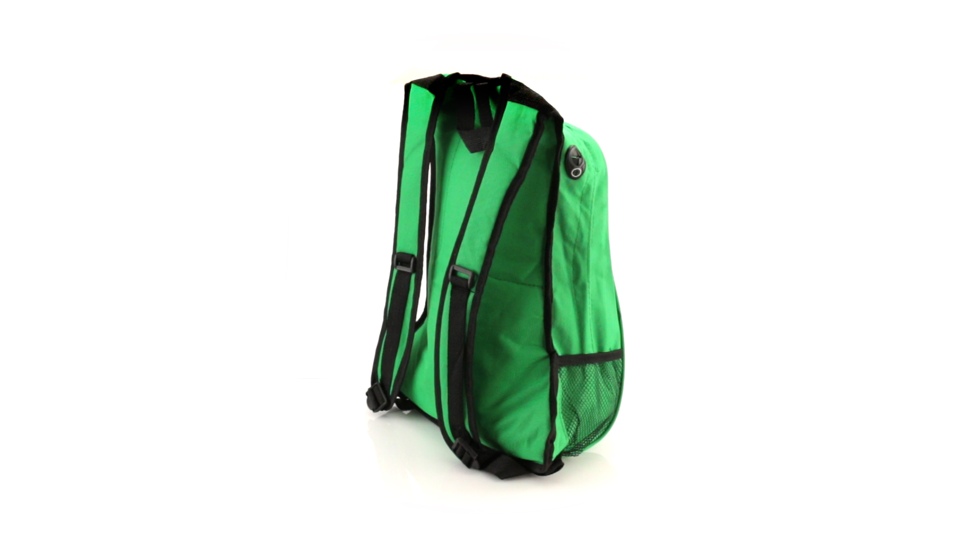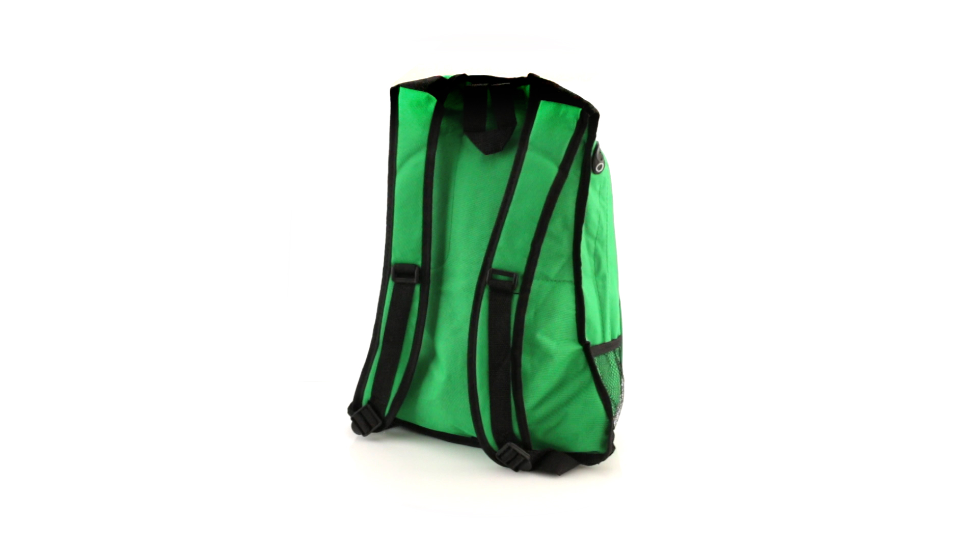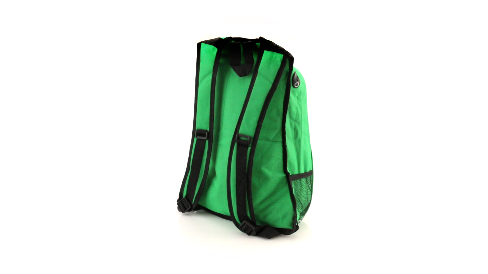 Rucksack aus strapazierfähigem 600D Polyester mit coolem Design in vielen Farben. Mit Kopfhörerausgang, Doppelreissverschluss mit Zugbändern für einfaches Öffnen, Fronttasche und elastischen Netztaschen an den Seiten. Mit verstärkten Ecken und schwarzen Elementen. Verstellbare ergonomische Schultergurte mit Polsterung.