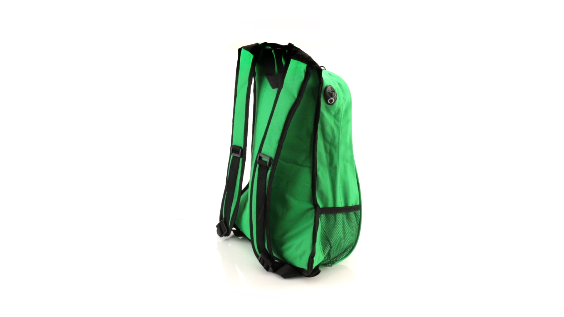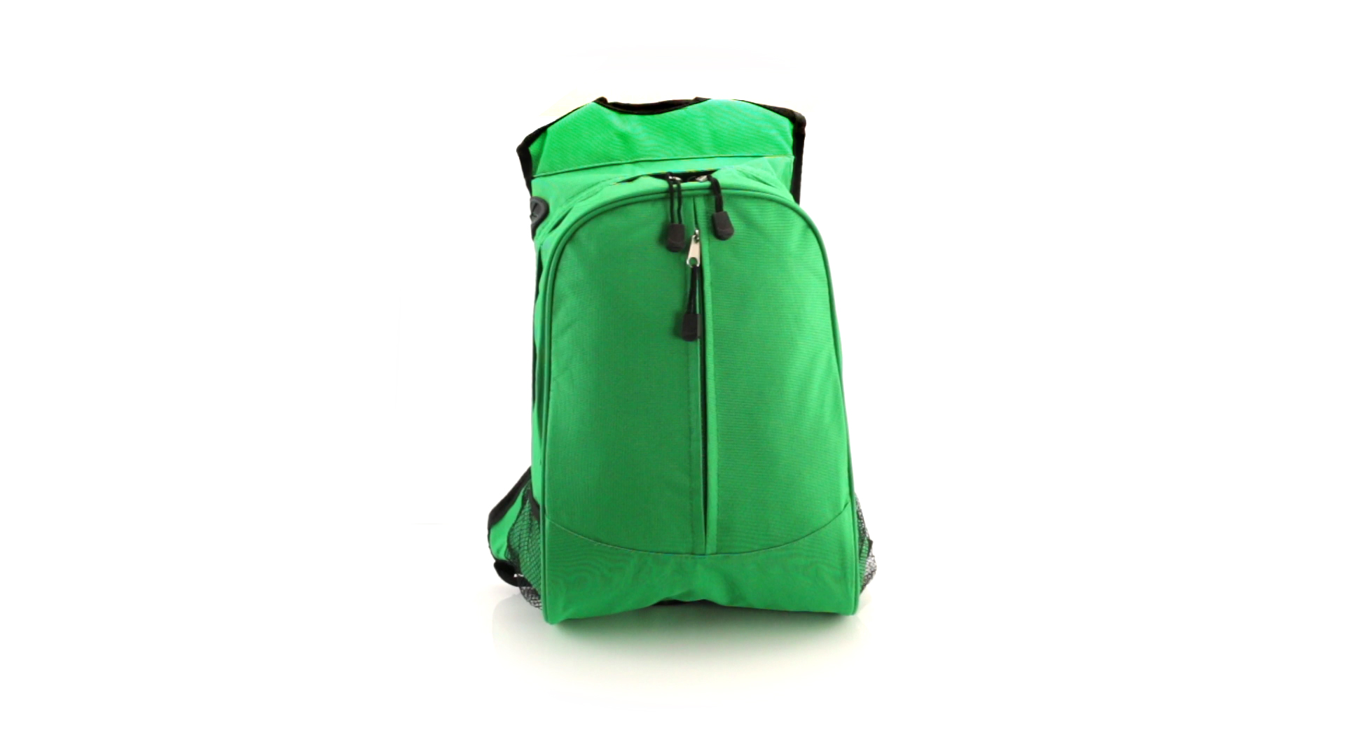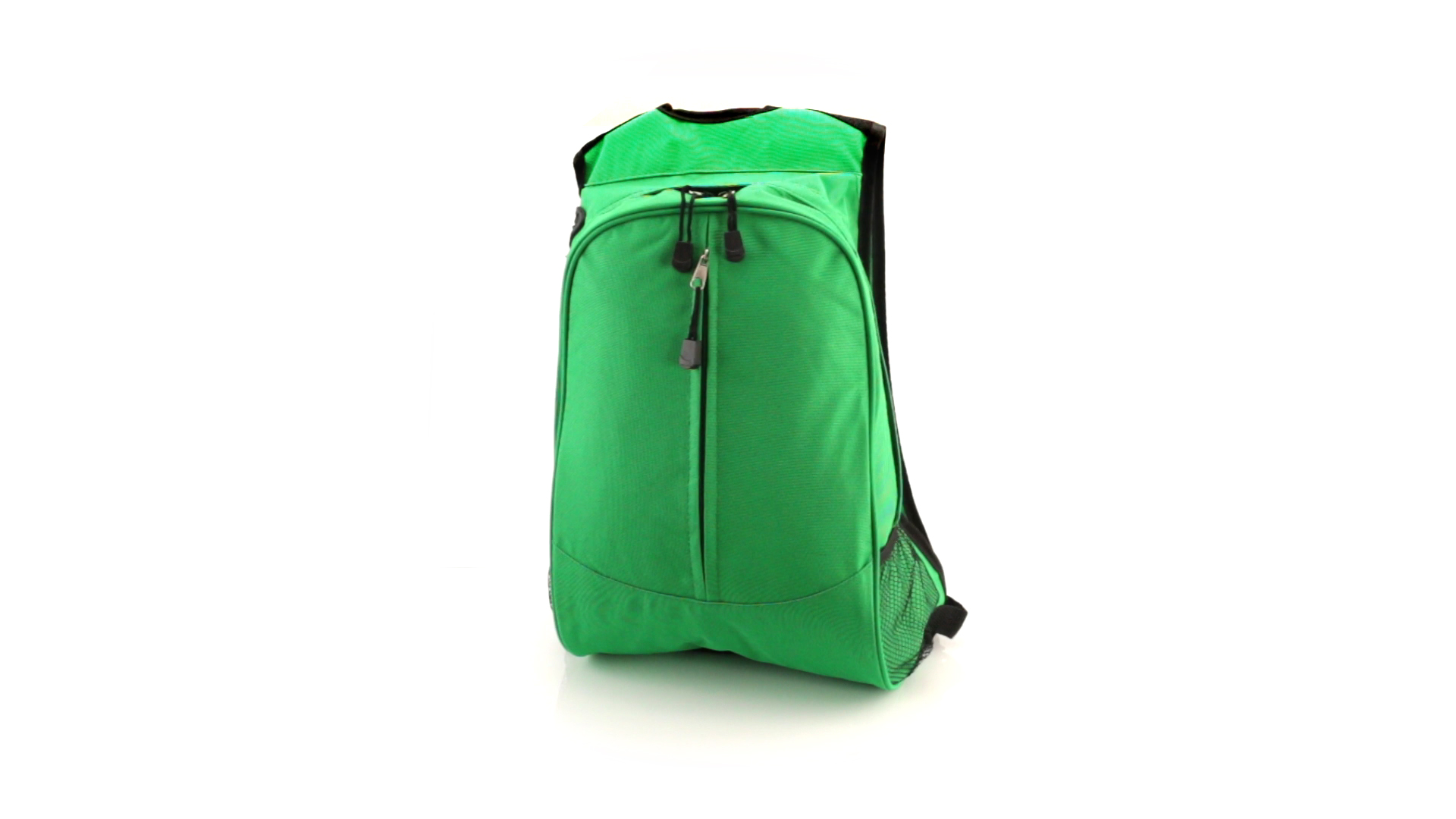 Rucksack aus strapazierfähigem 600D Polyester mit coolem Design in vielen Farben. Mit Kopfhörerausgang, Doppelreissverschluss mit Zugbändern für einfaches Öffnen, Fronttasche und elastischen Netztaschen an den Seiten. Mit verstärkten Ecken und schwarzen Elementen. Verstellbare ergonomische Schultergurte mit Polsterung.