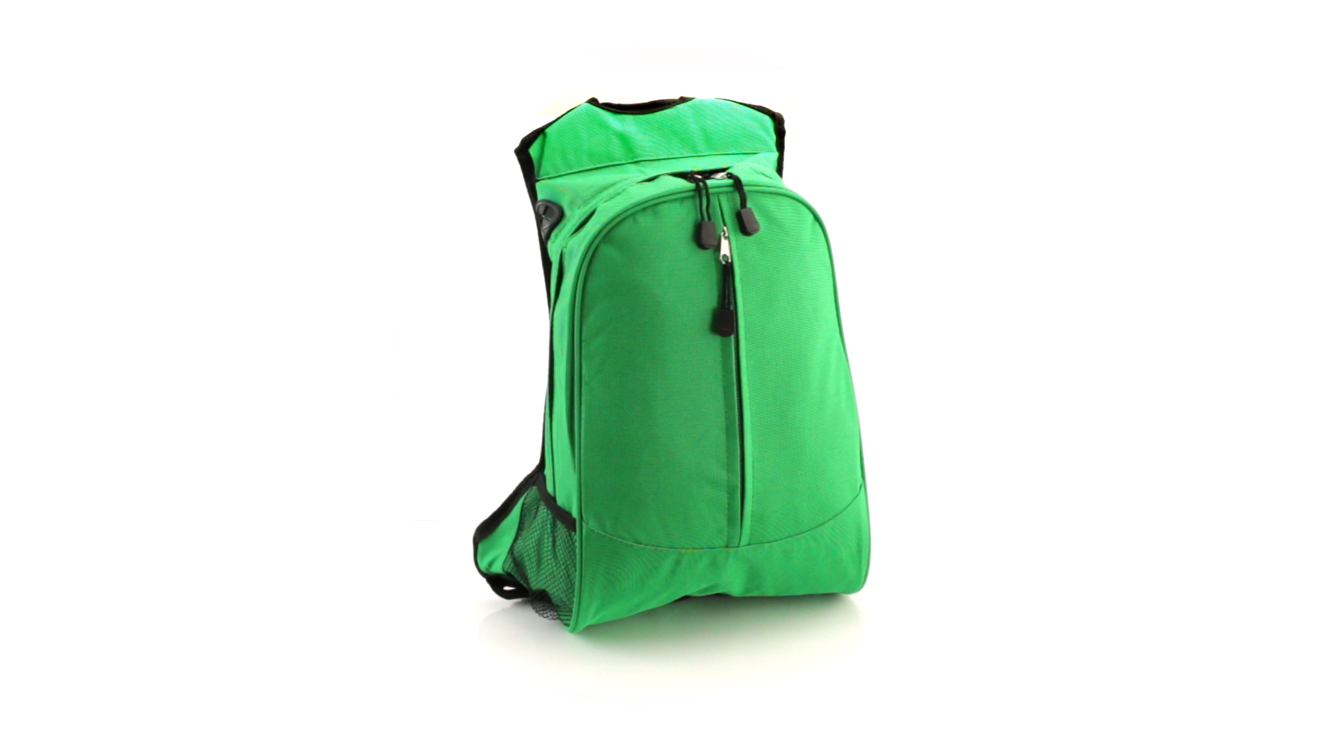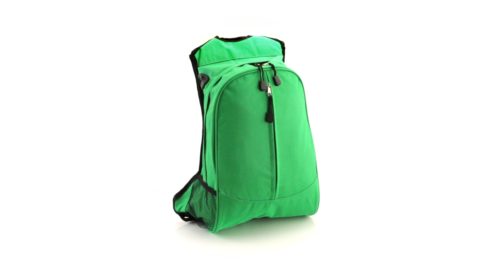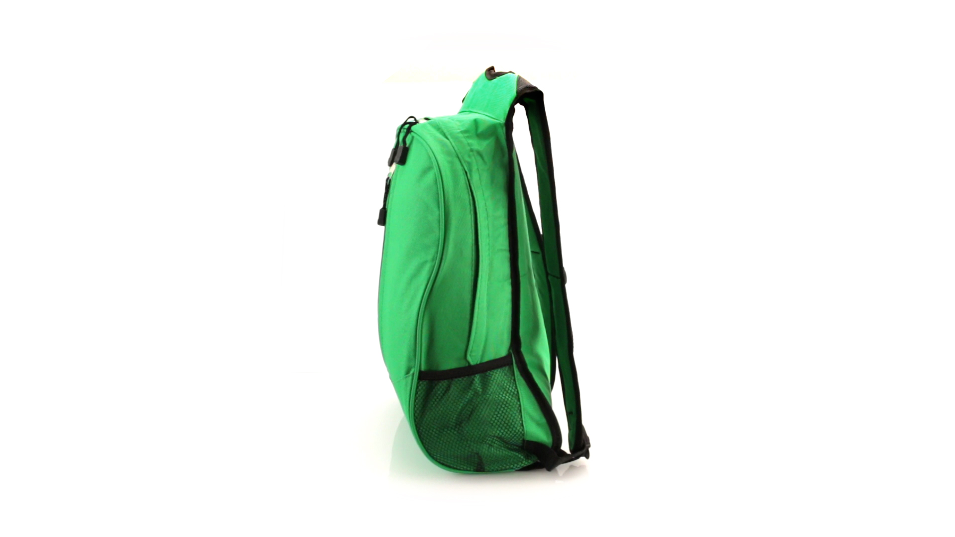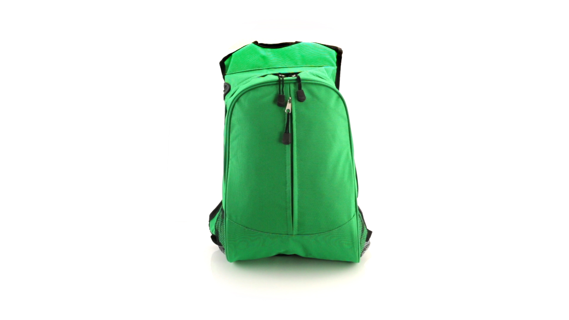 Rucksack aus strapazierfähigem 600D Polyester mit coolem Design in vielen Farben. Mit Kopfhörerausgang, Doppelreissverschluss mit Zugbändern für einfaches Öffnen, Fronttasche und elastischen Netztaschen an den Seiten. Mit verstärkten Ecken und schwarzen Elementen. Verstellbare ergonomische Schultergurte mit Polsterung.