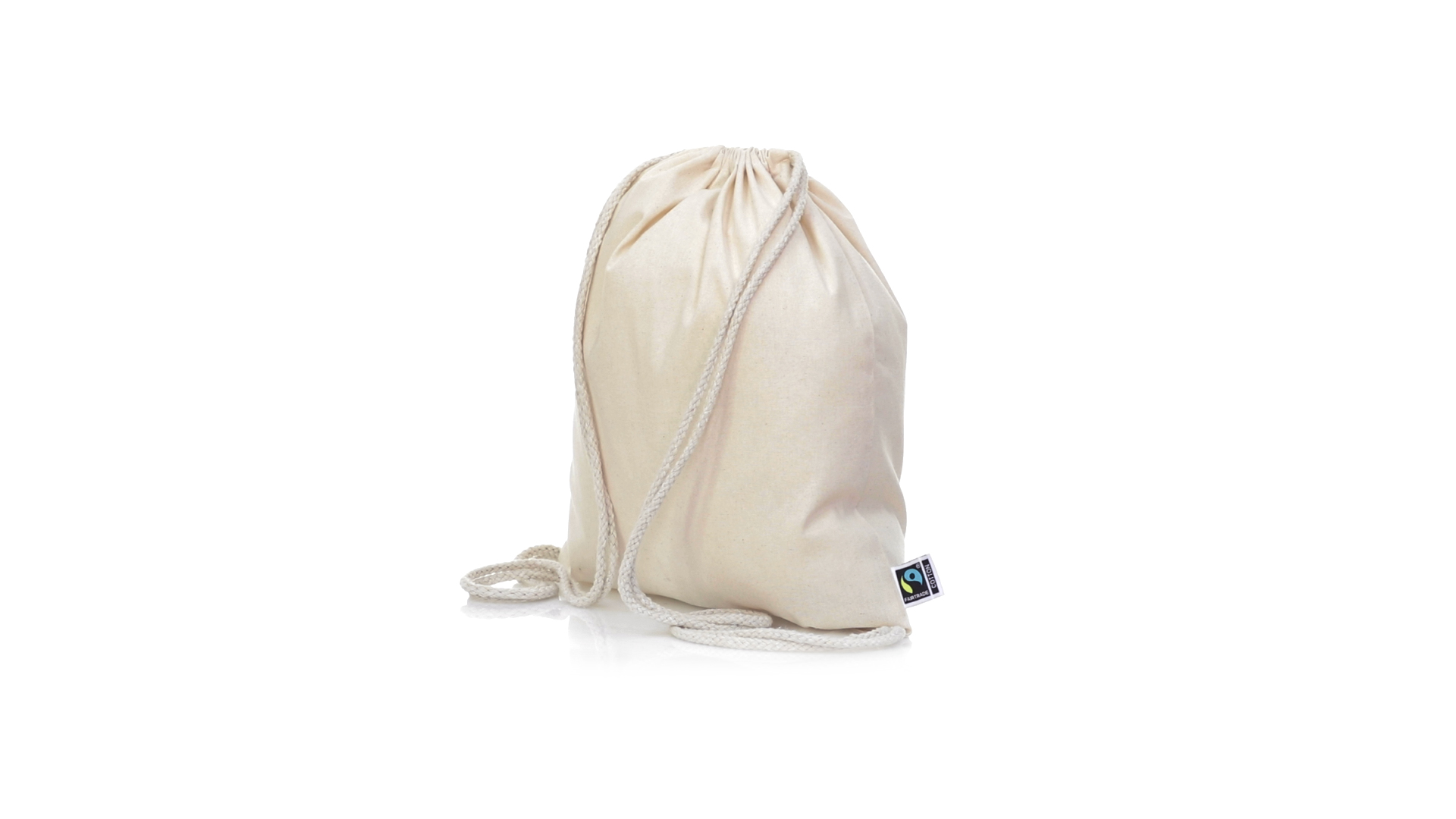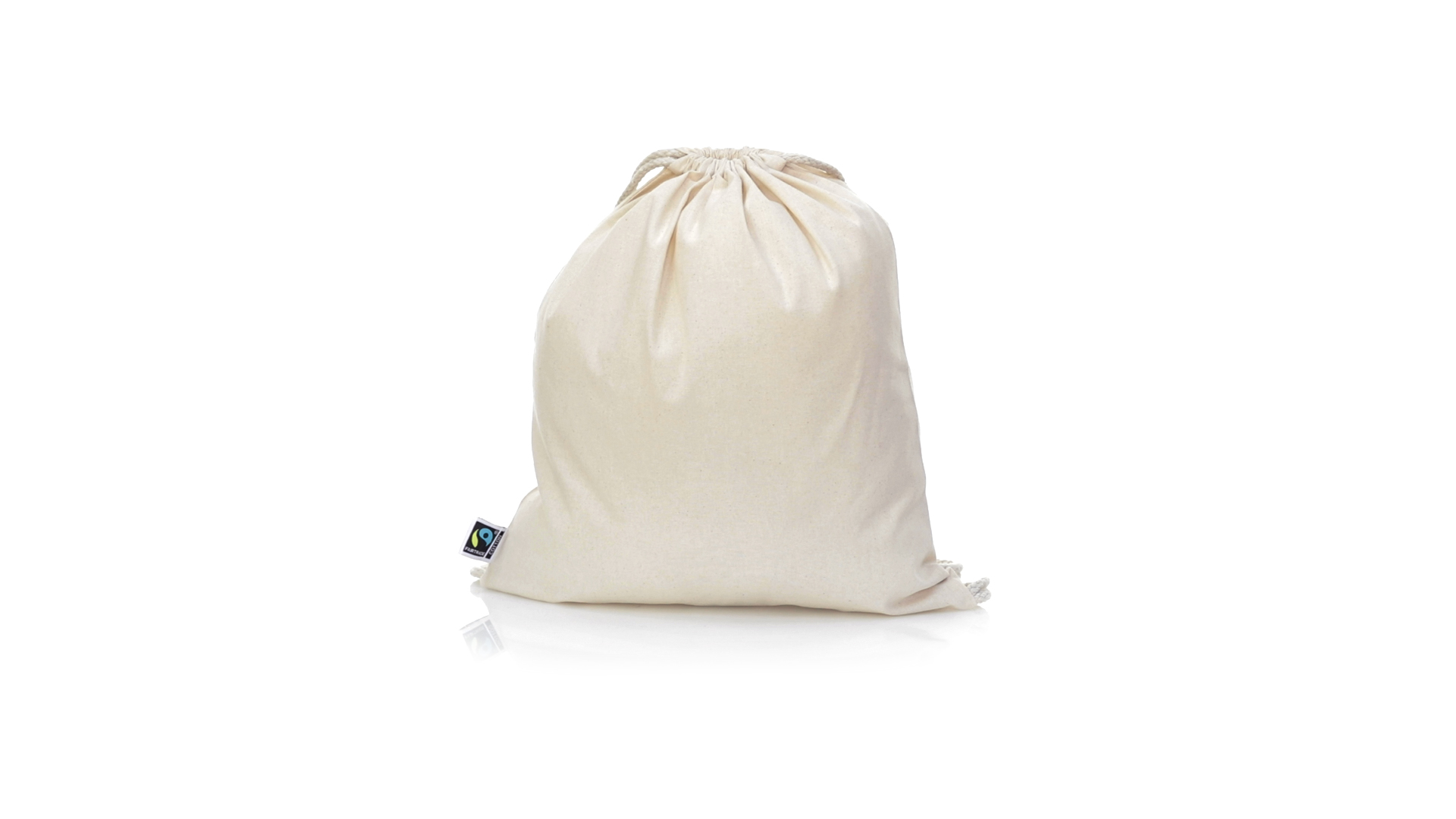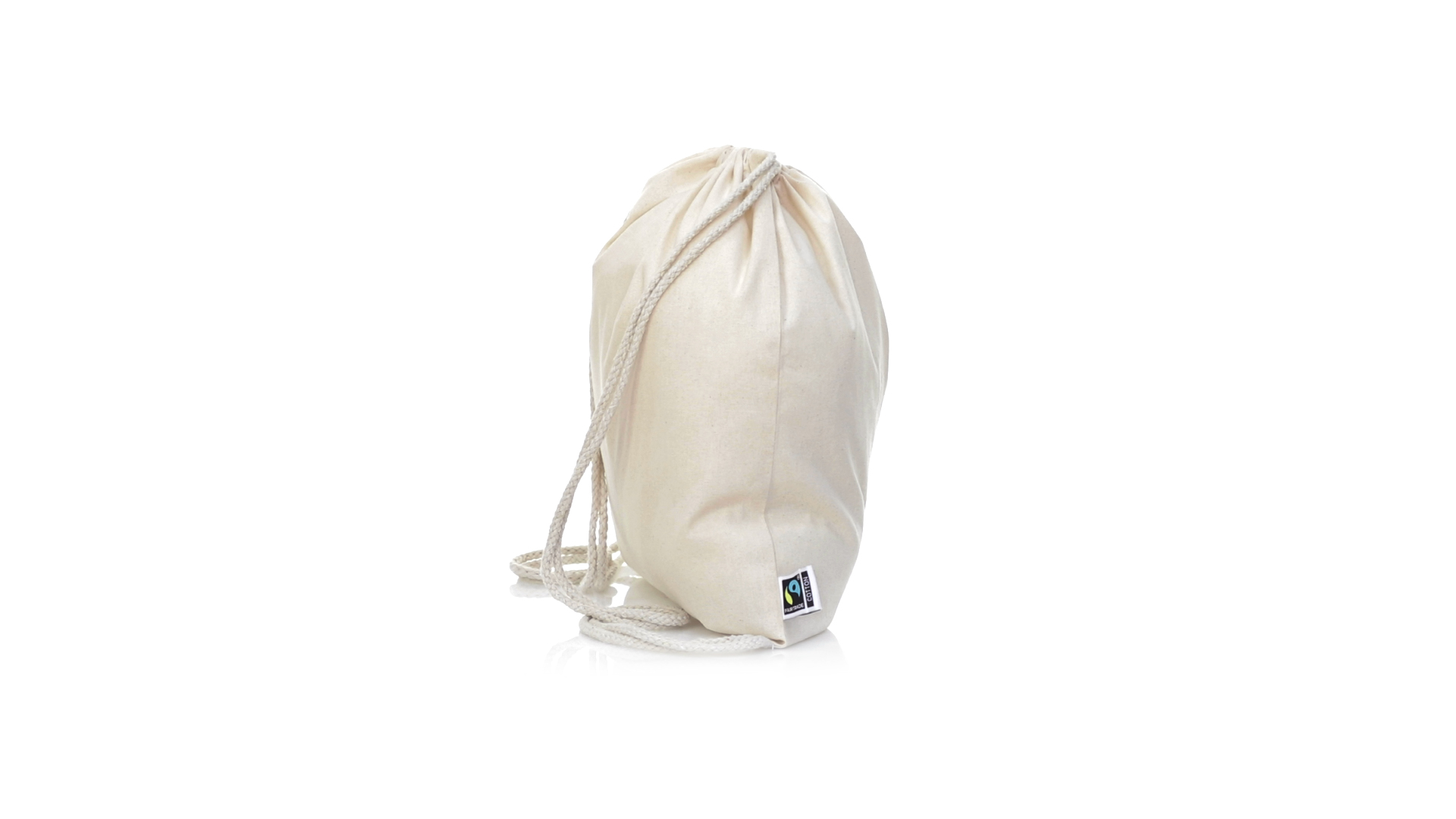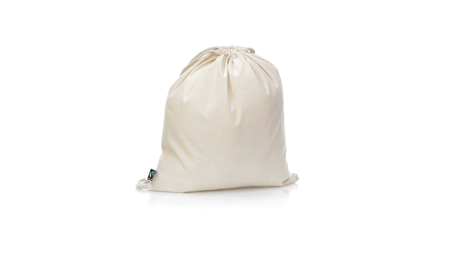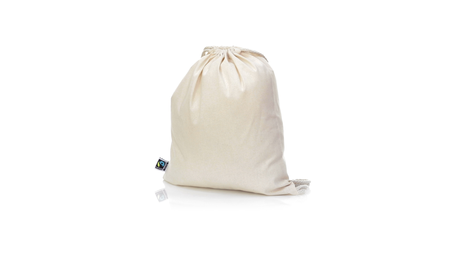 Linie "Natur" Rucksack mit Kordelzug aus Baumwolle 180g/m2 in einem natürlichen Farbton. Mit Fairtrade-Zertifizierung, eine Alternative zum konventionellen Handelssystem, die die Entwicklung der Völker und den Kampf gegen die Armut verfolgt. Mit genähter Oberfläche, Baumwollschnüren und einer Belastbarkeit von bis zu 9 kg. Inklusive Fairtrade-Etikett und Anhänger aus recyceltem Karton.