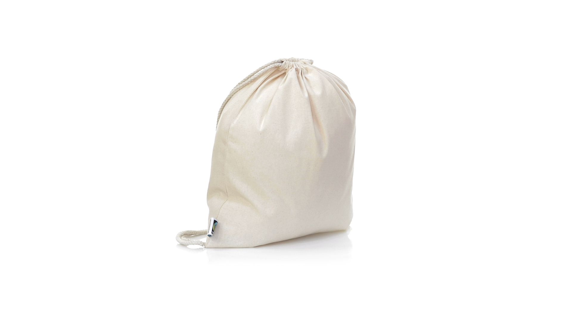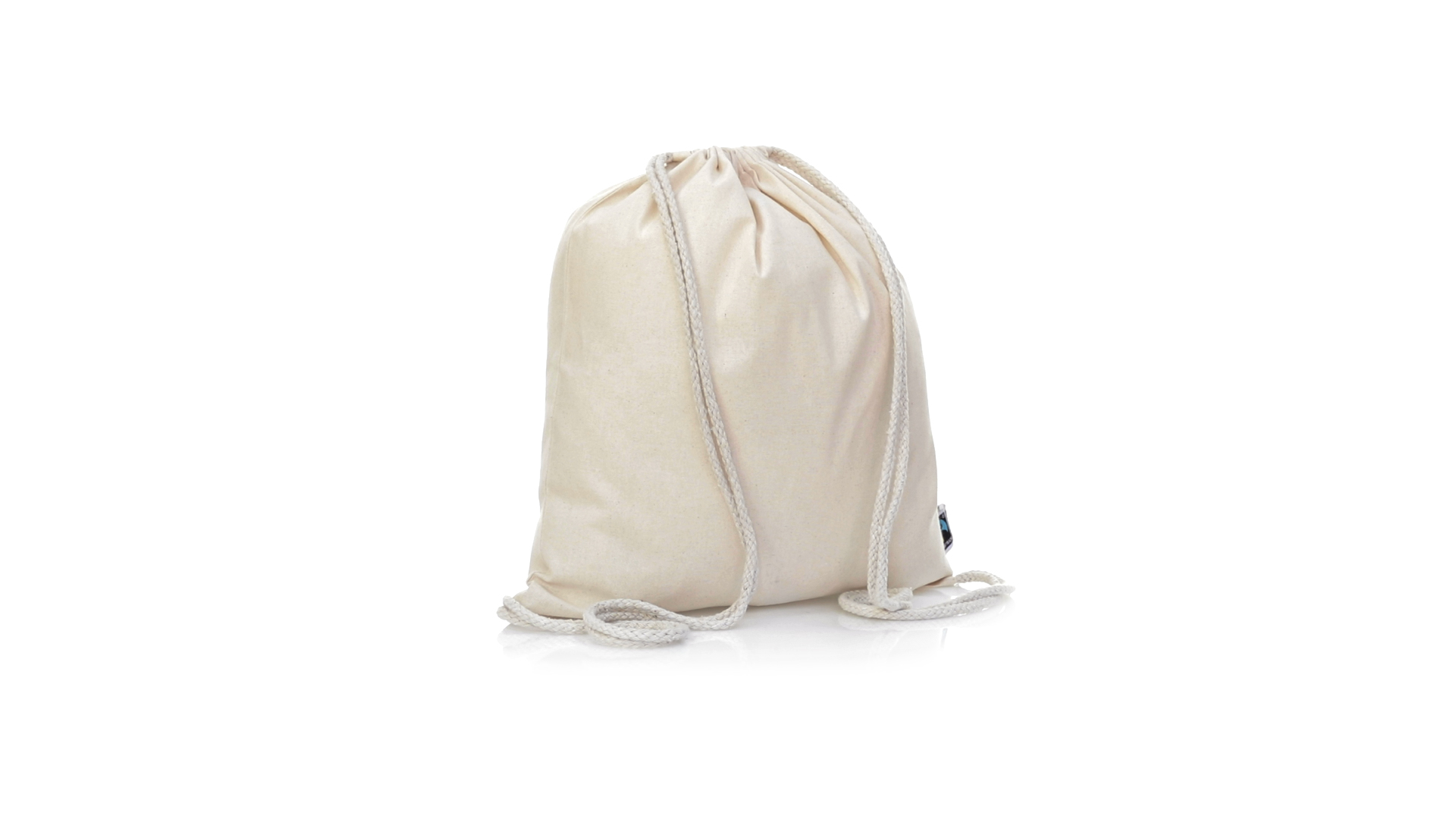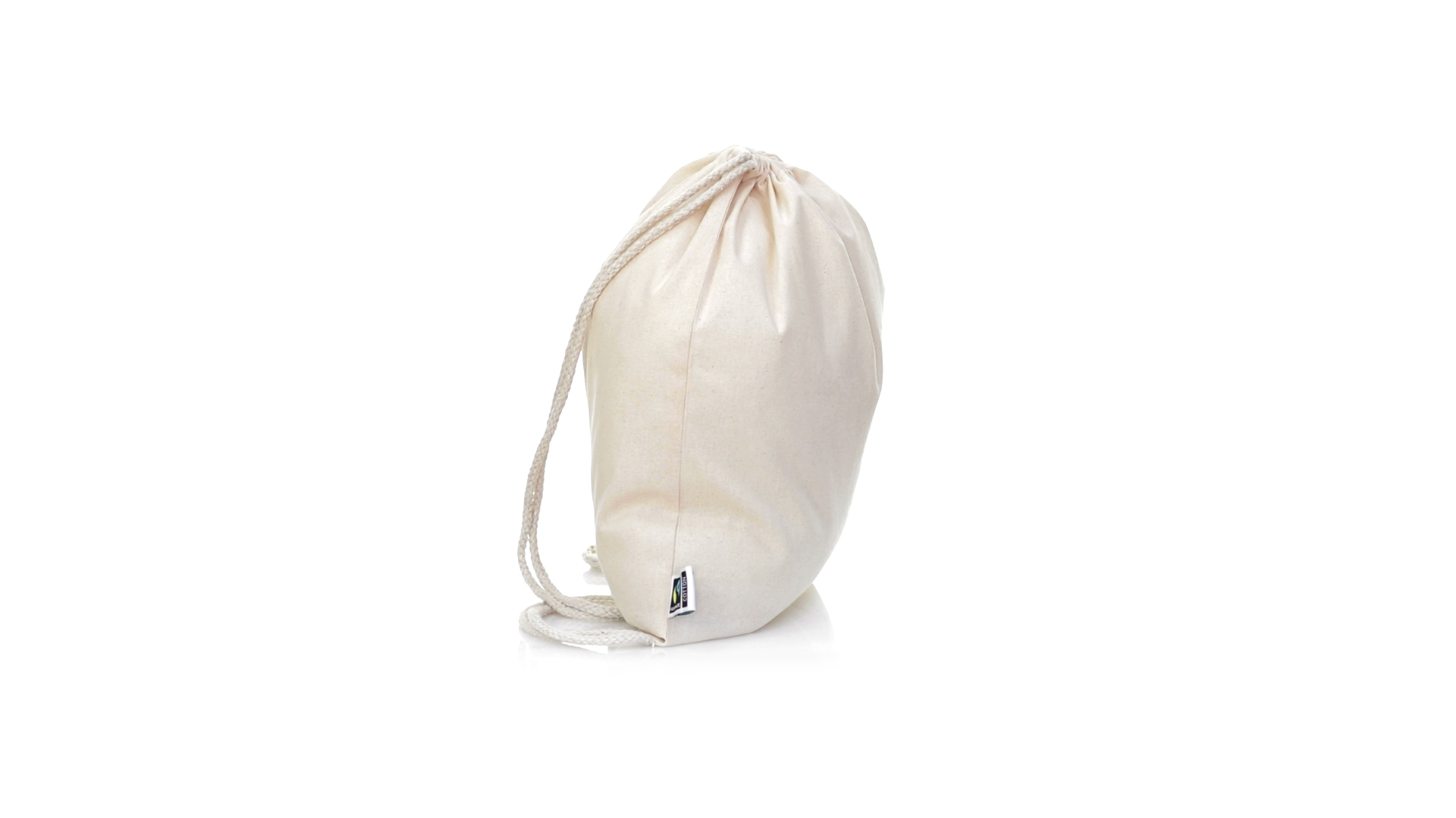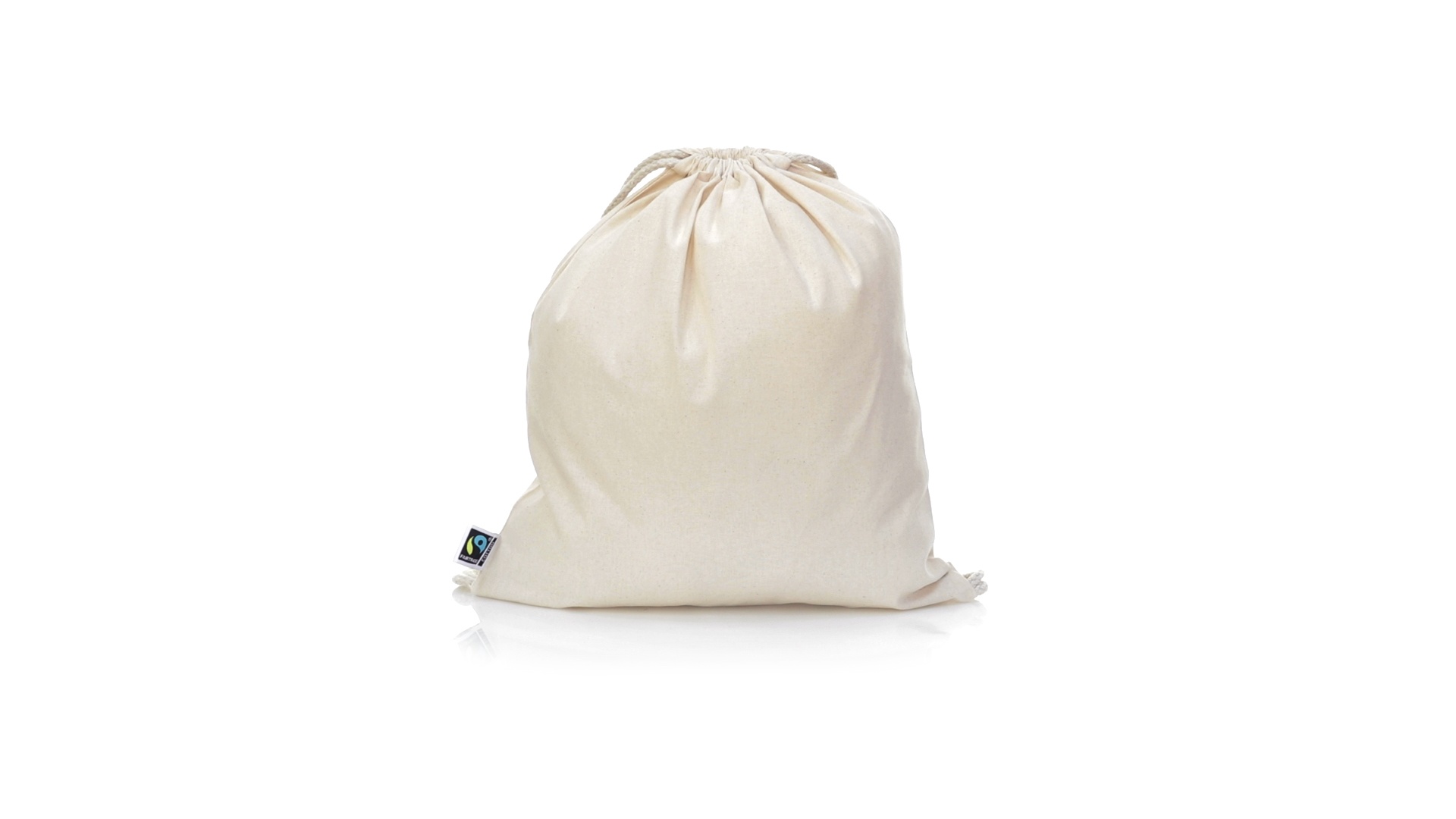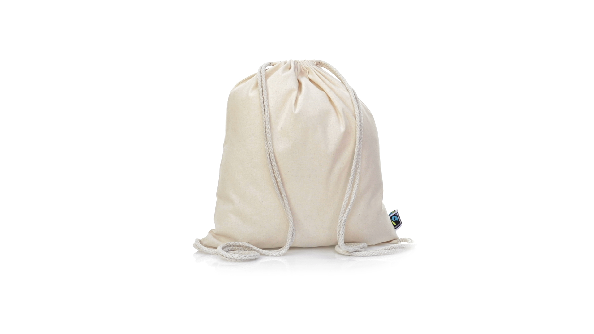 Linie "Natur" Rucksack mit Kordelzug aus Baumwolle 180g/m2 in einem natürlichen Farbton. Mit Fairtrade-Zertifizierung, eine Alternative zum konventionellen Handelssystem, die die Entwicklung der Völker und den Kampf gegen die Armut verfolgt. Mit genähter Oberfläche, Baumwollschnüren und einer Belastbarkeit von bis zu 9 kg. Inklusive Fairtrade-Etikett und Anhänger aus recyceltem Karton.