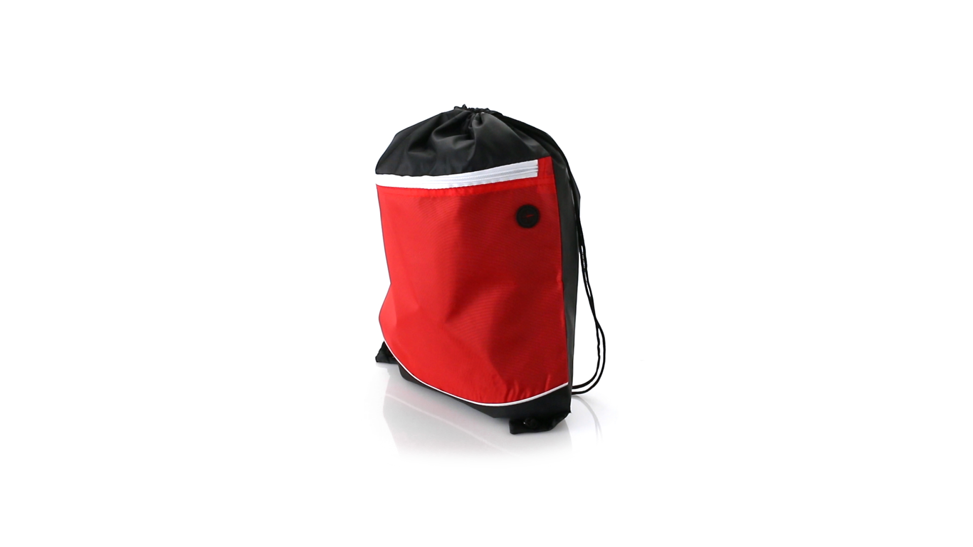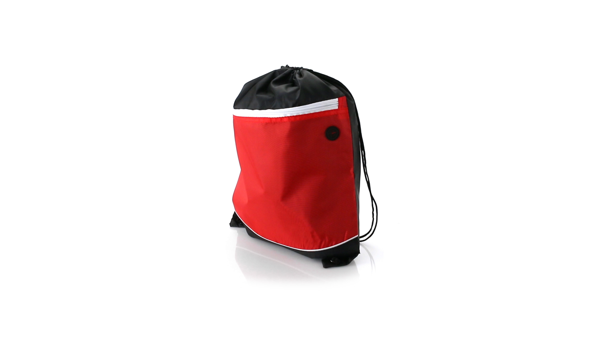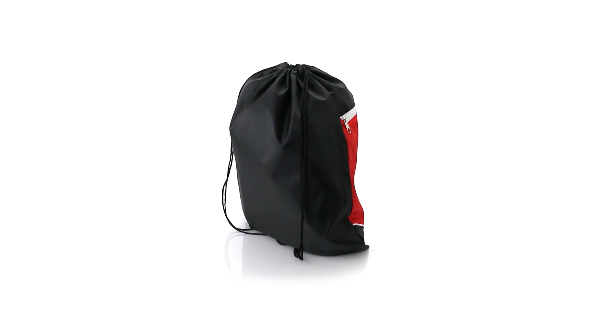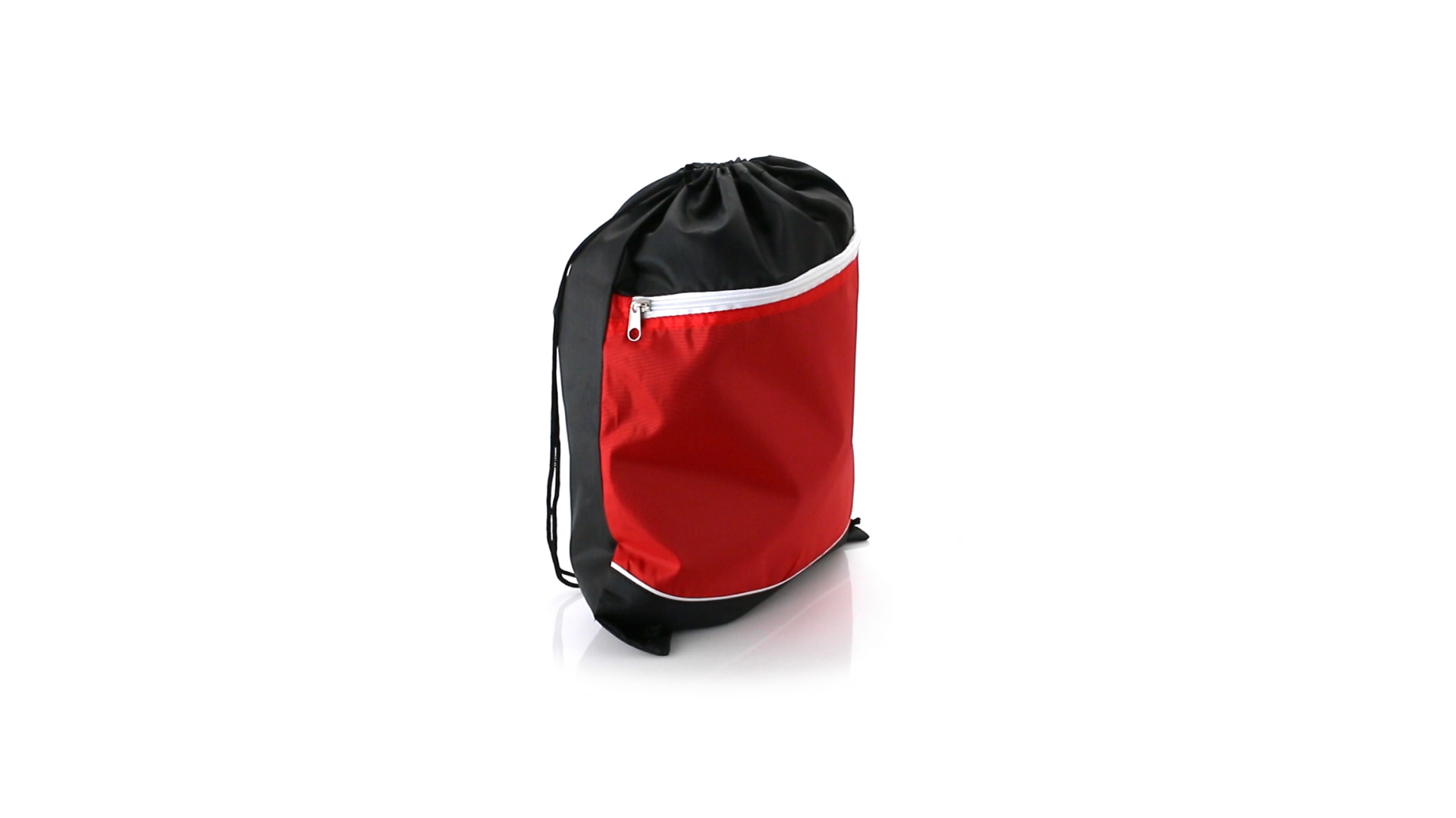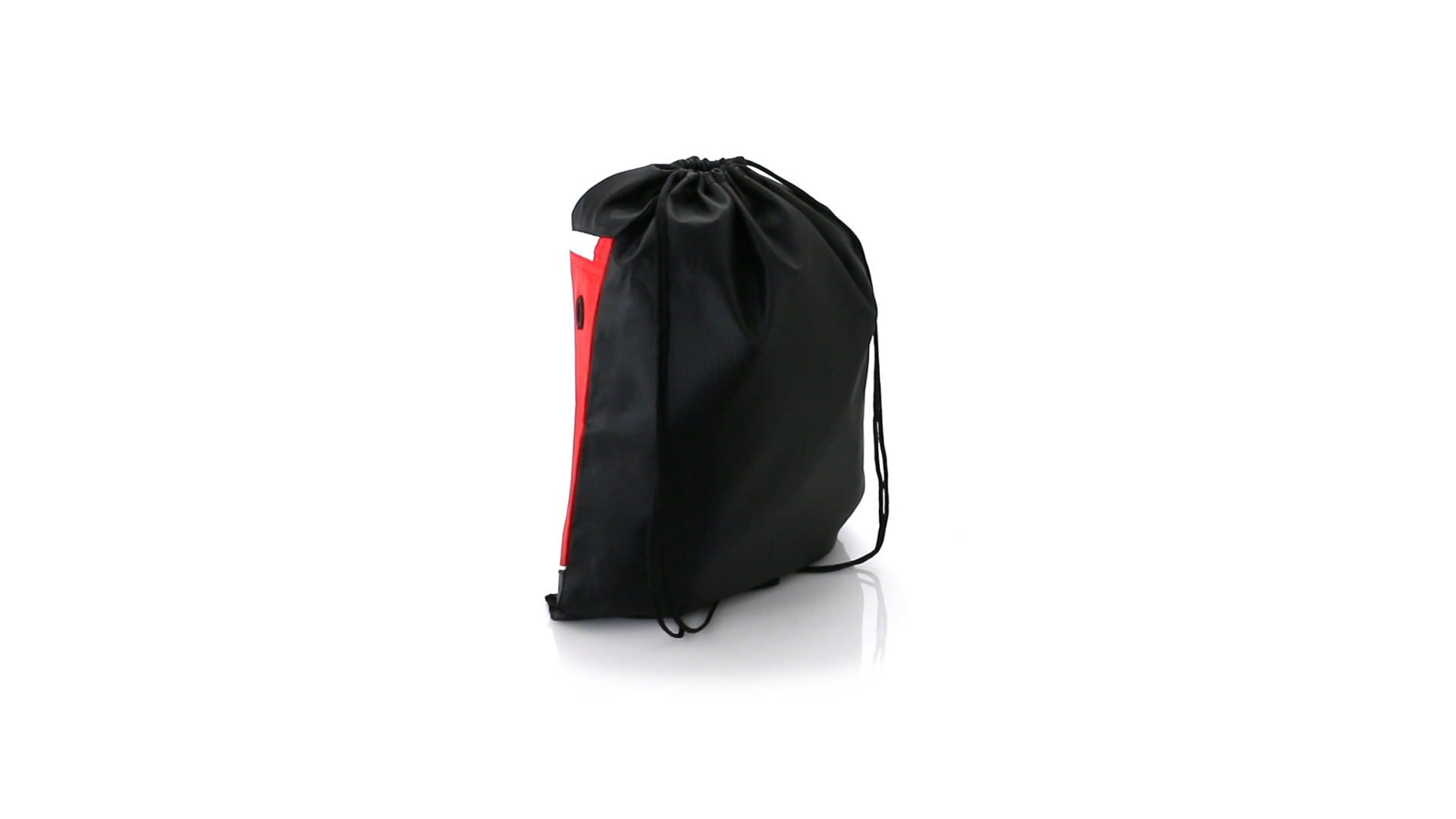 Rucksack mit Kordelzug aus angenehm weichem 210T Polyester mit originellem, zweifarbigem Design. Fronttasche mit Reissverschluss sowie Kopfhörerausgang. Schwarze Zugbänder zum Schliessen sowie verstärkte Ecken mit Metallösen.