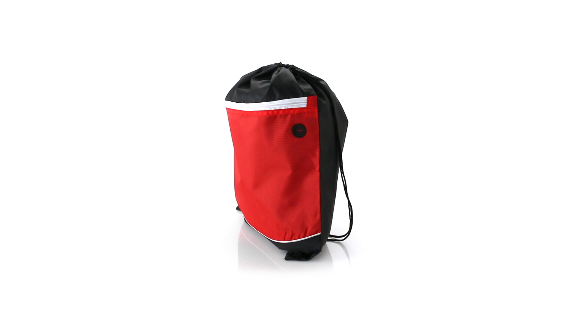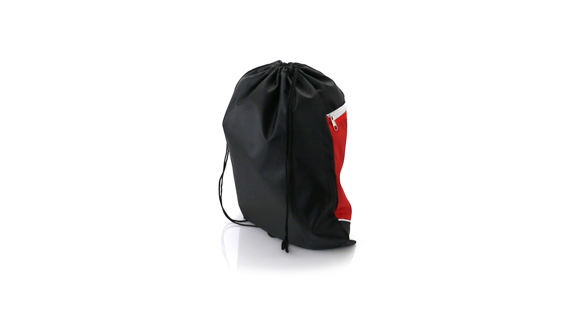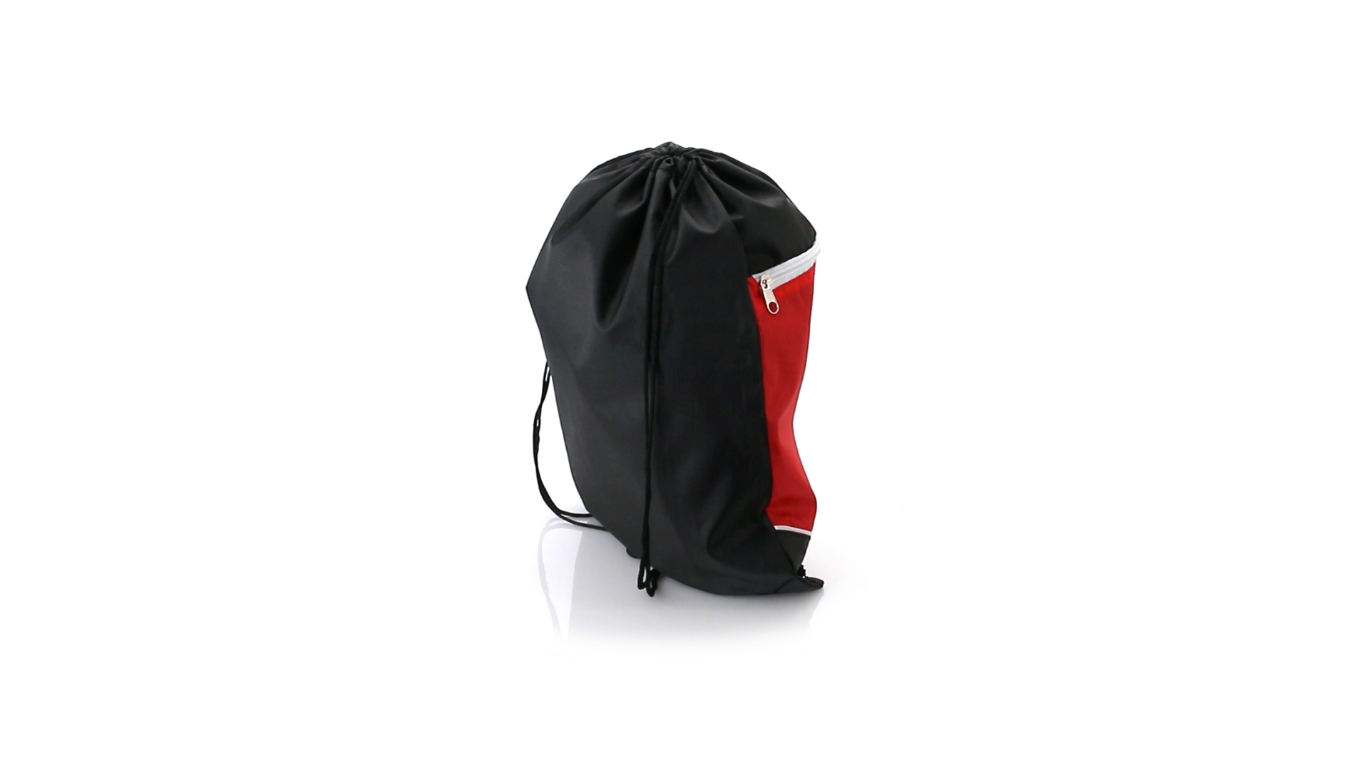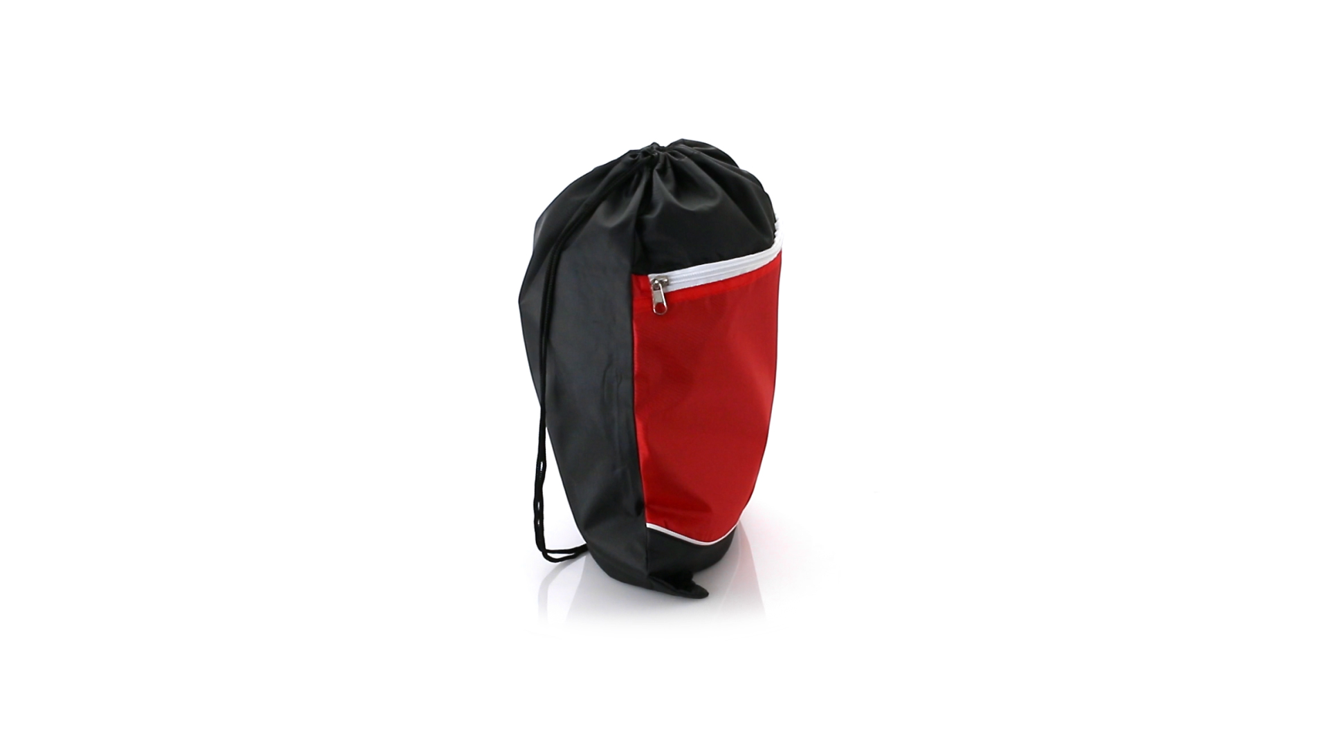 Rucksack mit Kordelzug aus angenehm weichem 210T Polyester mit originellem, zweifarbigem Design. Fronttasche mit Reissverschluss sowie Kopfhörerausgang. Schwarze Zugbänder zum Schliessen sowie verstärkte Ecken mit Metallösen.