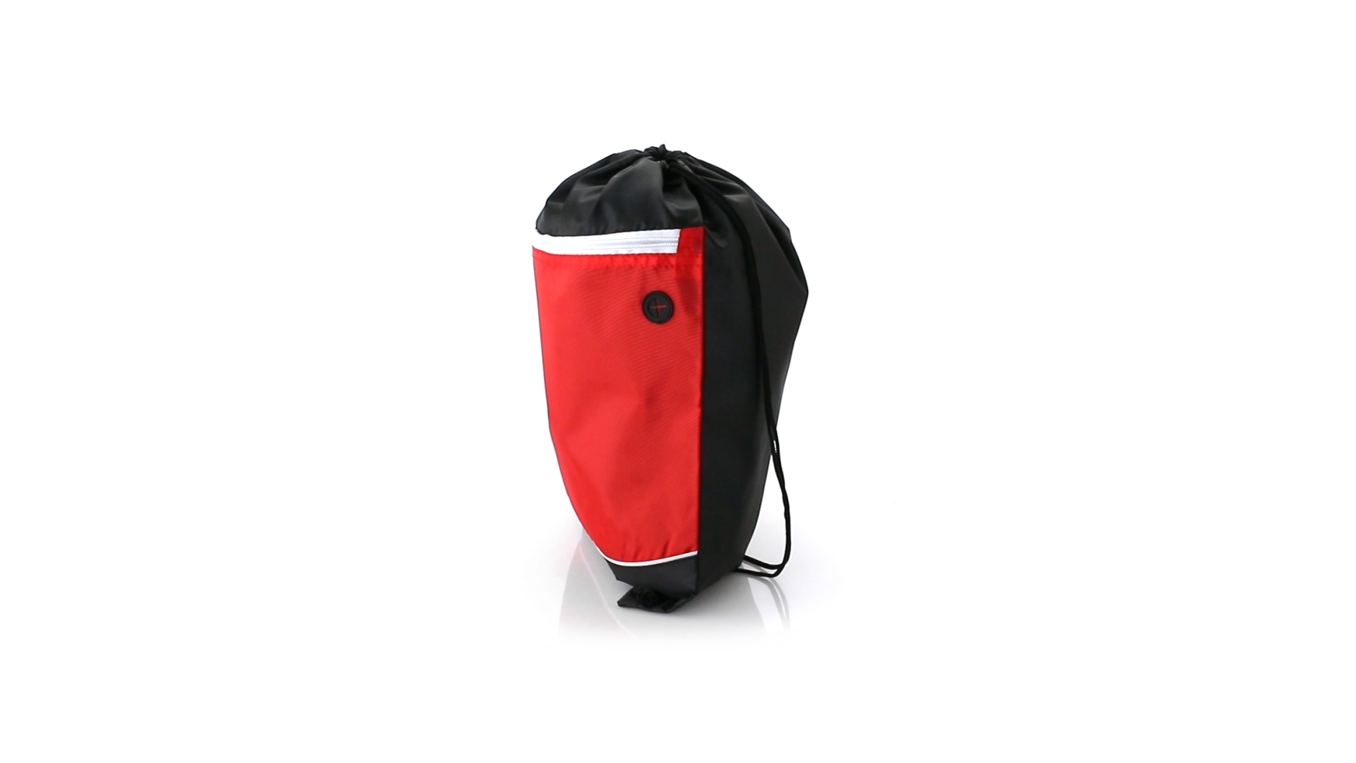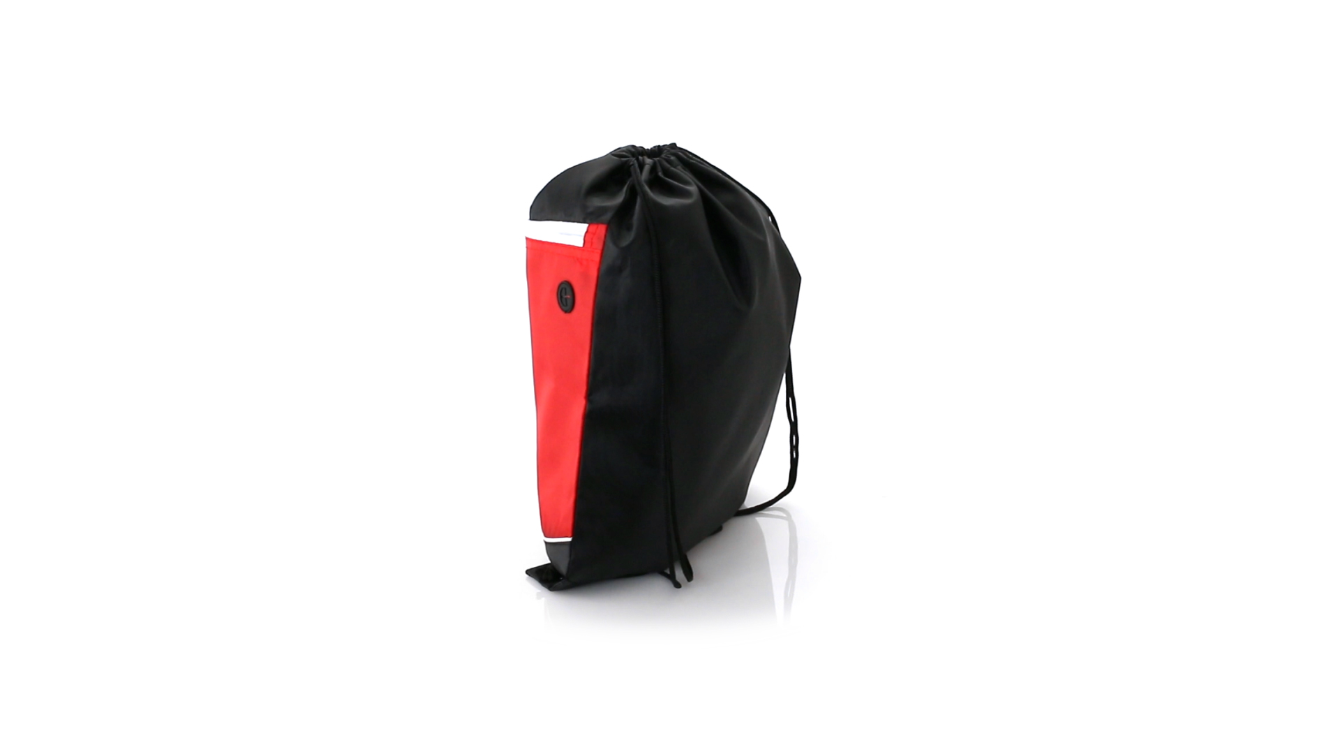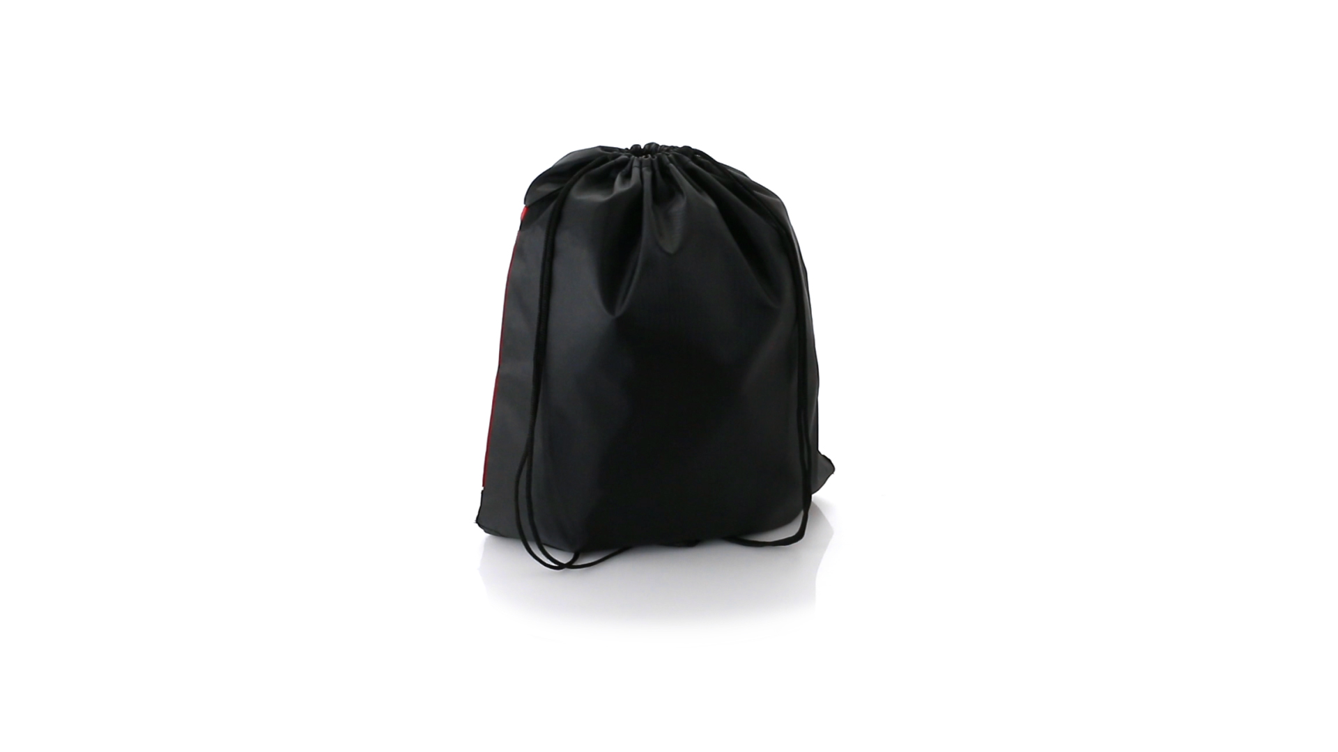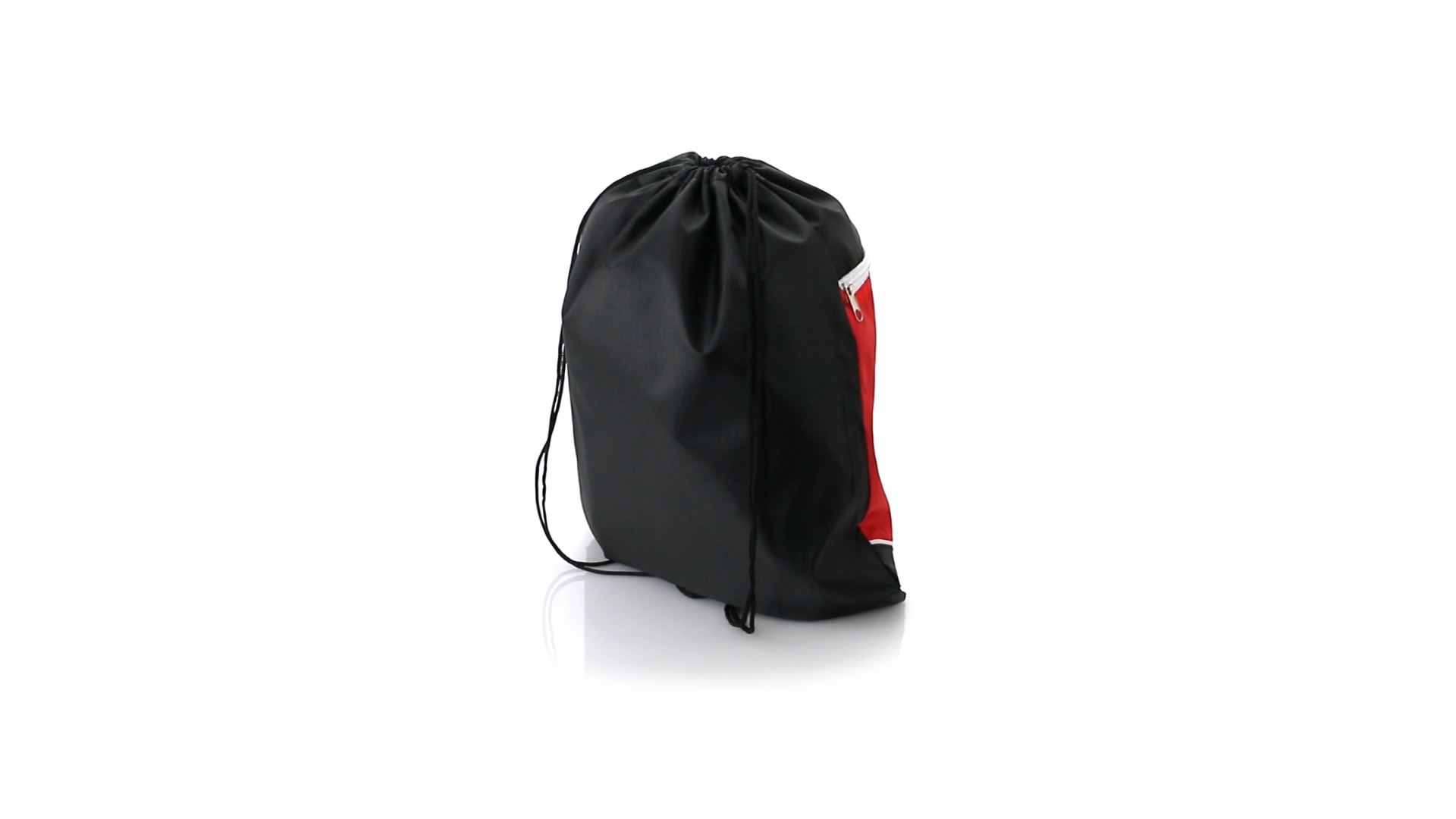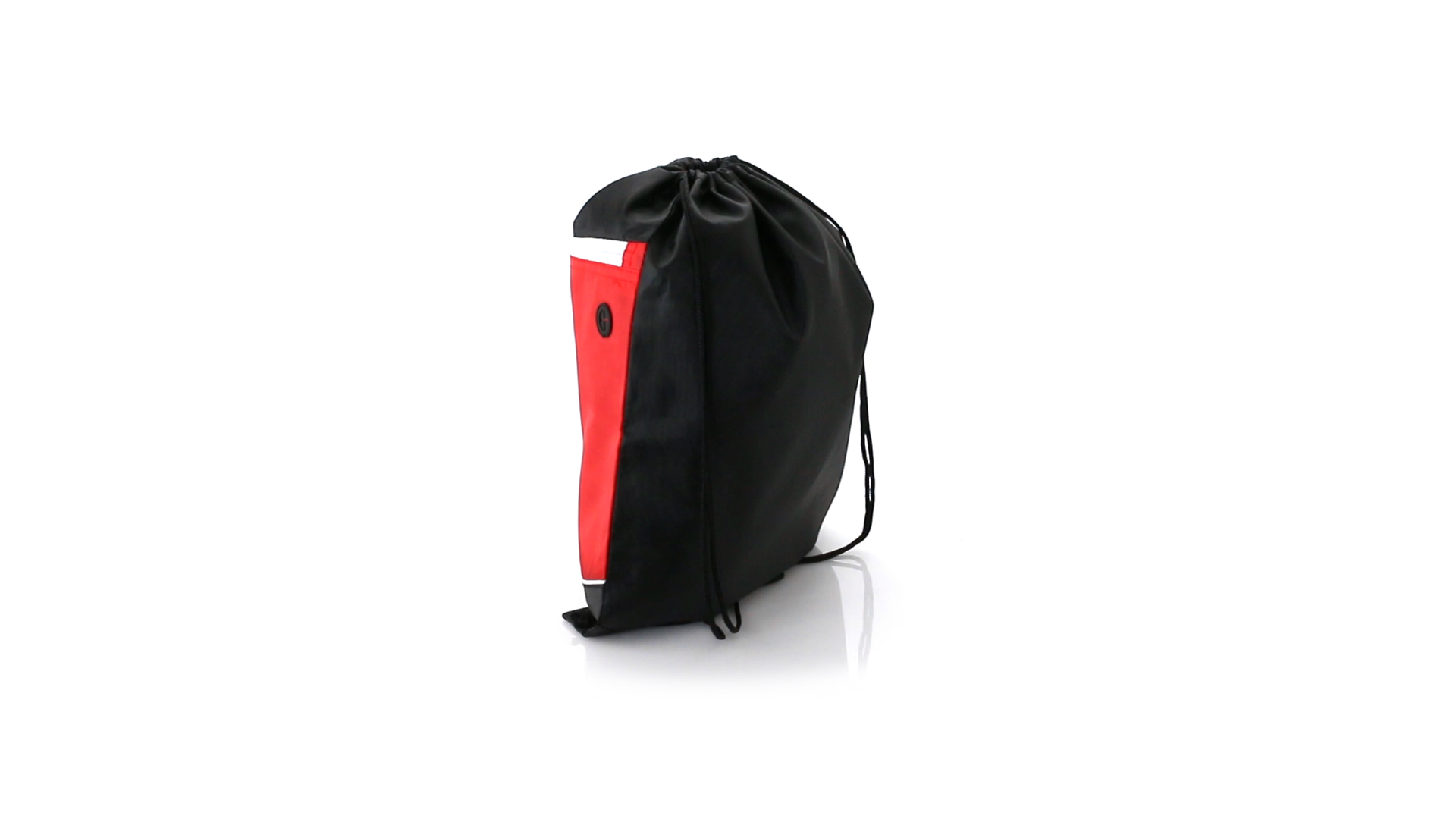 Rucksack mit Kordelzug aus angenehm weichem 210T Polyester mit originellem, zweifarbigem Design. Fronttasche mit Reissverschluss sowie Kopfhörerausgang. Schwarze Zugbänder zum Schliessen sowie verstärkte Ecken mit Metallösen.