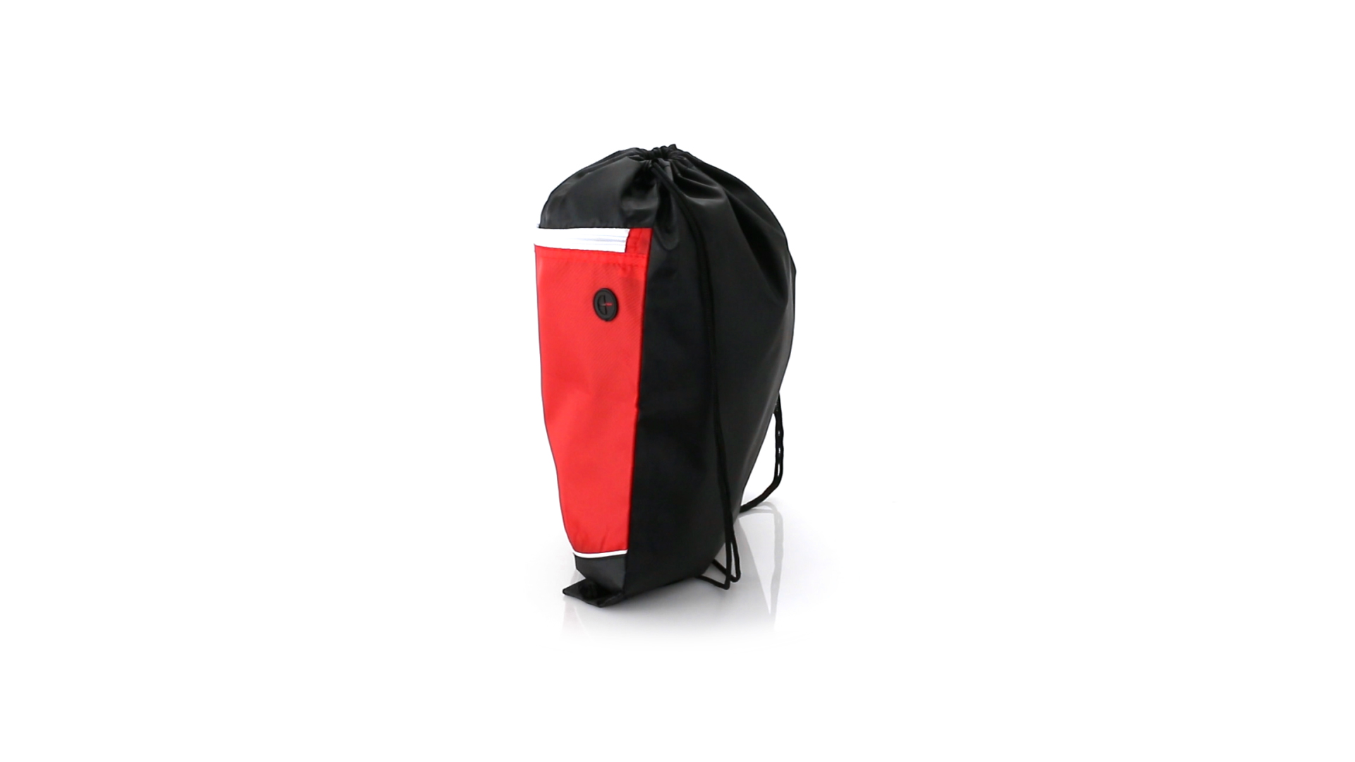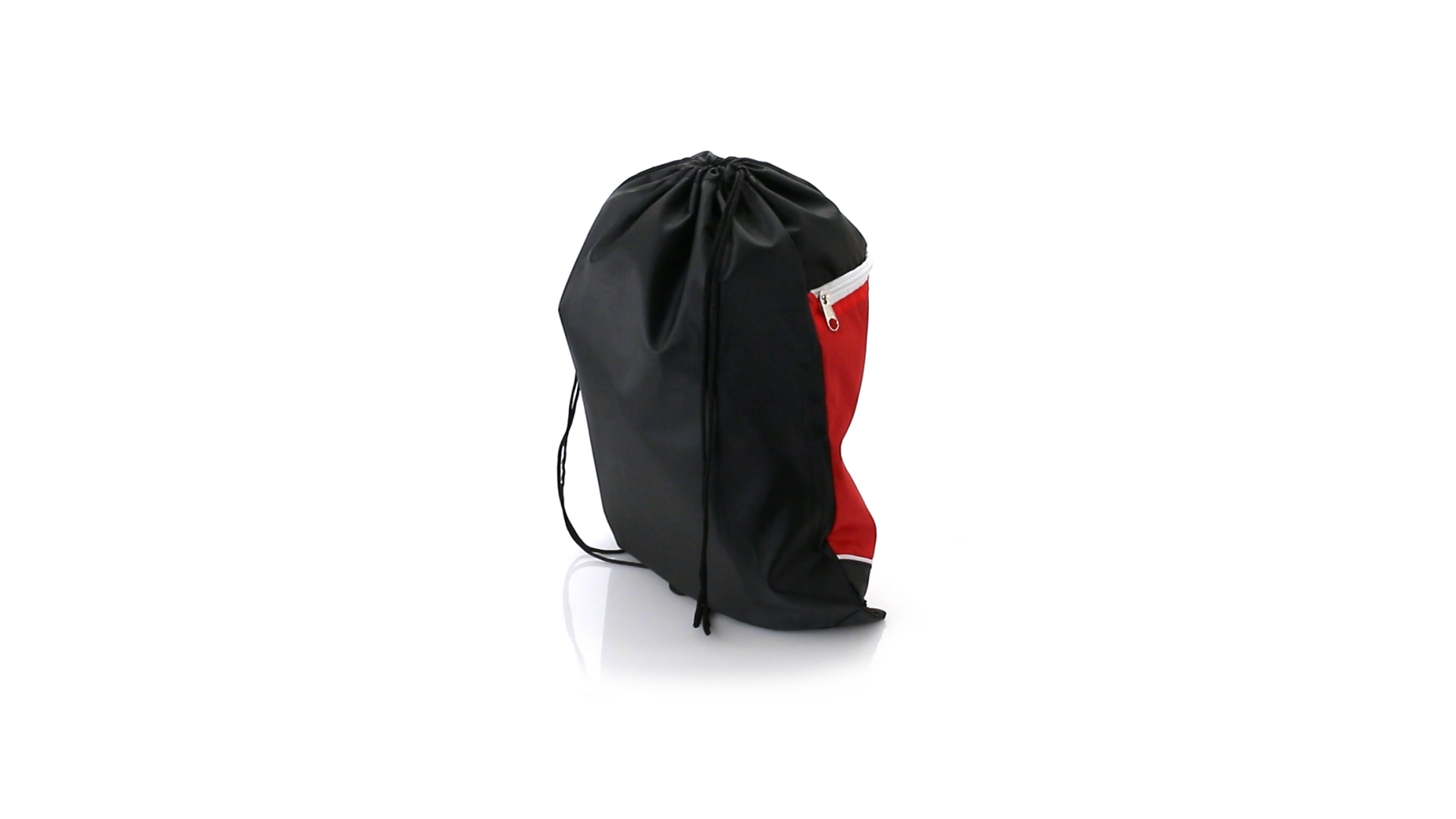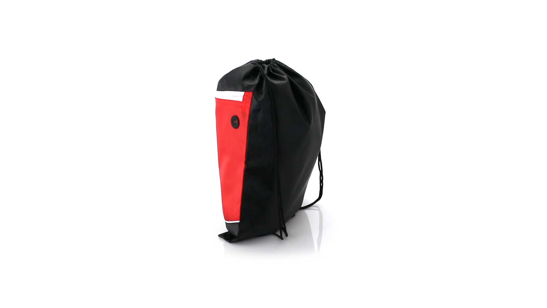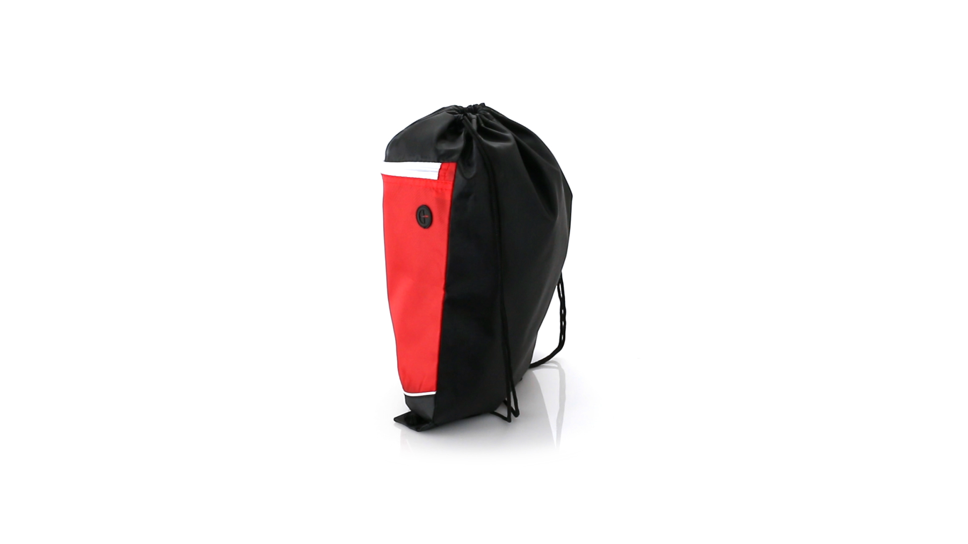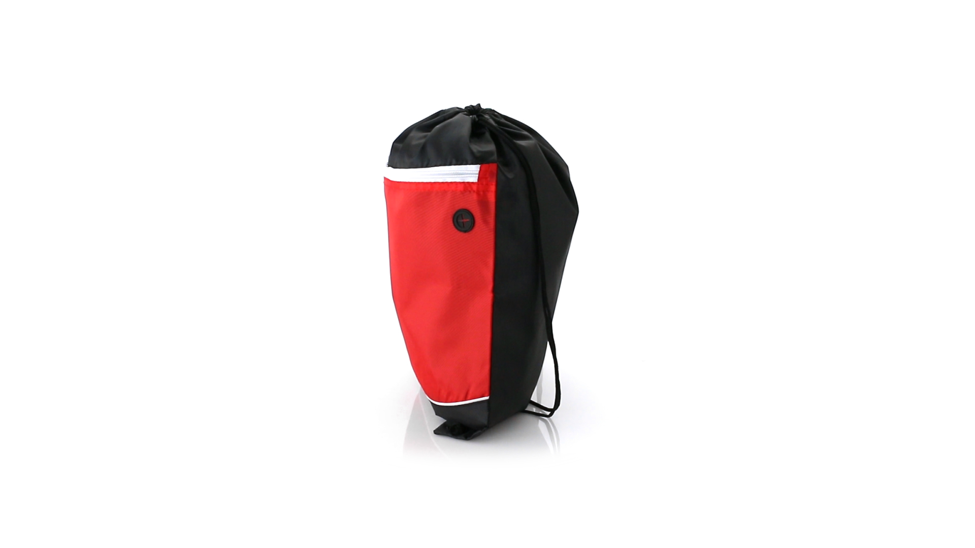 Rucksack mit Kordelzug aus angenehm weichem 210T Polyester mit originellem, zweifarbigem Design. Fronttasche mit Reissverschluss sowie Kopfhörerausgang. Schwarze Zugbänder zum Schliessen sowie verstärkte Ecken mit Metallösen.