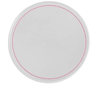 Zweiteiliger Kunststoffuntersetzer mit bedrucktem Papiereinleger. Der Papiereinleger ist beidseitig bedruckbar.
