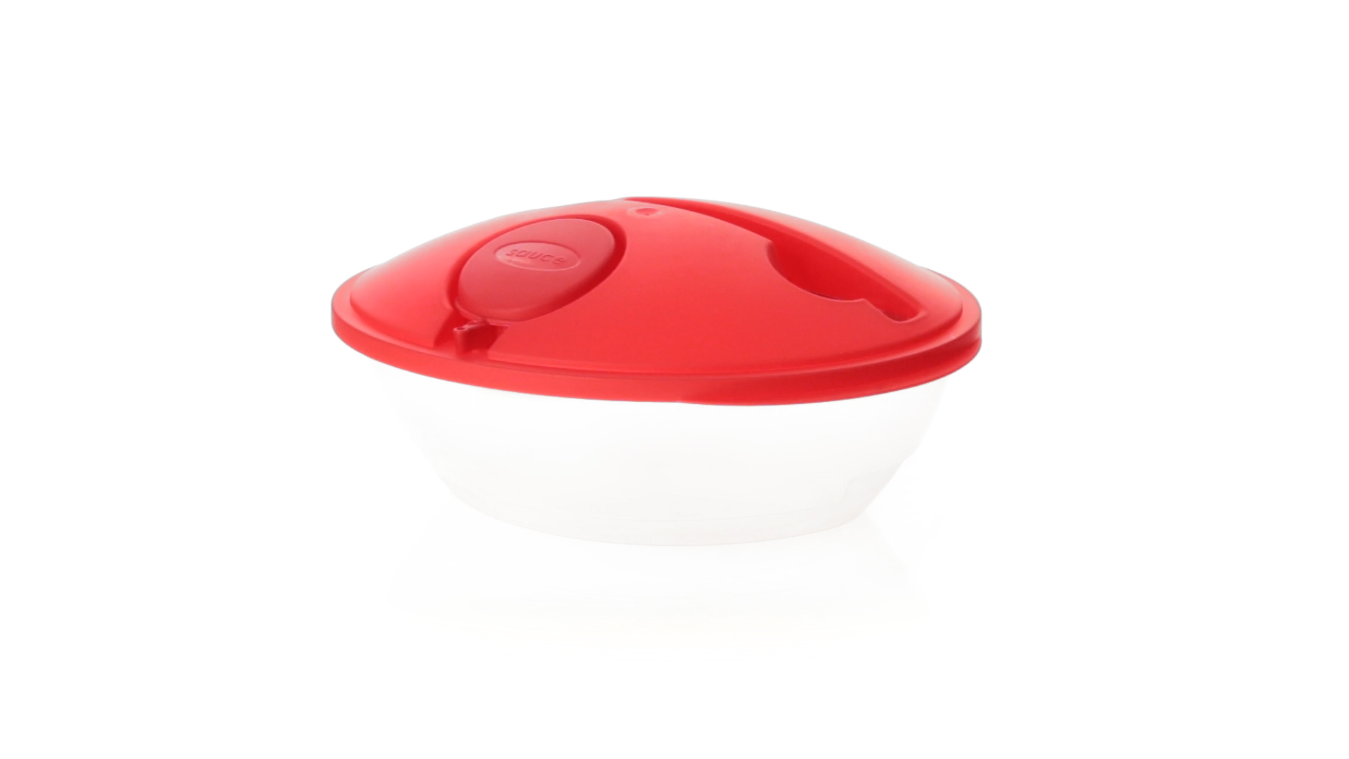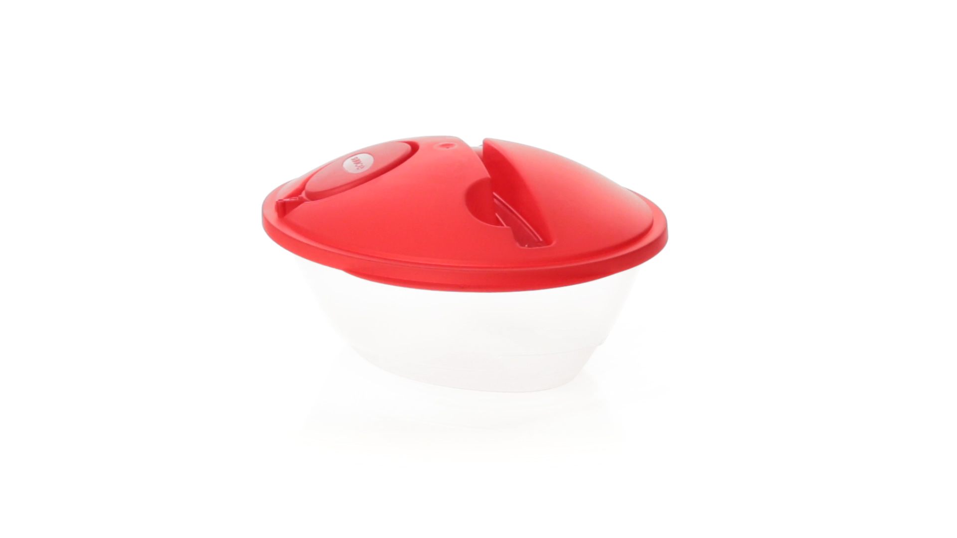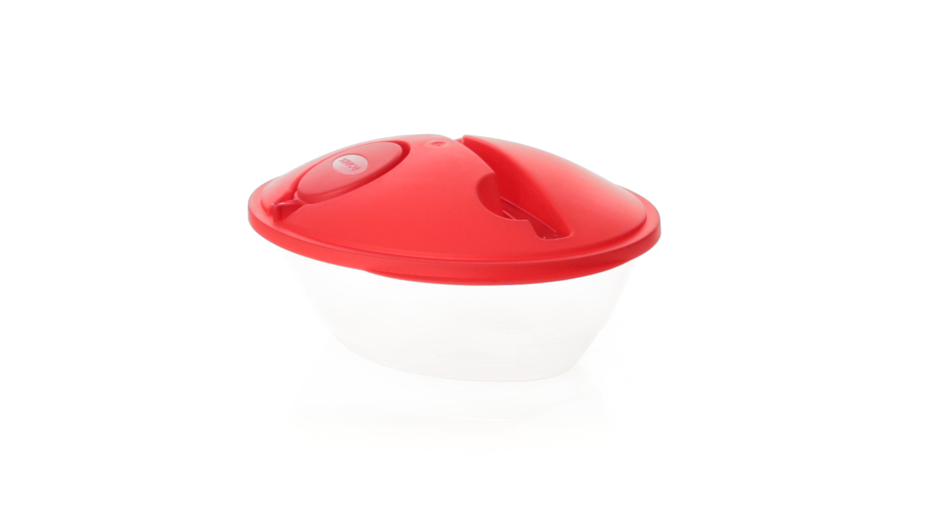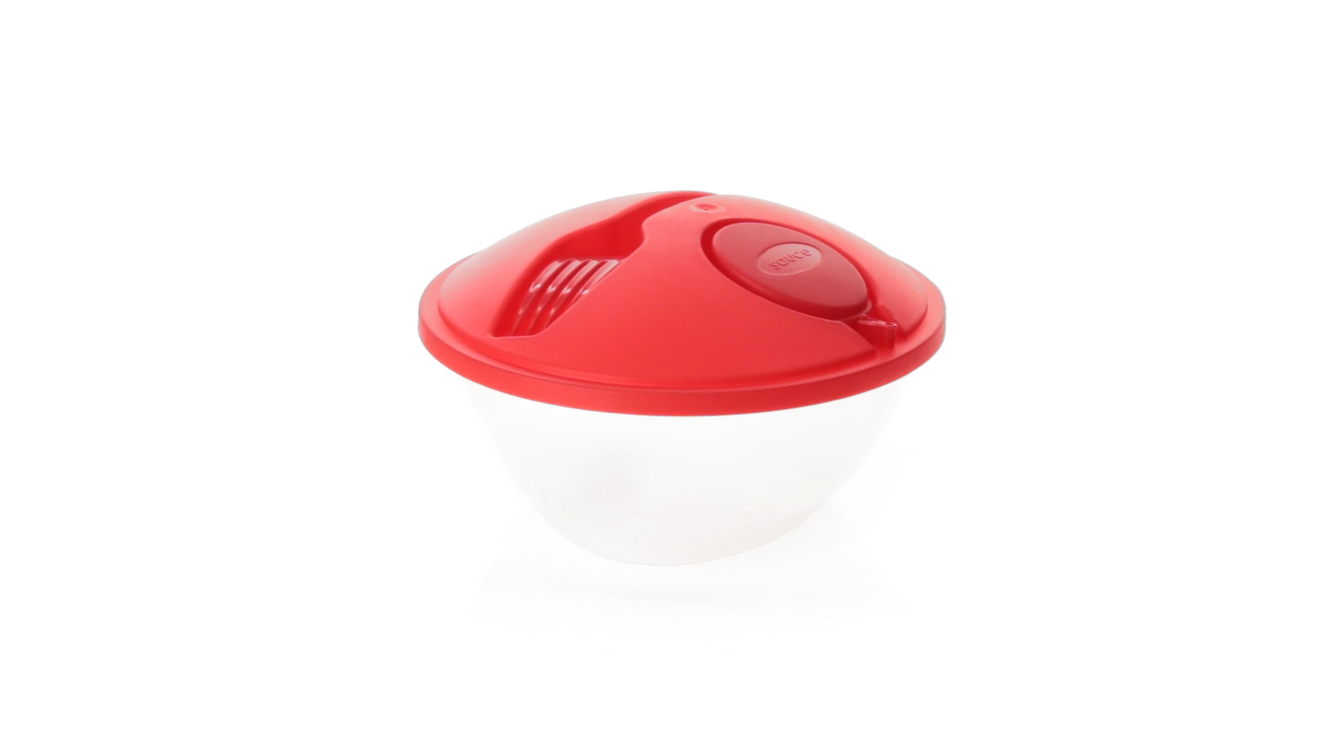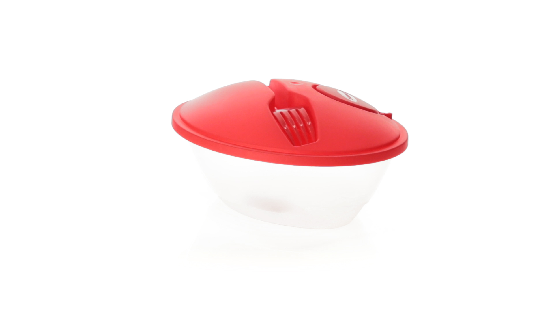 Salatschüssel mit 1200 ml Fassungsvermögen aus Polypropylen (PP). Mit transparenter Schüssel und Deckel in einer Vielzahl von Farben mit integrierter Gabel und kleinem Dressingbehälter. Spülmaschinengeeignet.