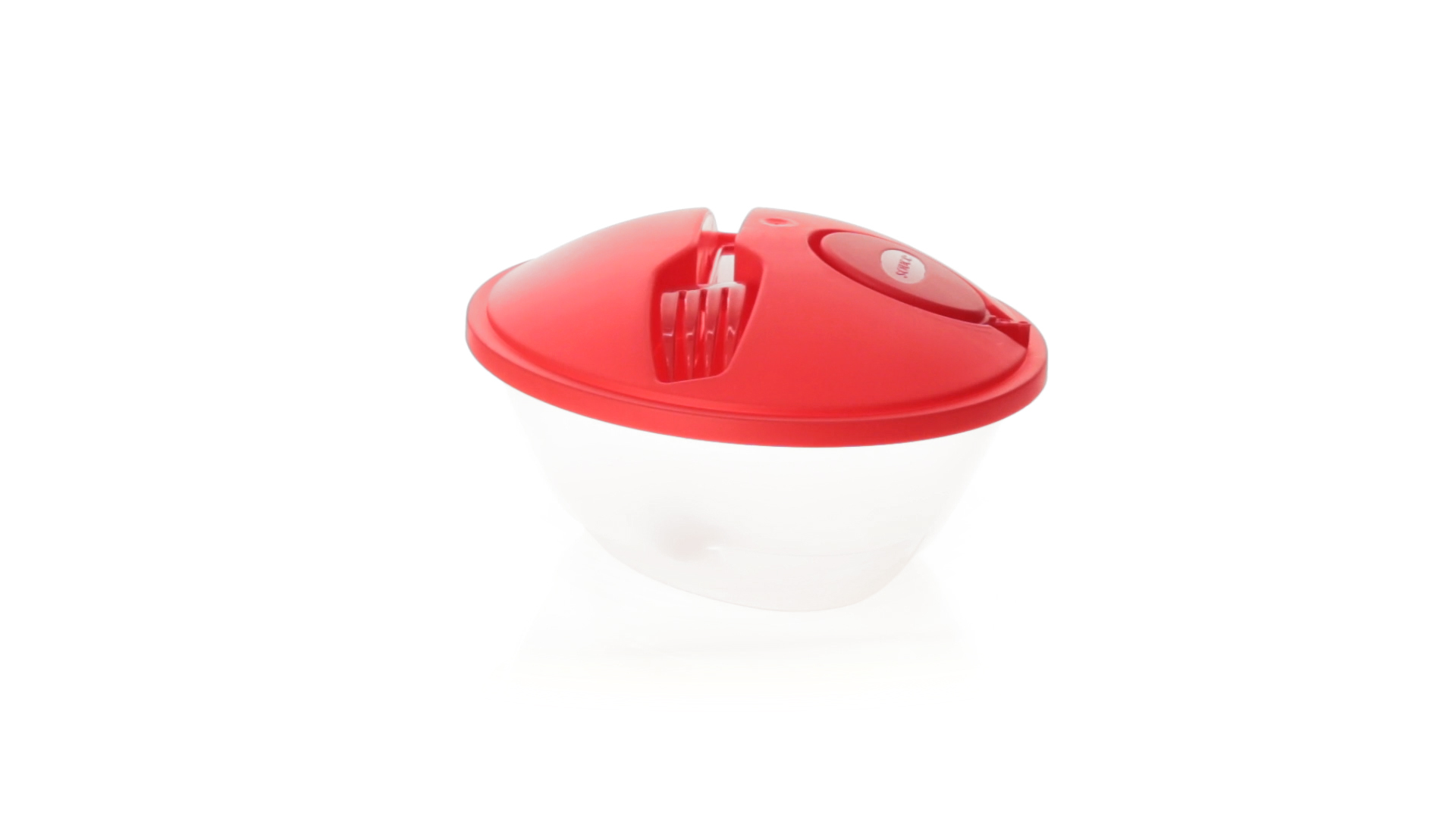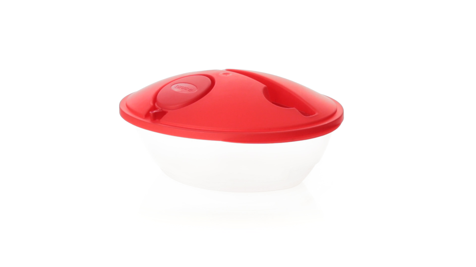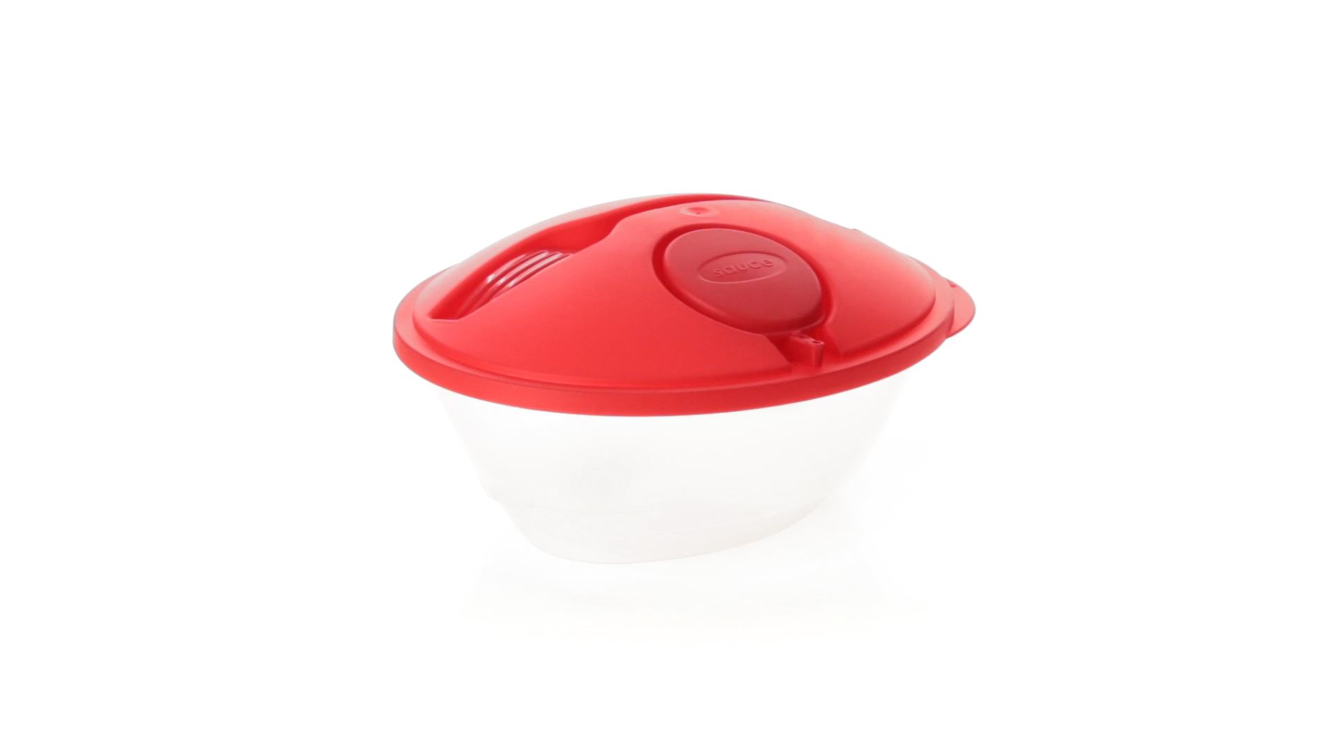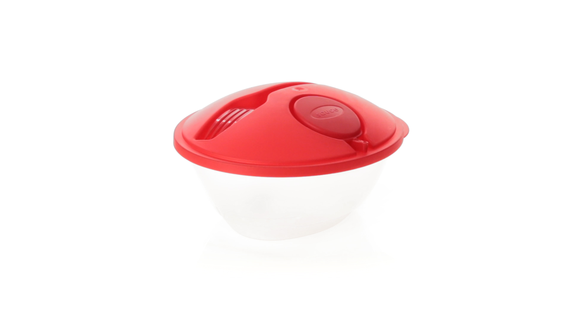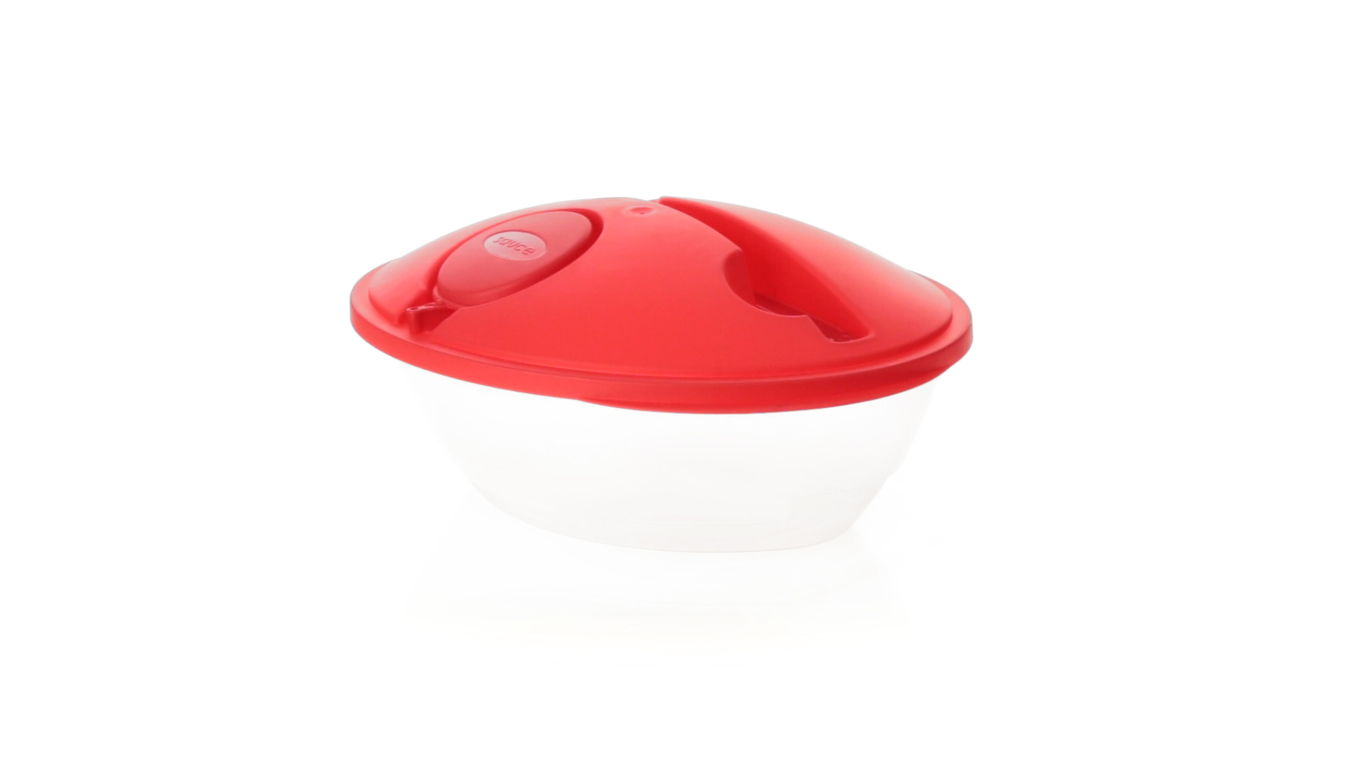 Salatschüssel mit 1200 ml Fassungsvermögen aus Polypropylen (PP). Mit transparenter Schüssel und Deckel in einer Vielzahl von Farben mit integrierter Gabel und kleinem Dressingbehälter. Spülmaschinengeeignet.