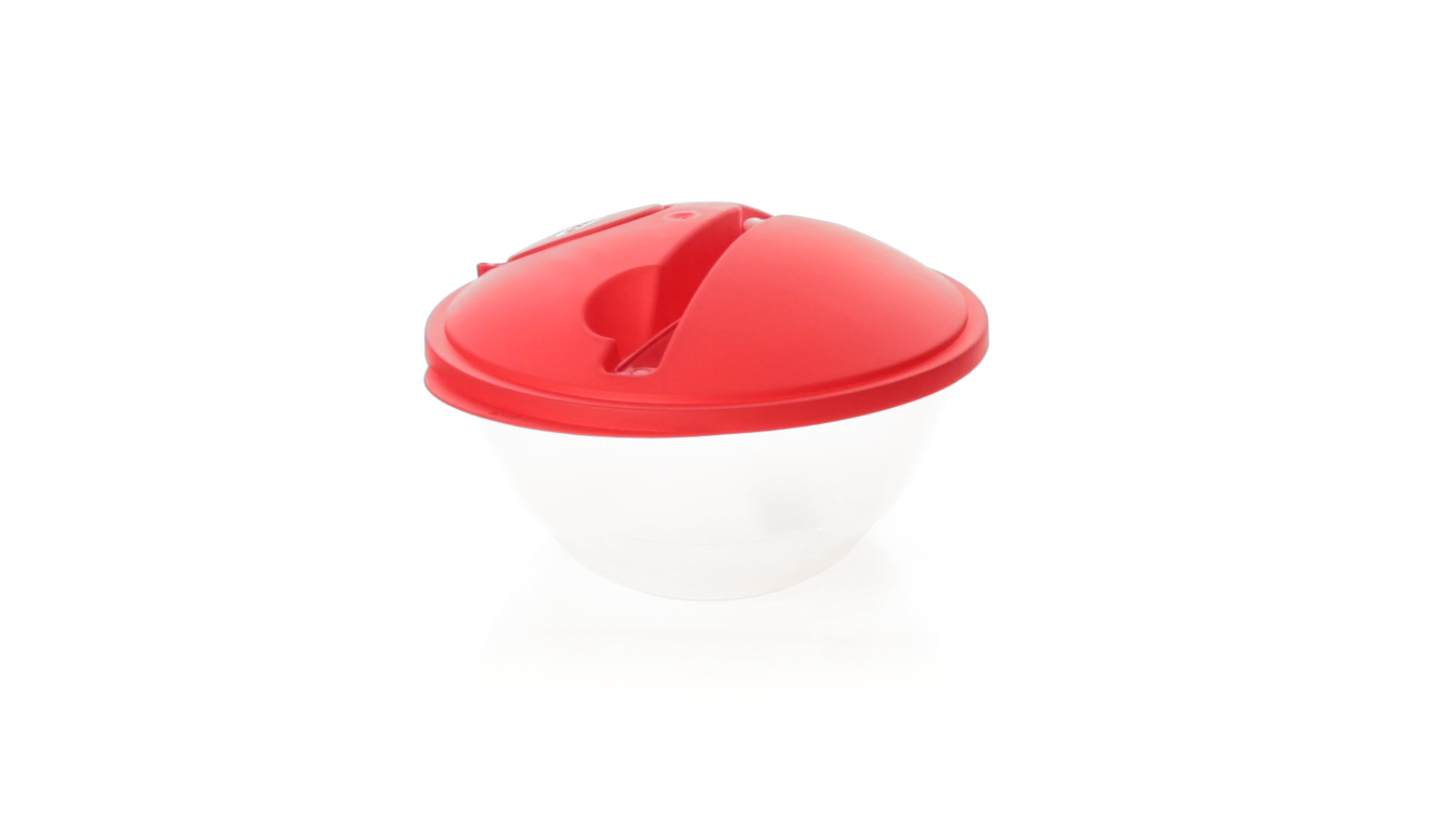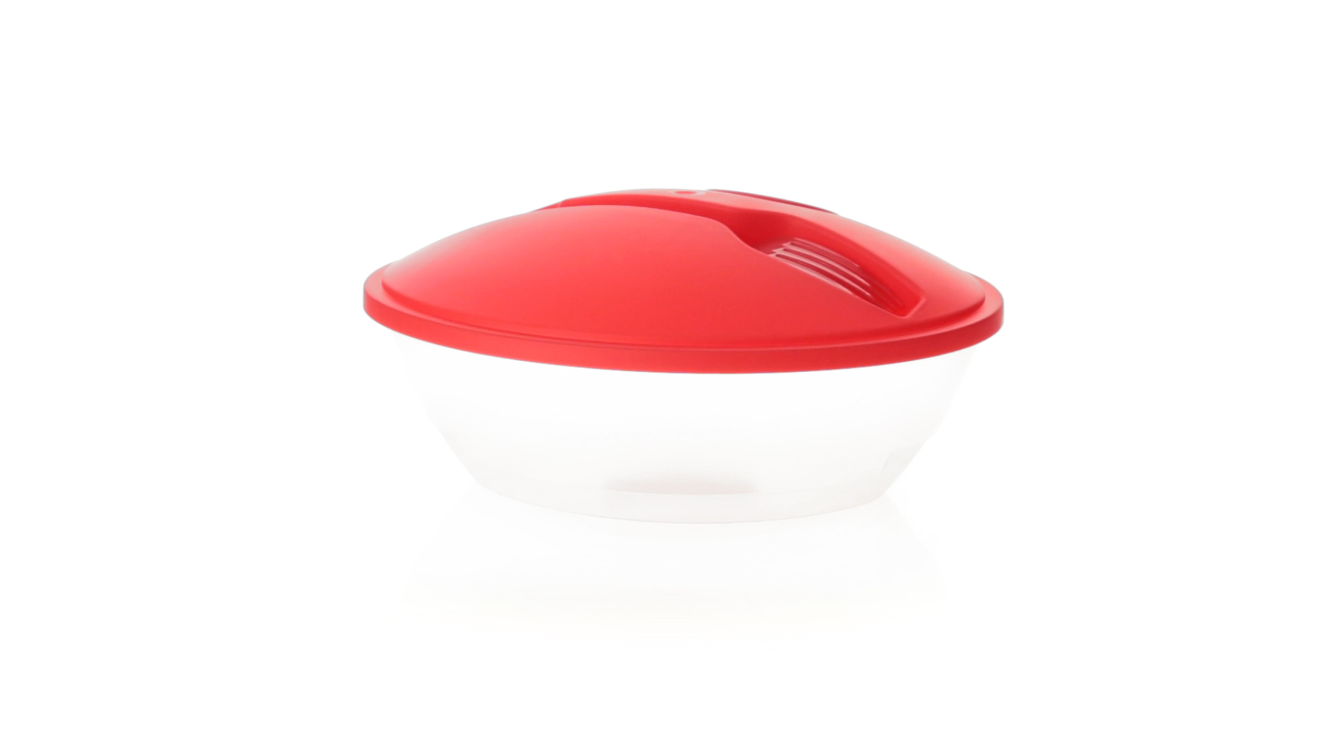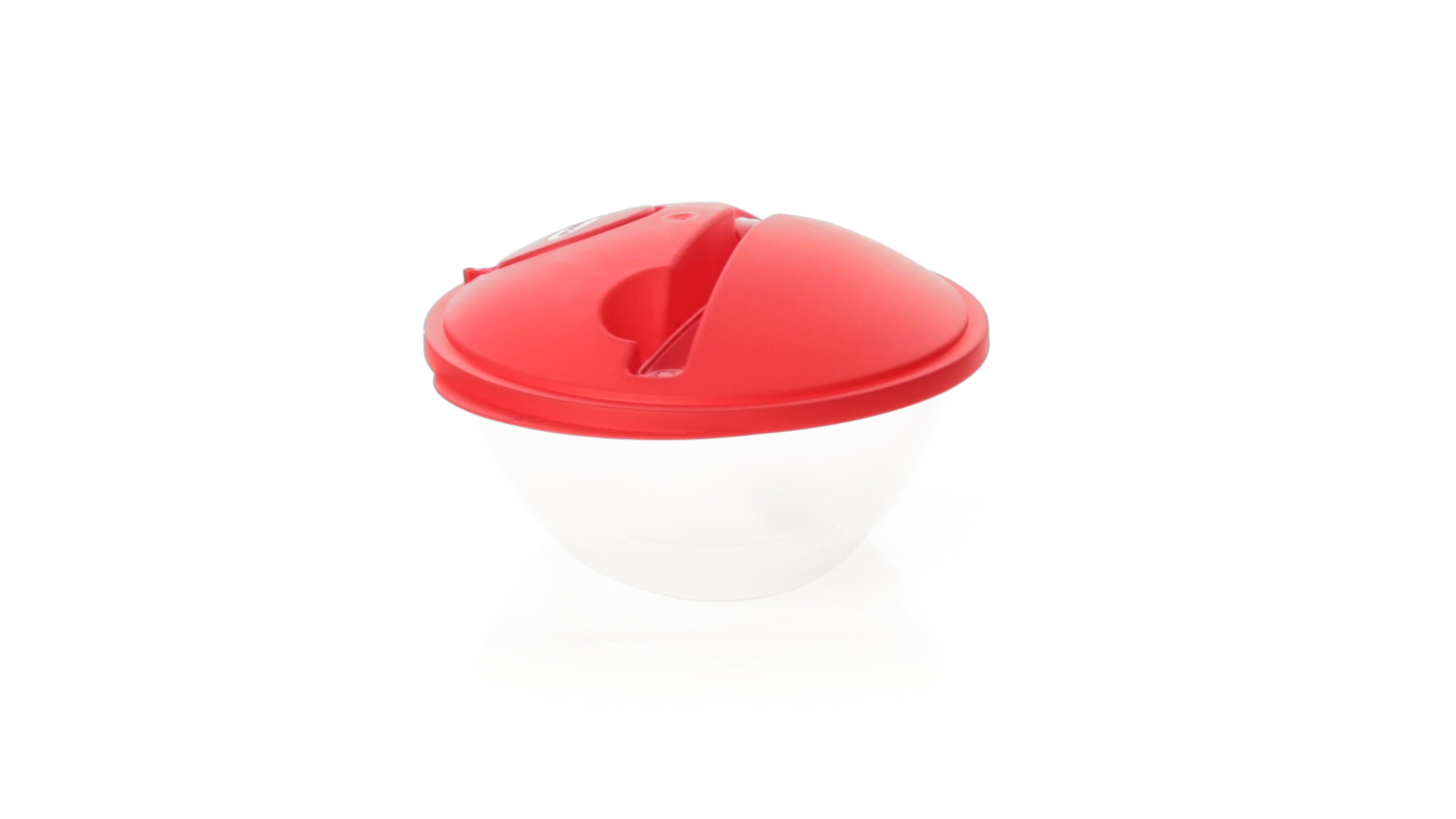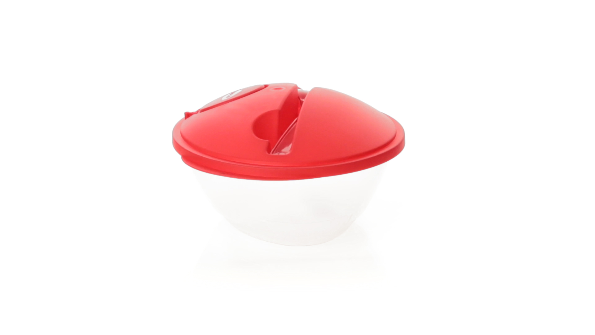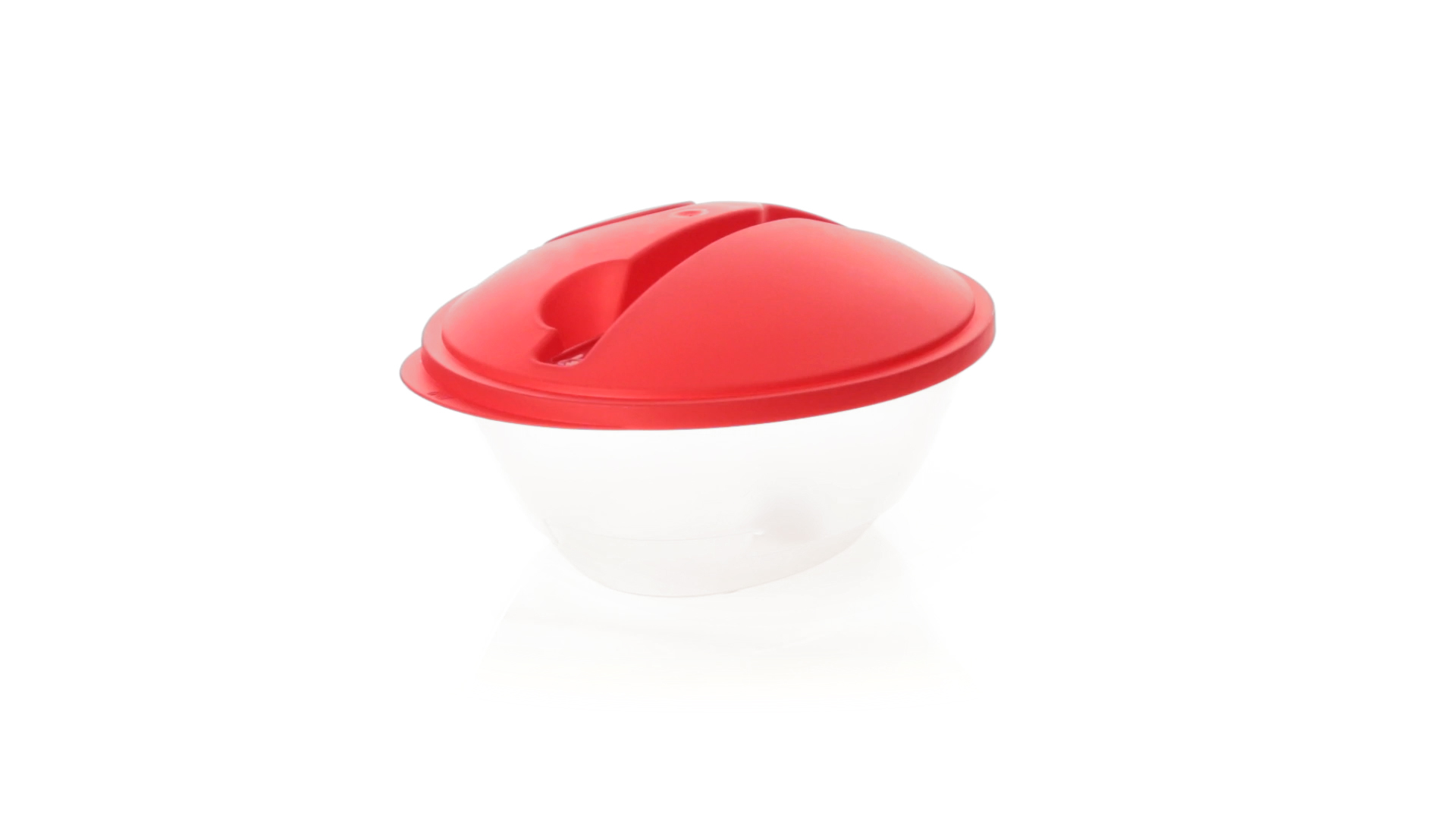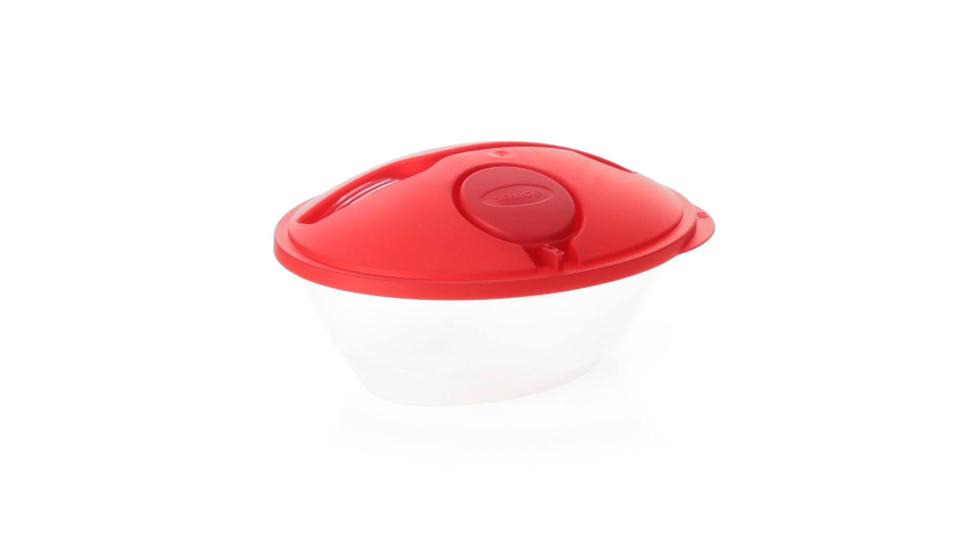 Salatschüssel mit 1200 ml Fassungsvermögen aus Polypropylen (PP). Mit transparenter Schüssel und Deckel in einer Vielzahl von Farben mit integrierter Gabel und kleinem Dressingbehälter. Spülmaschinengeeignet.