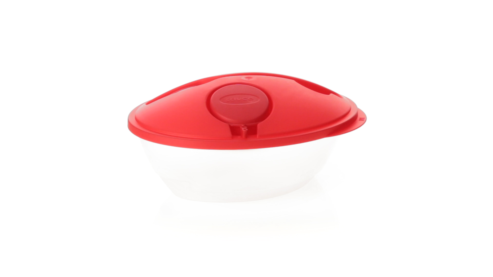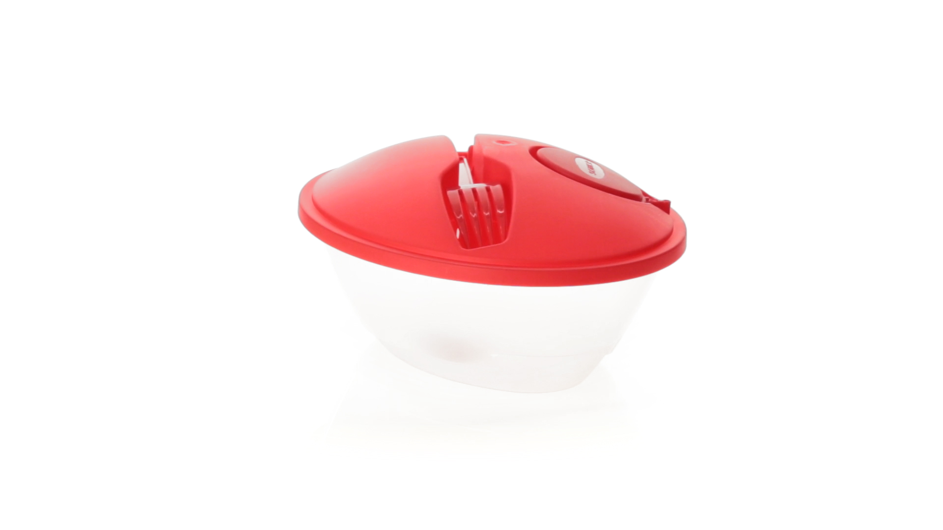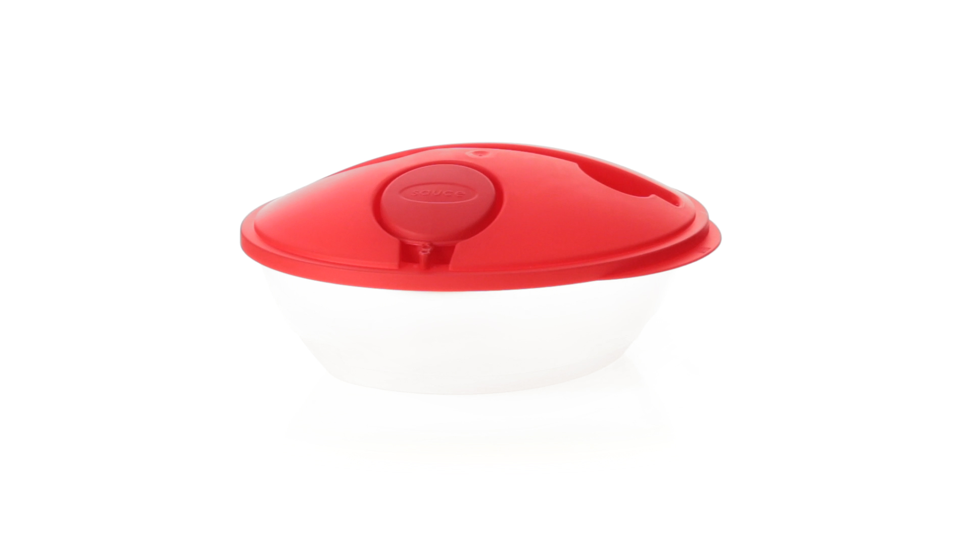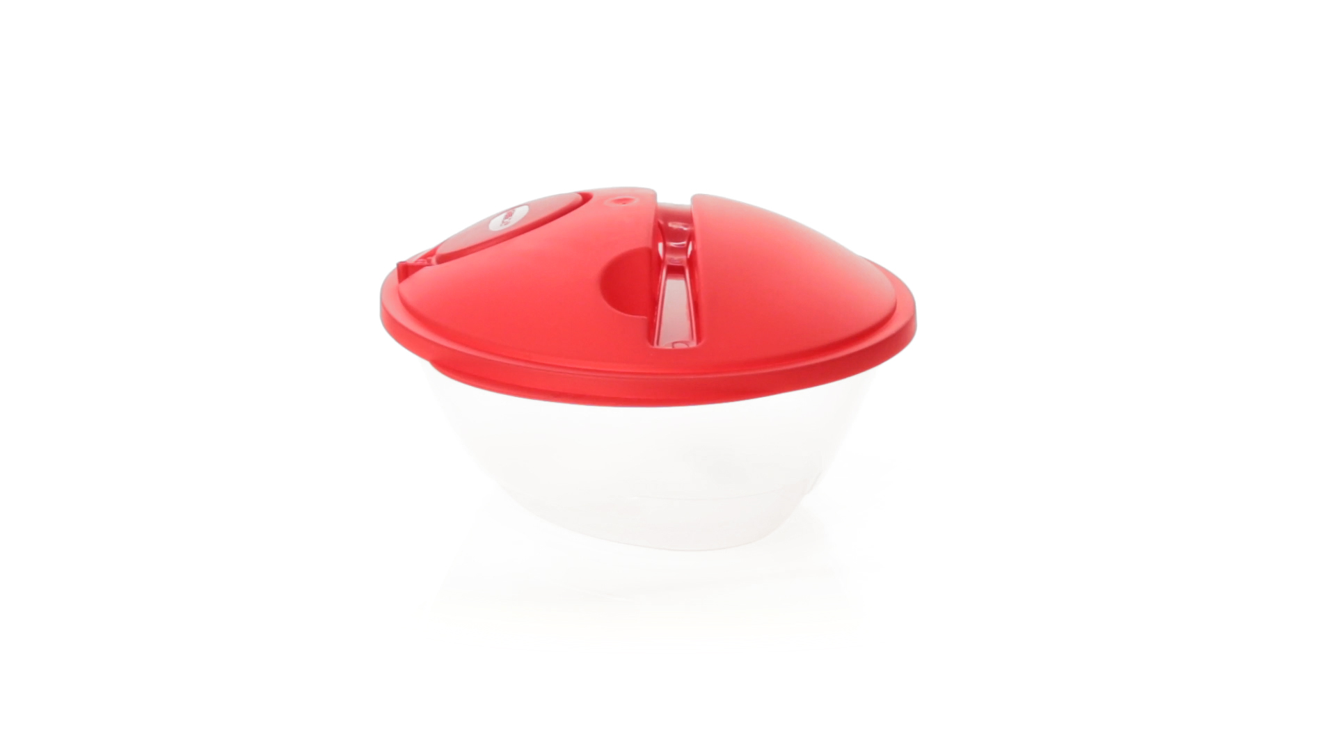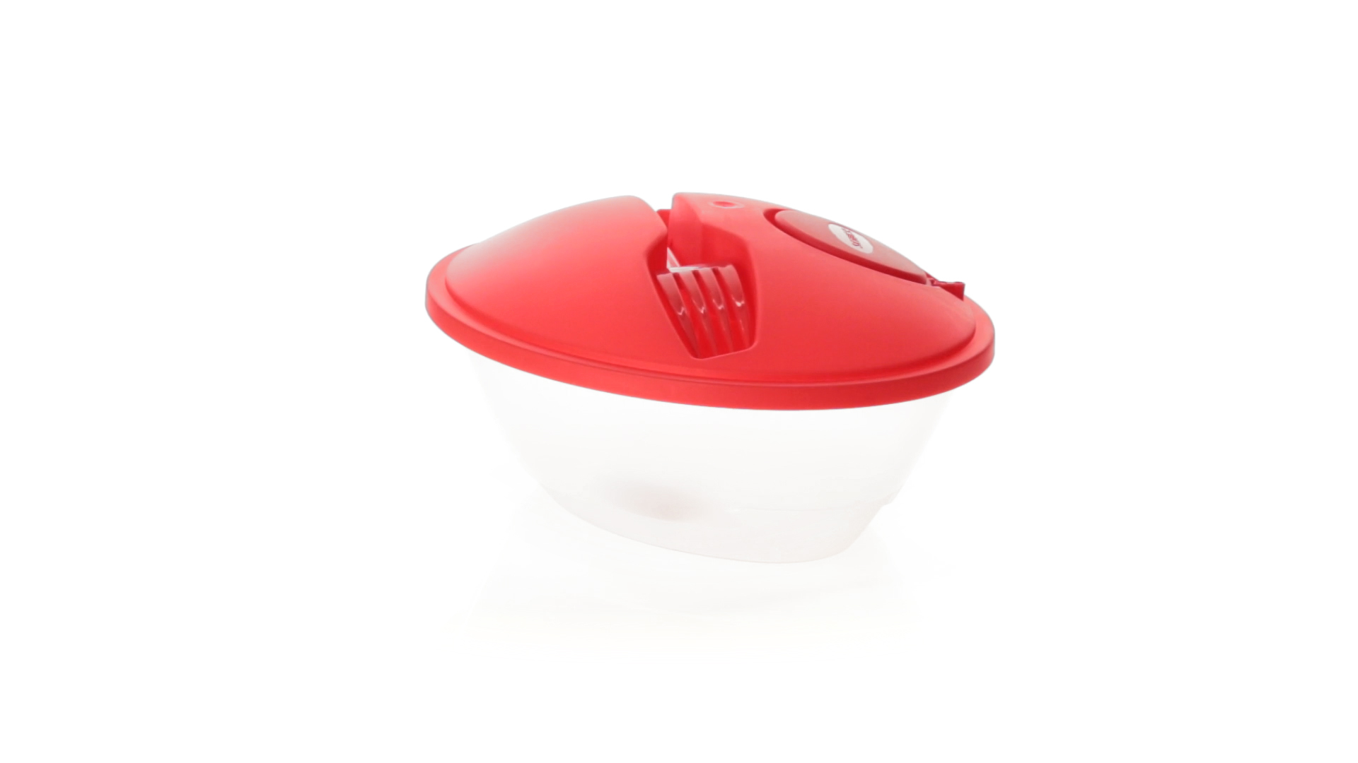 Salatschüssel mit 1200 ml Fassungsvermögen aus Polypropylen (PP). Mit transparenter Schüssel und Deckel in einer Vielzahl von Farben mit integrierter Gabel und kleinem Dressingbehälter. Spülmaschinengeeignet.