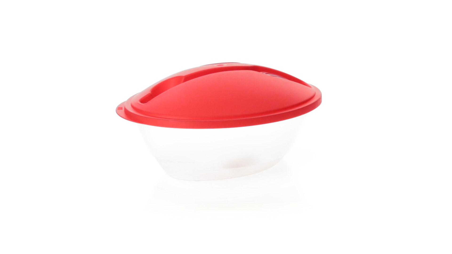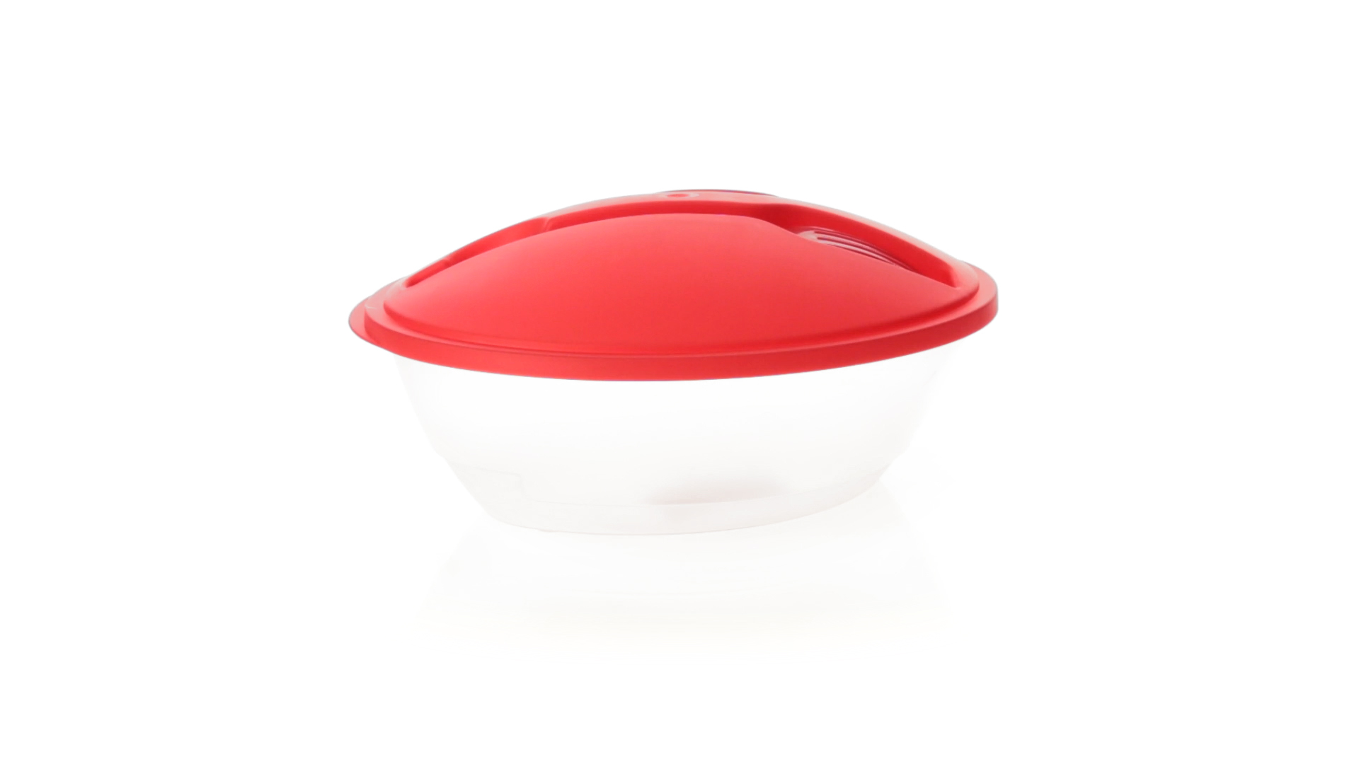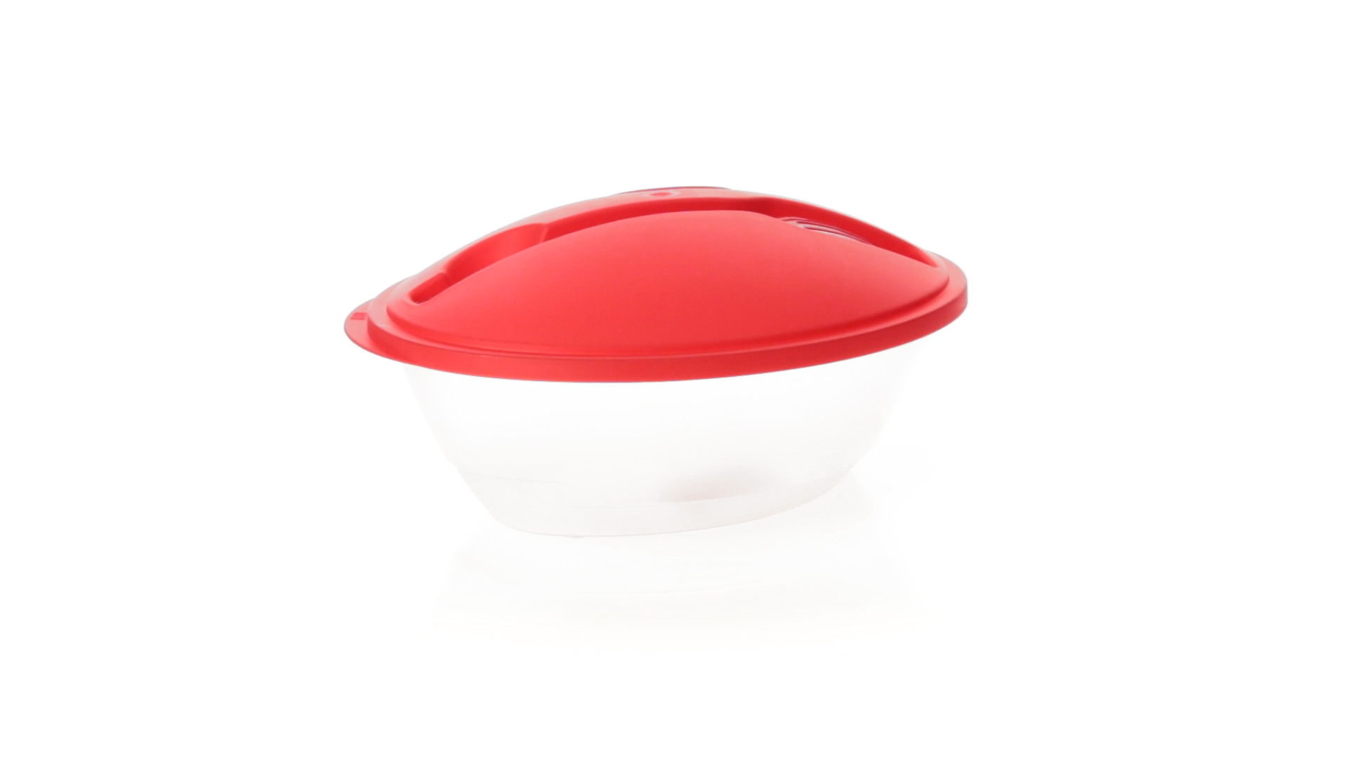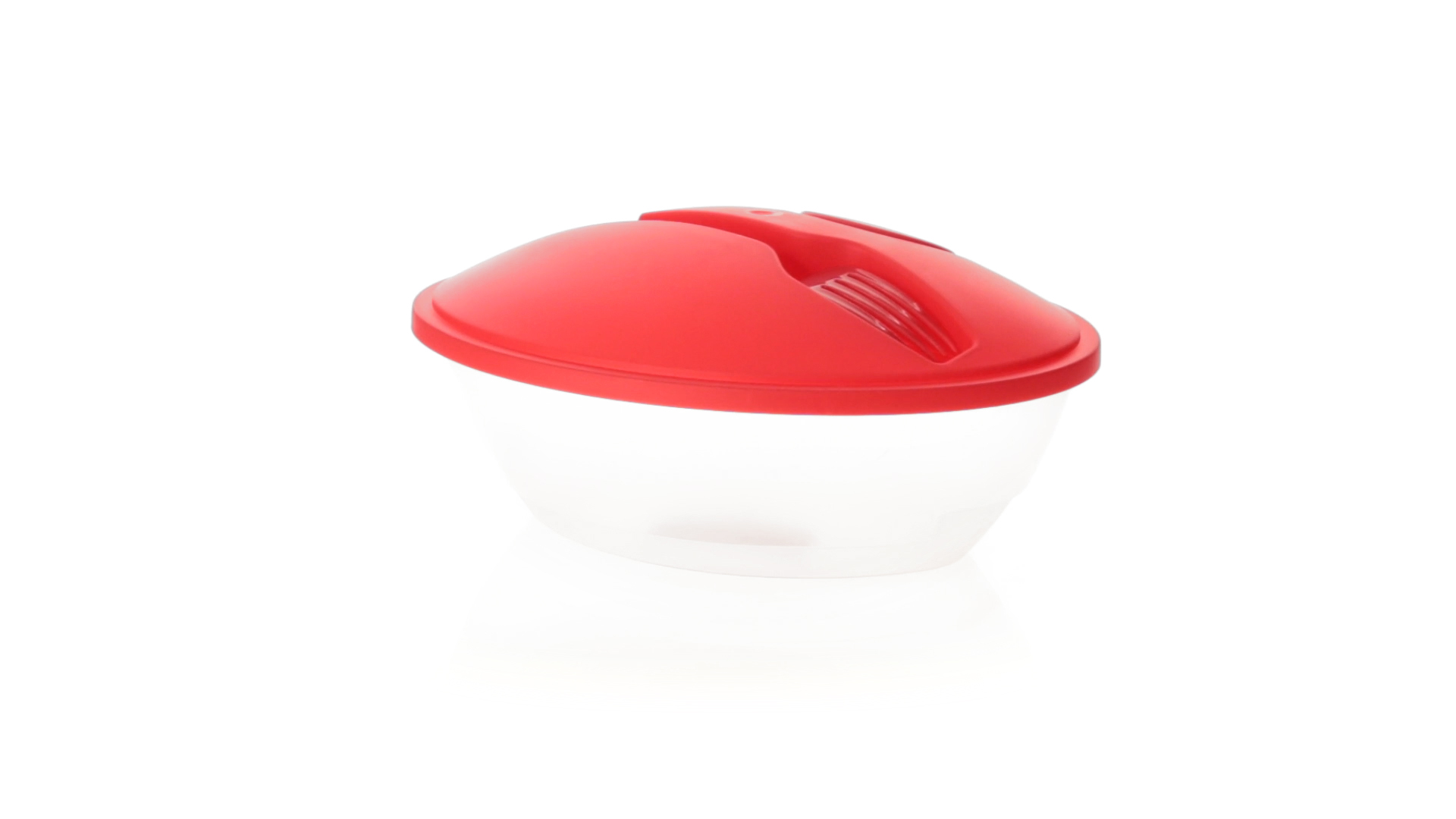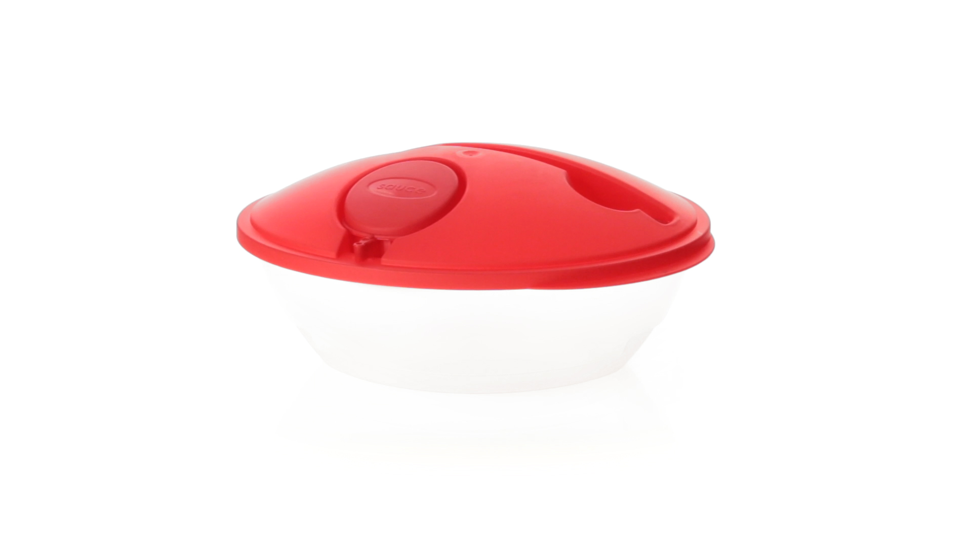 Salatschüssel mit 1200 ml Fassungsvermögen aus Polypropylen (PP). Mit transparenter Schüssel und Deckel in einer Vielzahl von Farben mit integrierter Gabel und kleinem Dressingbehälter. Spülmaschinengeeignet.