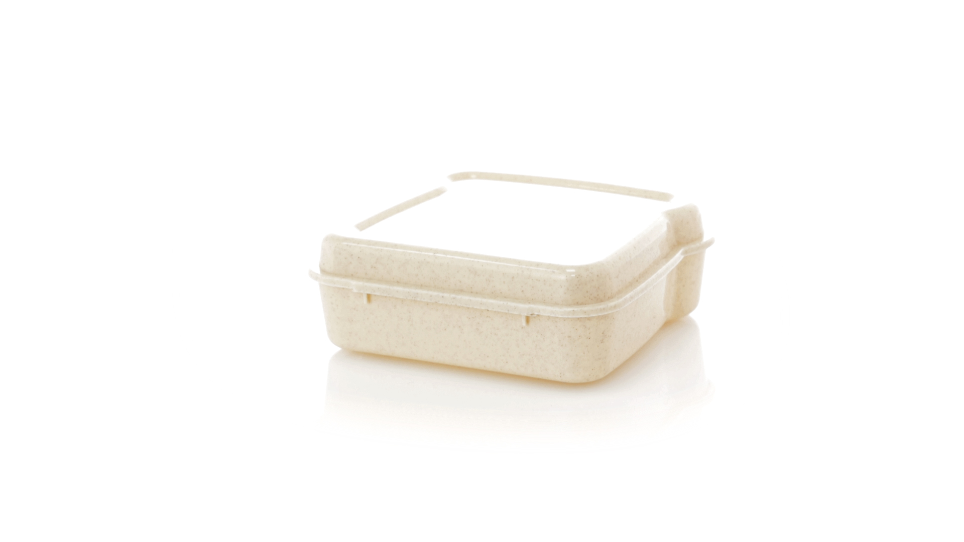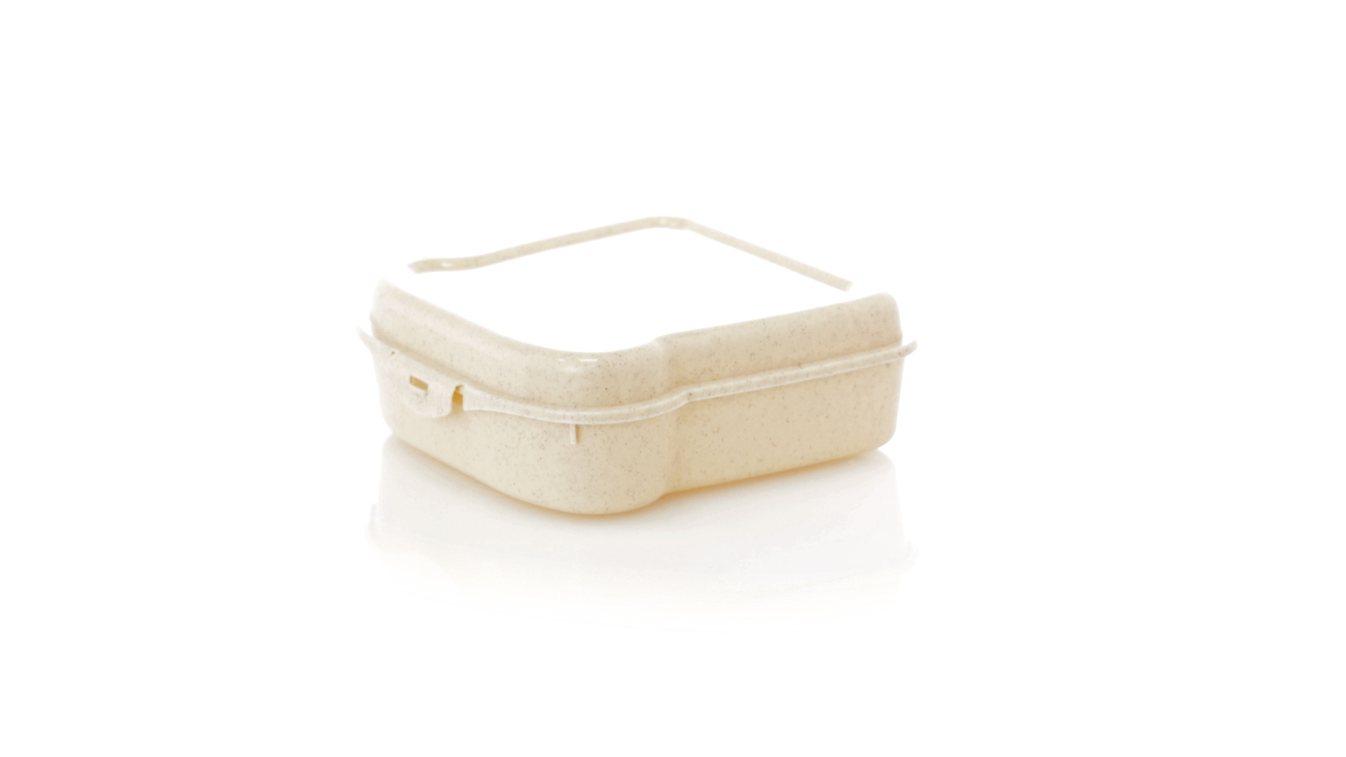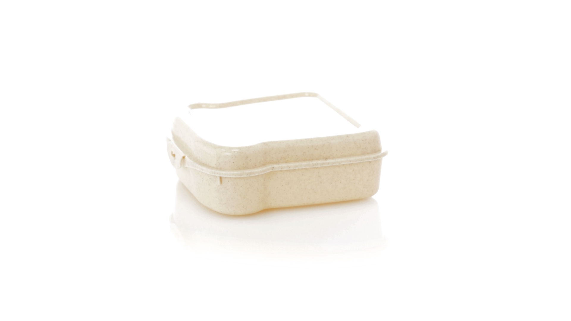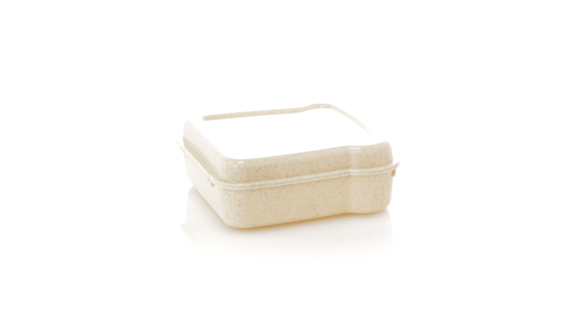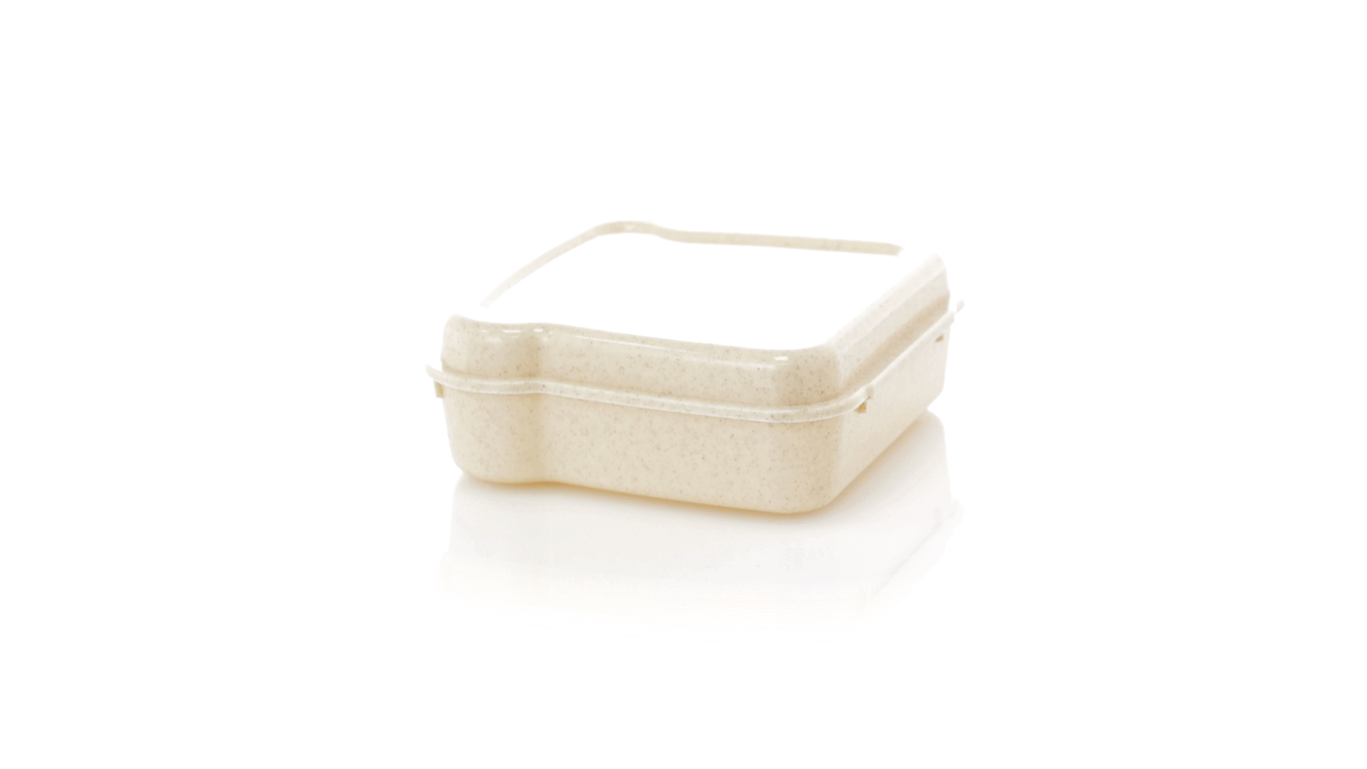 Sandwich-Lunchbox mit 450ml Fassungsvermögen in Naturfarbe. Mit Sicherheitsverschluss.