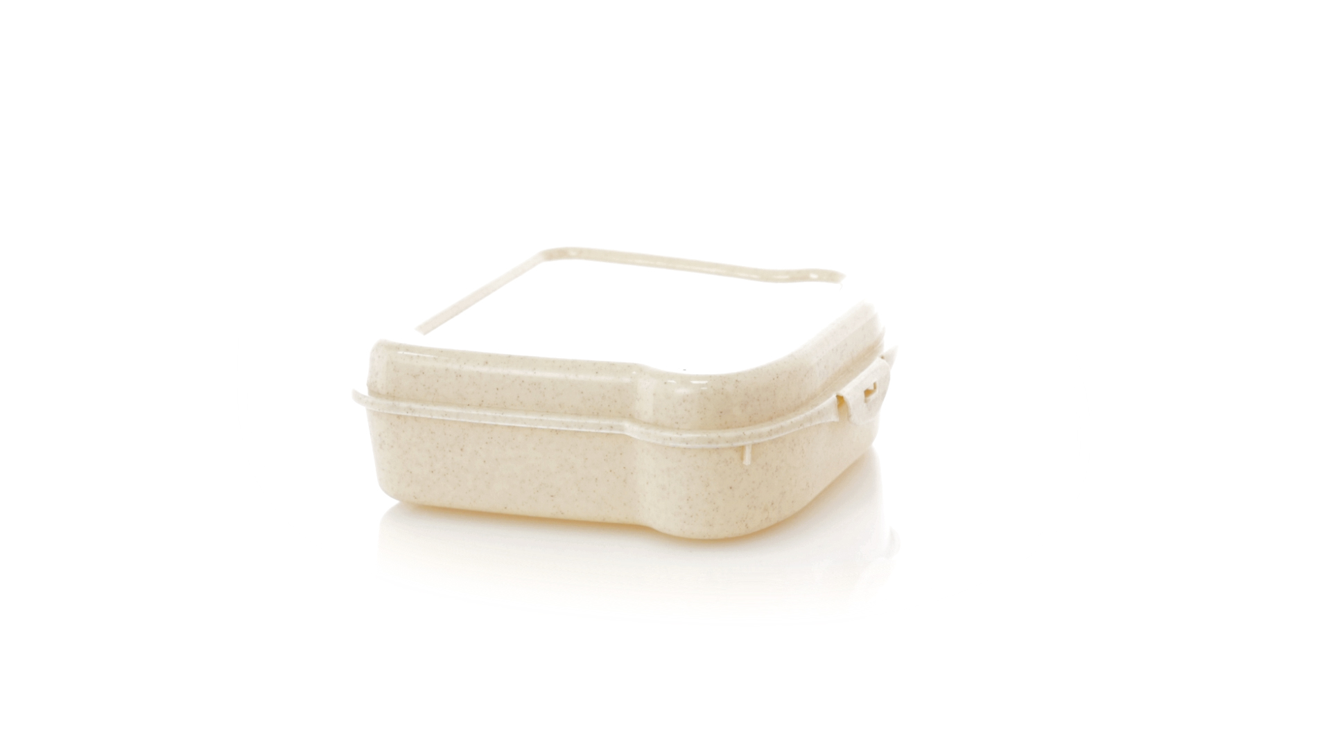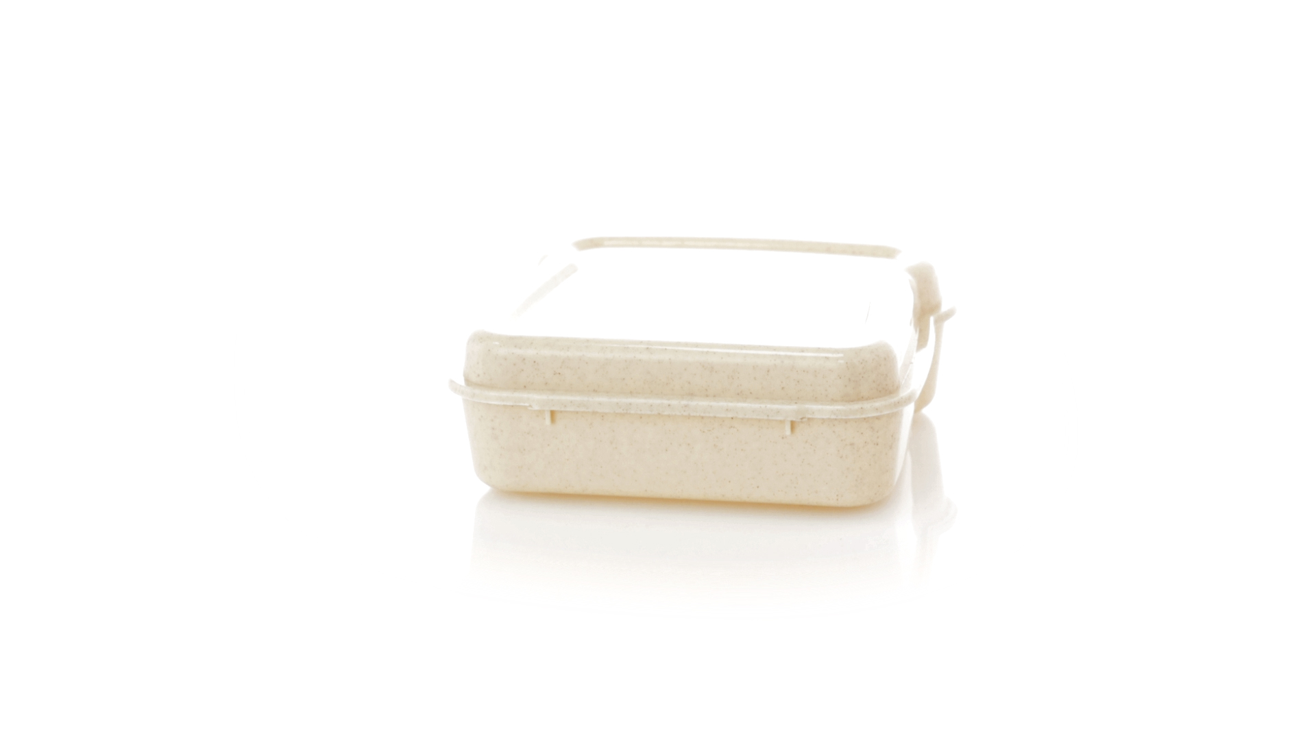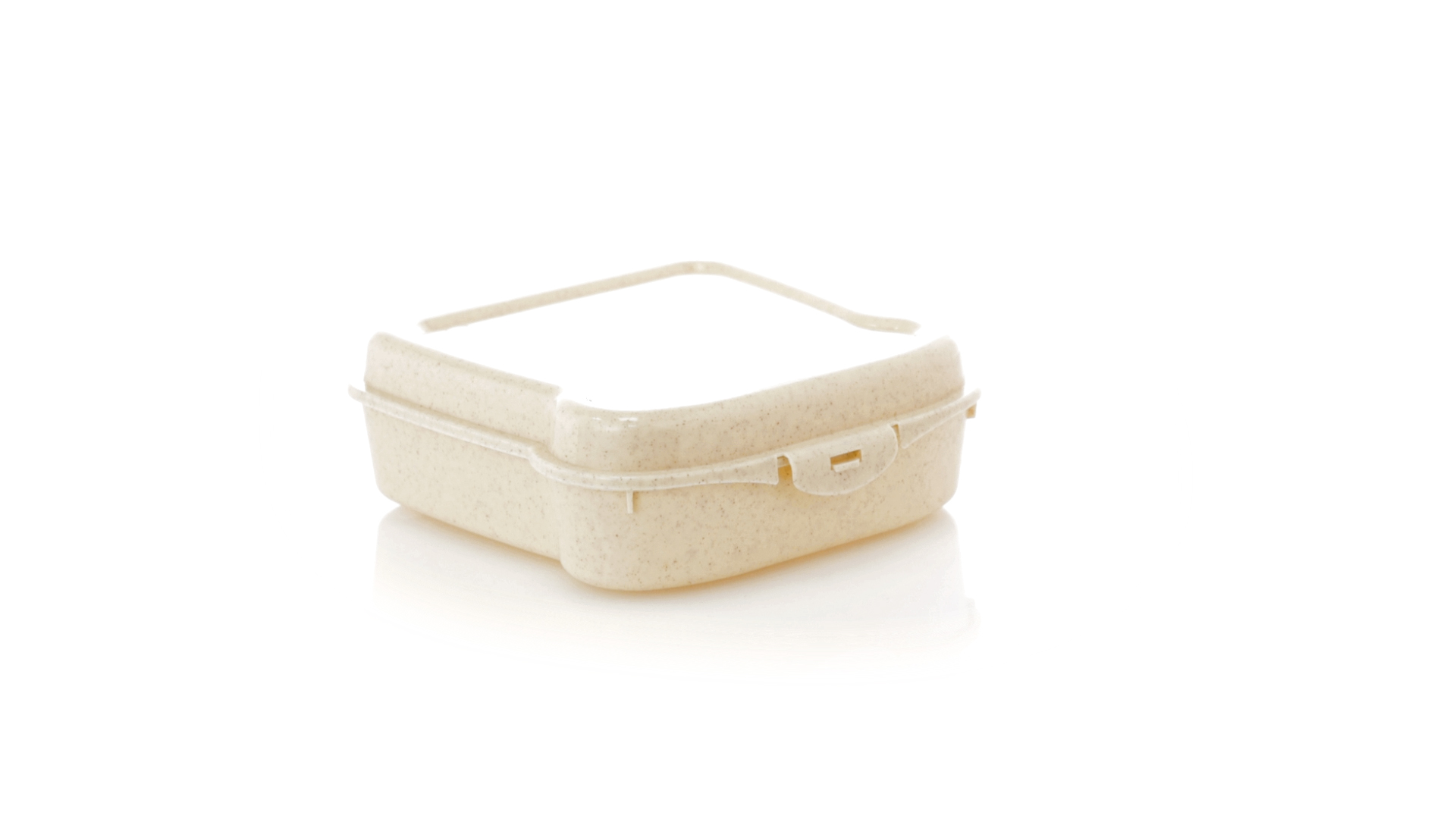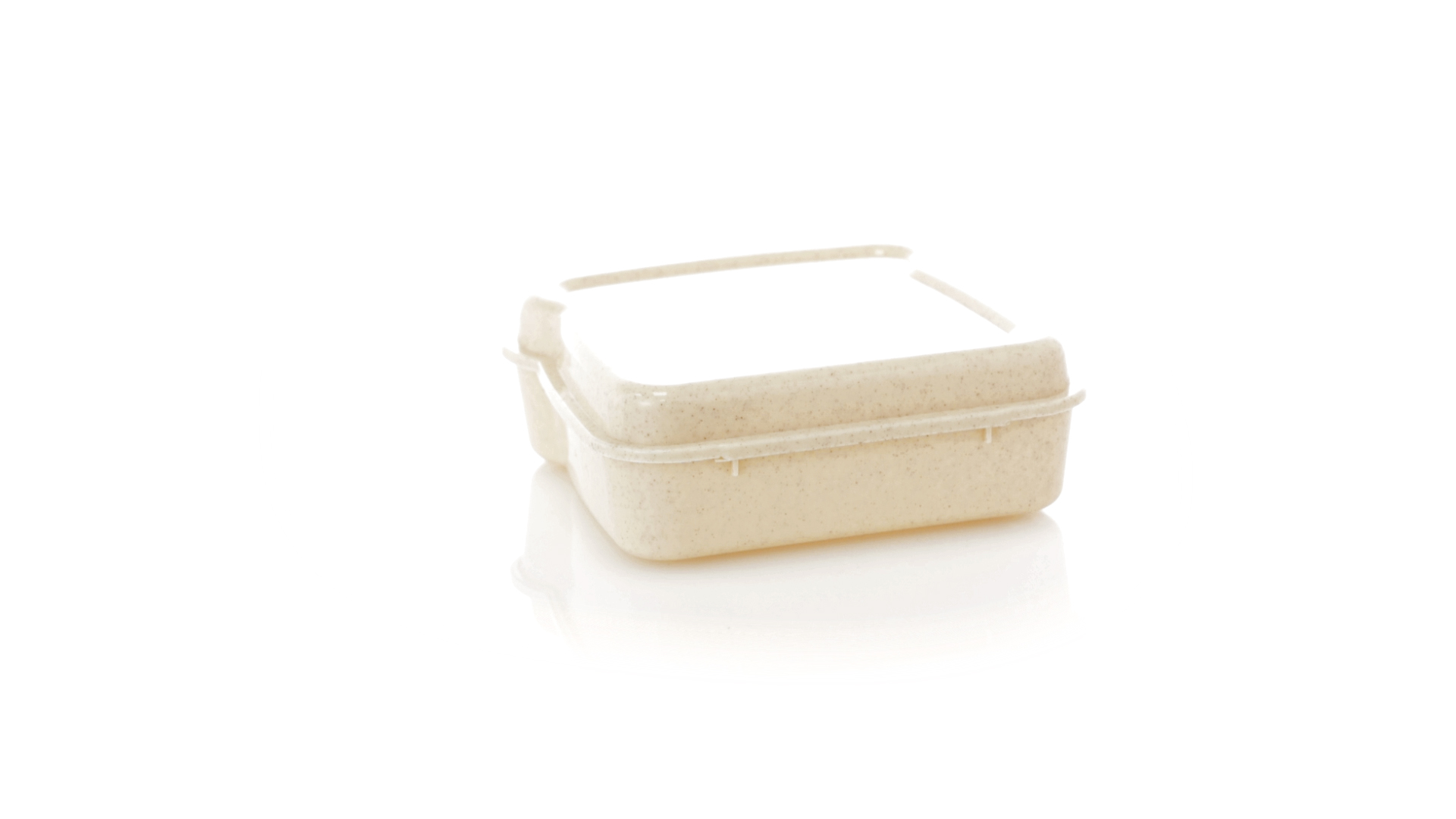 Sandwich-Lunchbox mit 450ml Fassungsvermögen in Naturfarbe. Mit Sicherheitsverschluss.