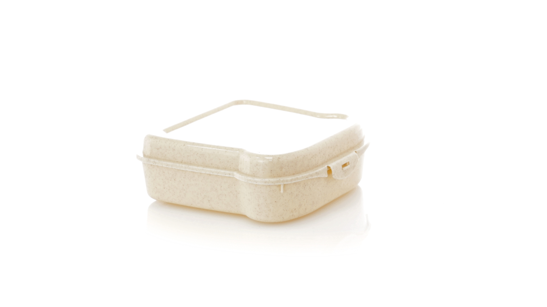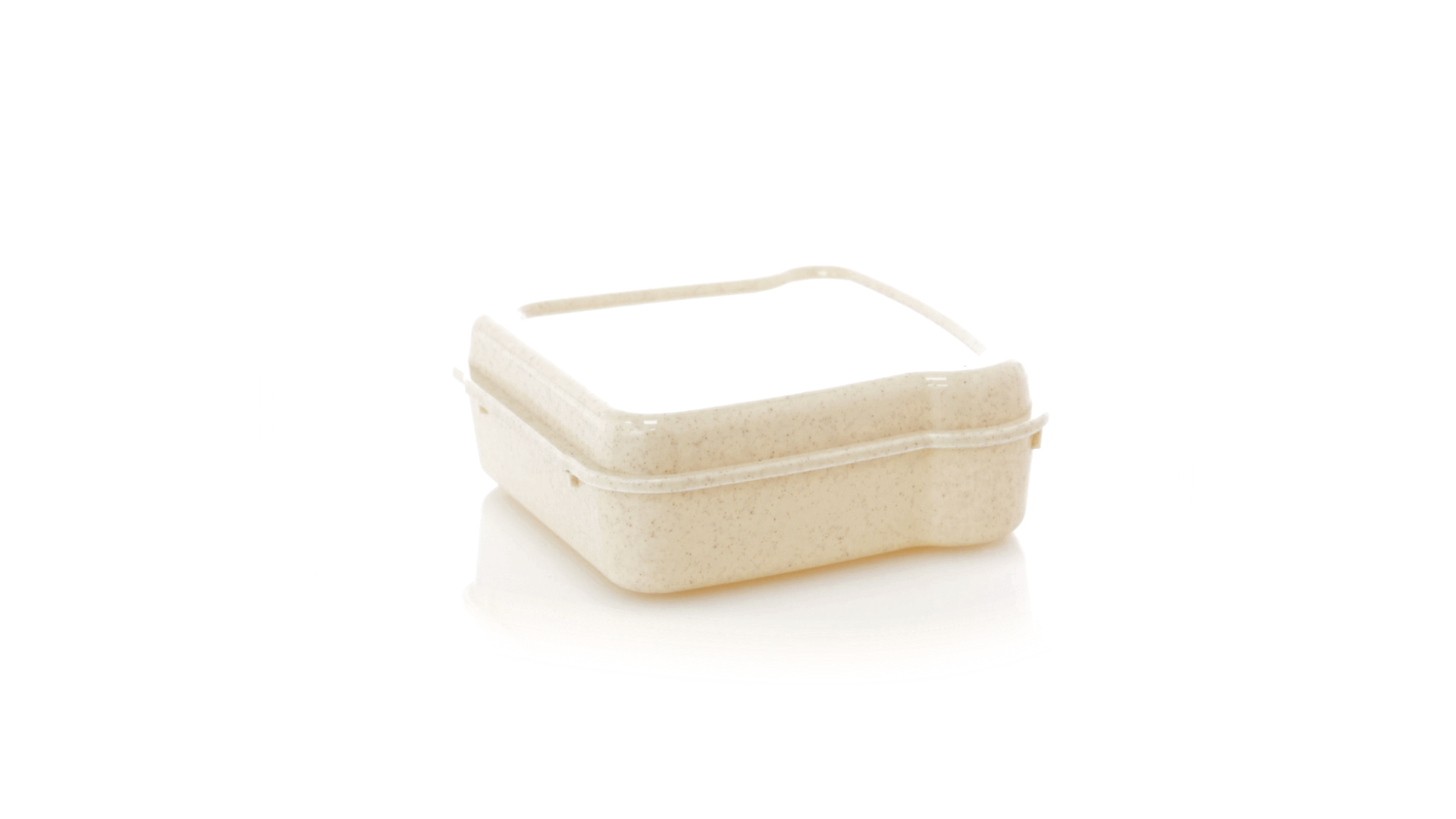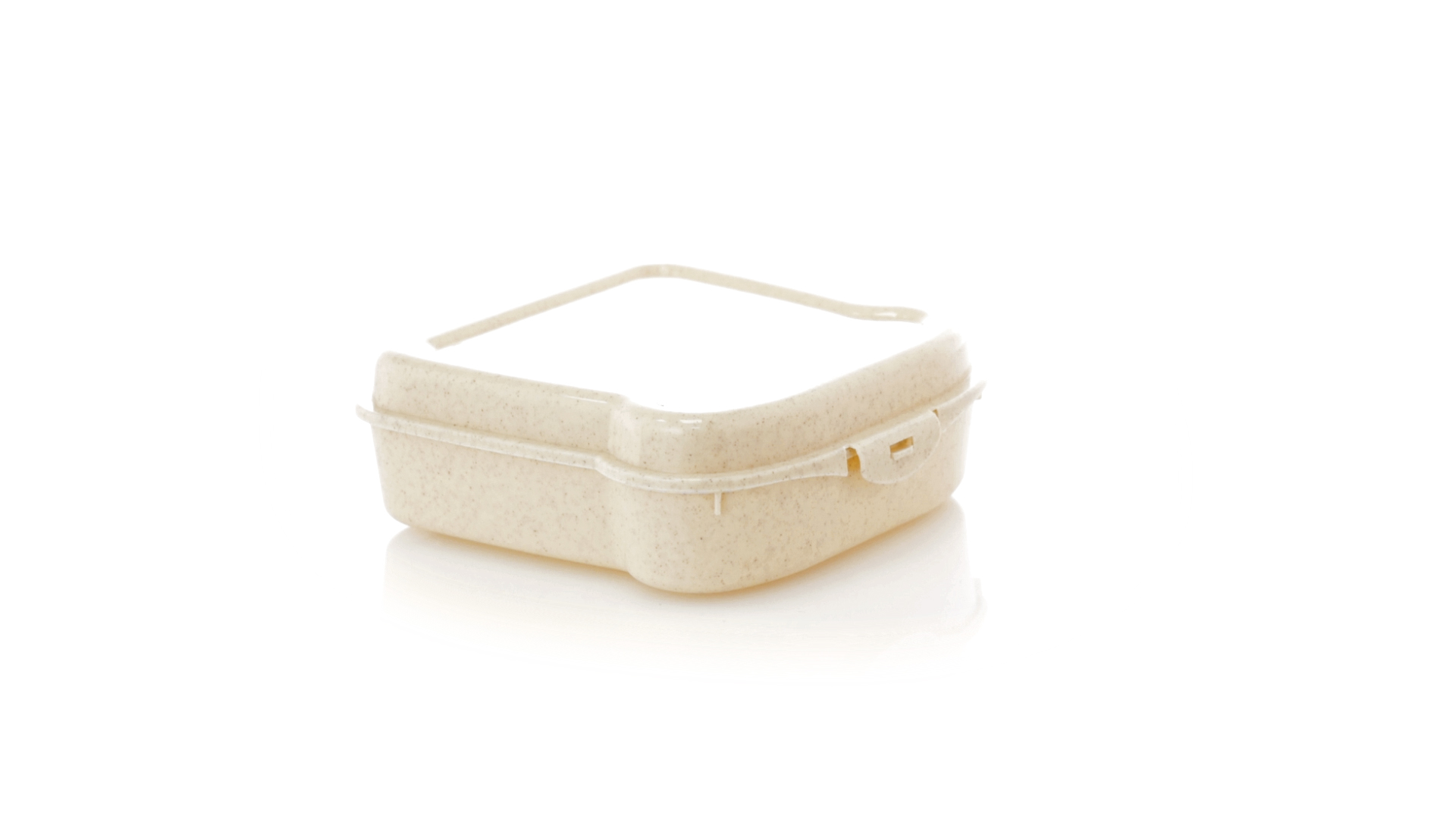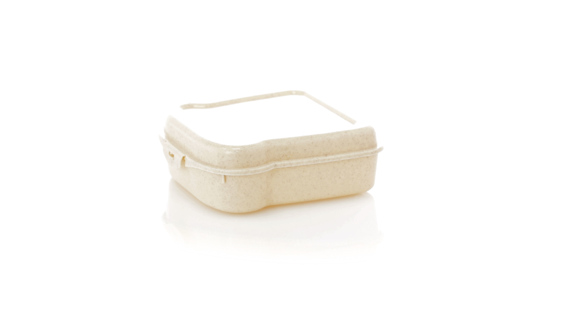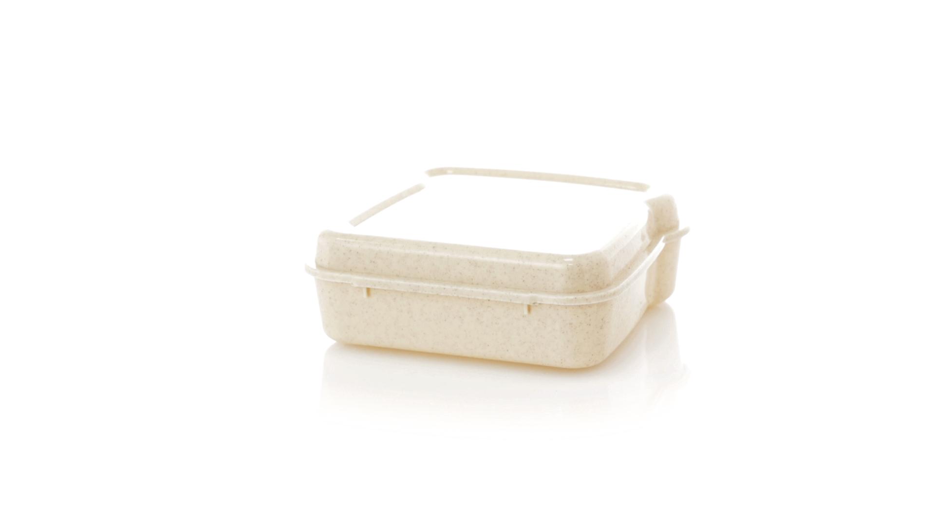 Sandwich-Lunchbox mit 450ml Fassungsvermögen in Naturfarbe. Mit Sicherheitsverschluss.