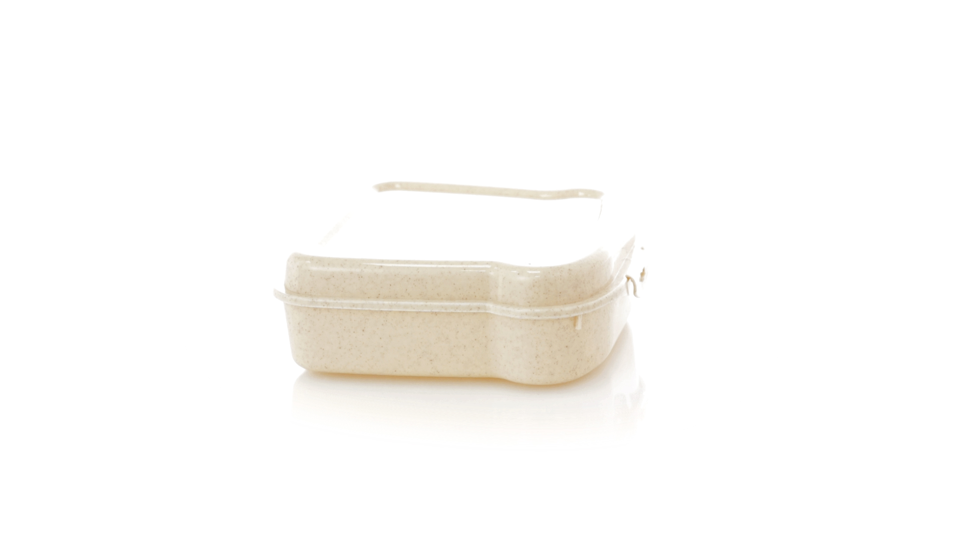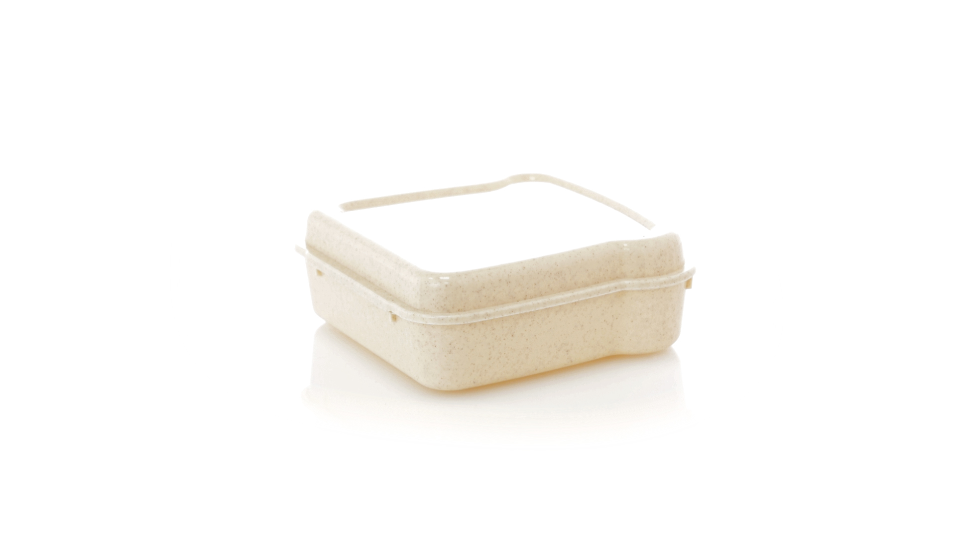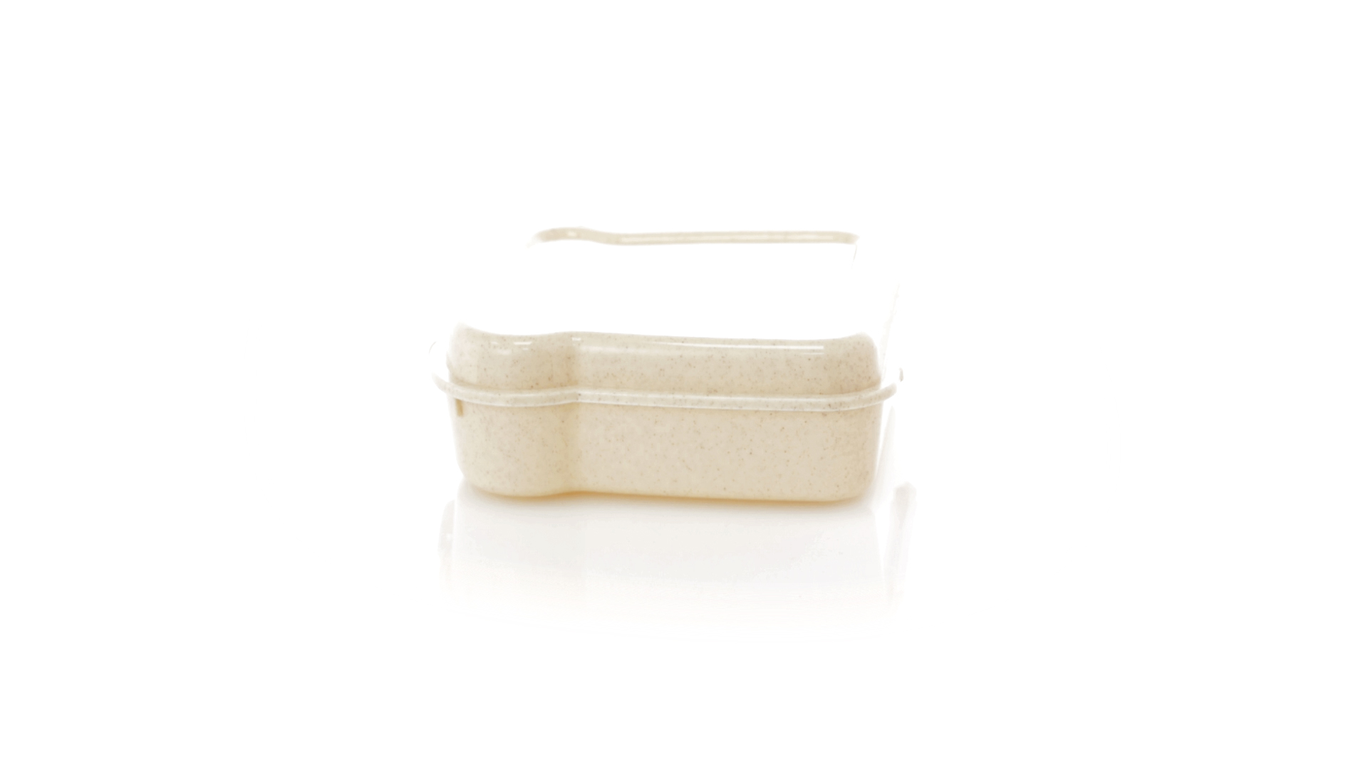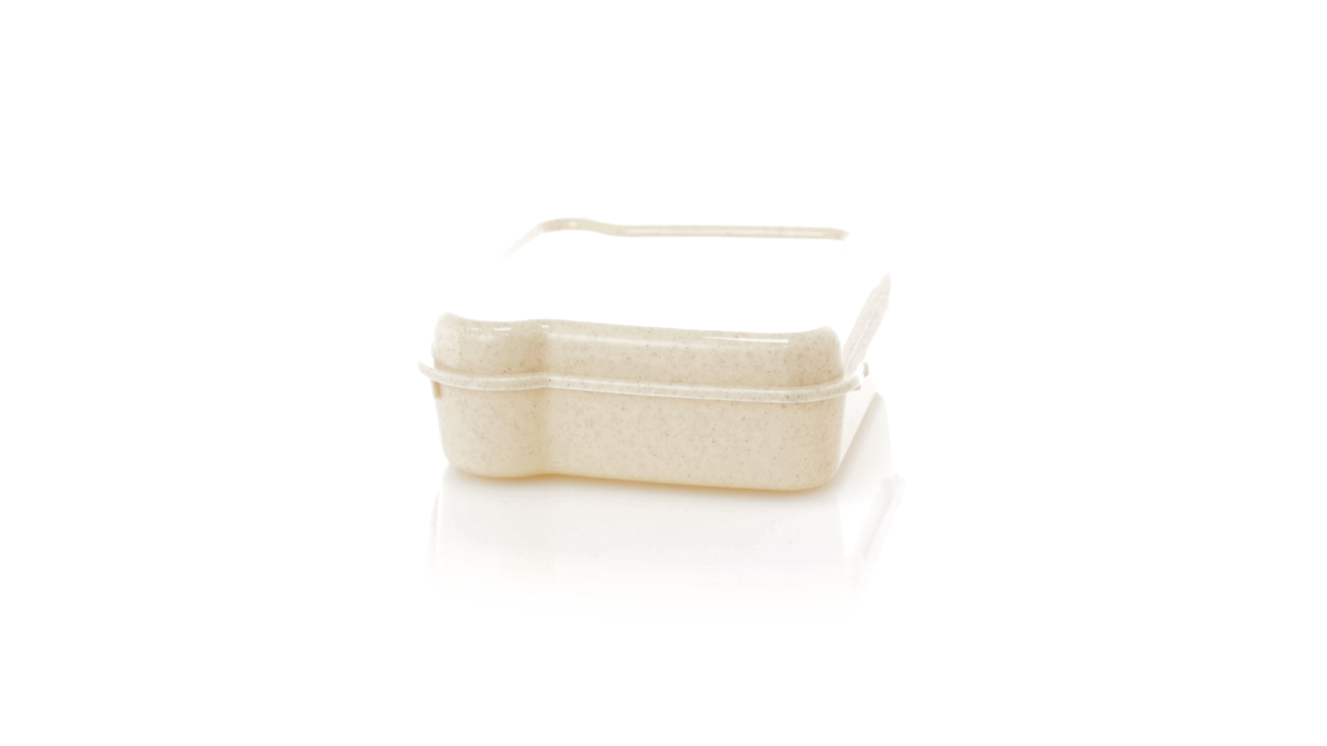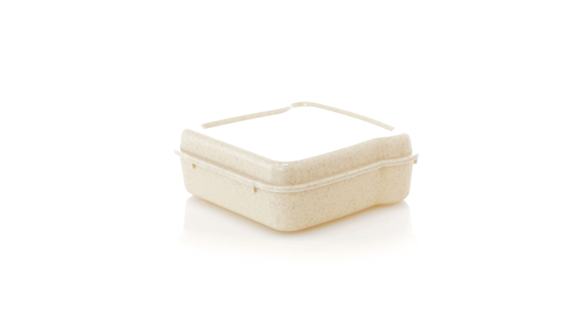 Sandwich-Lunchbox mit 450ml Fassungsvermögen in Naturfarbe. Mit Sicherheitsverschluss.