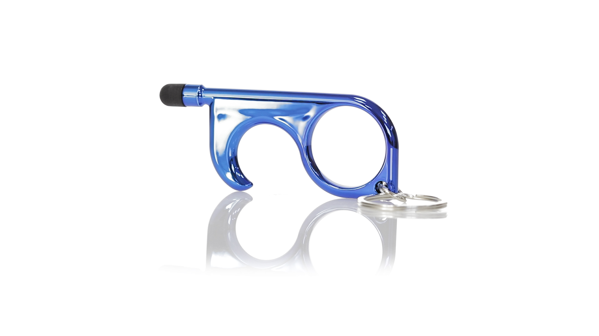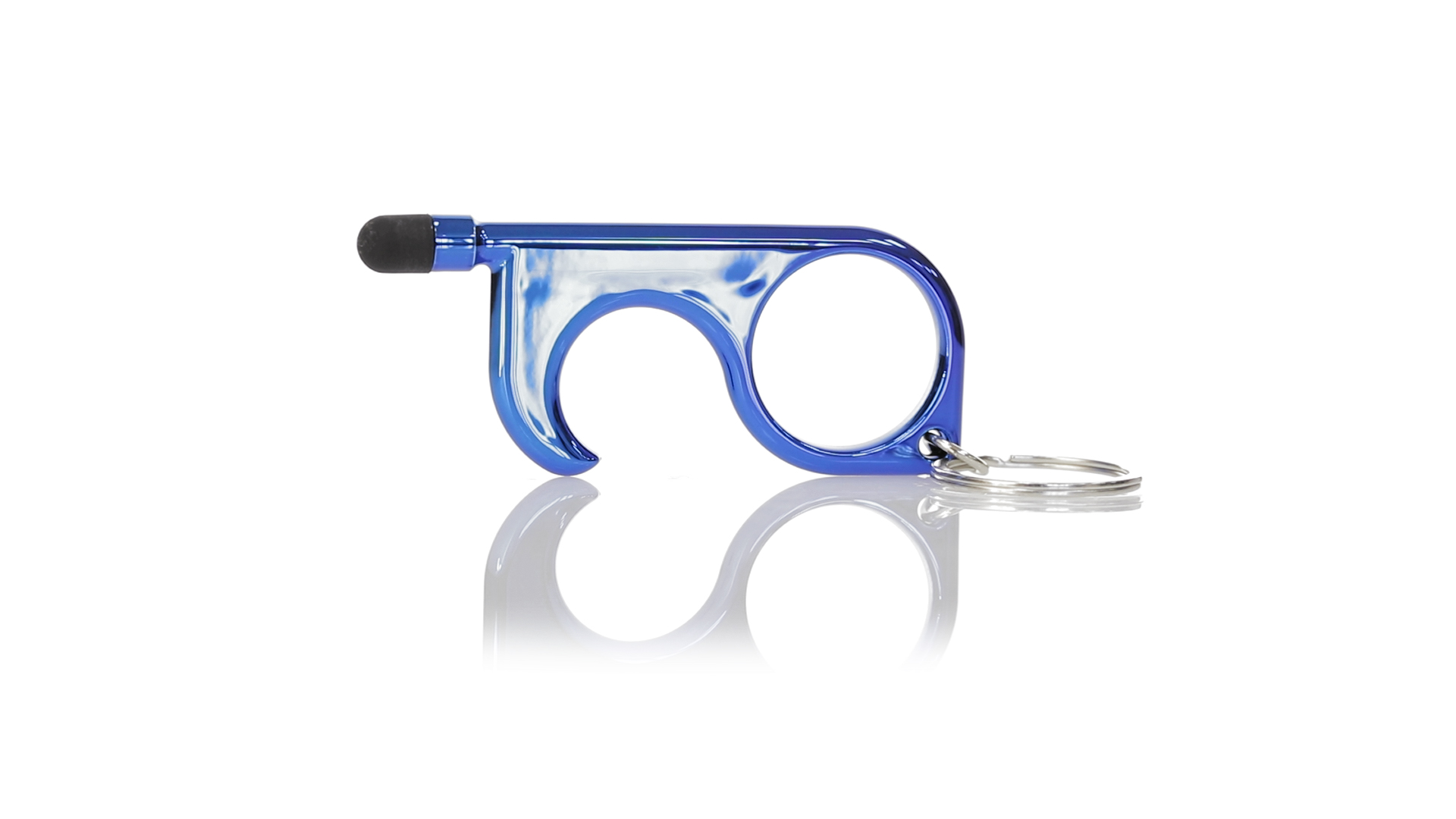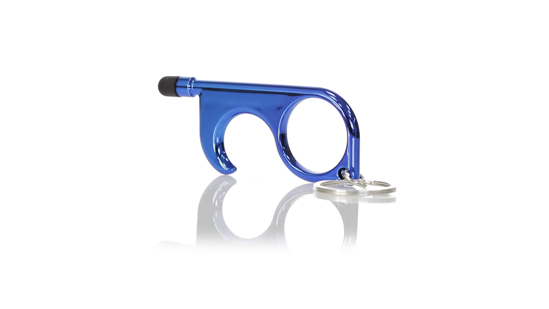 Hygienischer Anti-Kontakt-Schlüsselanhänger mit integriertem Stift und Zeiger. Hergestellt aus langlebigem ABS mit Metallic-Finish und in einer grossen Auswahl an Farben erhältlich. Speziell entwickelt, um das Berühren gewöhnlicher Oberflächen mit den Händen zu vermeiden (Türgriffe, Schalter, öffentliche Wasserhähne, Geldautomaten...). Mit einer bequemen Fingerstanzung und in einer individuellen Designtasche präsentiert. Empfohlen für Tampondruck.