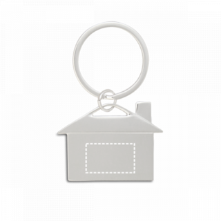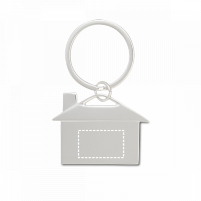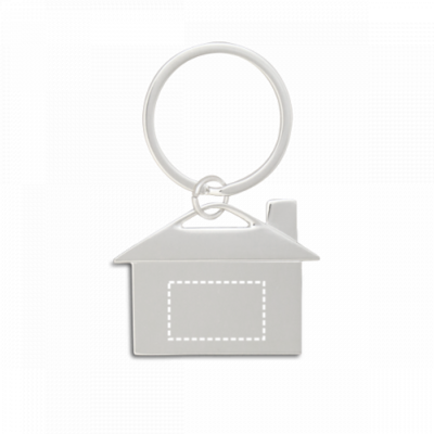 Schlüsselanhänger aus Metall (Form: Haus). Lieferung in einer hochwertigen Geschenkbox aus Kraftpapier. Ring: ø 35 mm | Produkt: 36 x 49 x 3 mm | Anschluss: ø 10 mm | Gesamt: 70 x 36 x 3 mm | Kasten: 130 x 57 x 14 mm