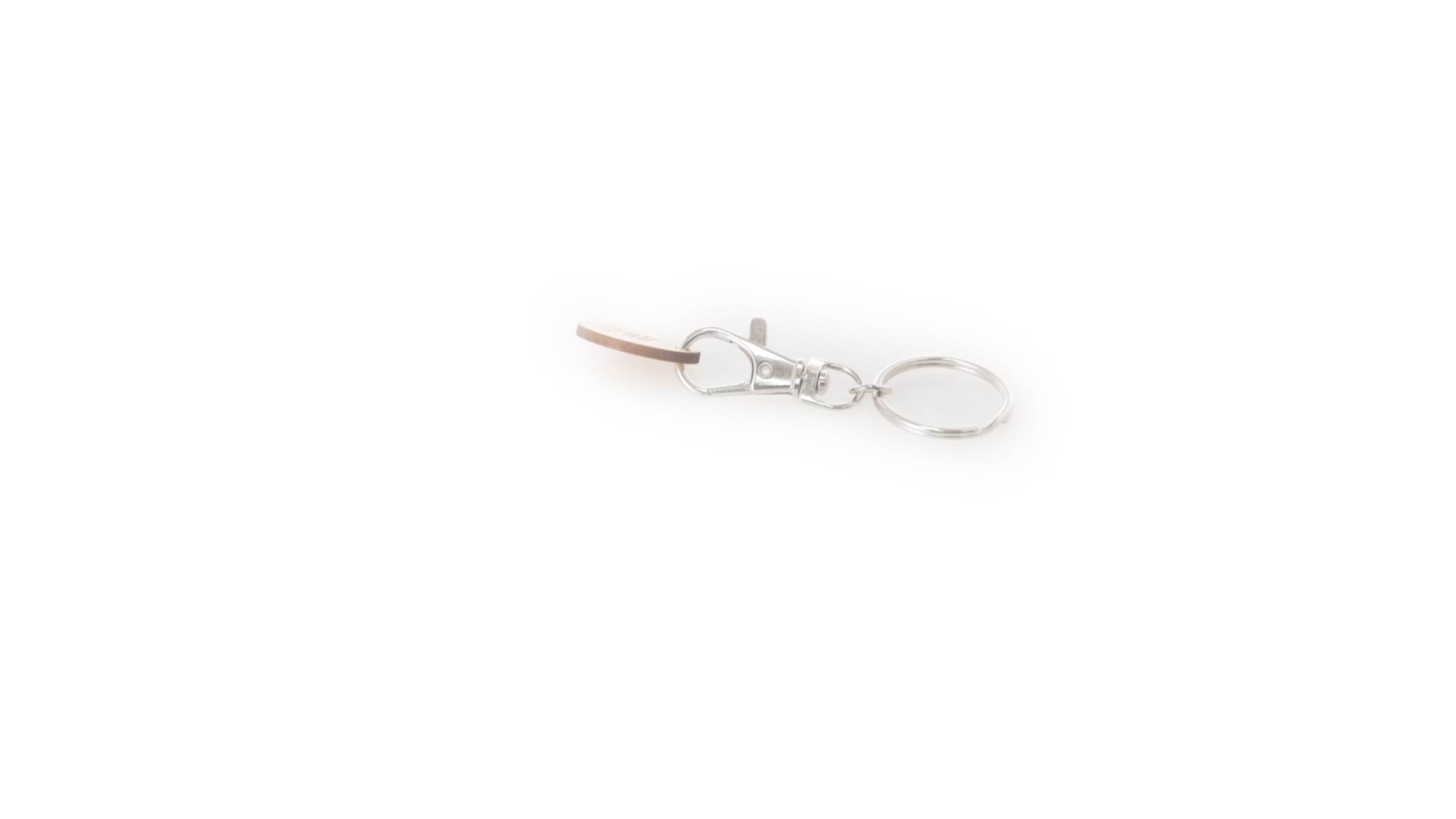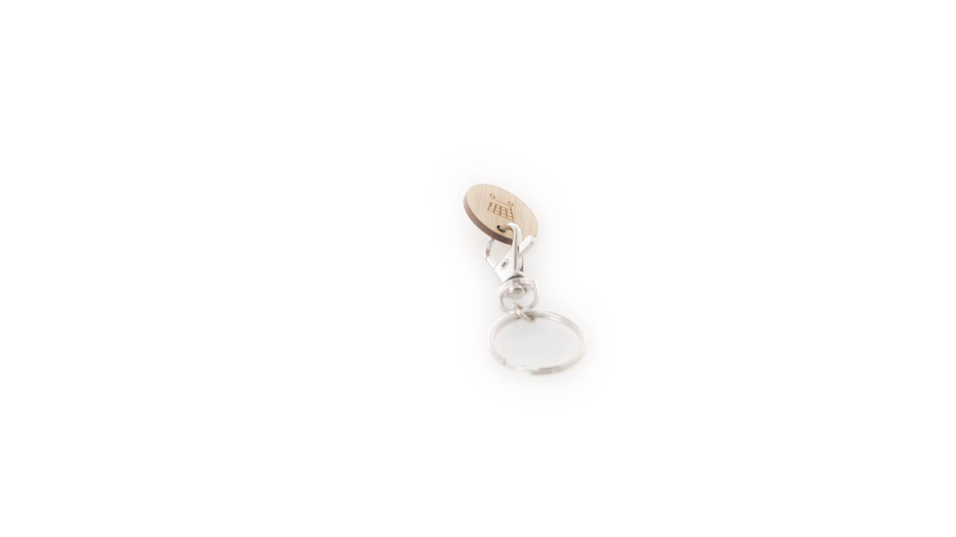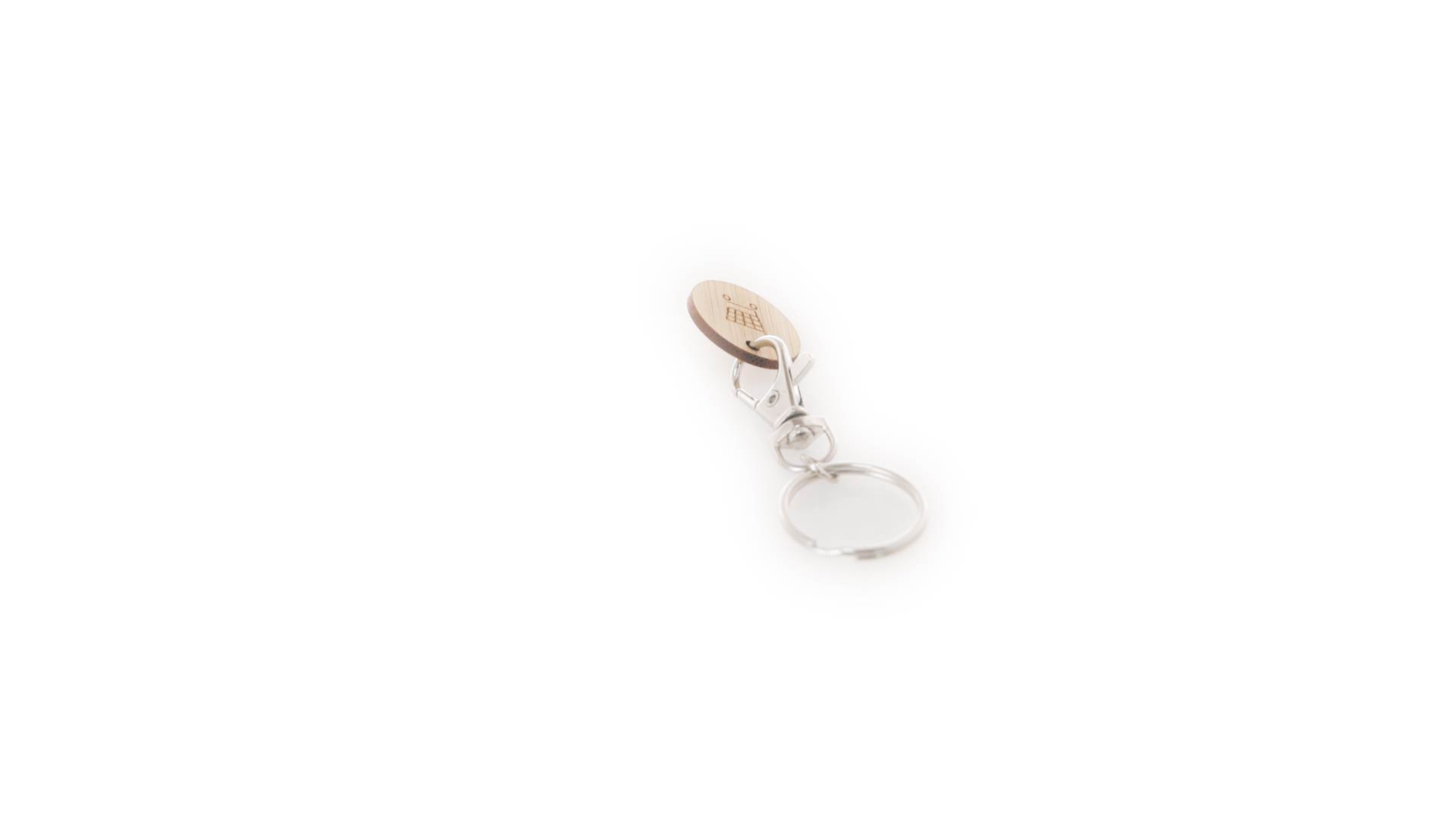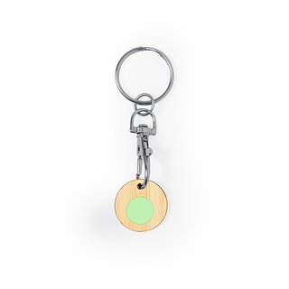 Münz-Schlüsselanhänger aus Bambus. Mit Drehkarabinerverschluss und Schlüsselring. Inklusive einer Münze aus Bambus mit eingraviertem Logo eines Einkaufswagens. Materialien wie Bambus fördern die Verwendung natürlicher Rohstoffe und reduzieren so den Schadstoffausstoss.