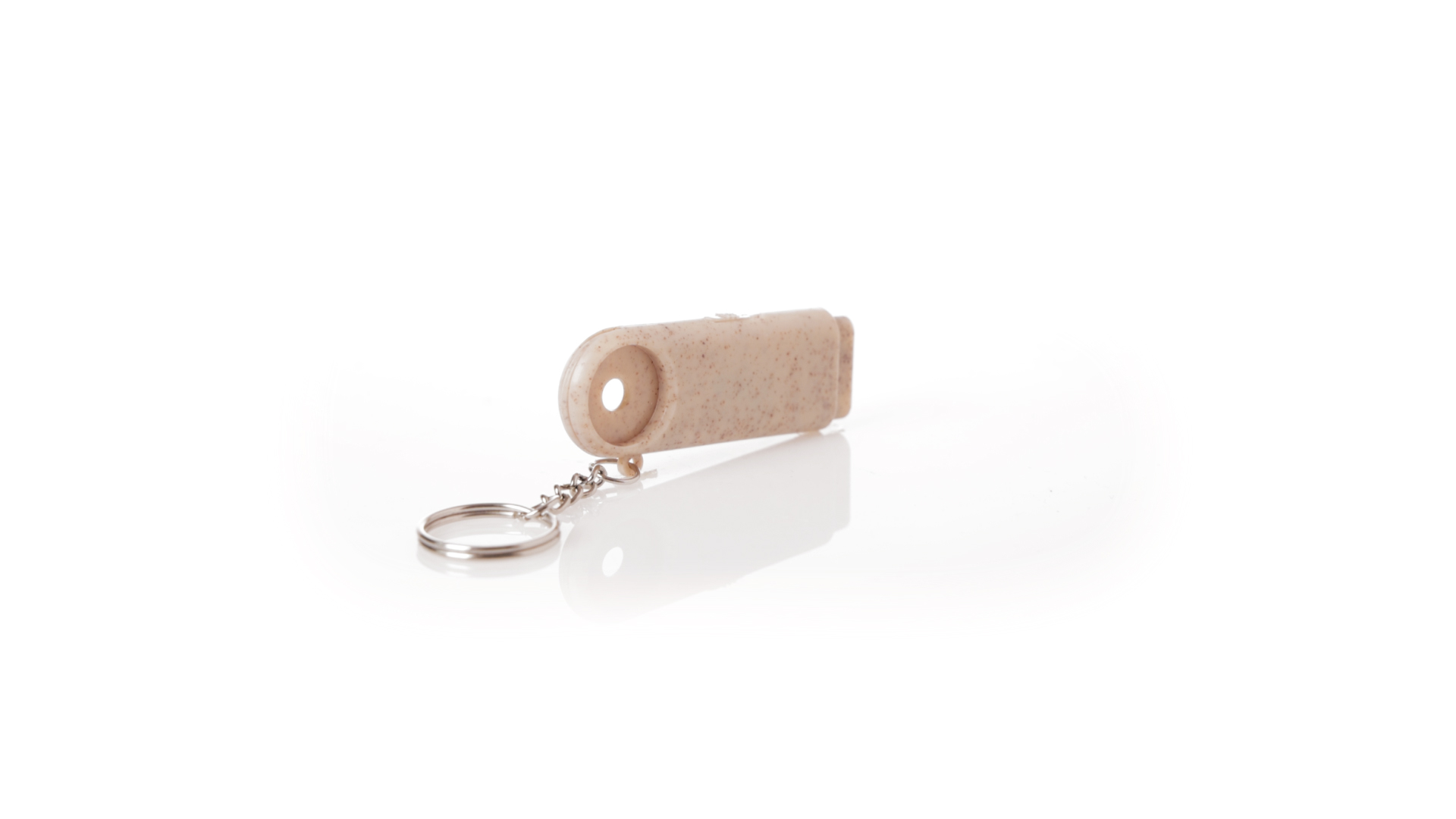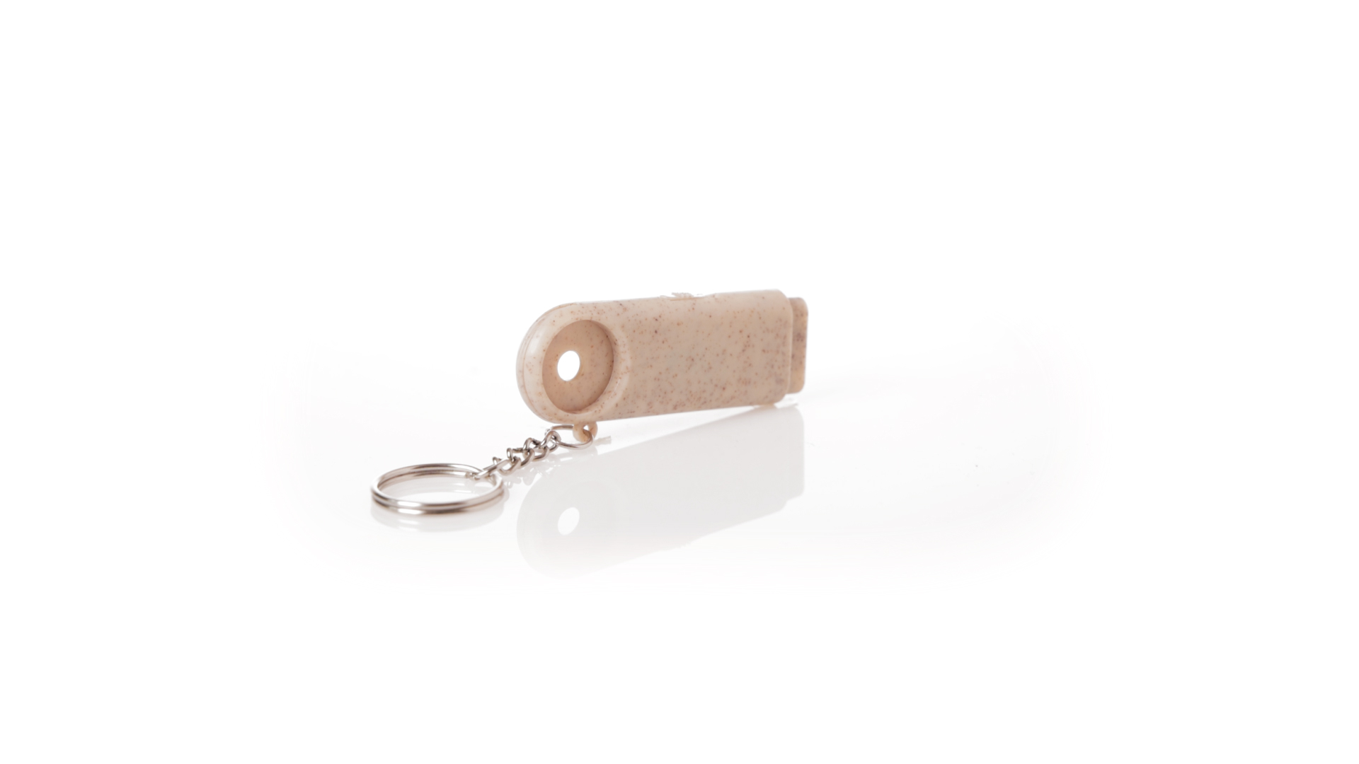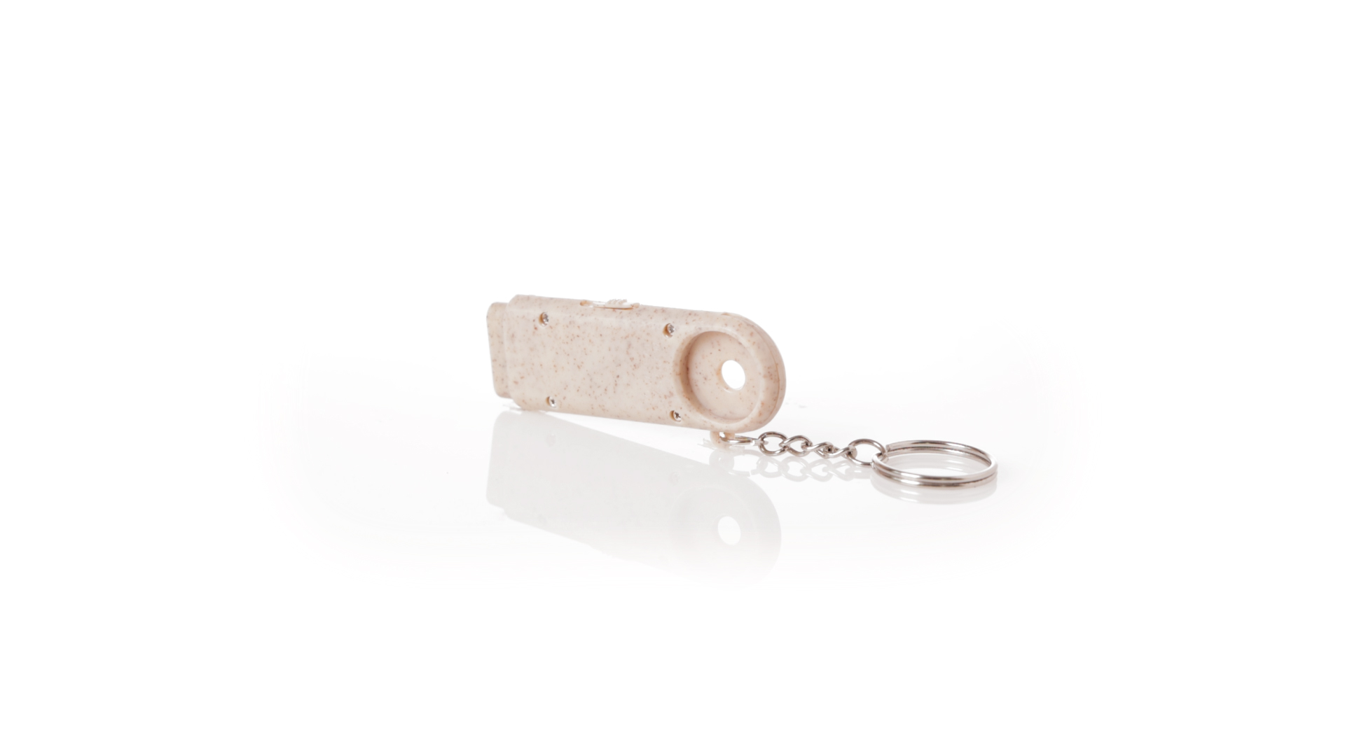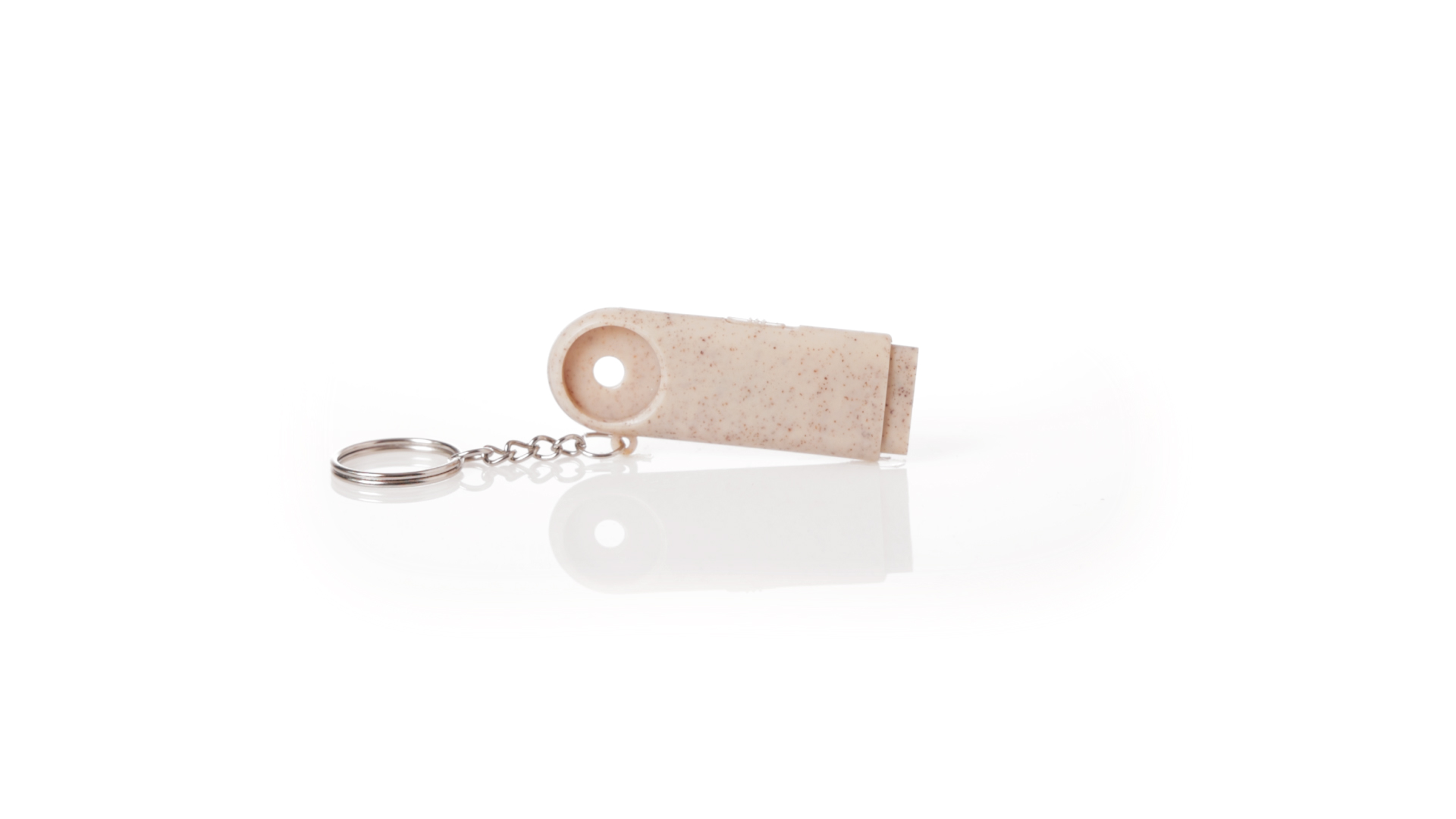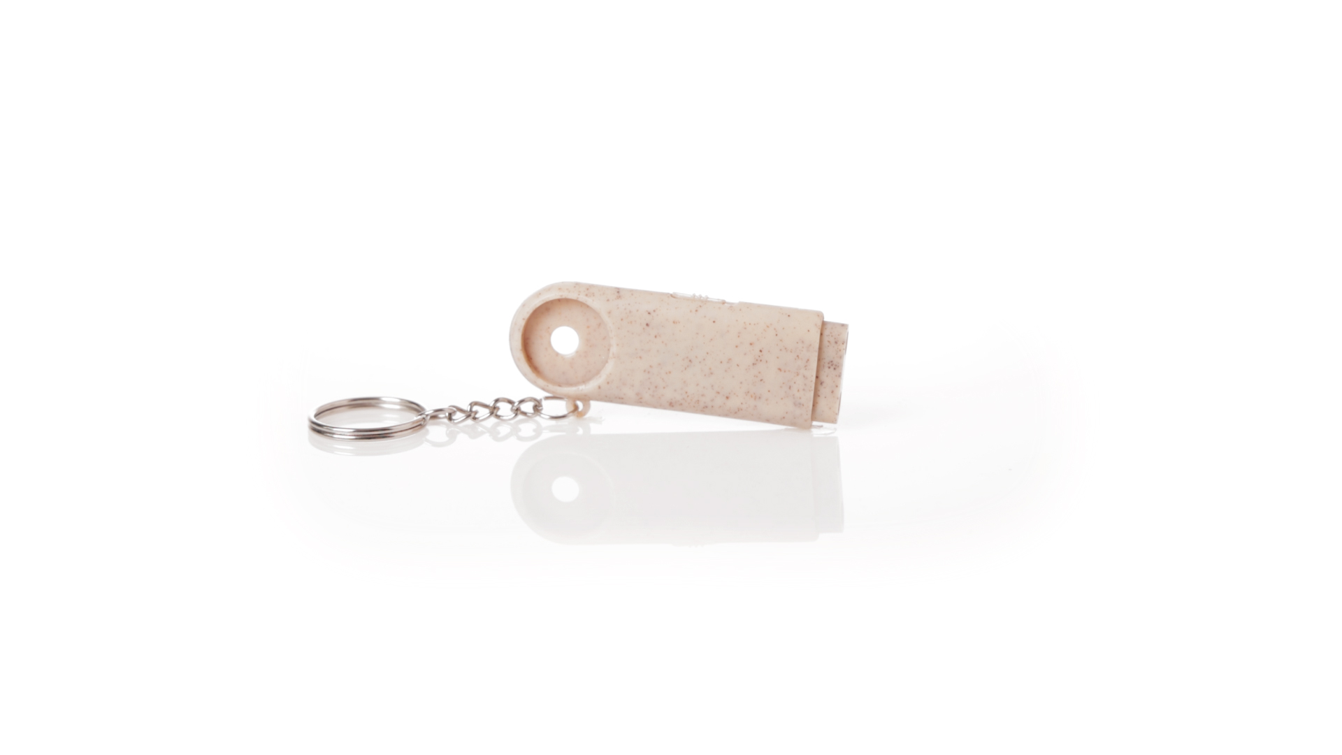 Münz-Schlüsselanhänger mit integrierter Taschenlampe, aus Weizenrohr und ABS. Mit praktischer Münze, 2 LEDs und Batteriebetrieb (Knopfbatterien enthalten). Mit Weizenstroh-Logo und in einer individuellen, recycelten Tasche.Hergestellt aus pflanzlichen Elementen, um die Verwendung natürlicher Rohstoffe zu fördern und die Schadstoffemissionen zu reduzieren.