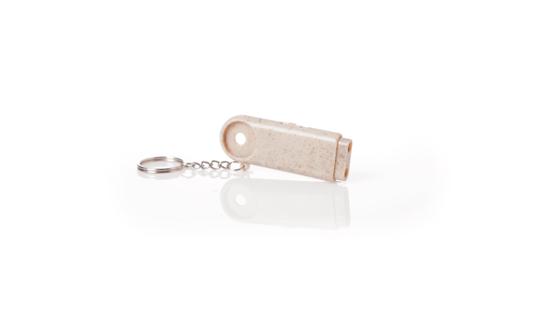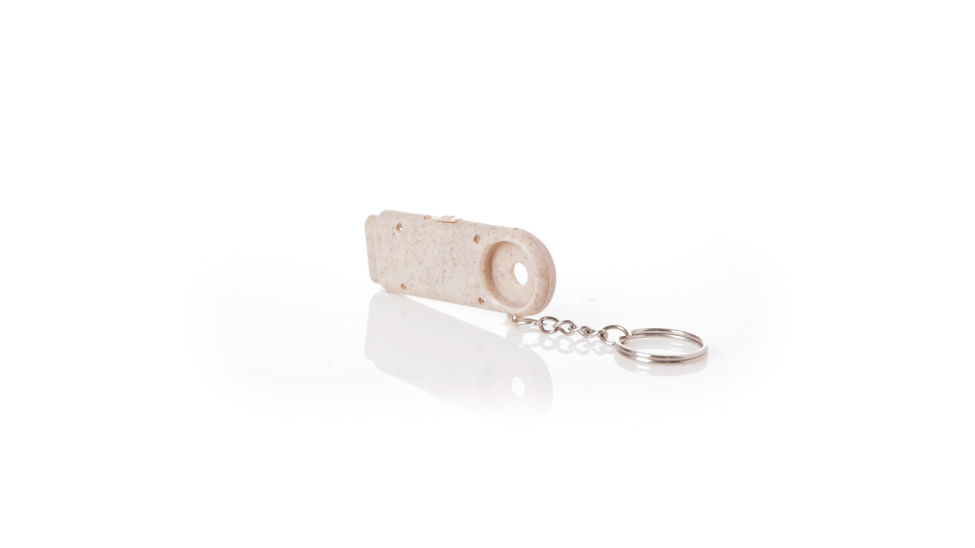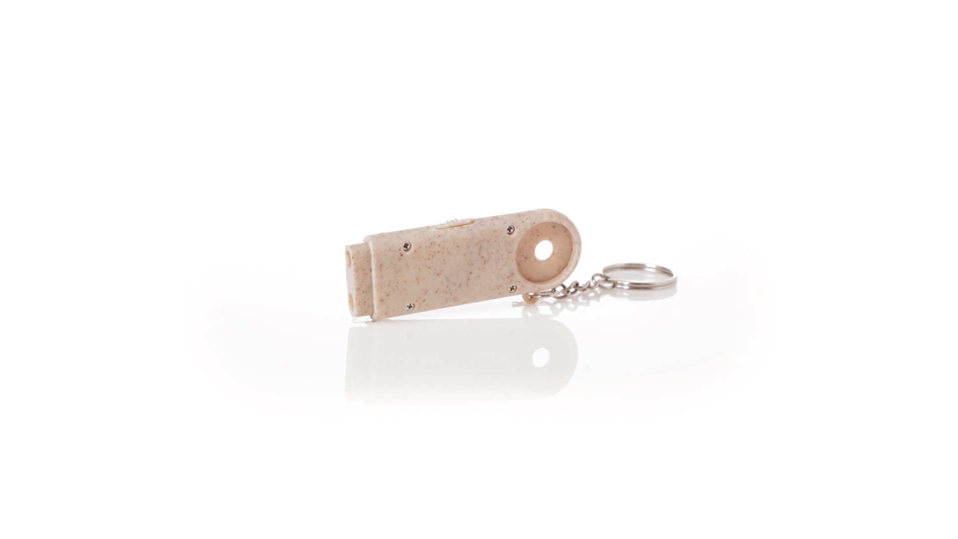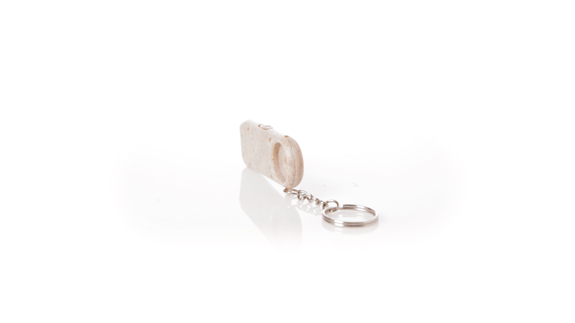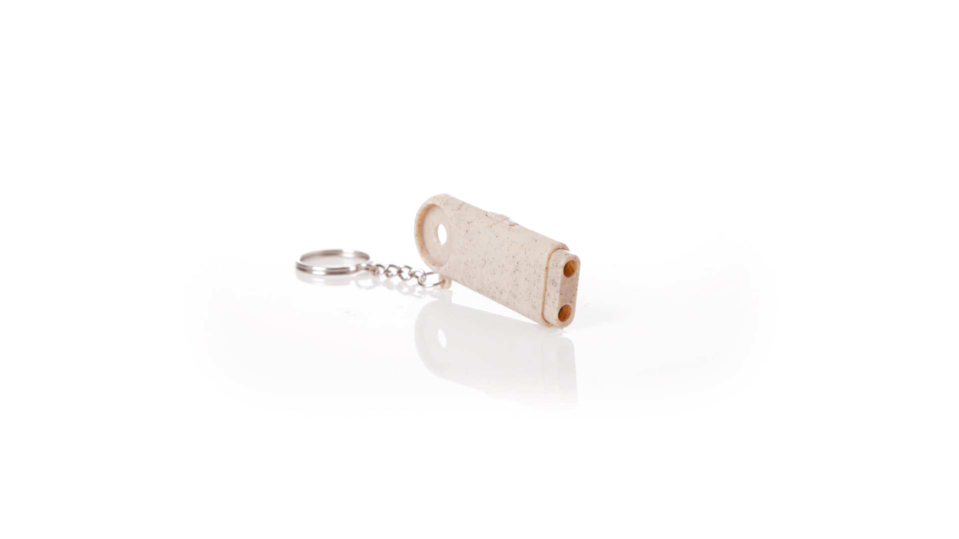 Münz-Schlüsselanhänger mit integrierter Taschenlampe, aus Weizenrohr und ABS. Mit praktischer Münze, 2 LEDs und Batteriebetrieb (Knopfbatterien enthalten). Mit Weizenstroh-Logo und in einer individuellen, recycelten Tasche.Hergestellt aus pflanzlichen Elementen, um die Verwendung natürlicher Rohstoffe zu fördern und die Schadstoffemissionen zu reduzieren.