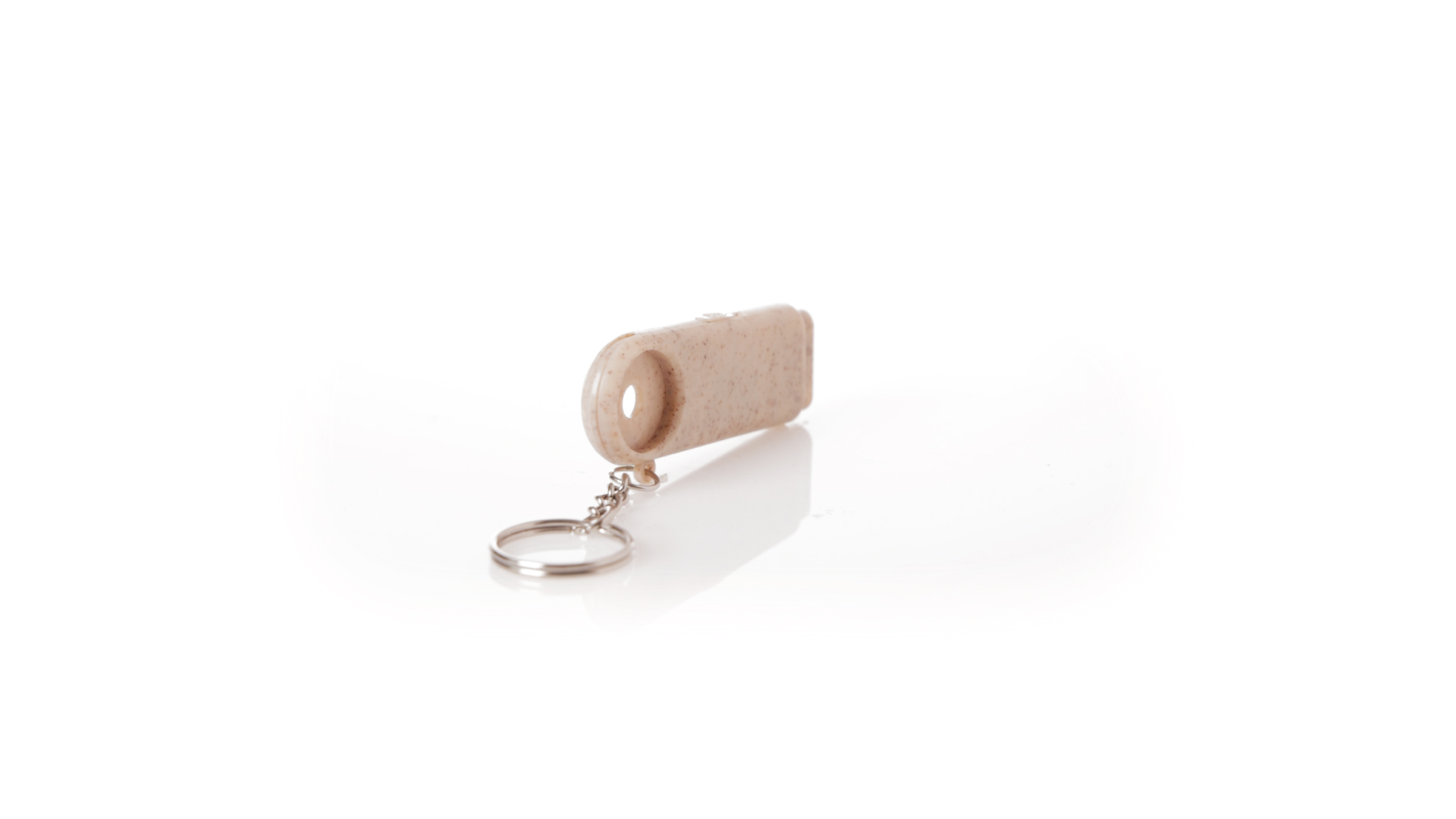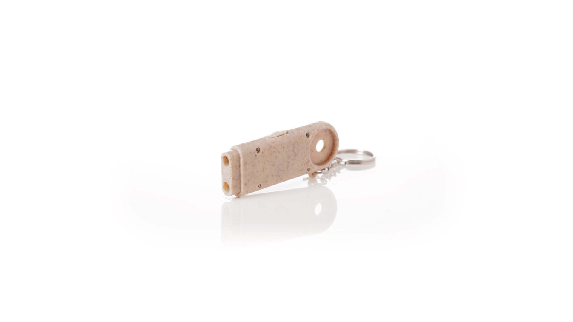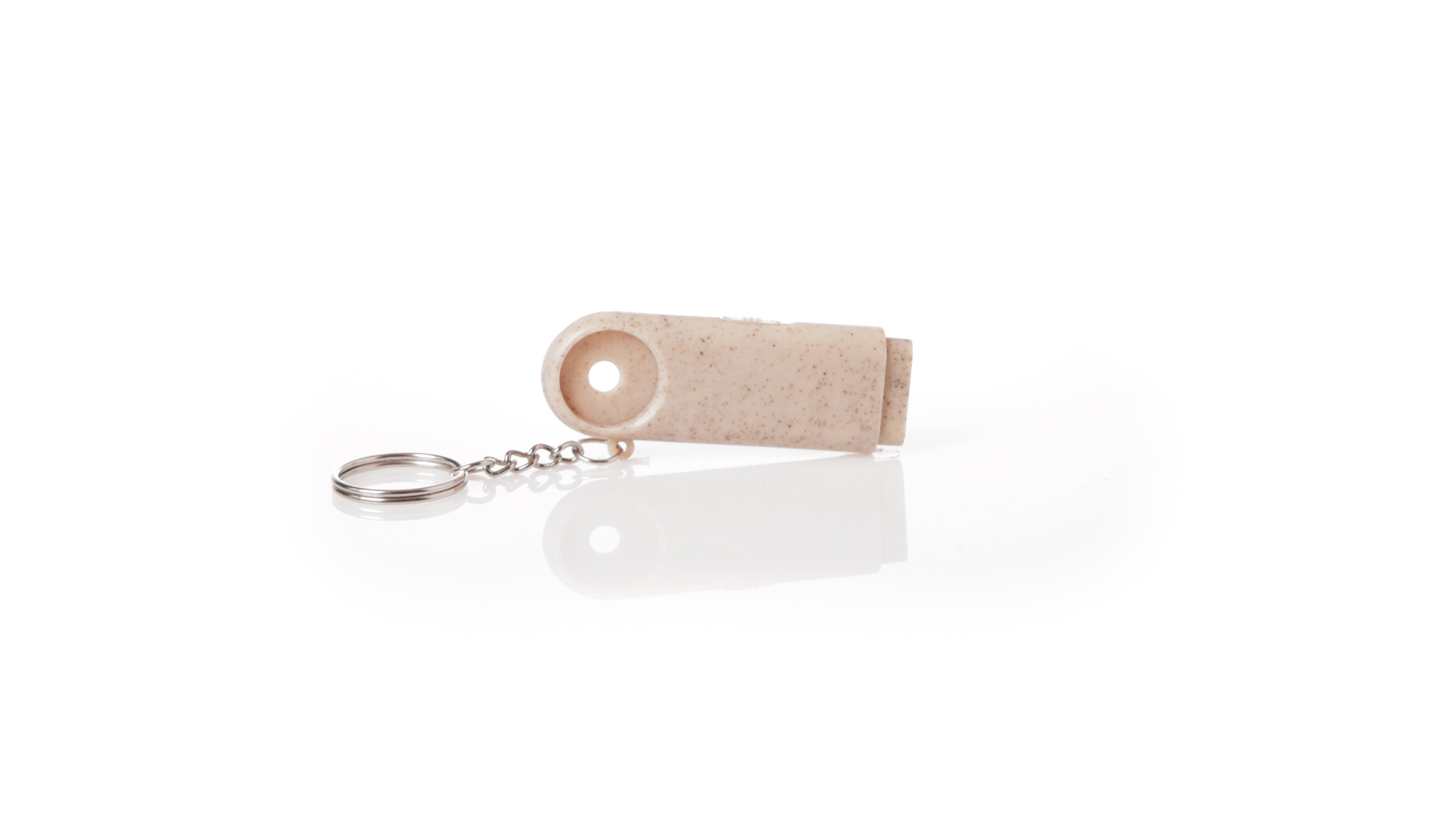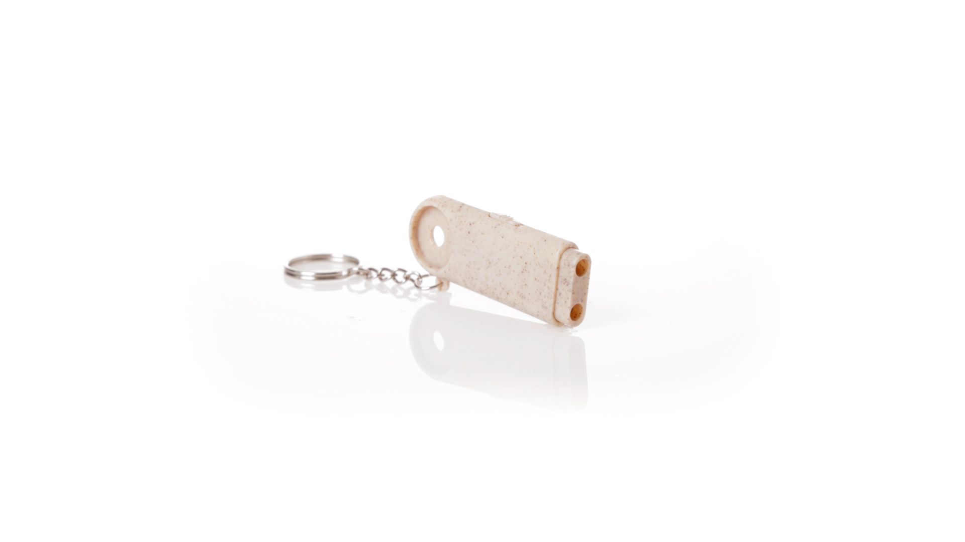 Münz-Schlüsselanhänger mit integrierter Taschenlampe, aus Weizenrohr und ABS. Mit praktischer Münze, 2 LEDs und Batteriebetrieb (Knopfbatterien enthalten). Mit Weizenstroh-Logo und in einer individuellen, recycelten Tasche.Hergestellt aus pflanzlichen Elementen, um die Verwendung natürlicher Rohstoffe zu fördern und die Schadstoffemissionen zu reduzieren.