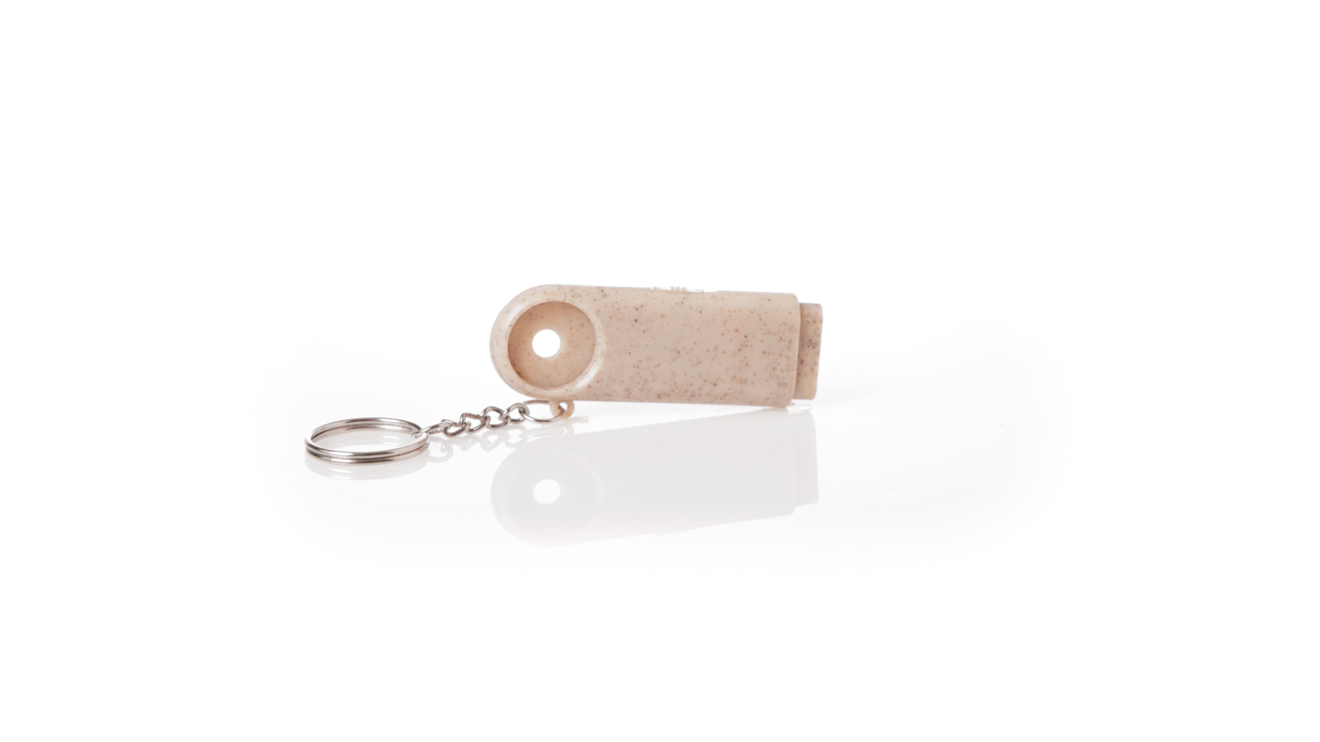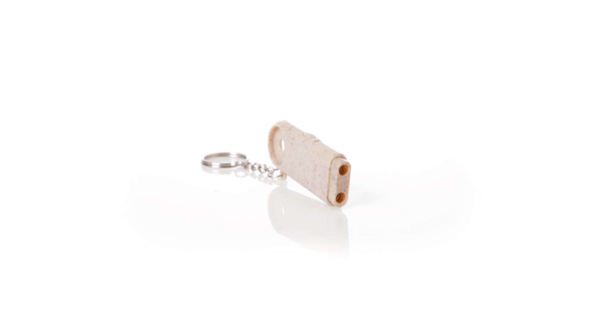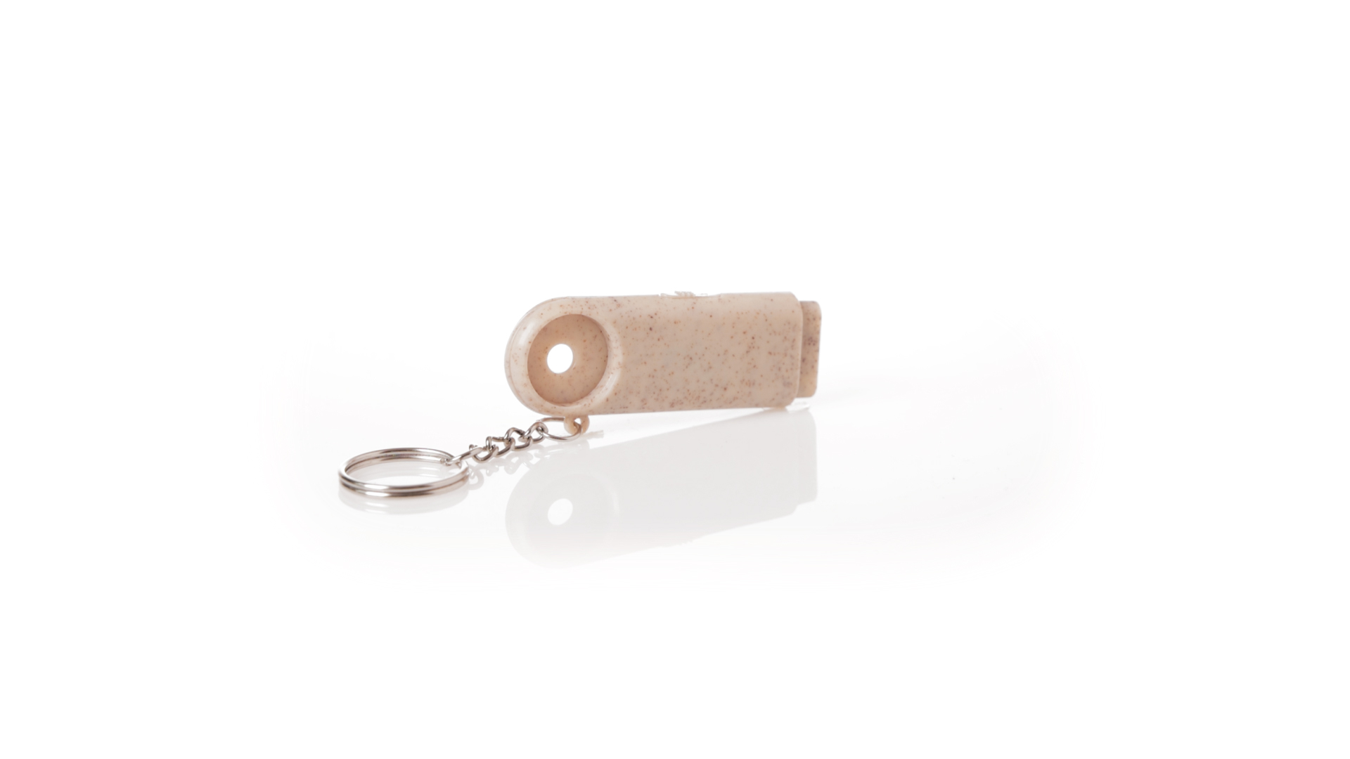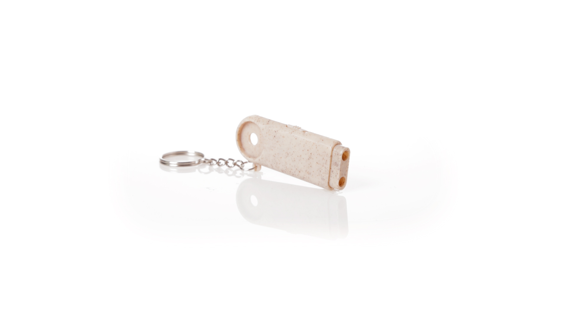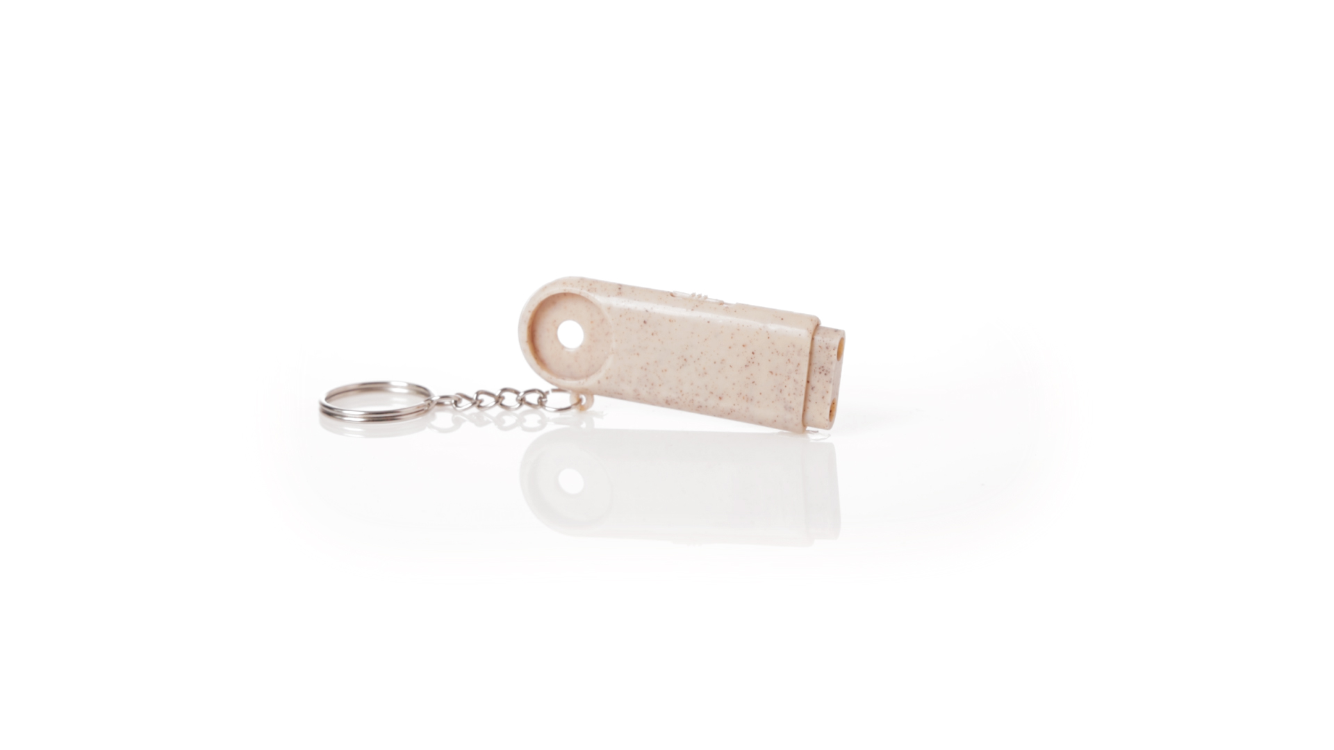 Münz-Schlüsselanhänger mit integrierter Taschenlampe, aus Weizenrohr und ABS. Mit praktischer Münze, 2 LEDs und Batteriebetrieb (Knopfbatterien enthalten). Mit Weizenstroh-Logo und in einer individuellen, recycelten Tasche.Hergestellt aus pflanzlichen Elementen, um die Verwendung natürlicher Rohstoffe zu fördern und die Schadstoffemissionen zu reduzieren.