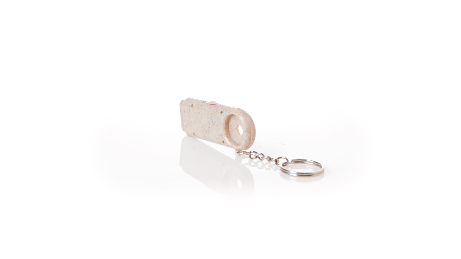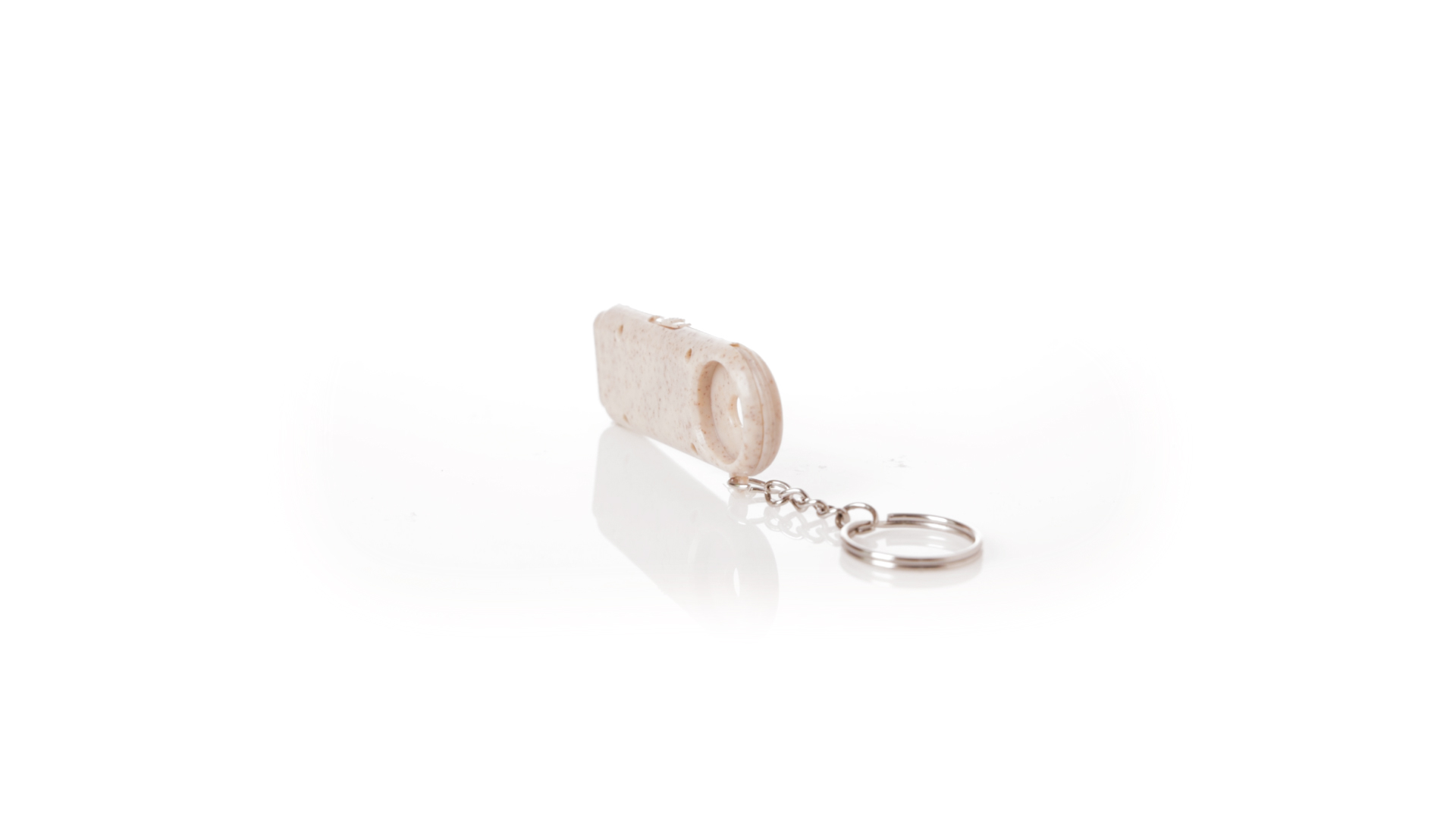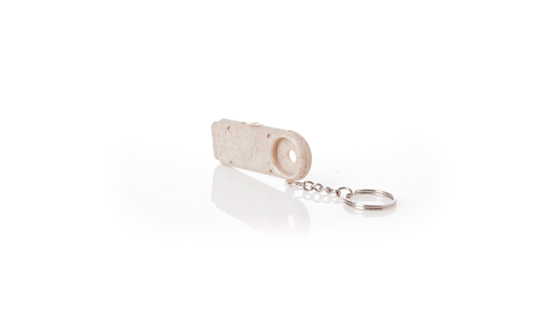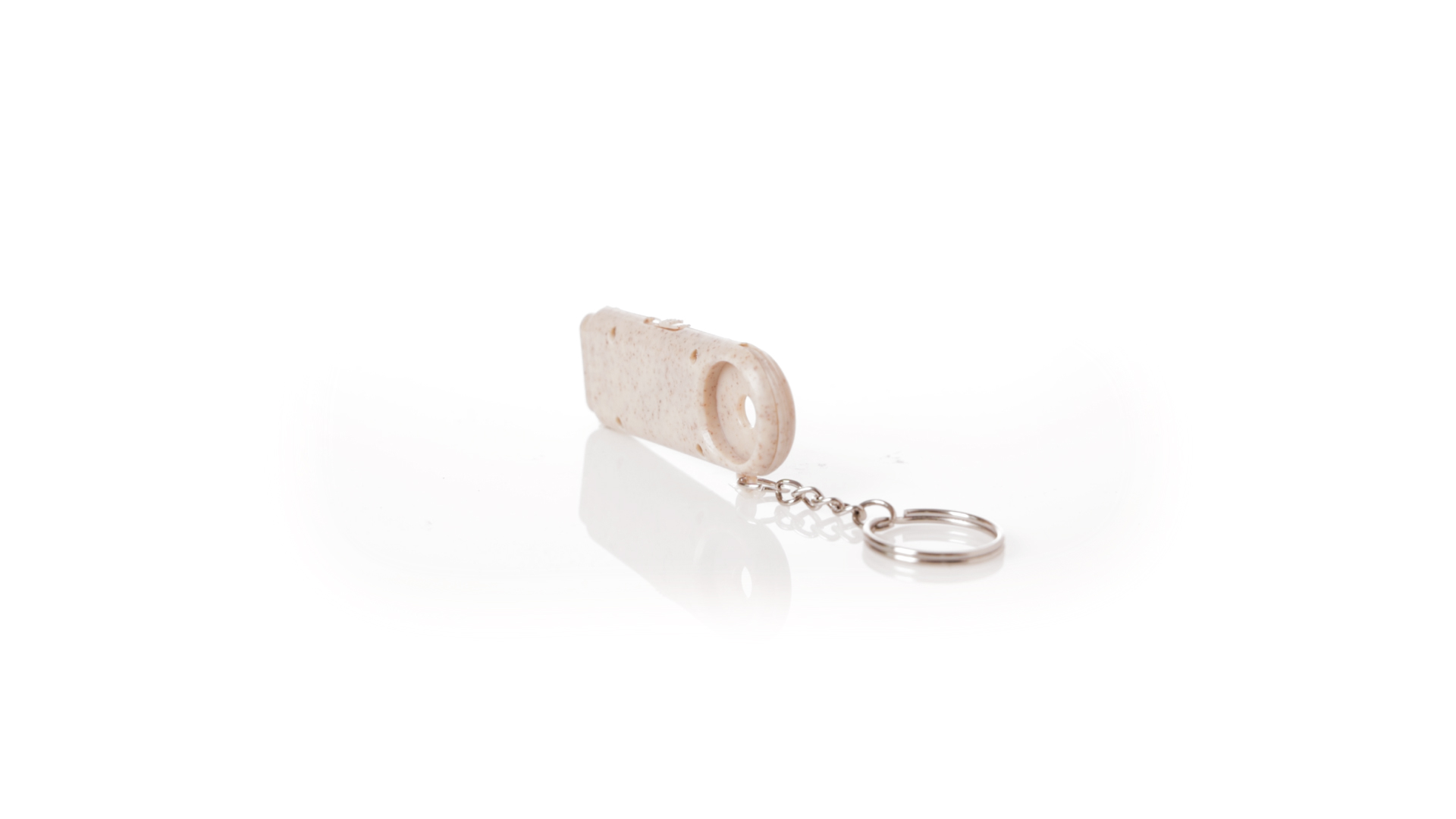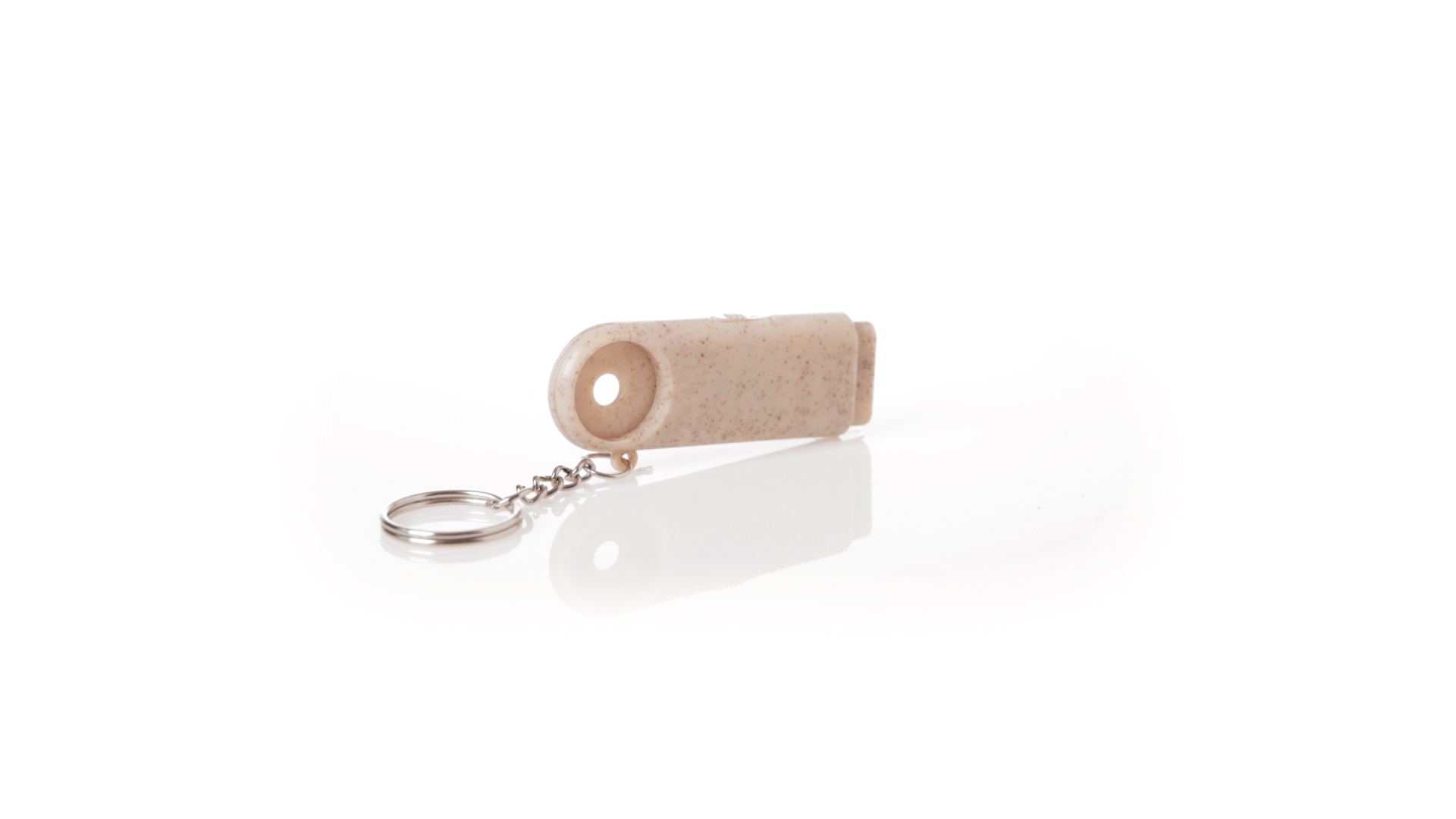 Münz-Schlüsselanhänger mit integrierter Taschenlampe, aus Weizenrohr und ABS. Mit praktischer Münze, 2 LEDs und Batteriebetrieb (Knopfbatterien enthalten). Mit Weizenstroh-Logo und in einer individuellen, recycelten Tasche.Hergestellt aus pflanzlichen Elementen, um die Verwendung natürlicher Rohstoffe zu fördern und die Schadstoffemissionen zu reduzieren.