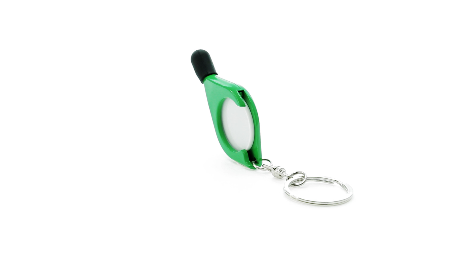 Schlüsselanhänger mit lustigem Design in verschiedenen Farben. Mit integriertem Stylus und herausnehmbarer Münze.