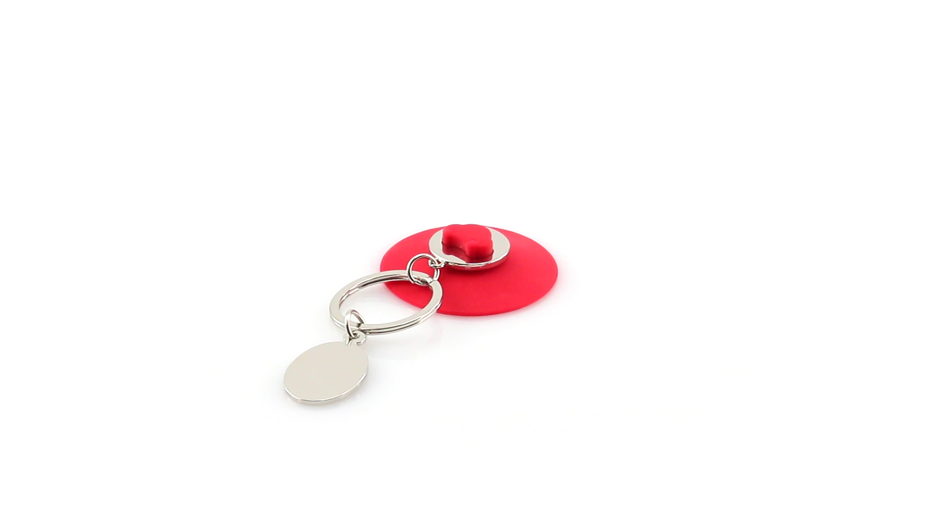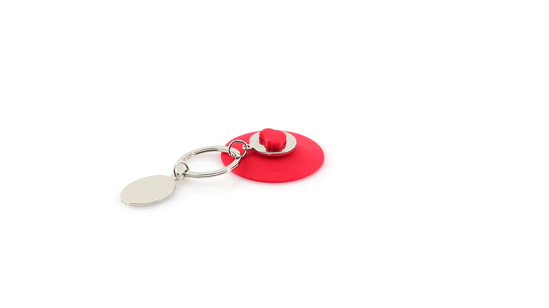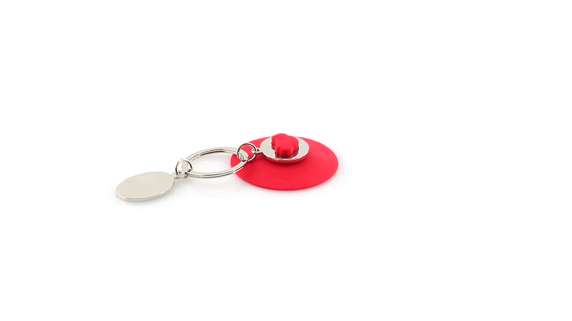 Origineller Metall-Schlüsselanhänger mit abnehmbarem Saugnapf in lebendigen Farben. Zum Aufhängen des Schlüsselbundes, einfach den Saugnapf an einer flachen Oberfläche befestigen. Mit Druckfläche aus Metall für Laserdruck.