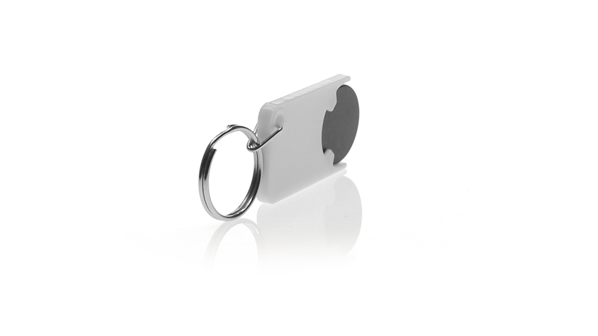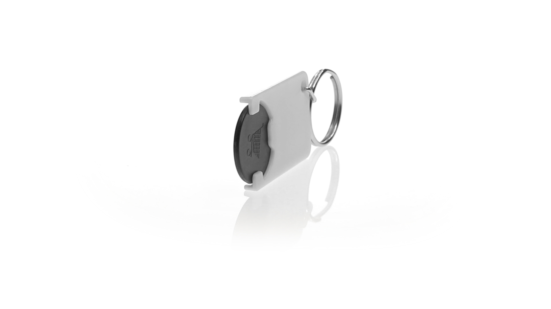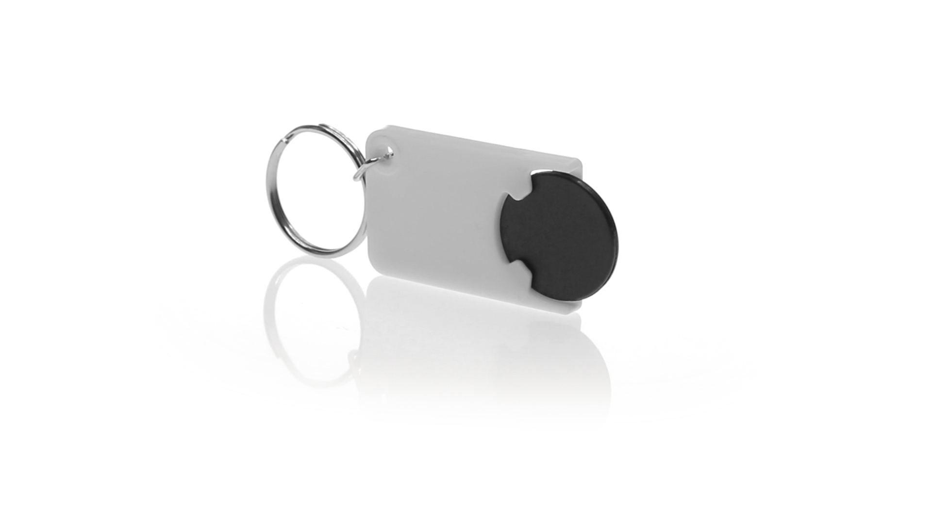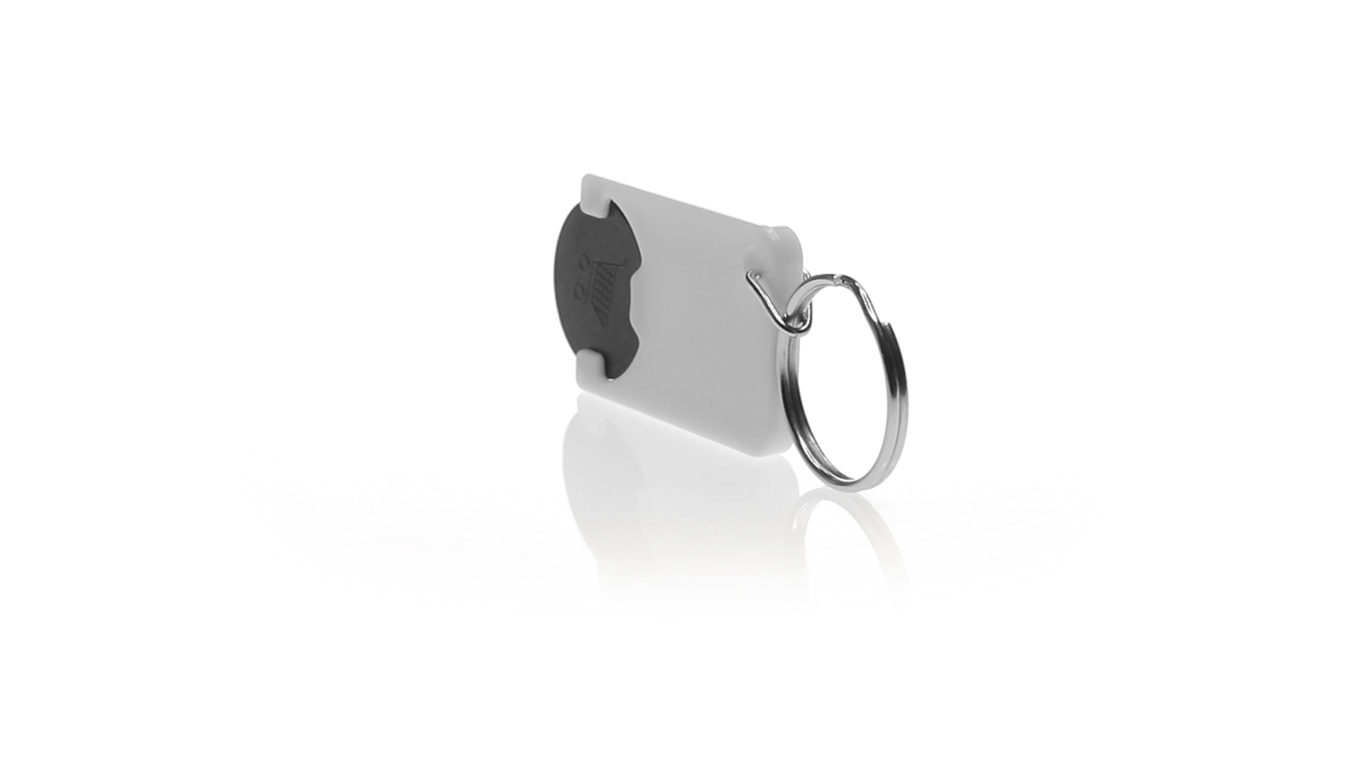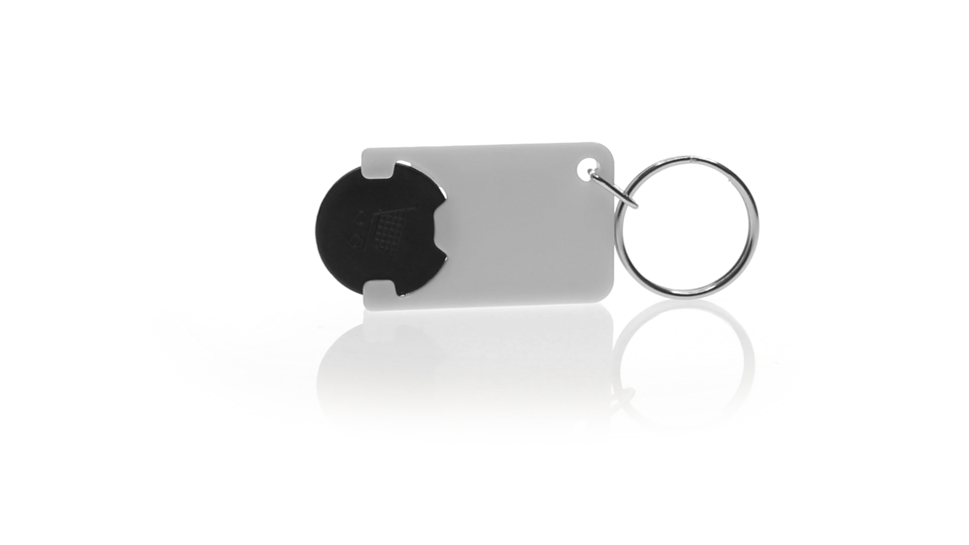 Münz-Schlüsselanhänger mit fröhlichem zweifarbigem Design in verschiedenen Farben und herausnehmbarer Münze.