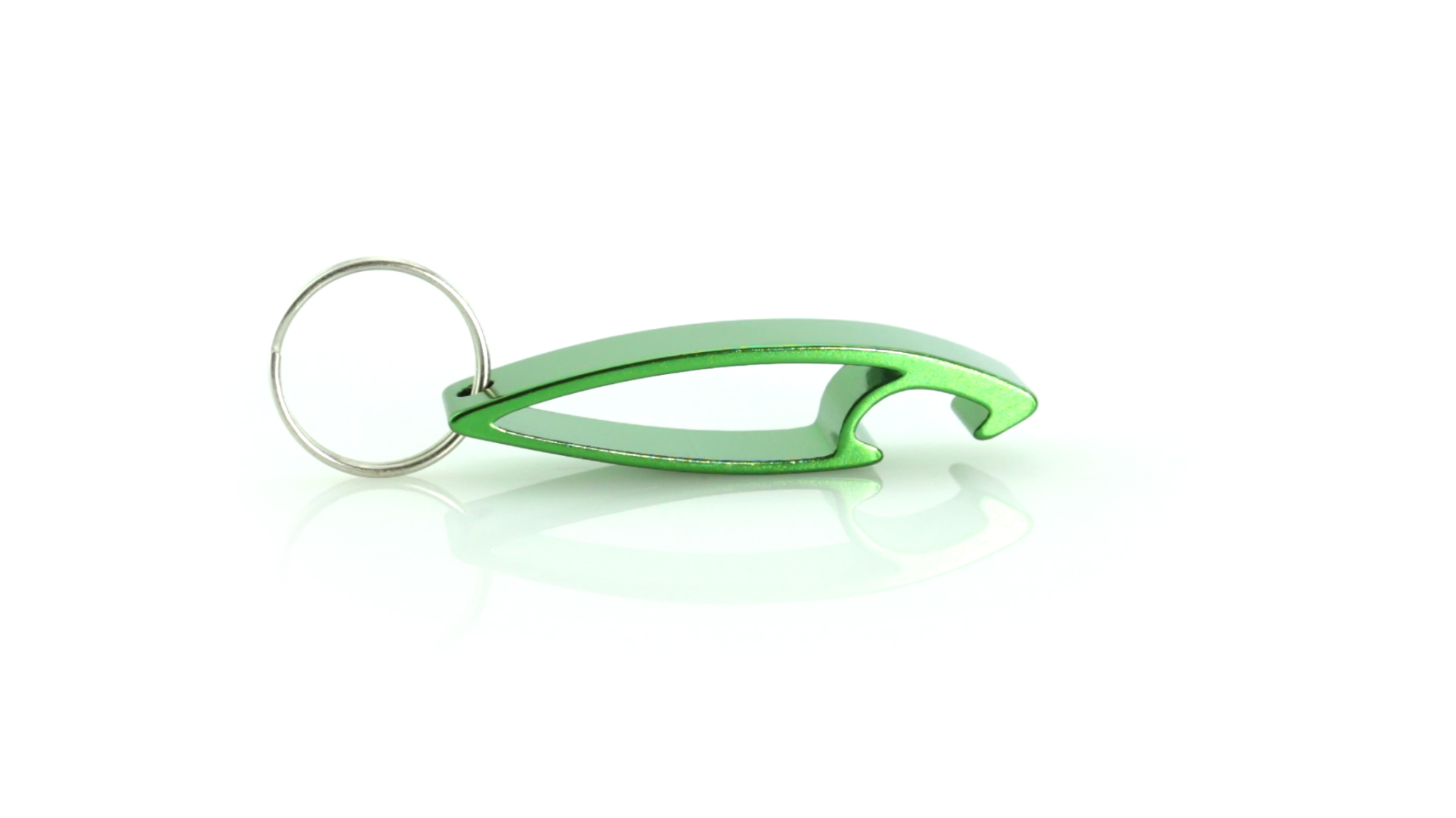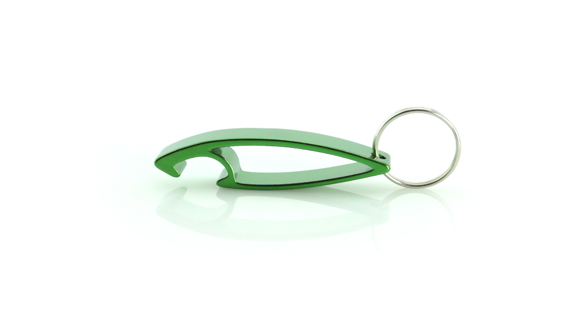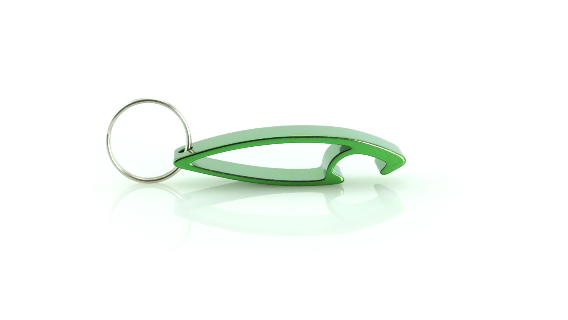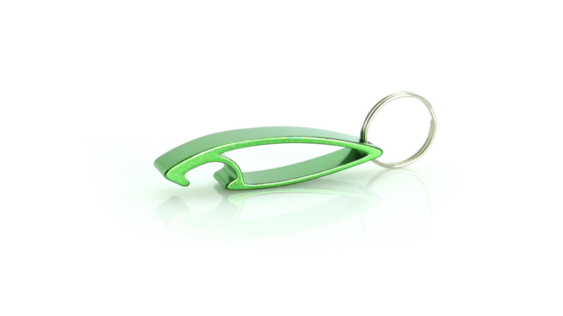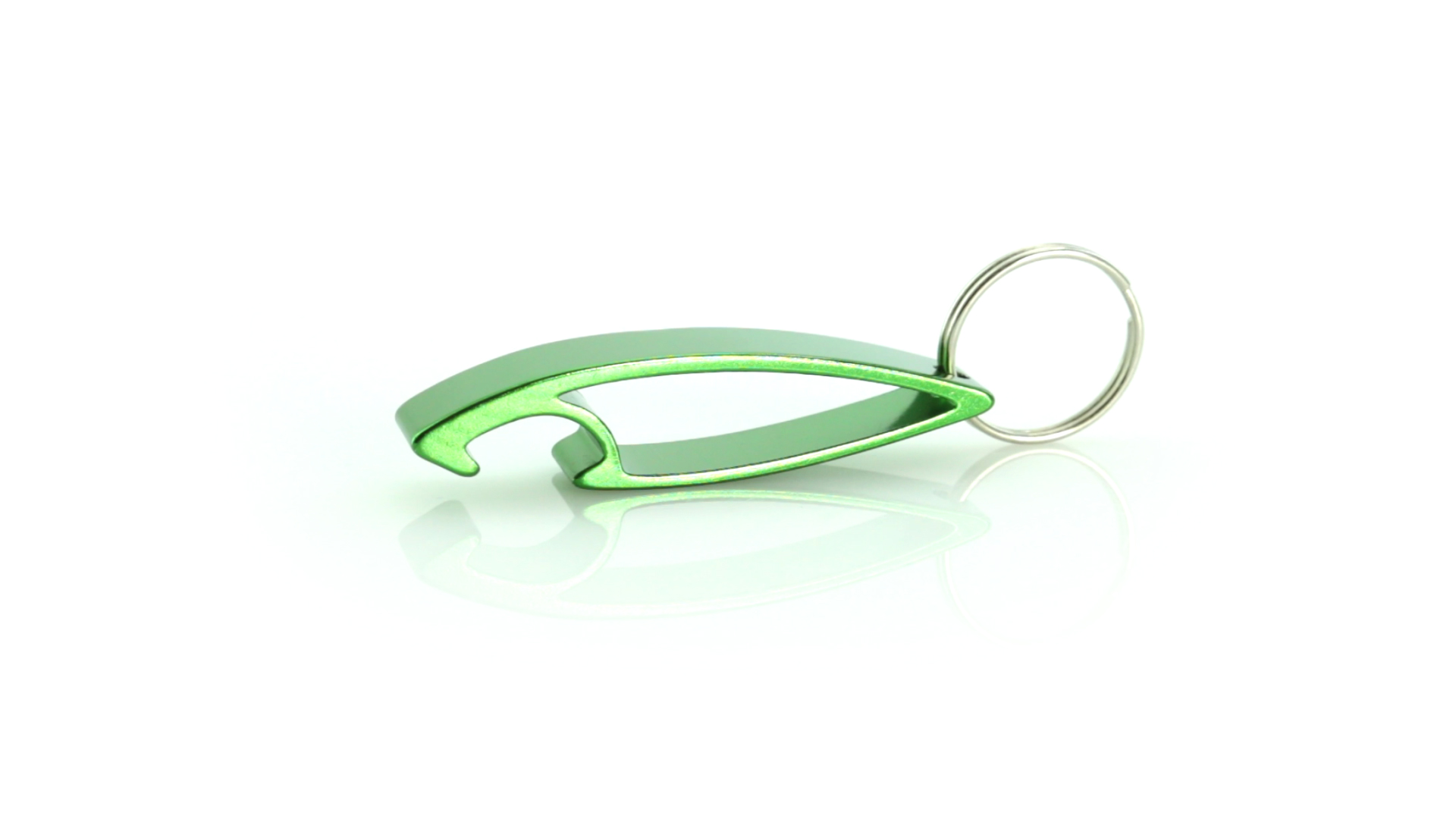 Schlüsselanhänger mit Flaschenöffner aus Aluminium in verschiedenen lebendigen Farben. Speziell entworfen für den Laserdruck.