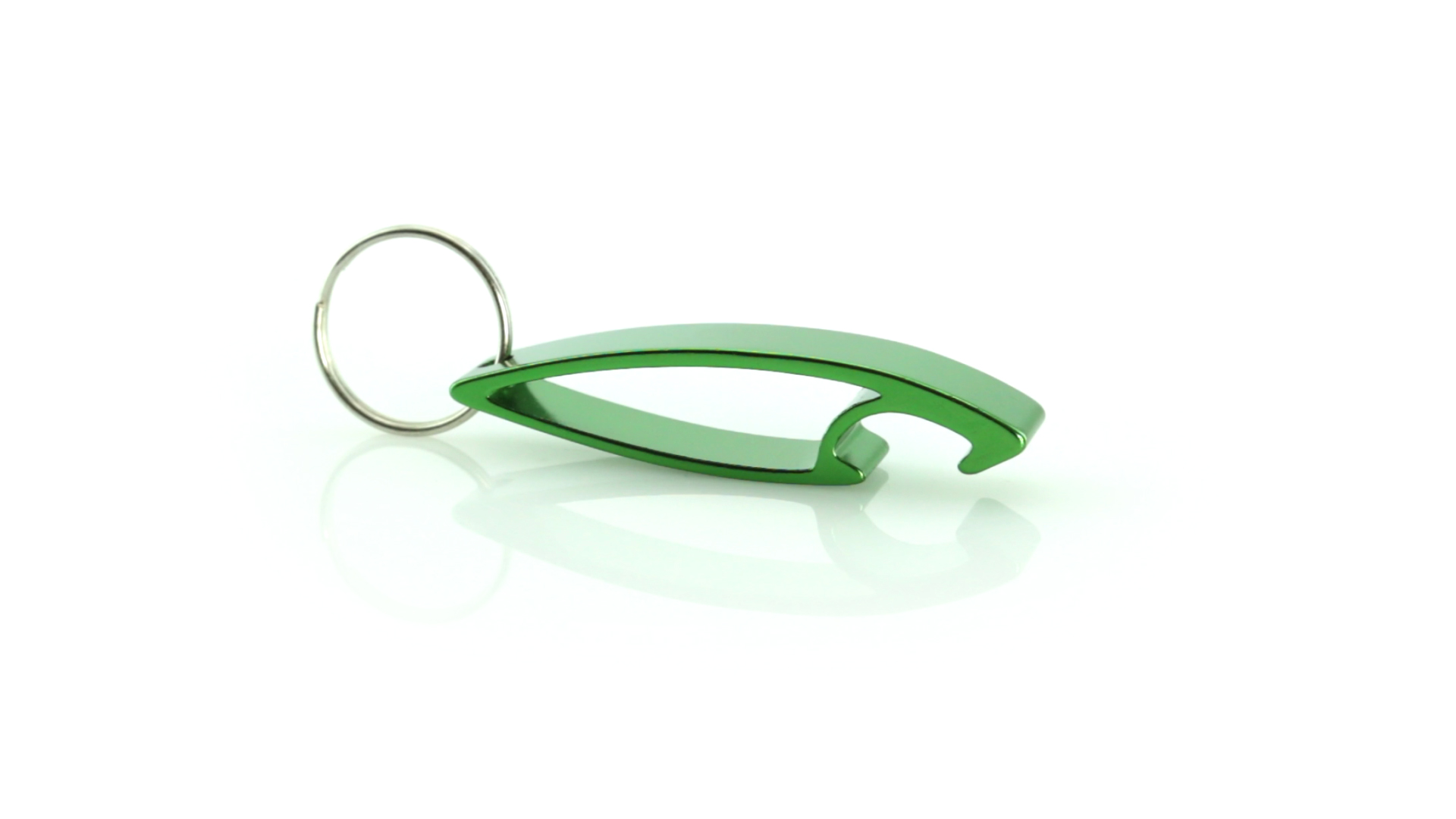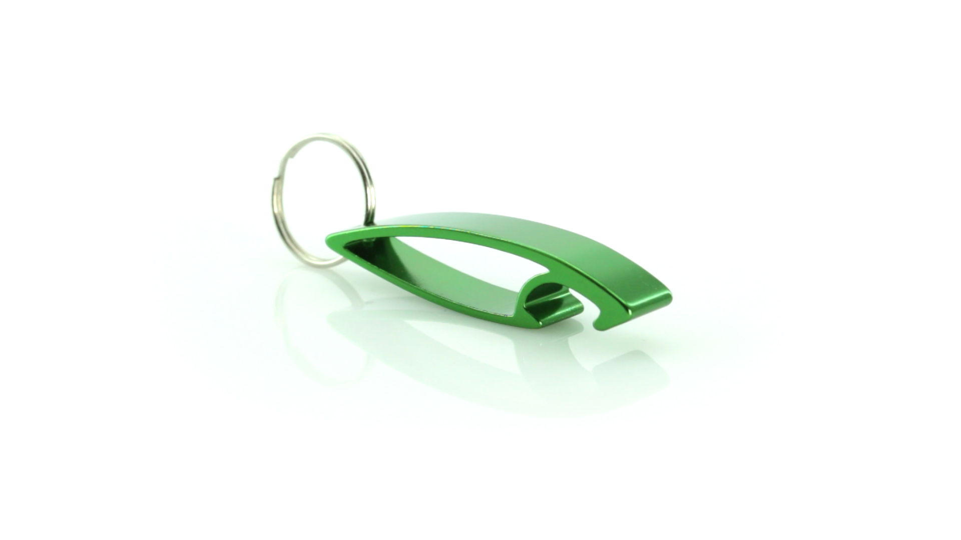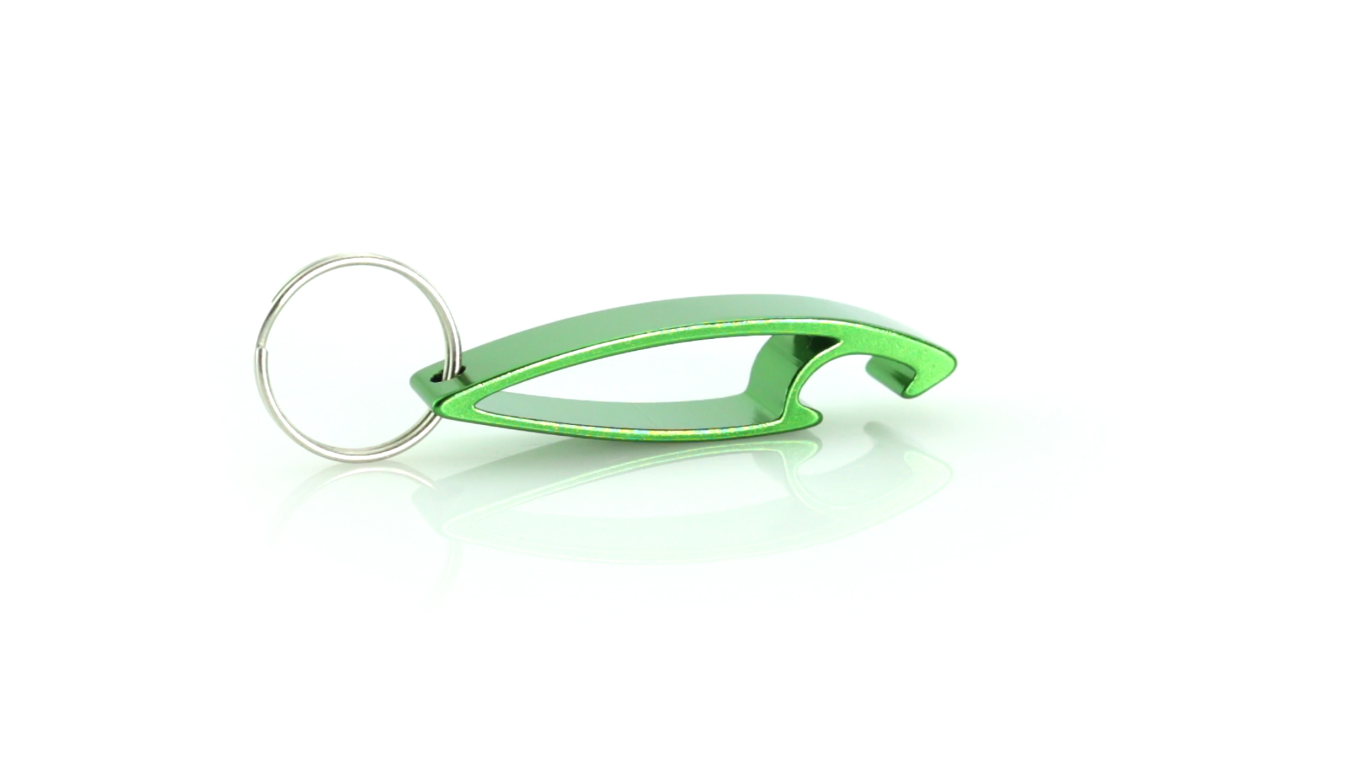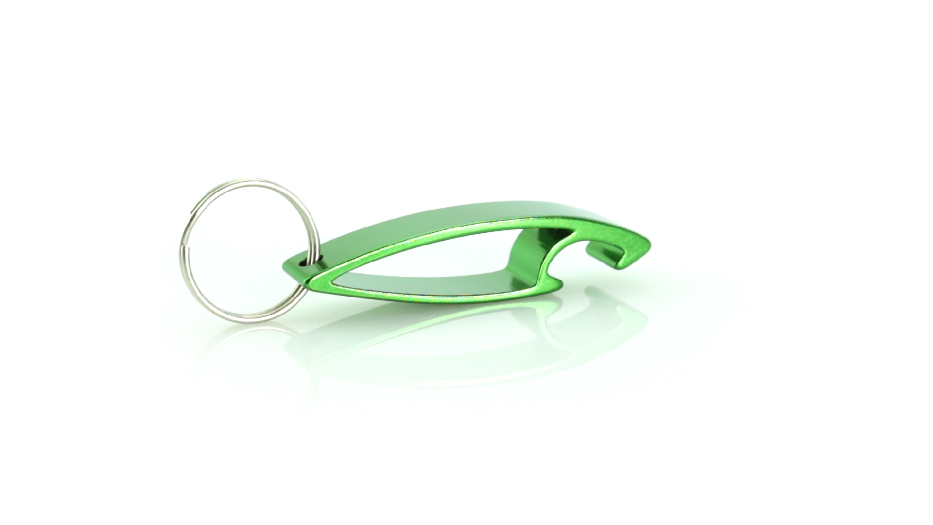 Schlüsselanhänger mit Flaschenöffner aus Aluminium in verschiedenen lebendigen Farben. Speziell entworfen für den Laserdruck.