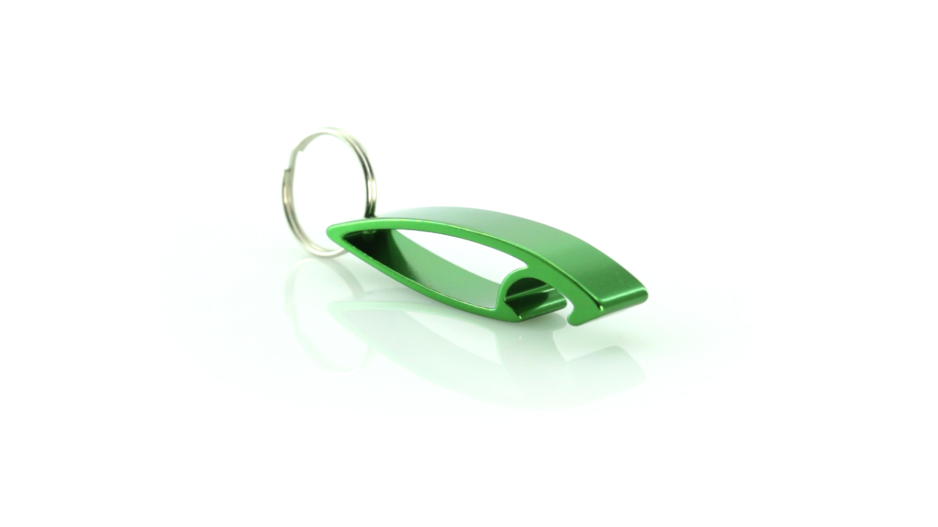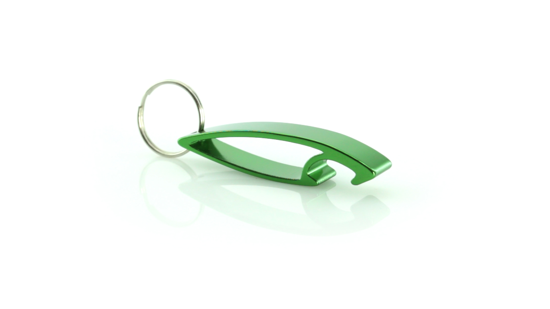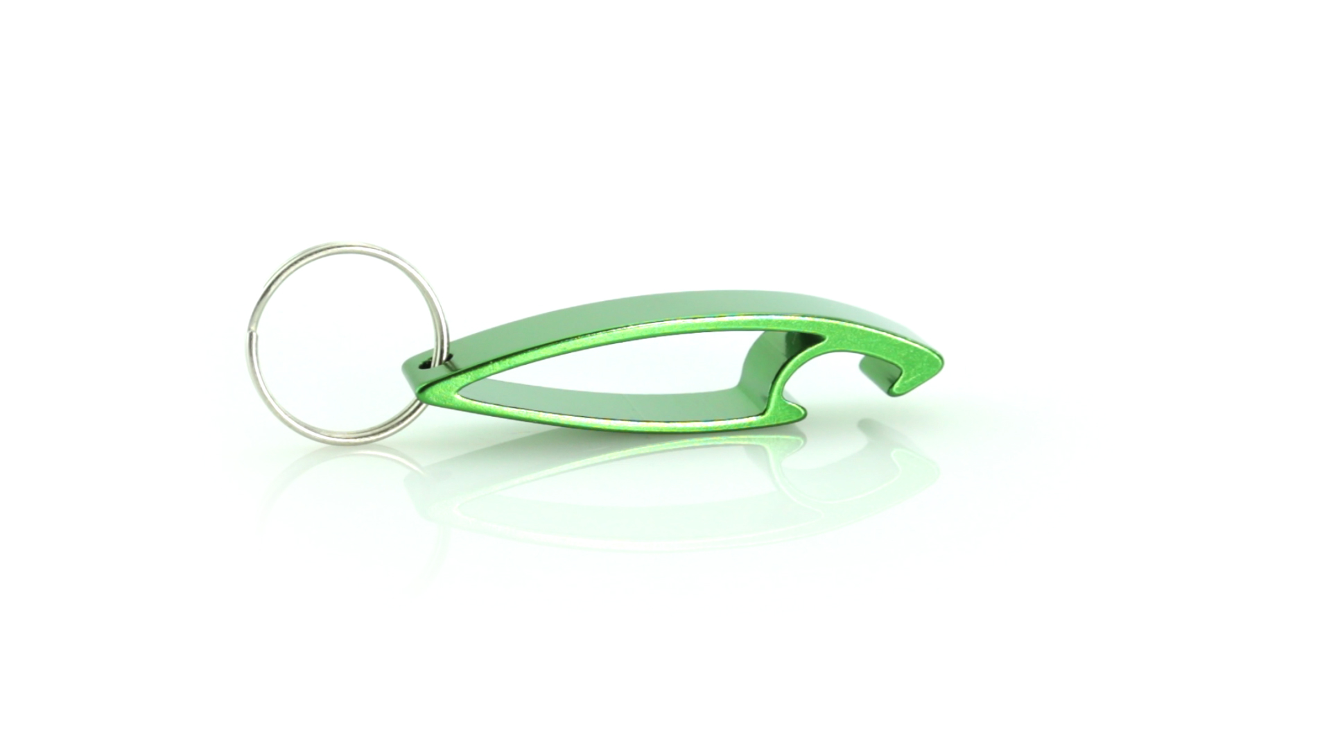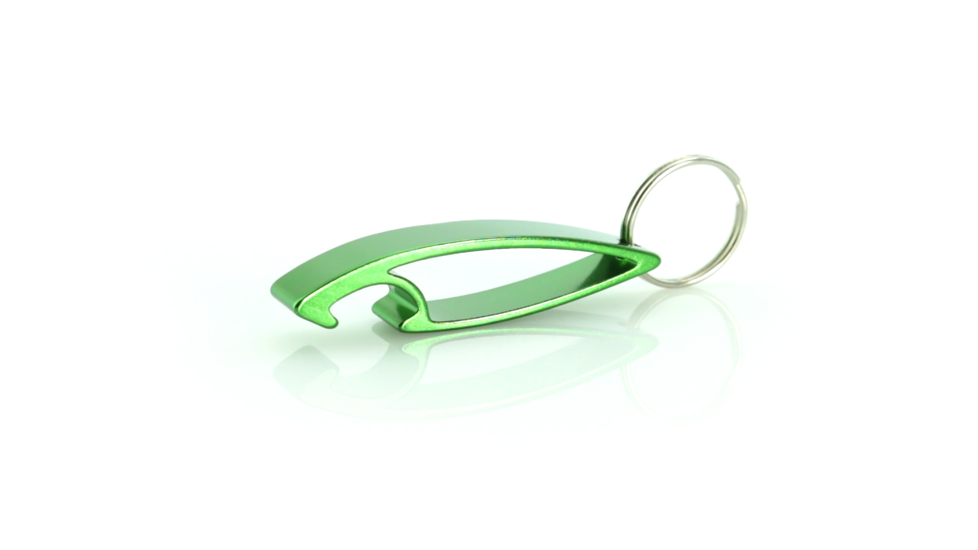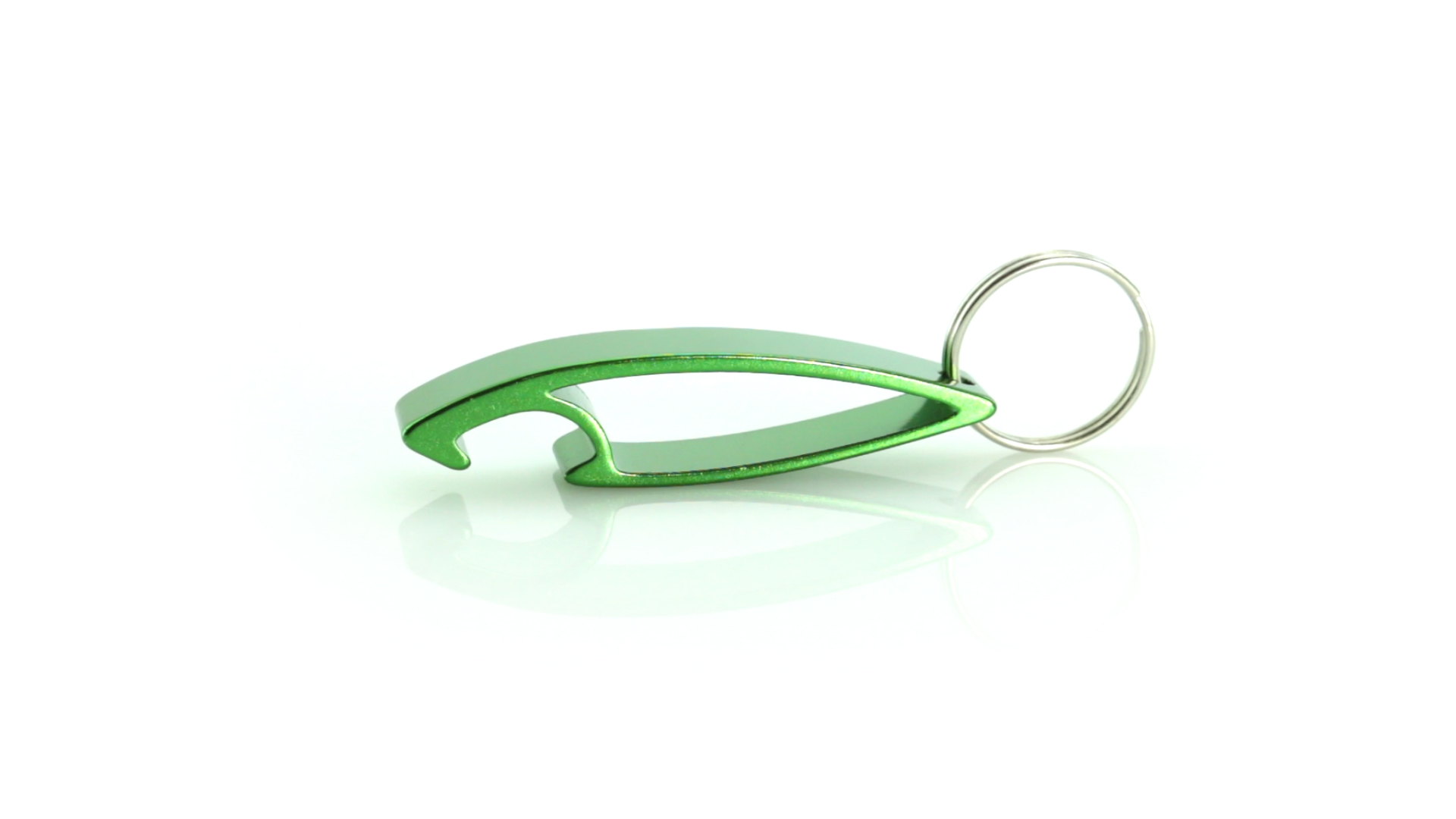 Schlüsselanhänger mit Flaschenöffner aus Aluminium in verschiedenen lebendigen Farben. Speziell entworfen für den Laserdruck.