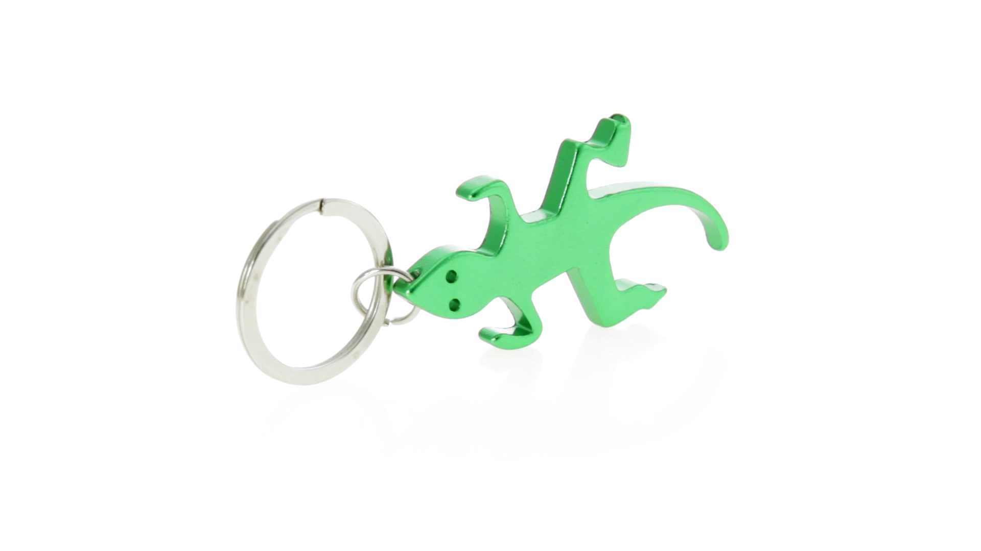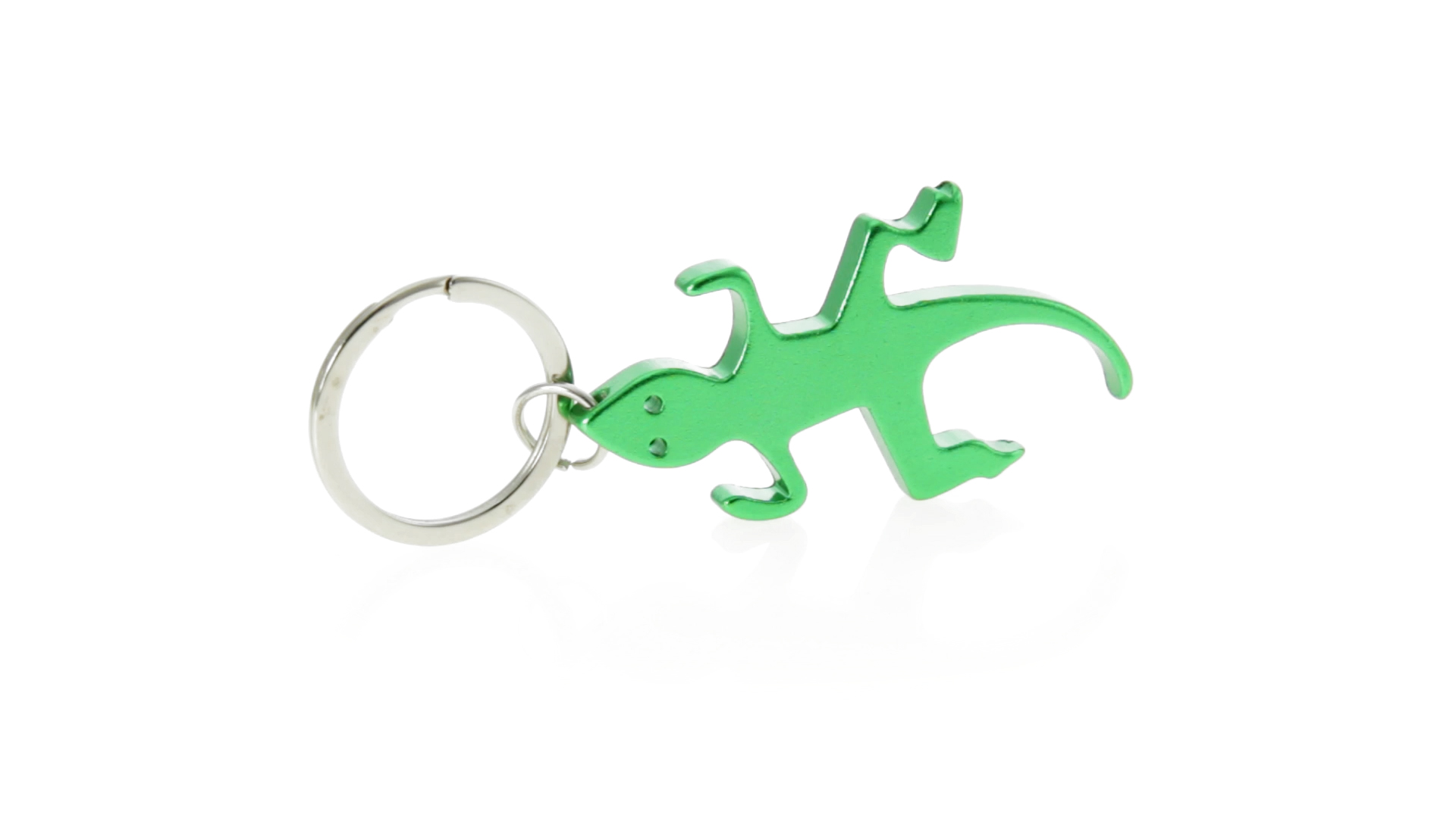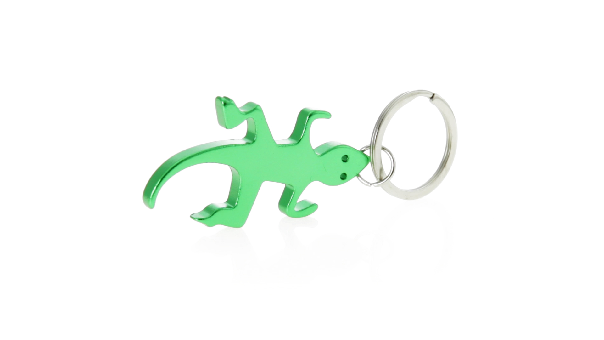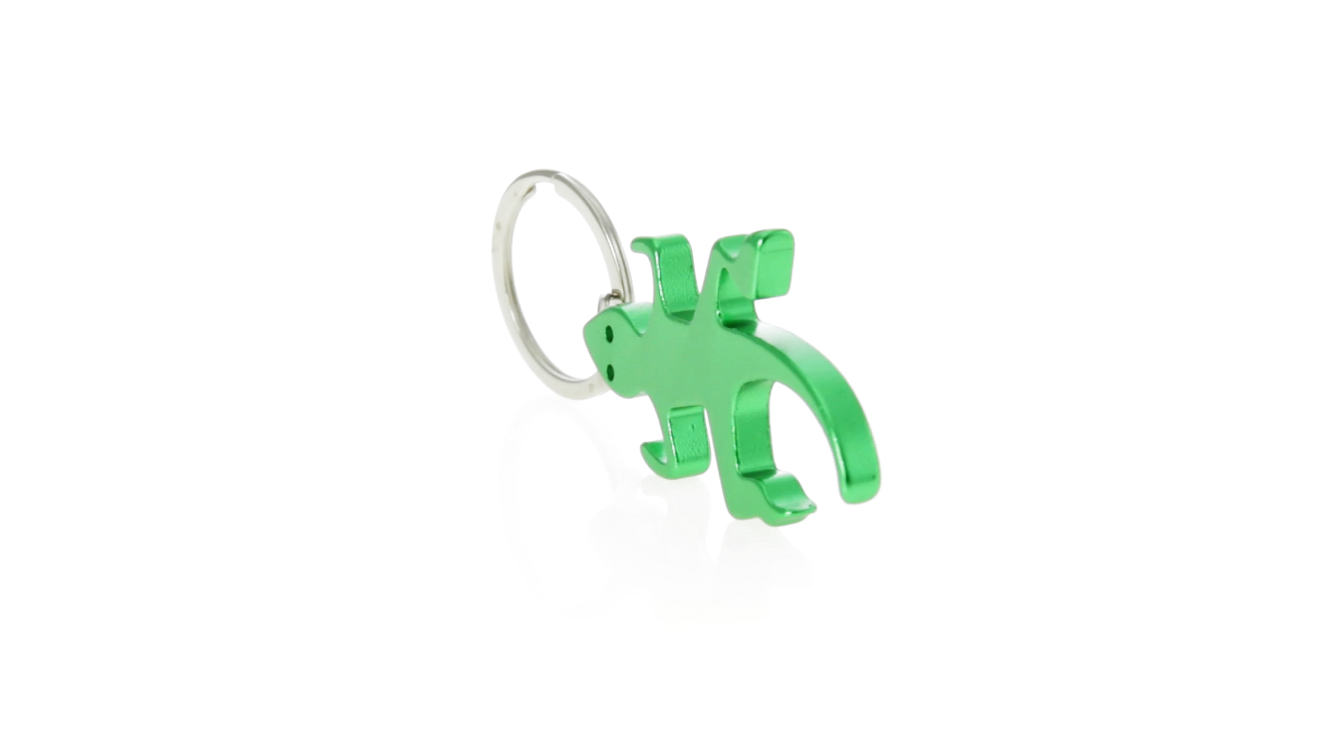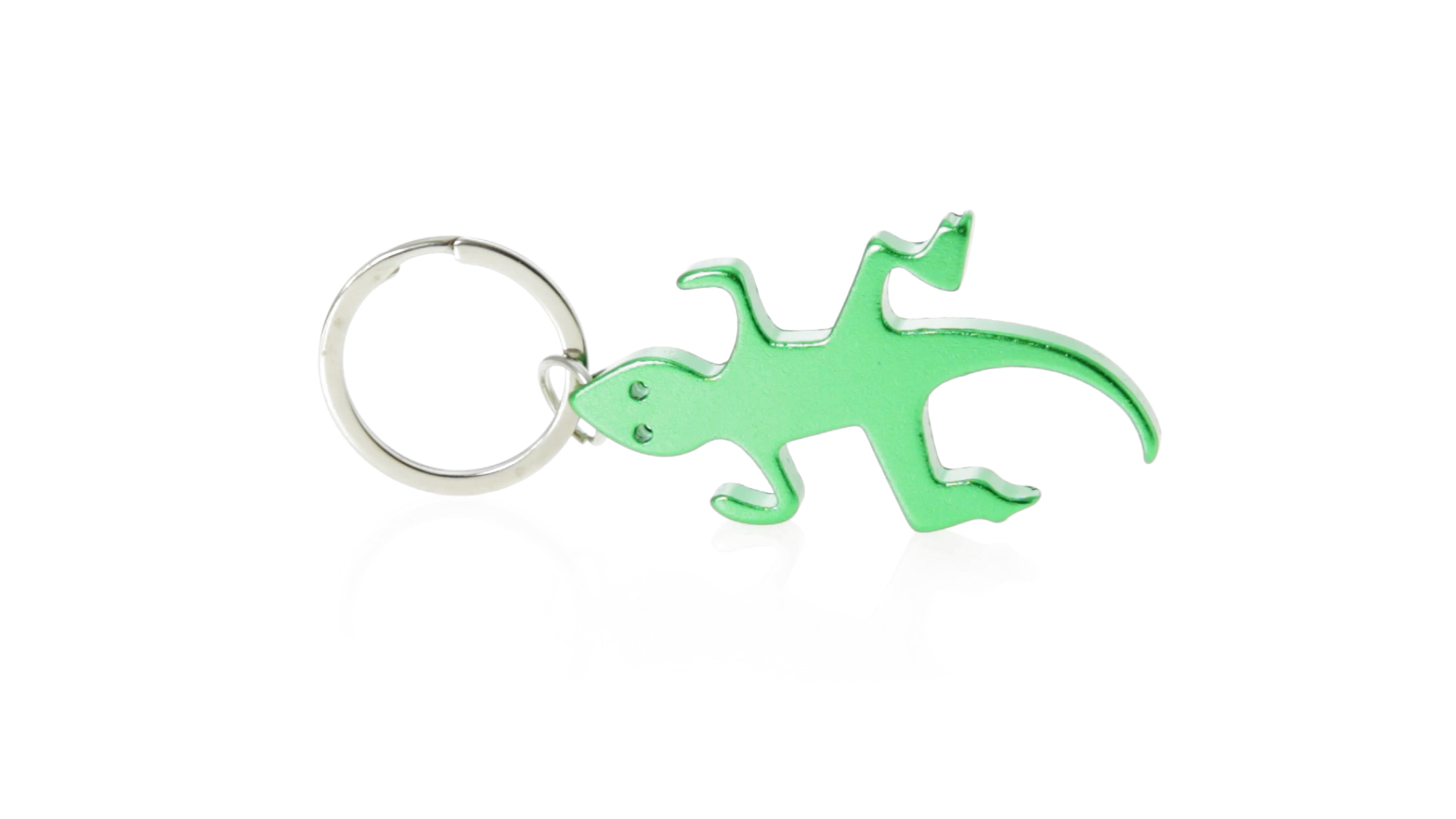 Origineller Salamander-Schlüsselanhänger mit Flaschenöffner aus Aluminium in einer Vielzahl von lebendigen Farben.