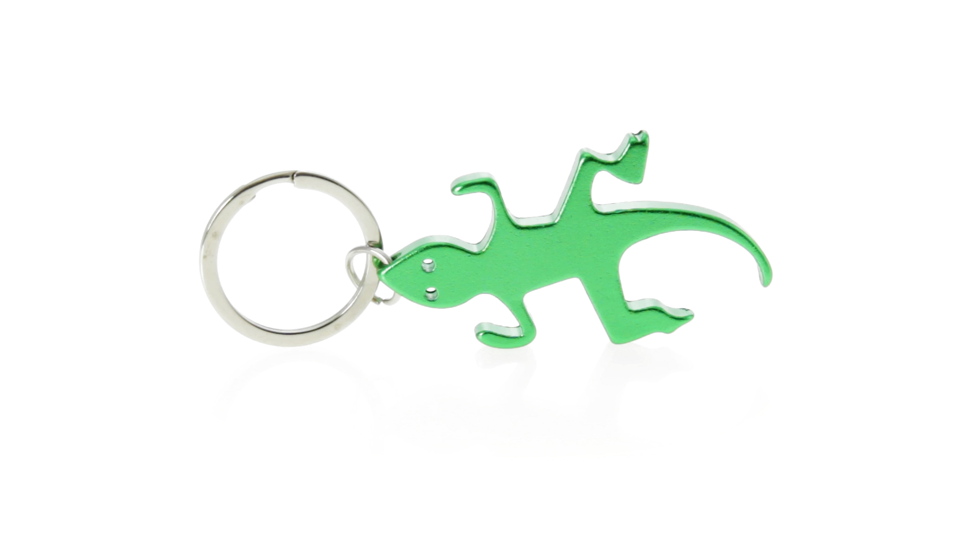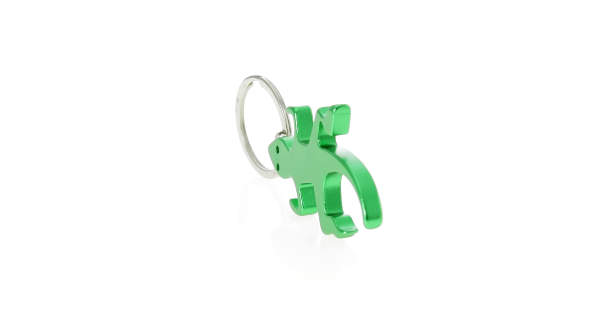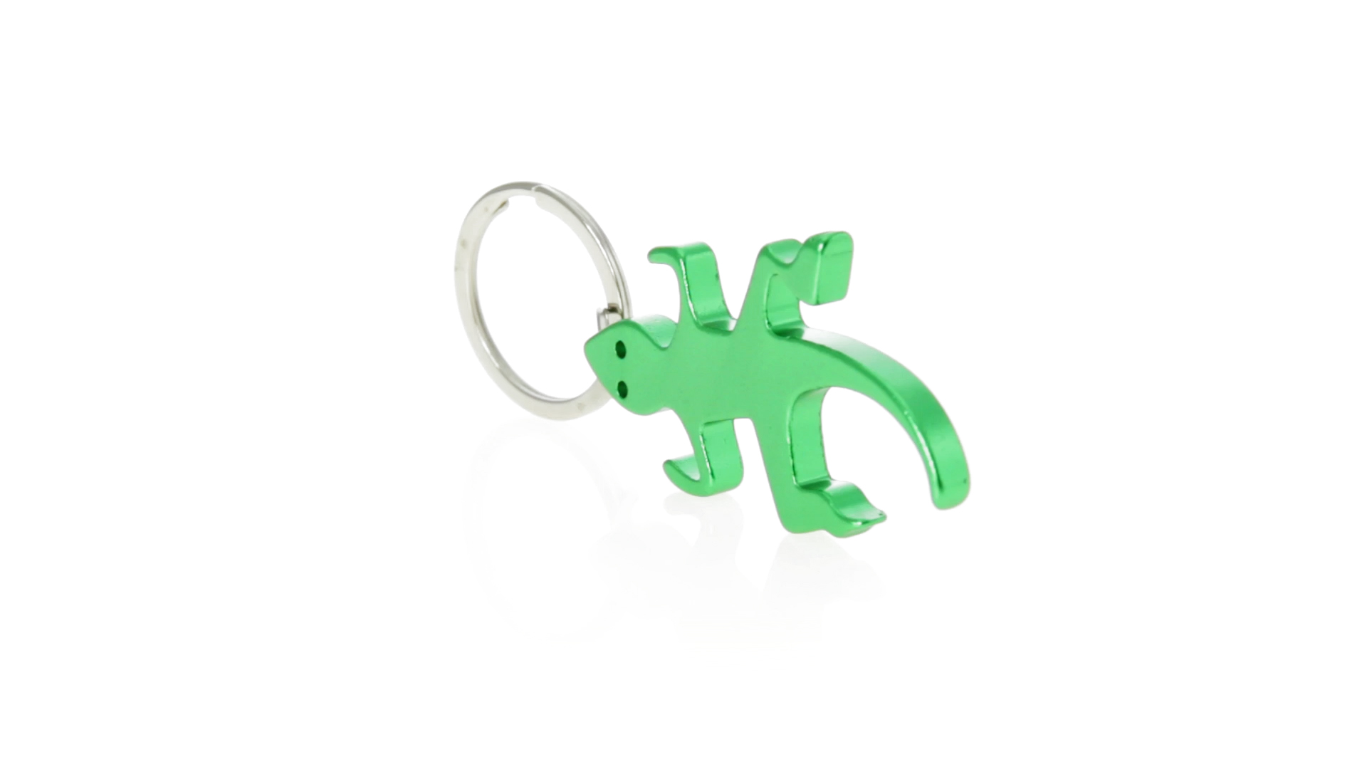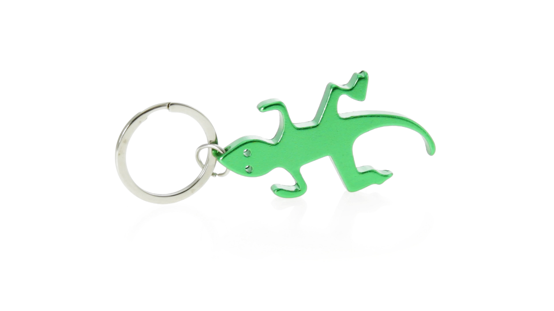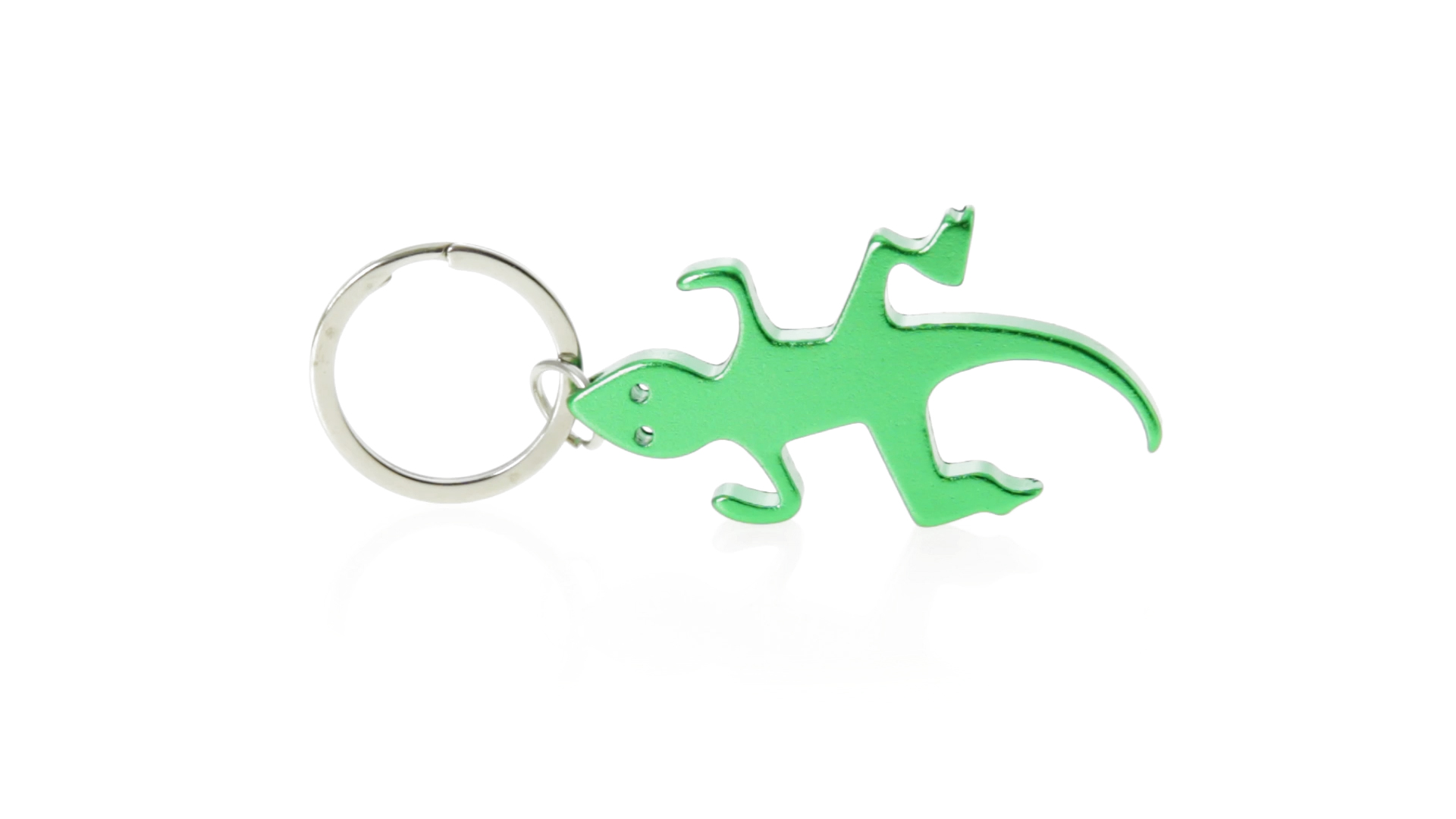 Origineller Salamander-Schlüsselanhänger mit Flaschenöffner aus Aluminium in einer Vielzahl von lebendigen Farben.