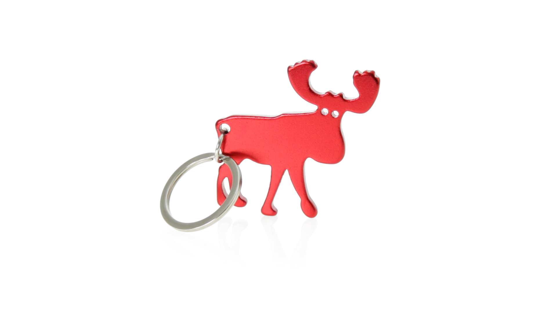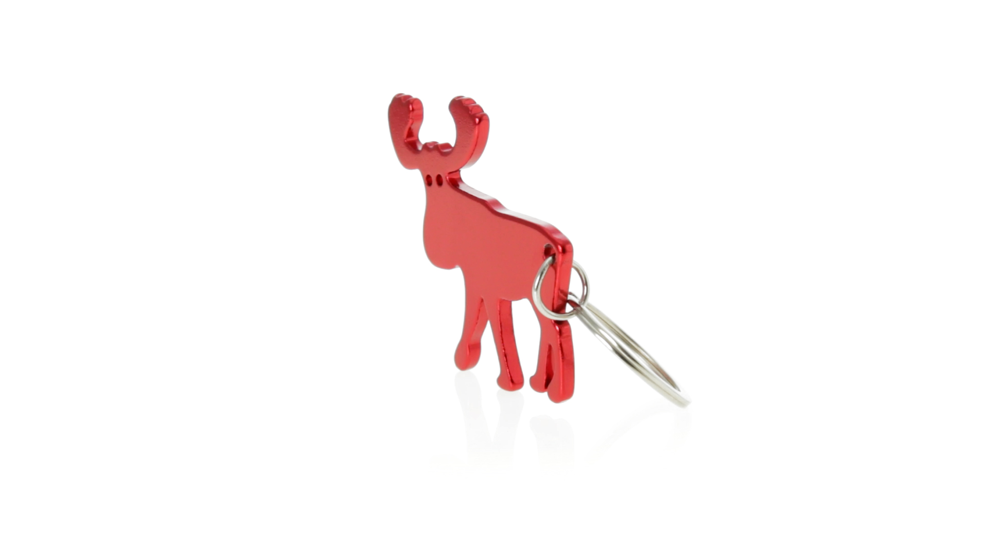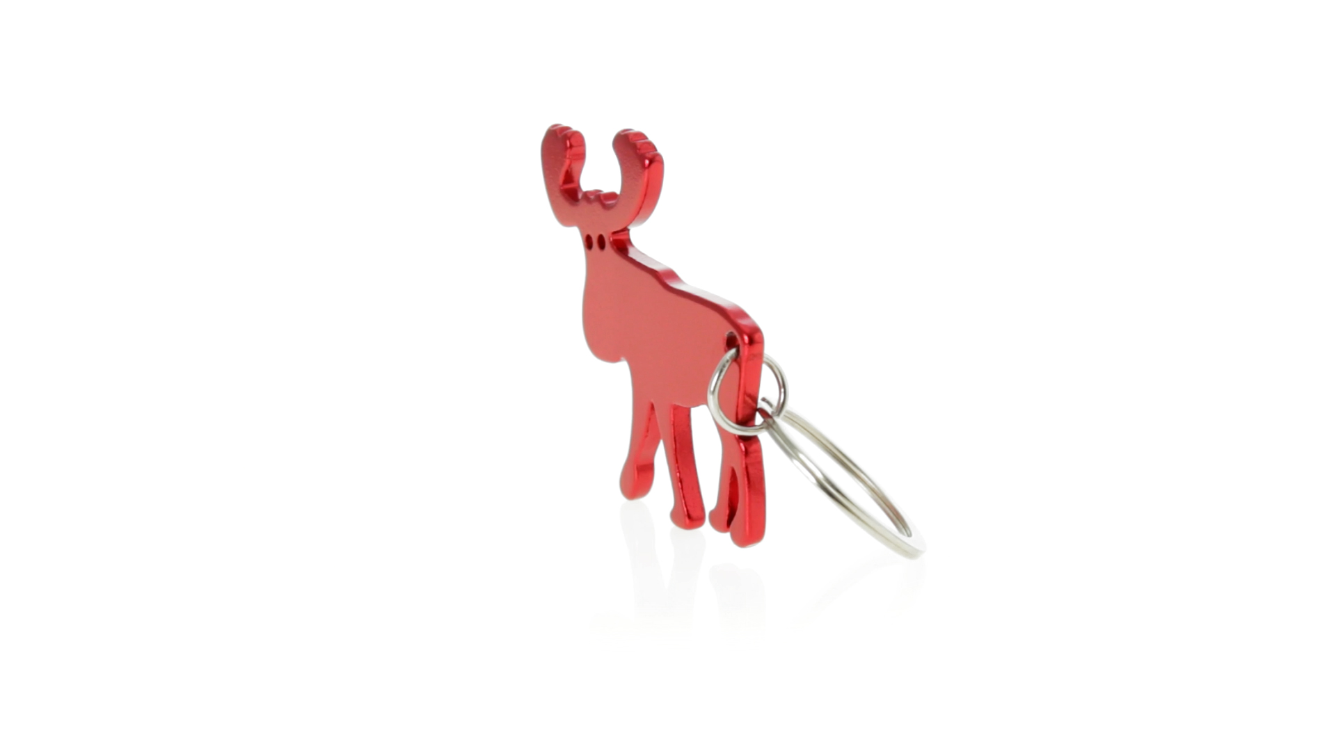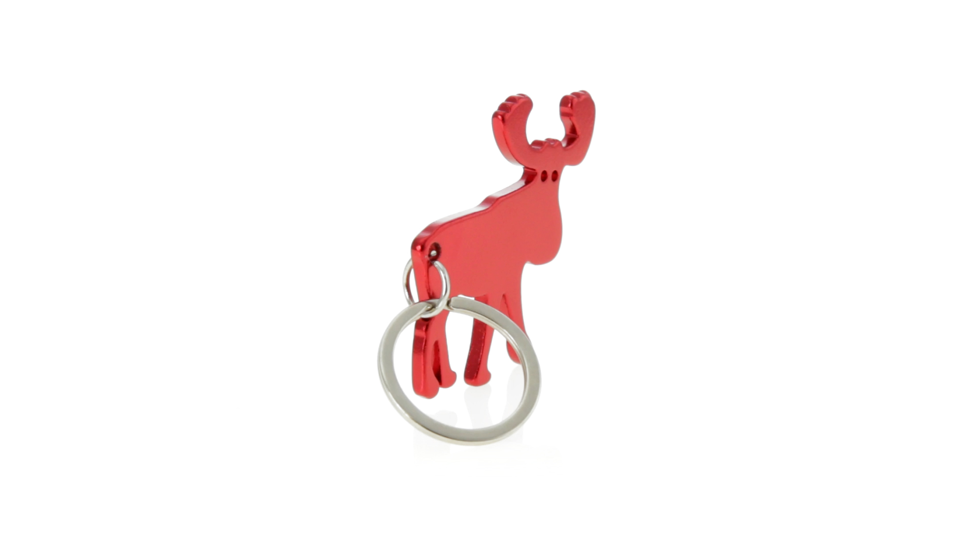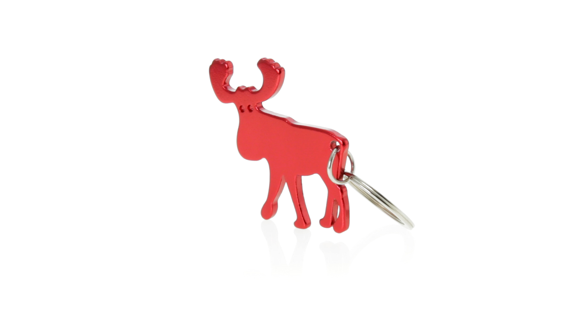 Origineller Rentier-Schlüsselanhänger mit Flaschenöffner aus Aluminium in einer Vielzahl von lebendigen glänzenden Farben.