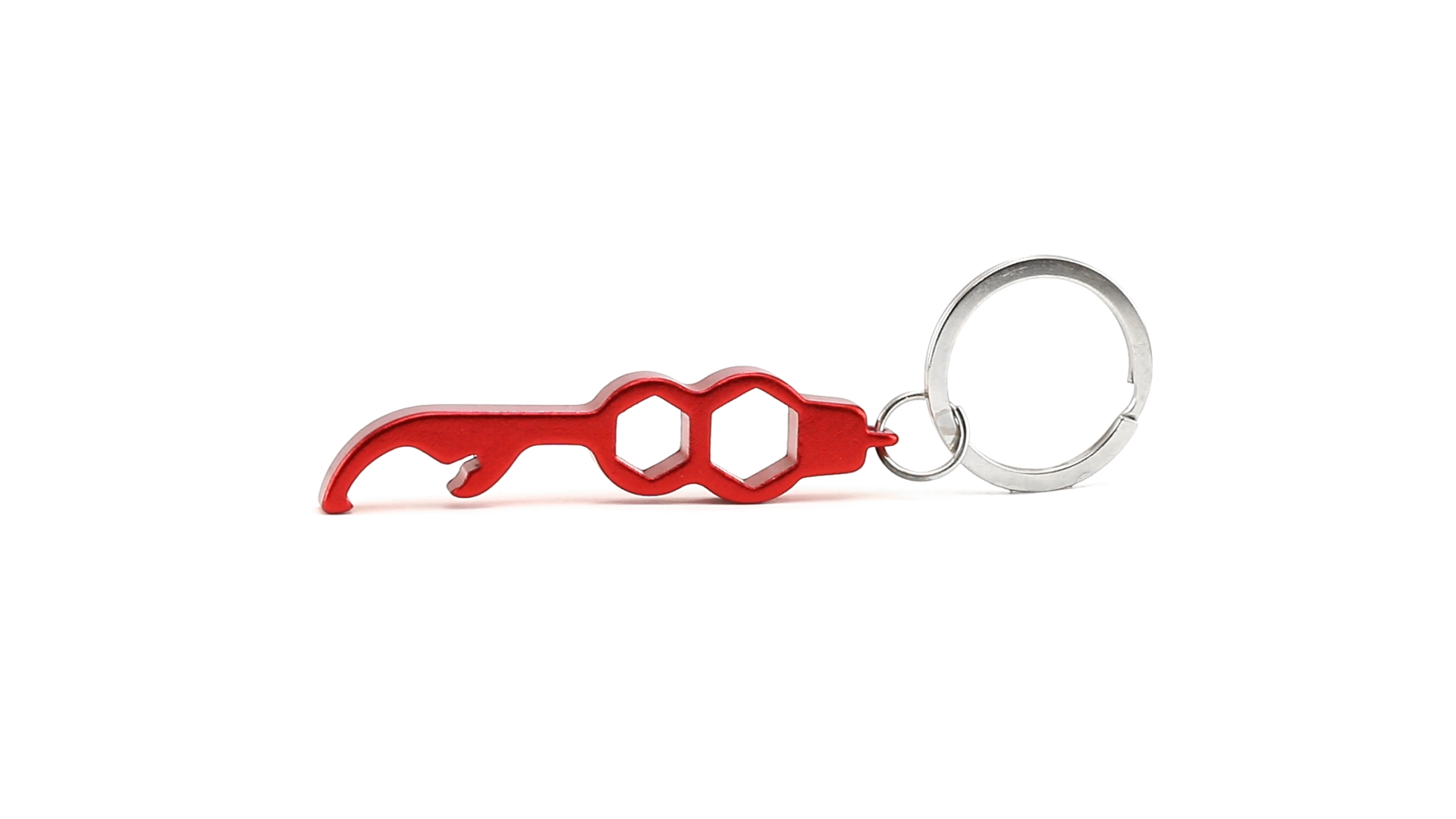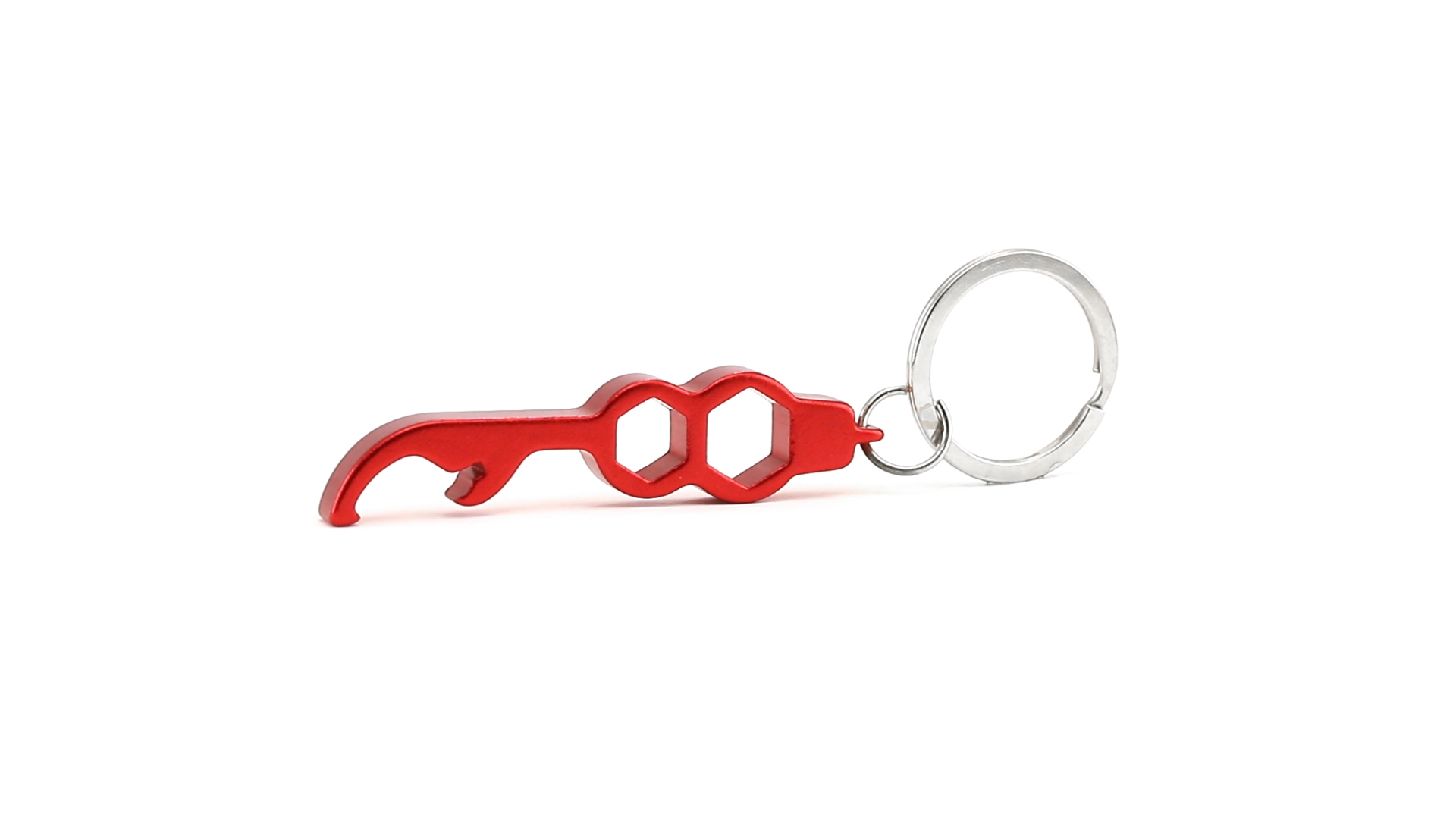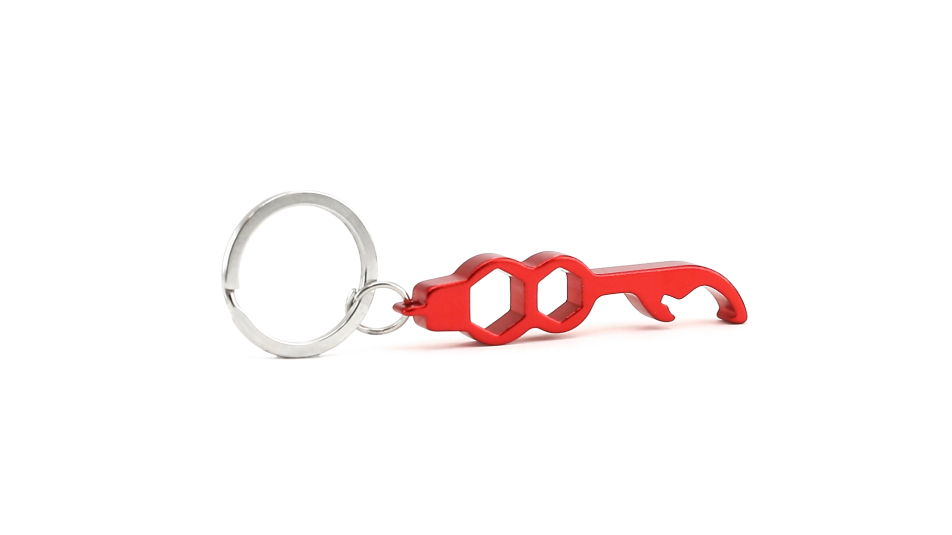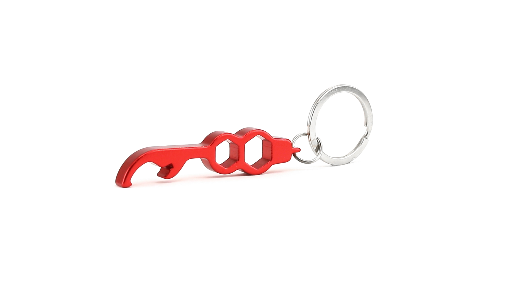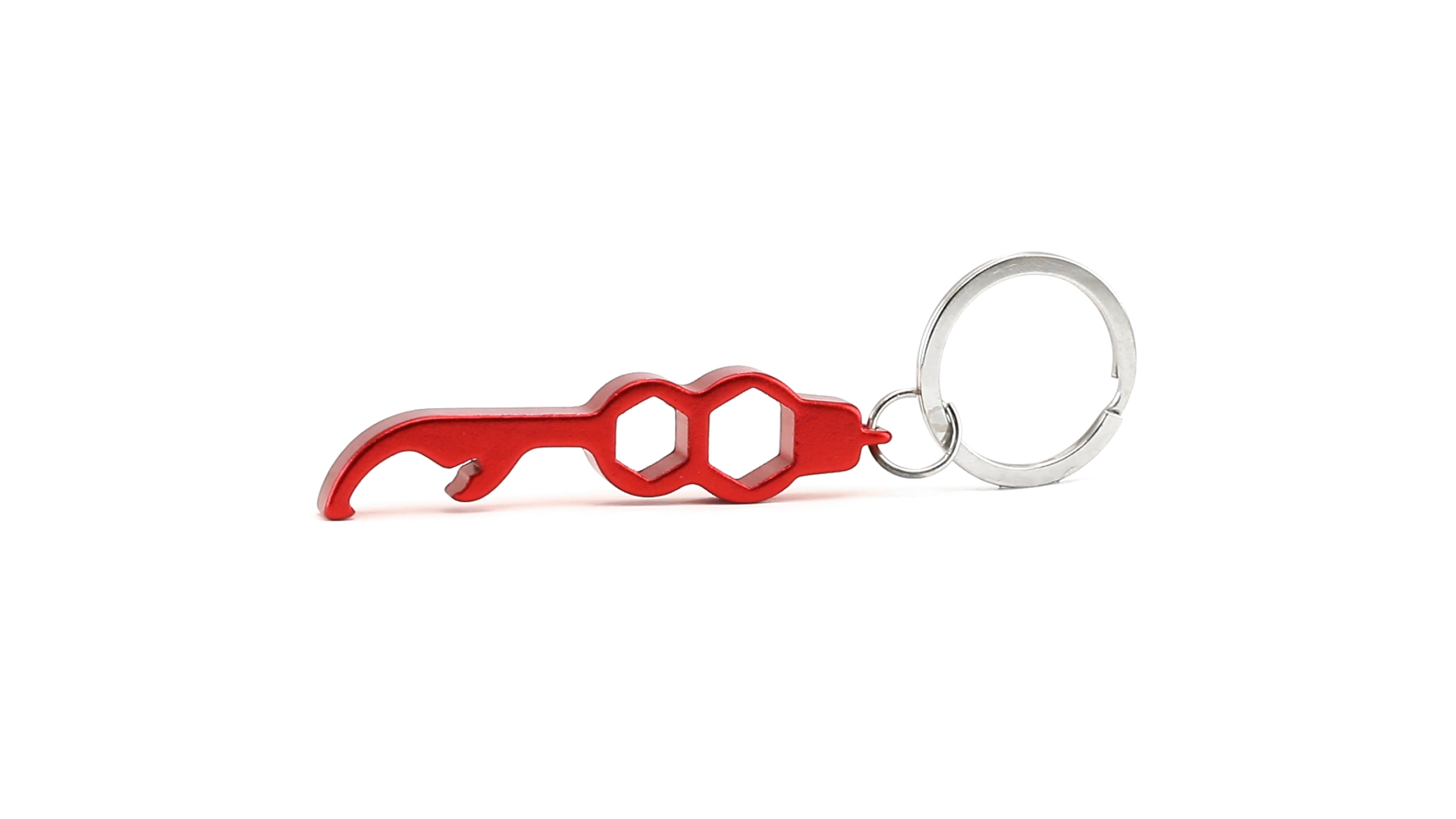 Schlüsselanhänger aus Aluminium in verschiedenen lebendigen Farben. Mit integriertem Sechskantmutter-Schlüssel. Speziell entworfen für den Laserdruck.