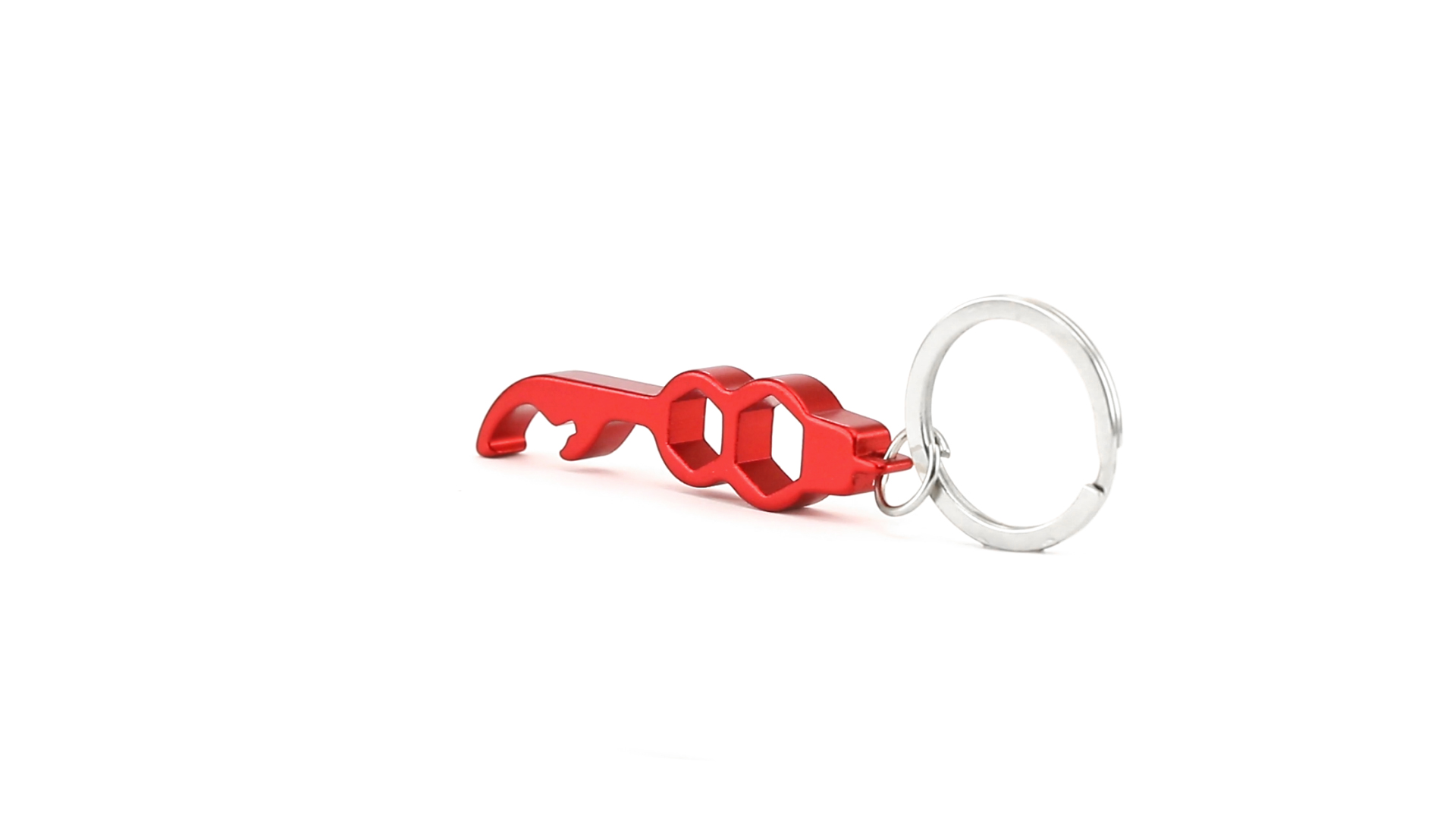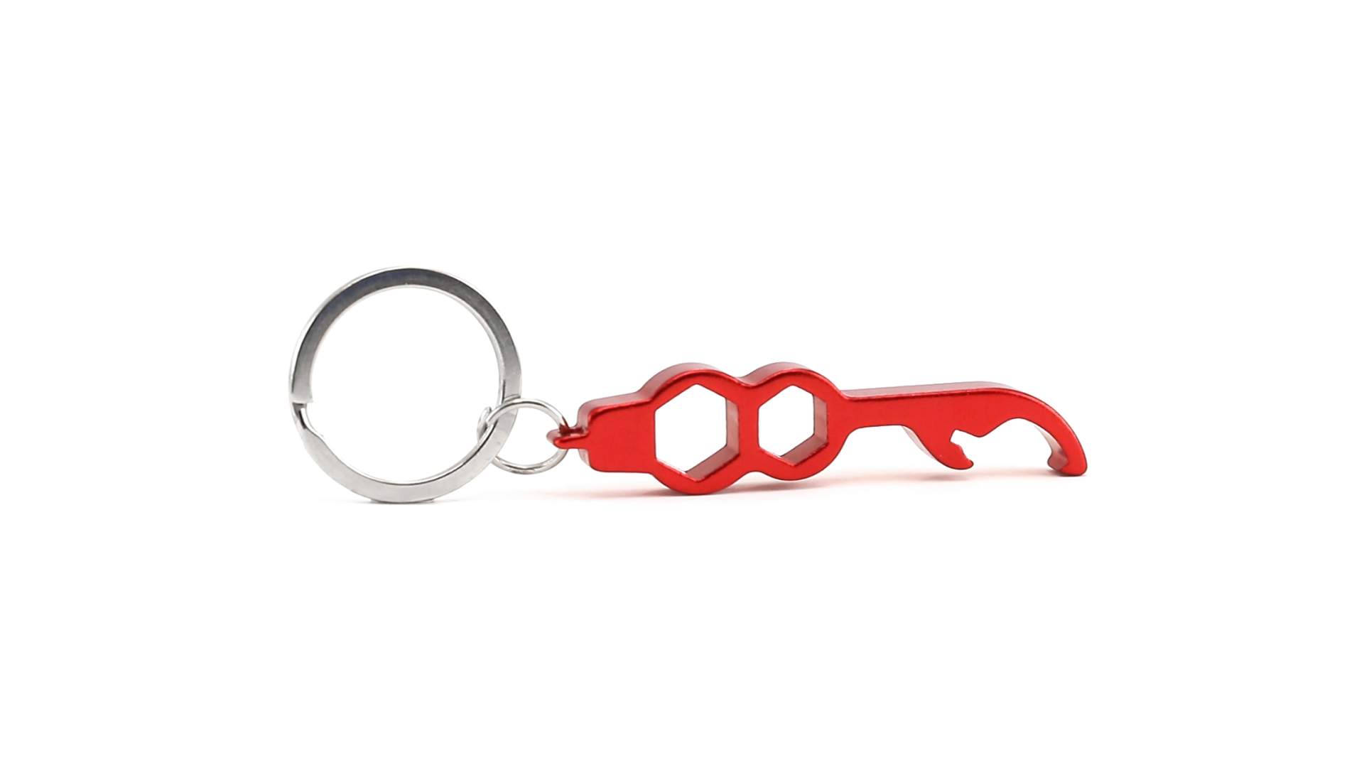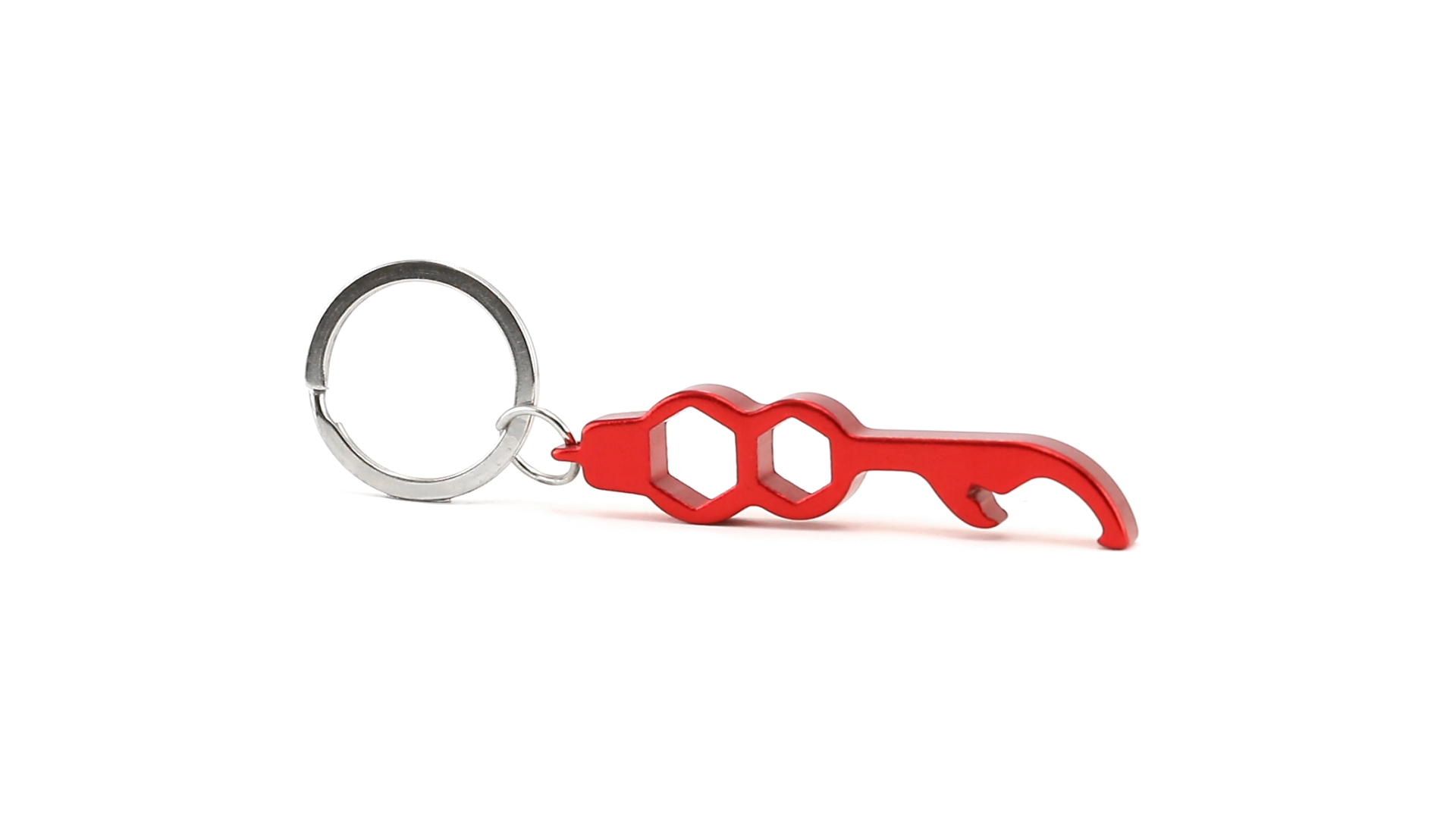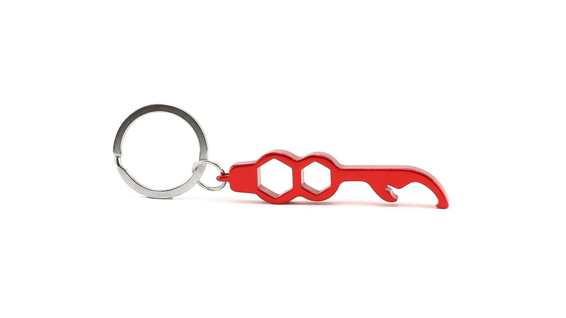 Schlüsselanhänger aus Aluminium in verschiedenen lebendigen Farben. Mit integriertem Sechskantmutter-Schlüssel. Speziell entworfen für den Laserdruck.