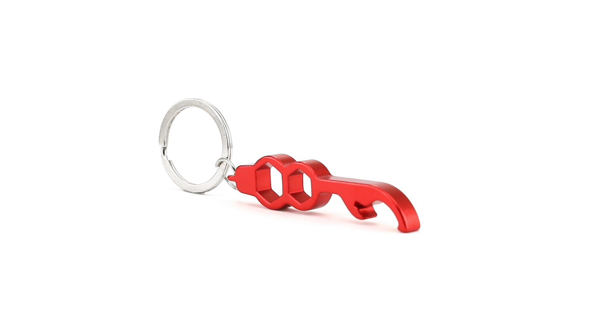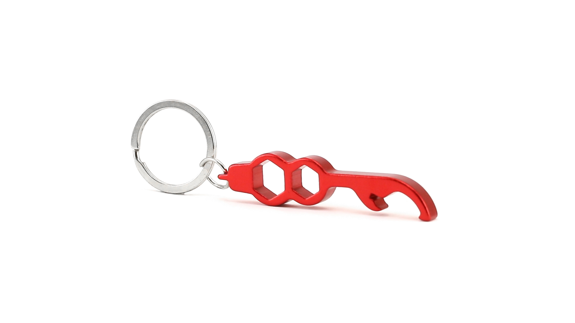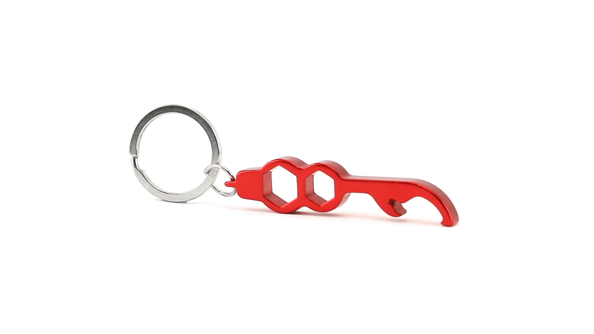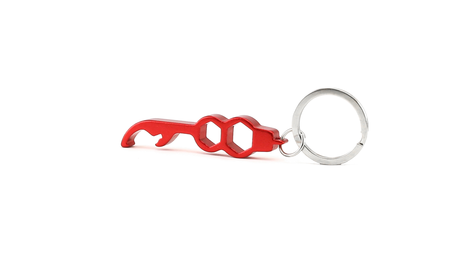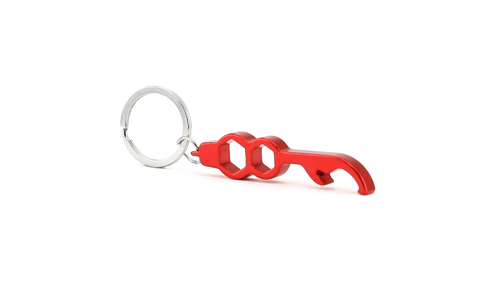 Schlüsselanhänger aus Aluminium in verschiedenen lebendigen Farben. Mit integriertem Sechskantmutter-Schlüssel. Speziell entworfen für den Laserdruck.