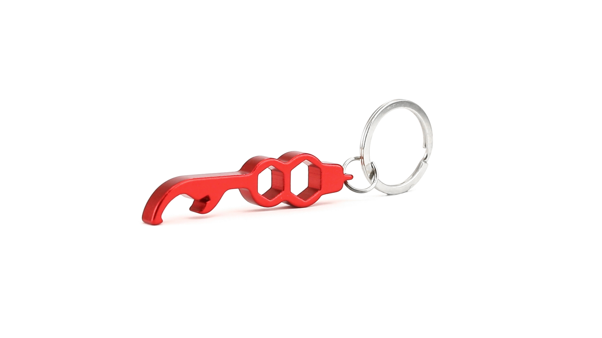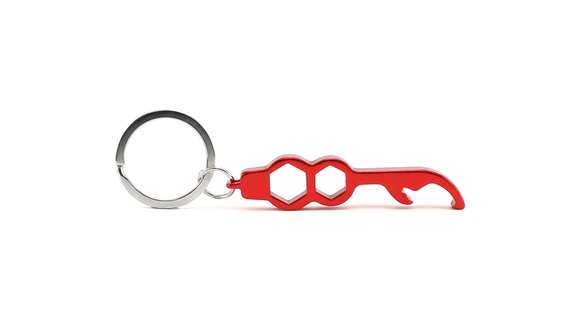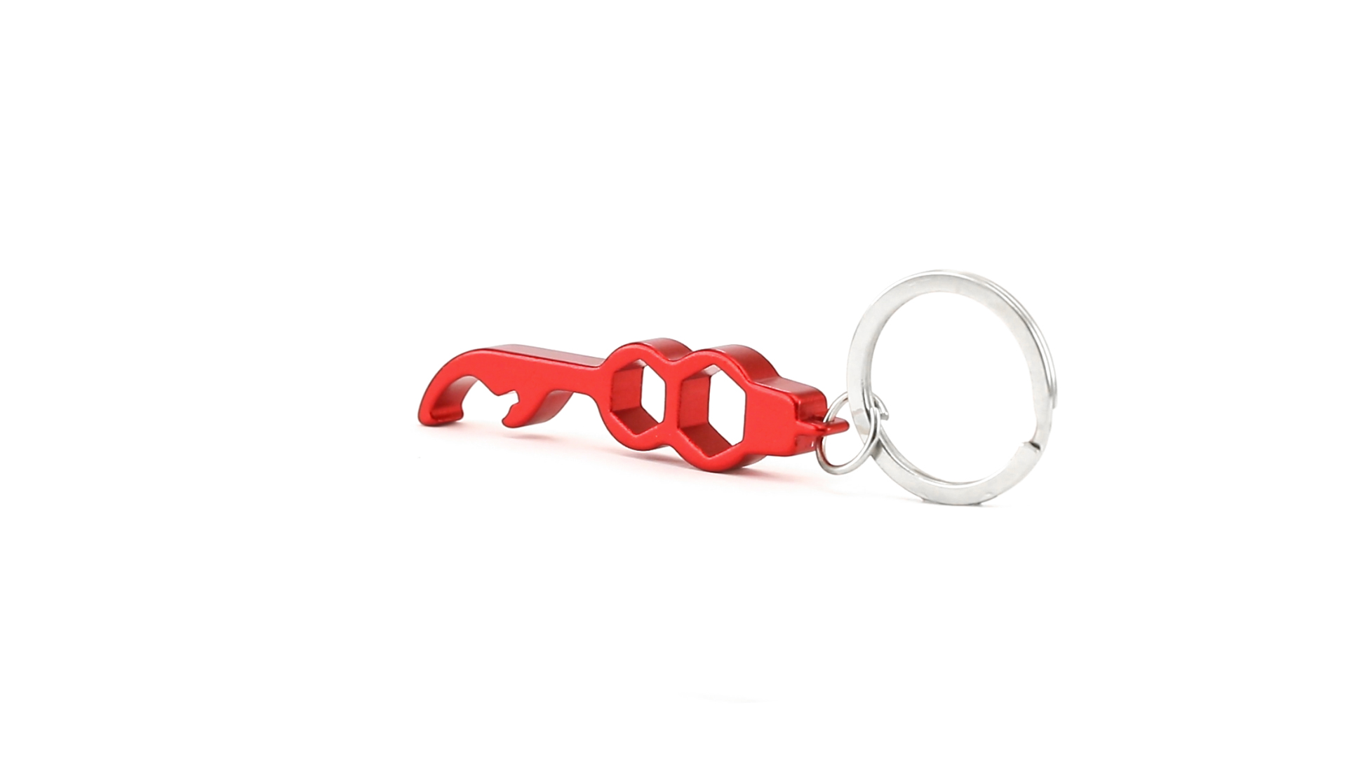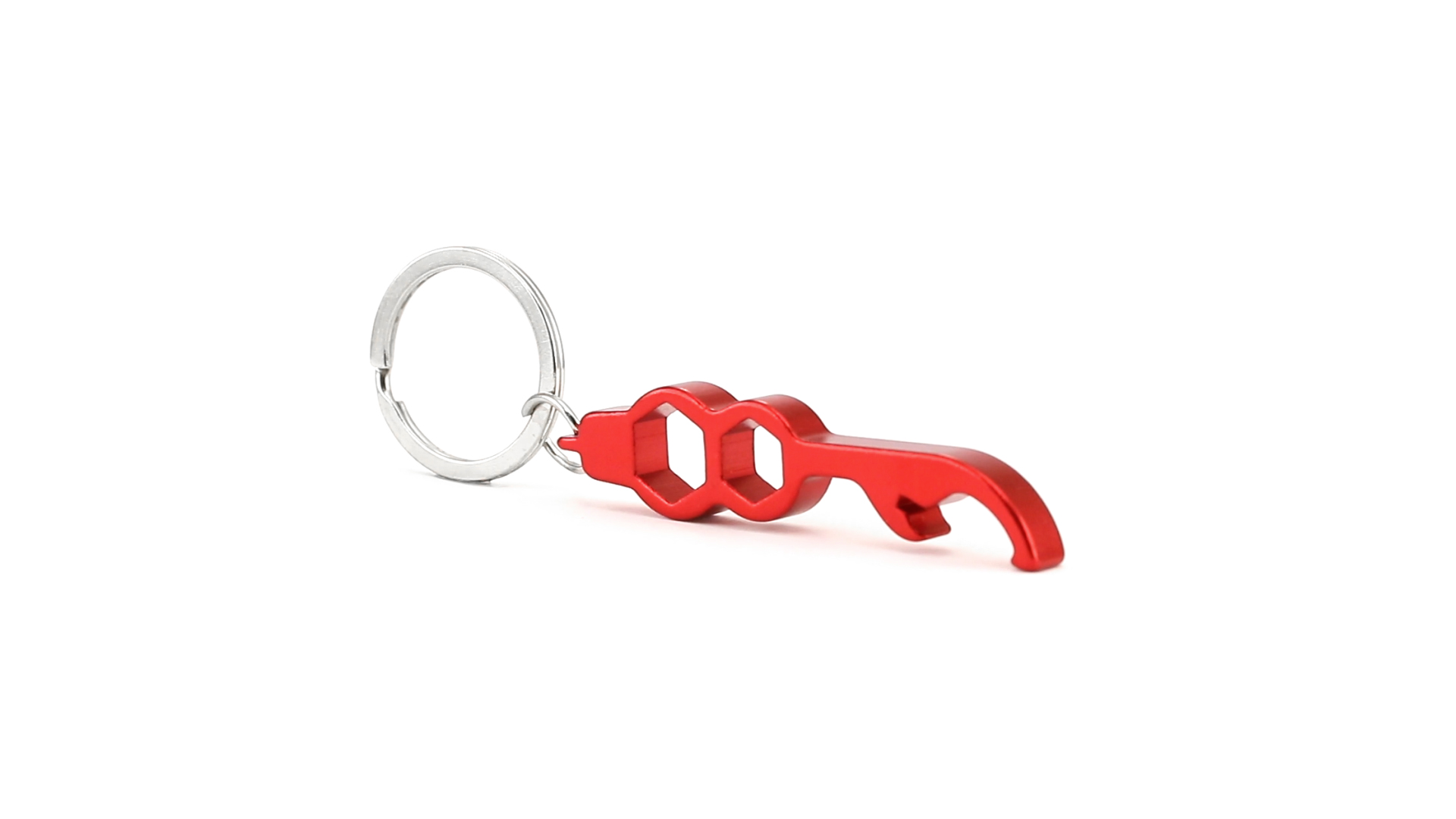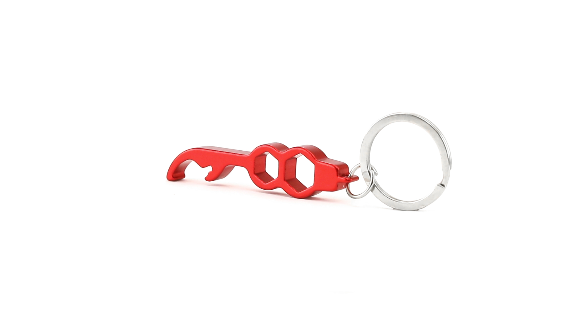 Schlüsselanhänger aus Aluminium in verschiedenen lebendigen Farben. Mit integriertem Sechskantmutter-Schlüssel. Speziell entworfen für den Laserdruck.