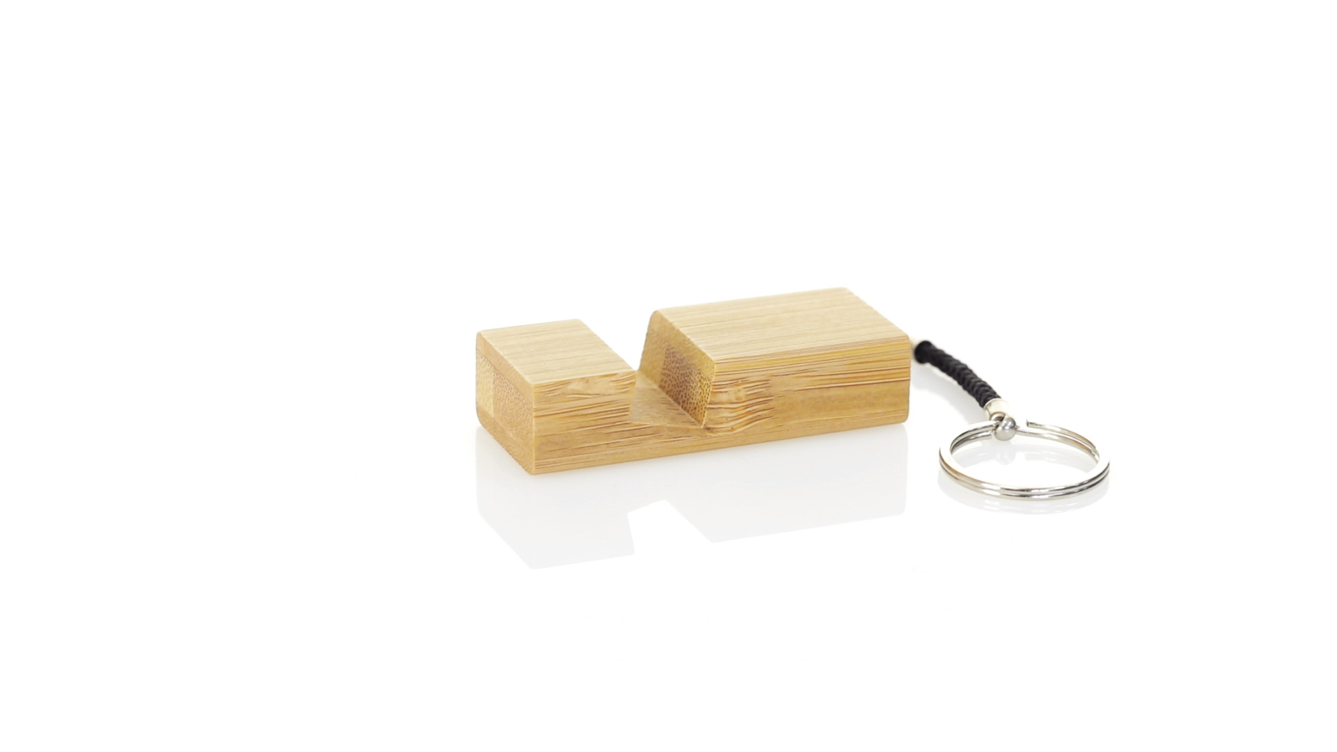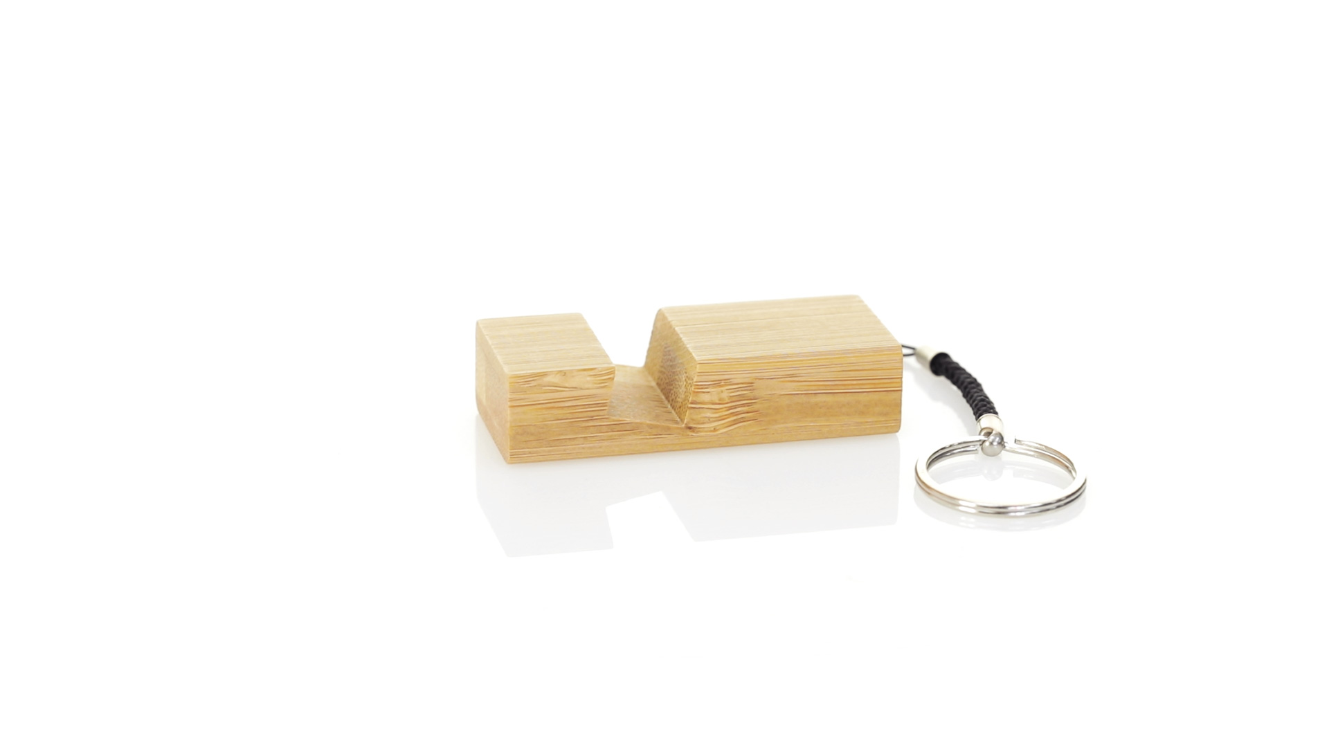 Nature Line Schlüsselanhängerhalter für Smartphone. Aus widerstandsfähigem Bambus mit lackierter Oberfläche, mit starker Kordel und Metallring.