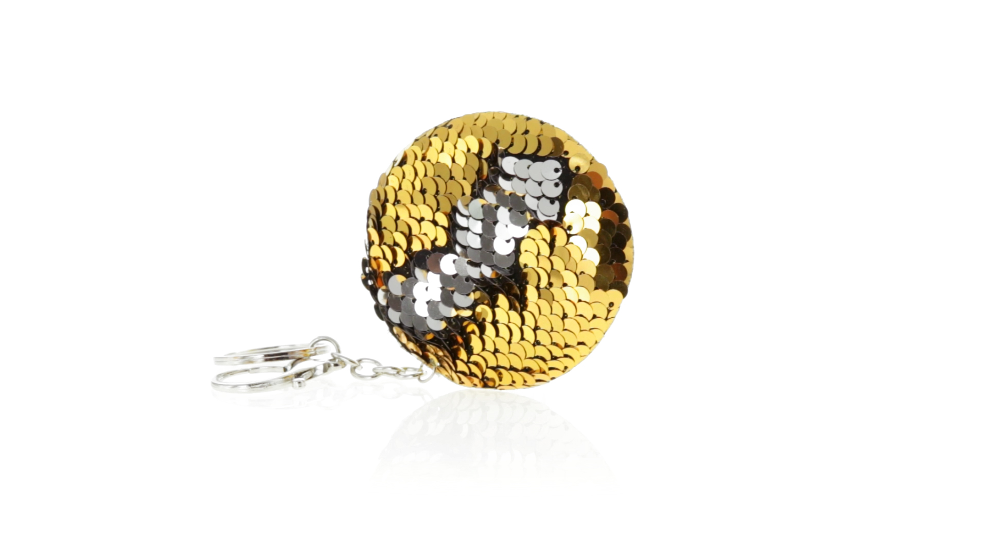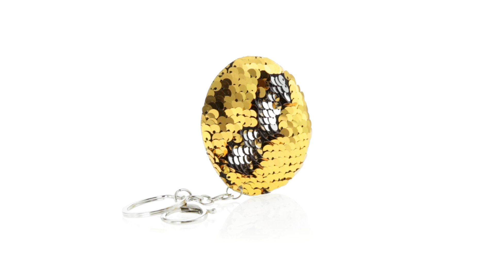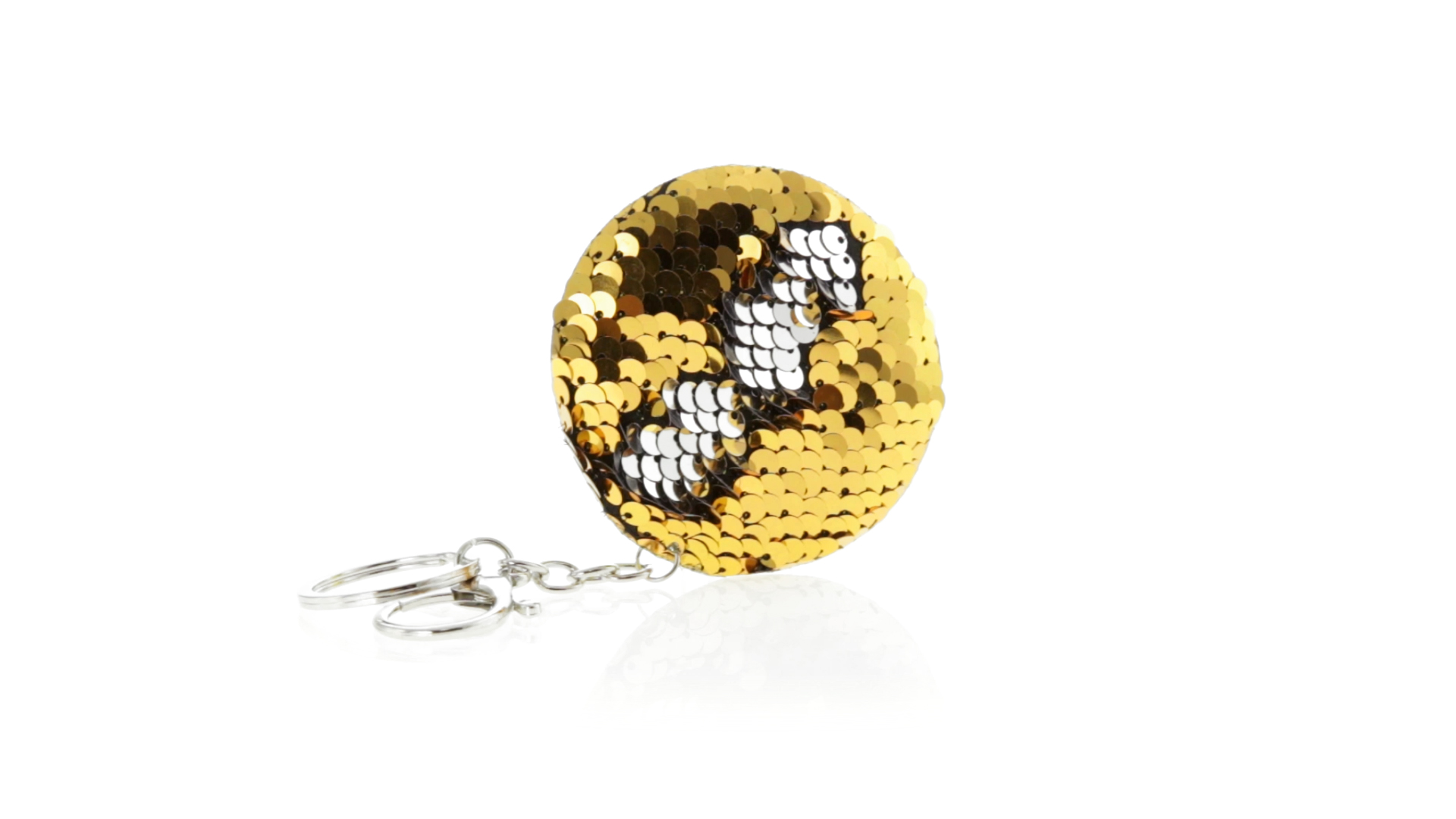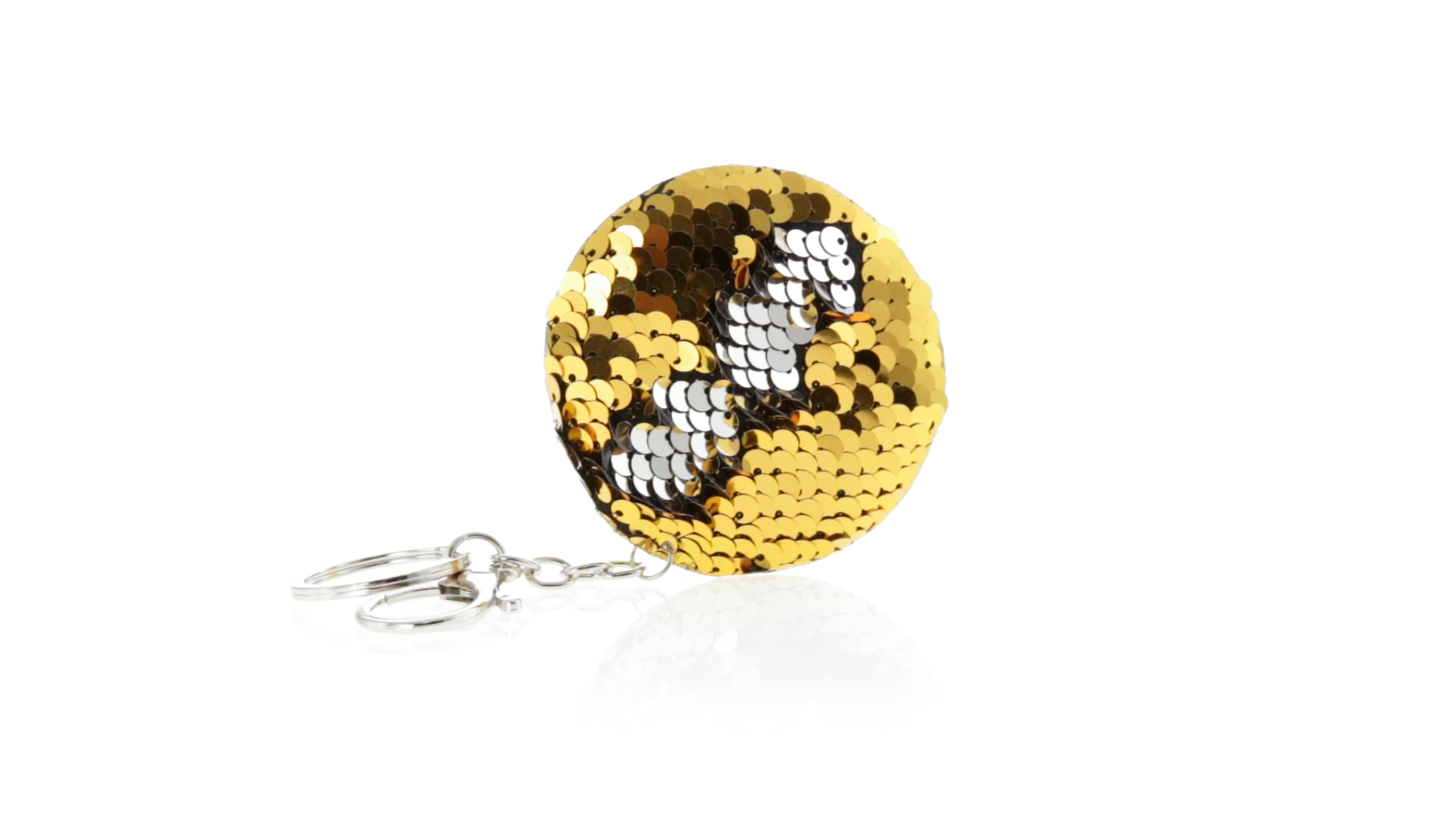 Interaktiver Pailletten-Schlüsselanhänger in auffälligen Metallic-Farben. Wenn Sie mit dem Finger über die Pailletten gleiten, ändert sich die Farbe. Einfarbige Rückseite aus Polyester für einfaches Bedrucken.