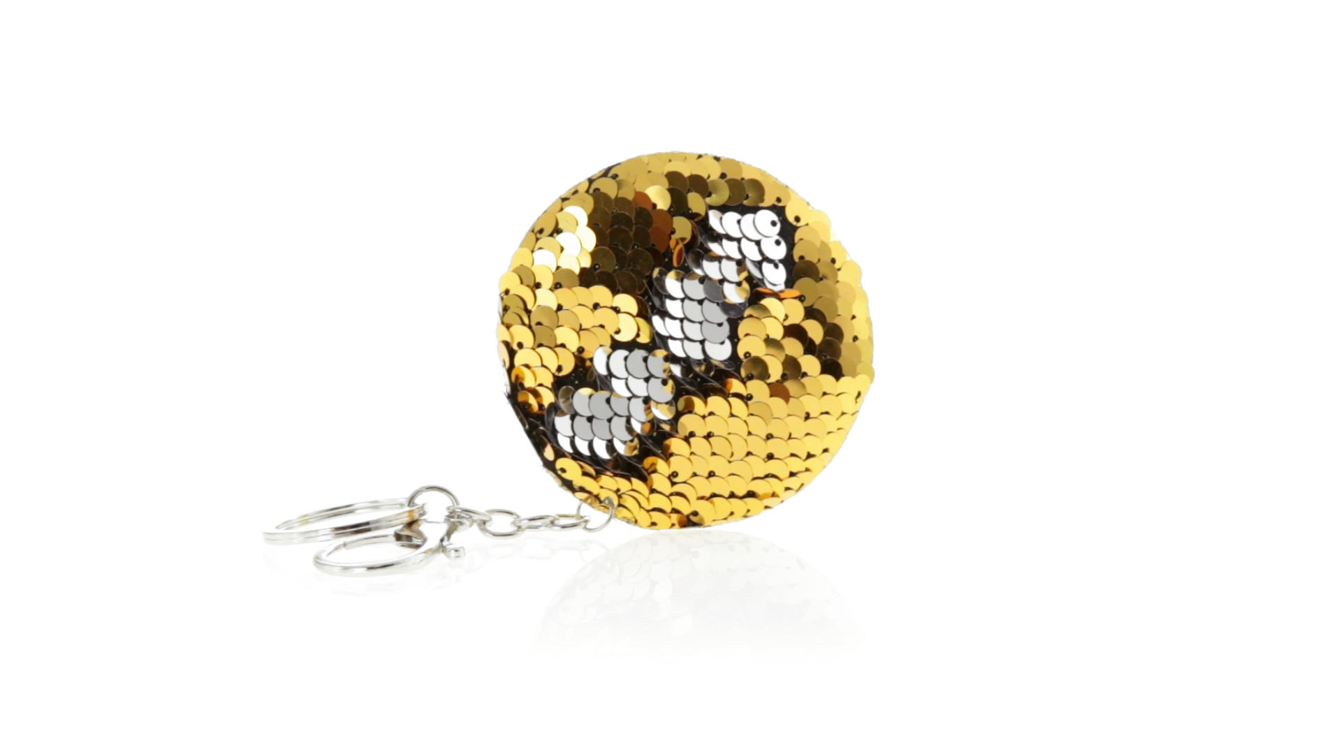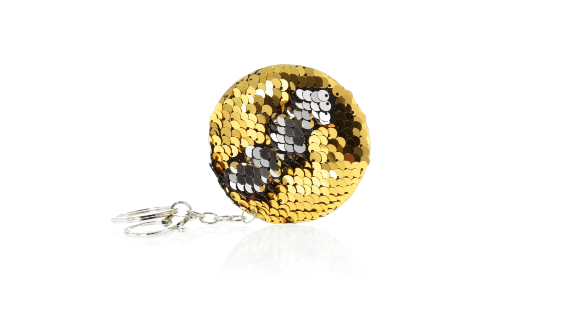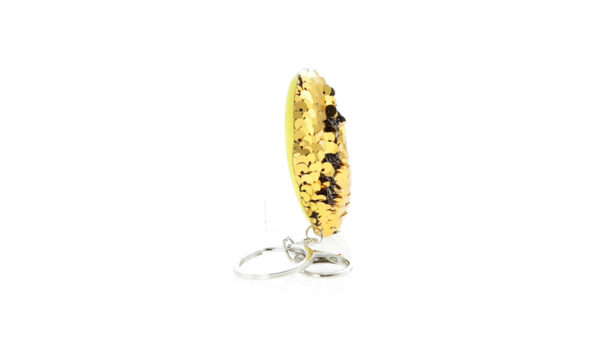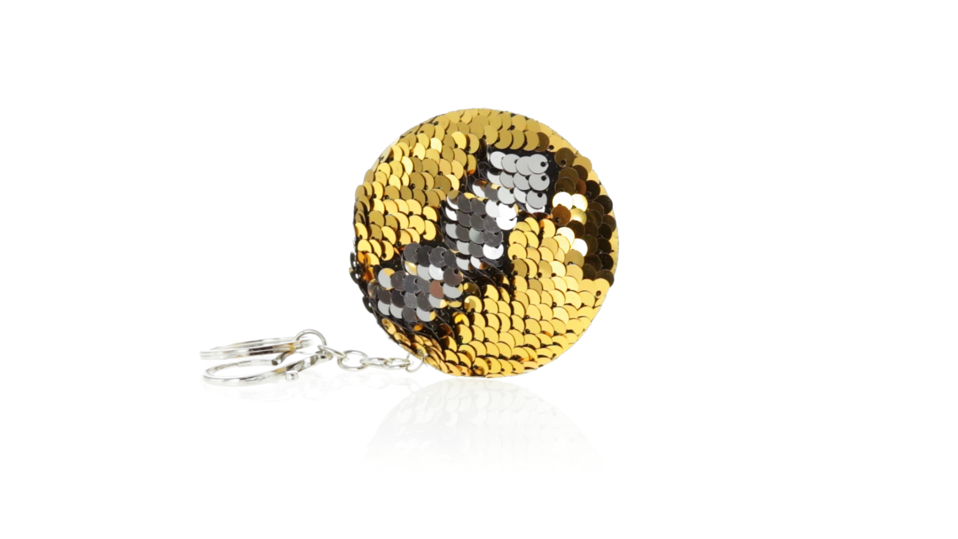 Interaktiver Pailletten-Schlüsselanhänger in auffälligen Metallic-Farben. Wenn Sie mit dem Finger über die Pailletten gleiten, ändert sich die Farbe. Einfarbige Rückseite aus Polyester für einfaches Bedrucken.