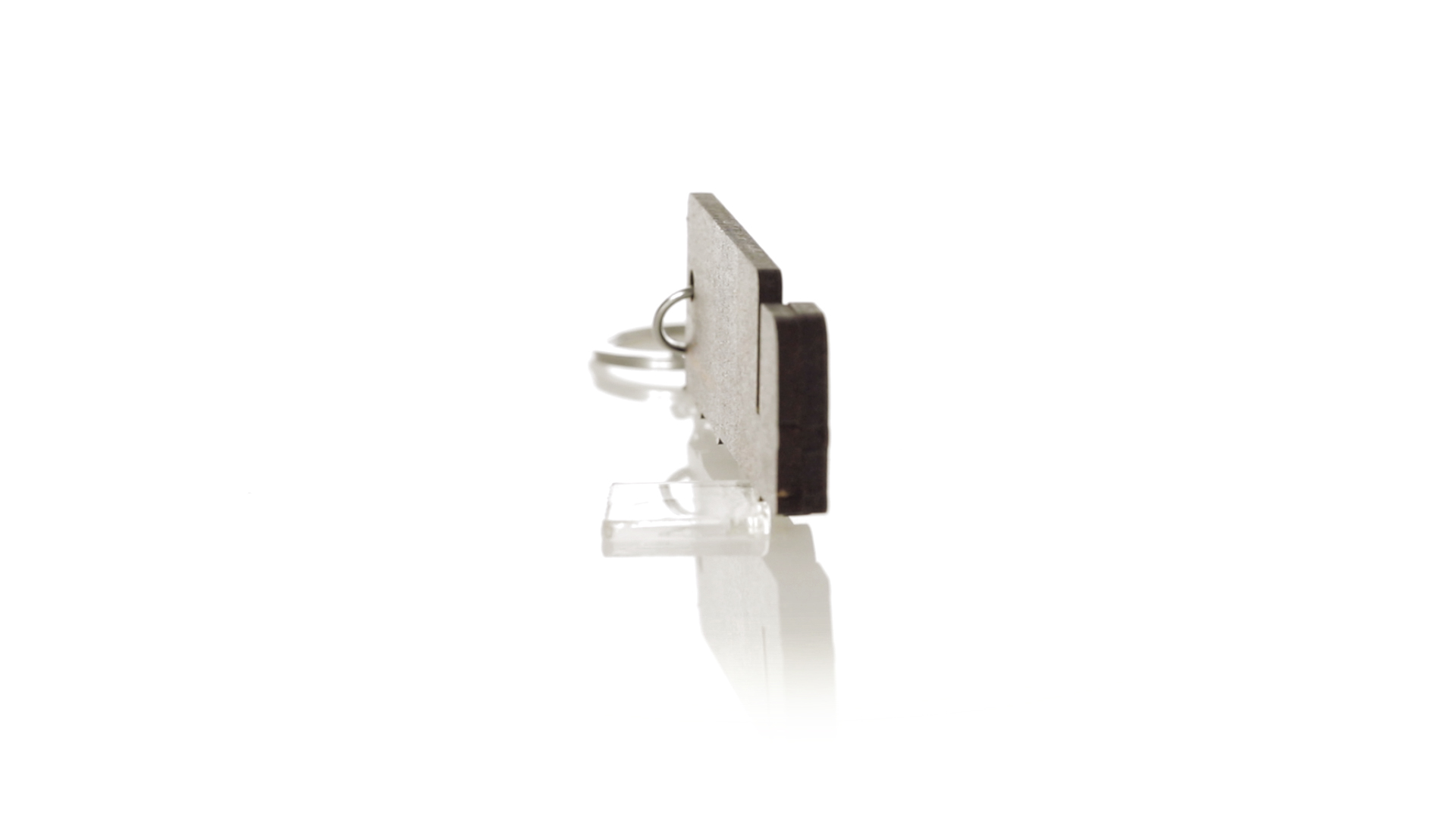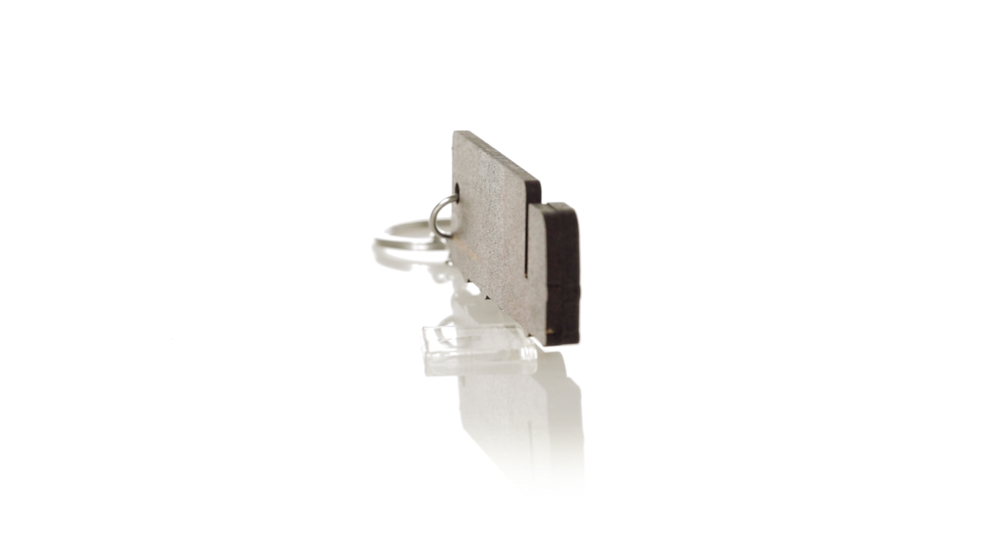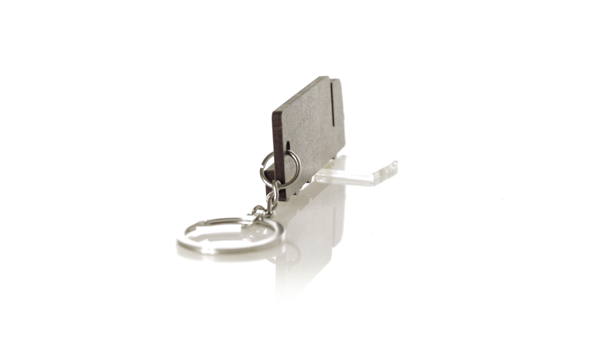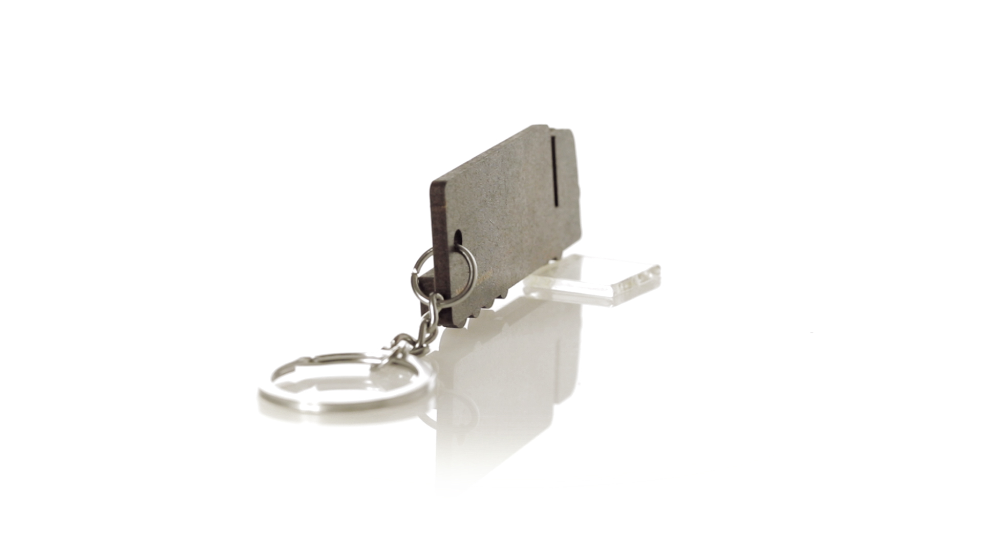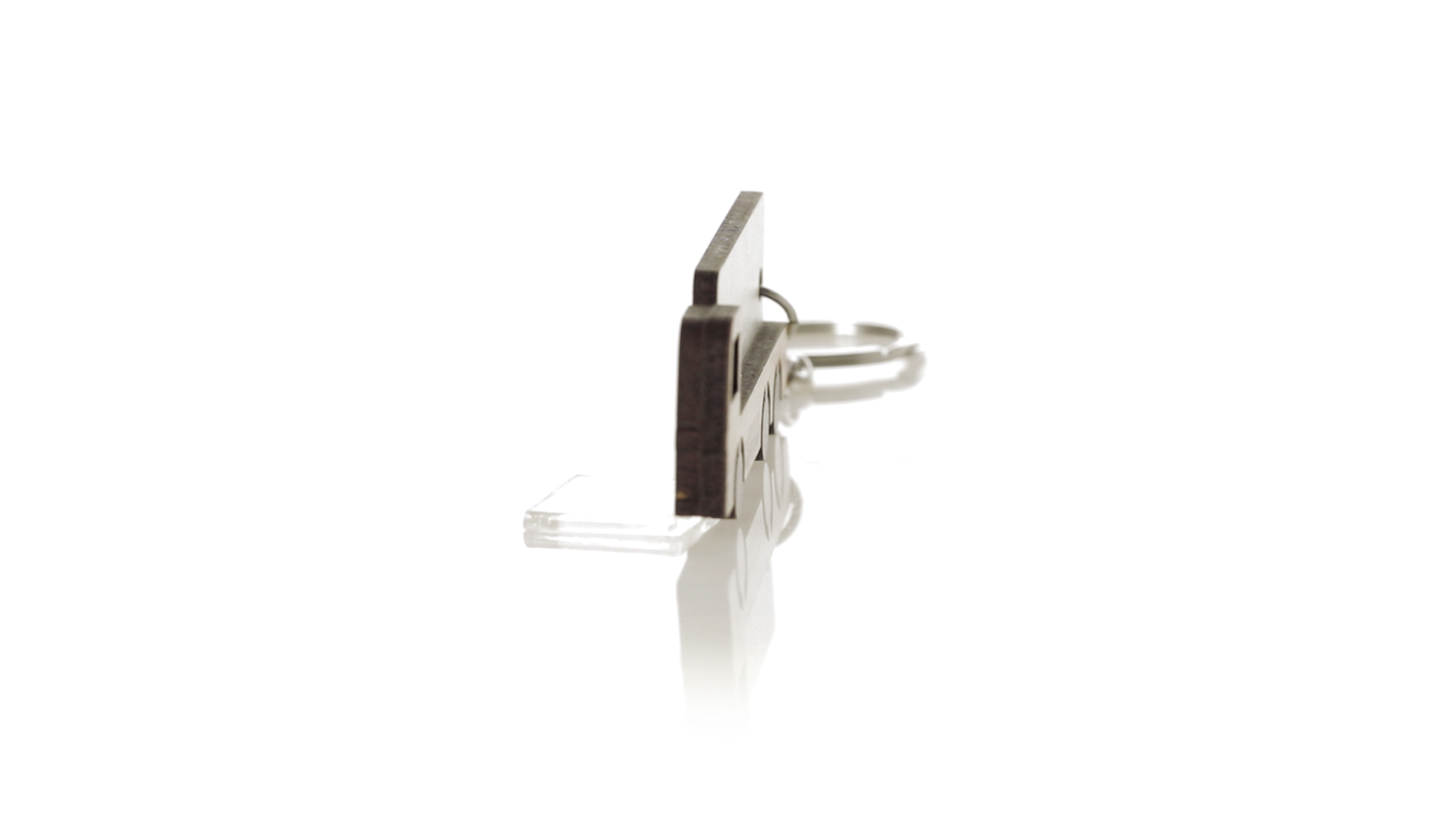 Schlüsselanhänger mit Lkw-Motiv, aus Naturholz und mit Original-Bicolor-Finish. Grosse Branding-Fläche, mit Metallring und -kette und Made in Europe-Logo.