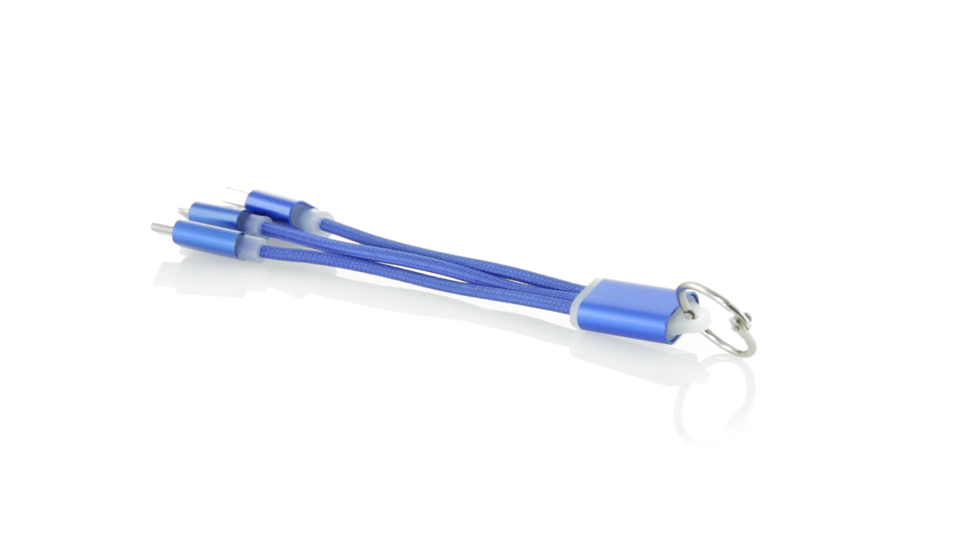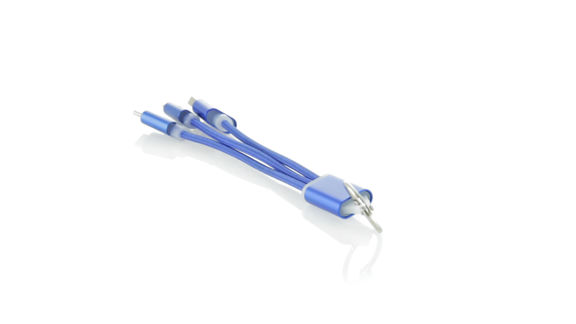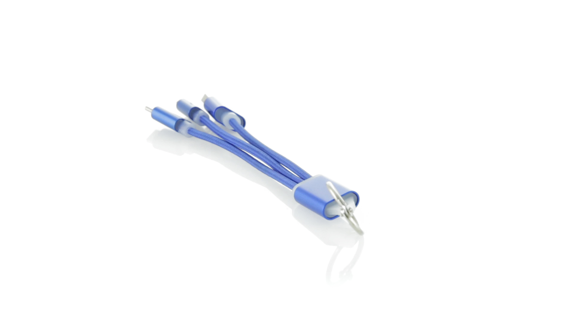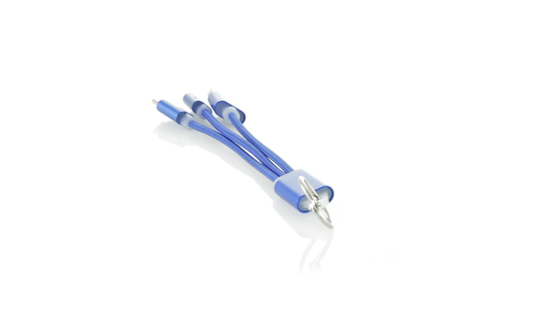3-in-1 Ladekabel mit USB-C-, Micro-USB-und Lightning-Anschluss. Mit besonders resistenter Nylonbeschichtung für den intensiven Gebrauch und Aluminiumverbindern, die speziell für den Laserdruck entwickelt wurden. Erhältlich in einer Vielzahl von Farben. Mit Schlüsselring.