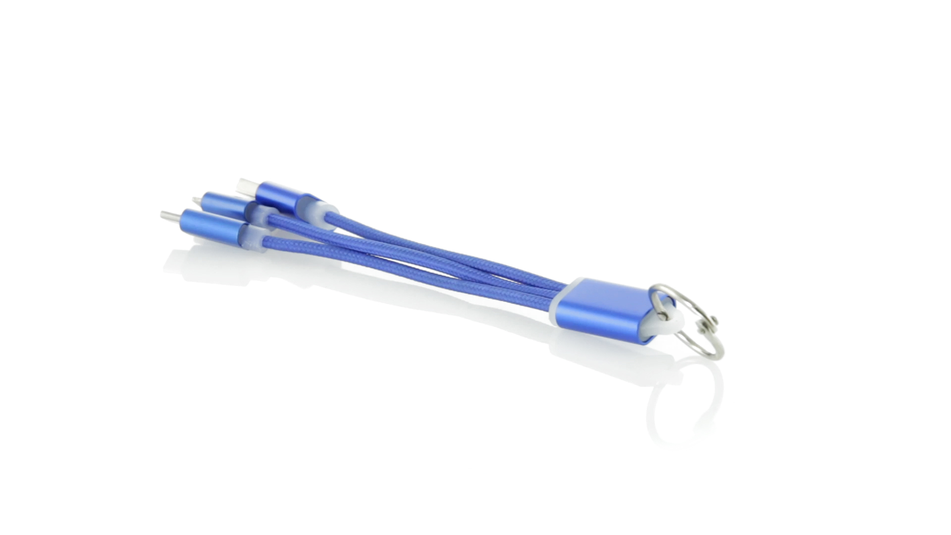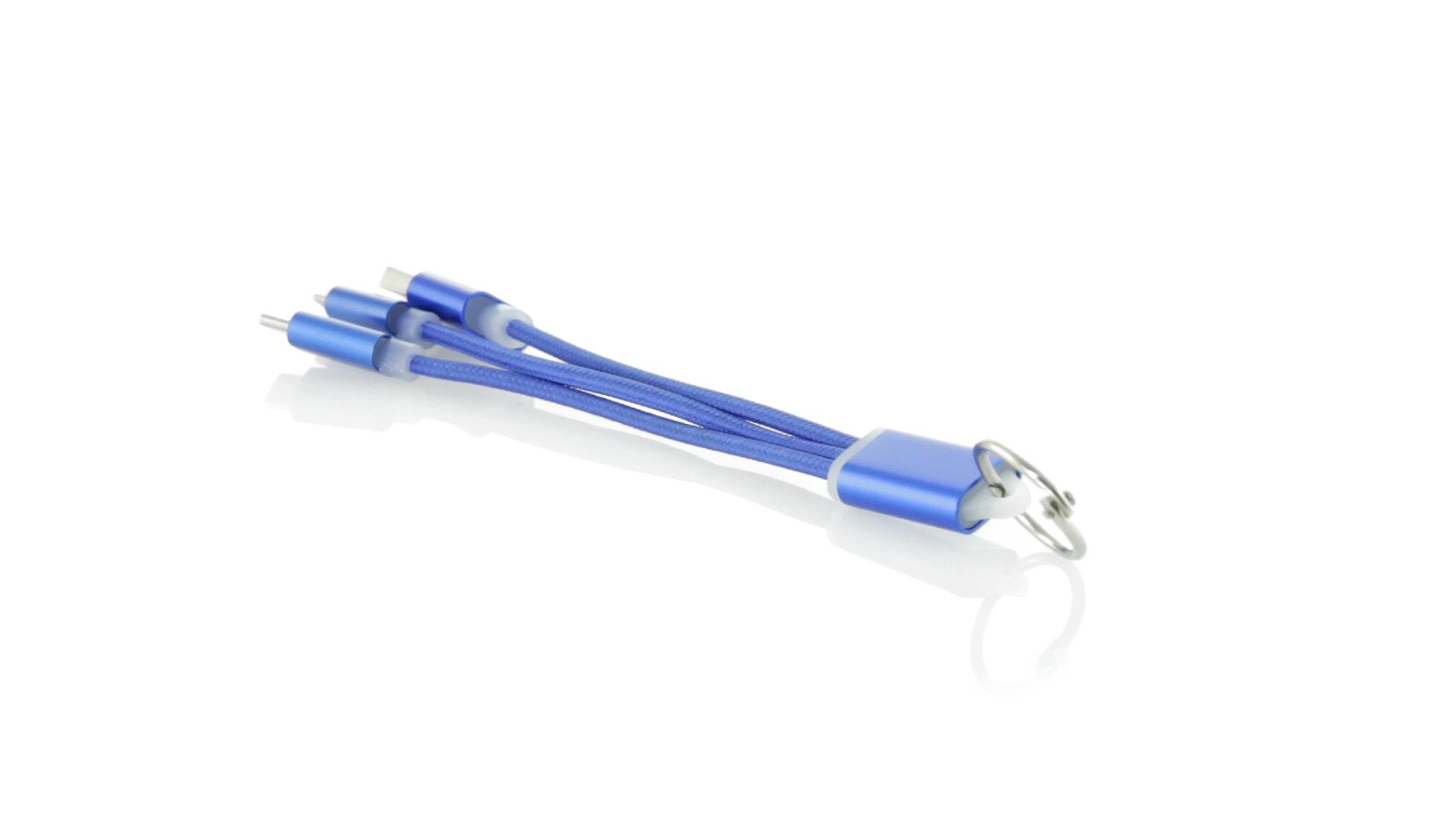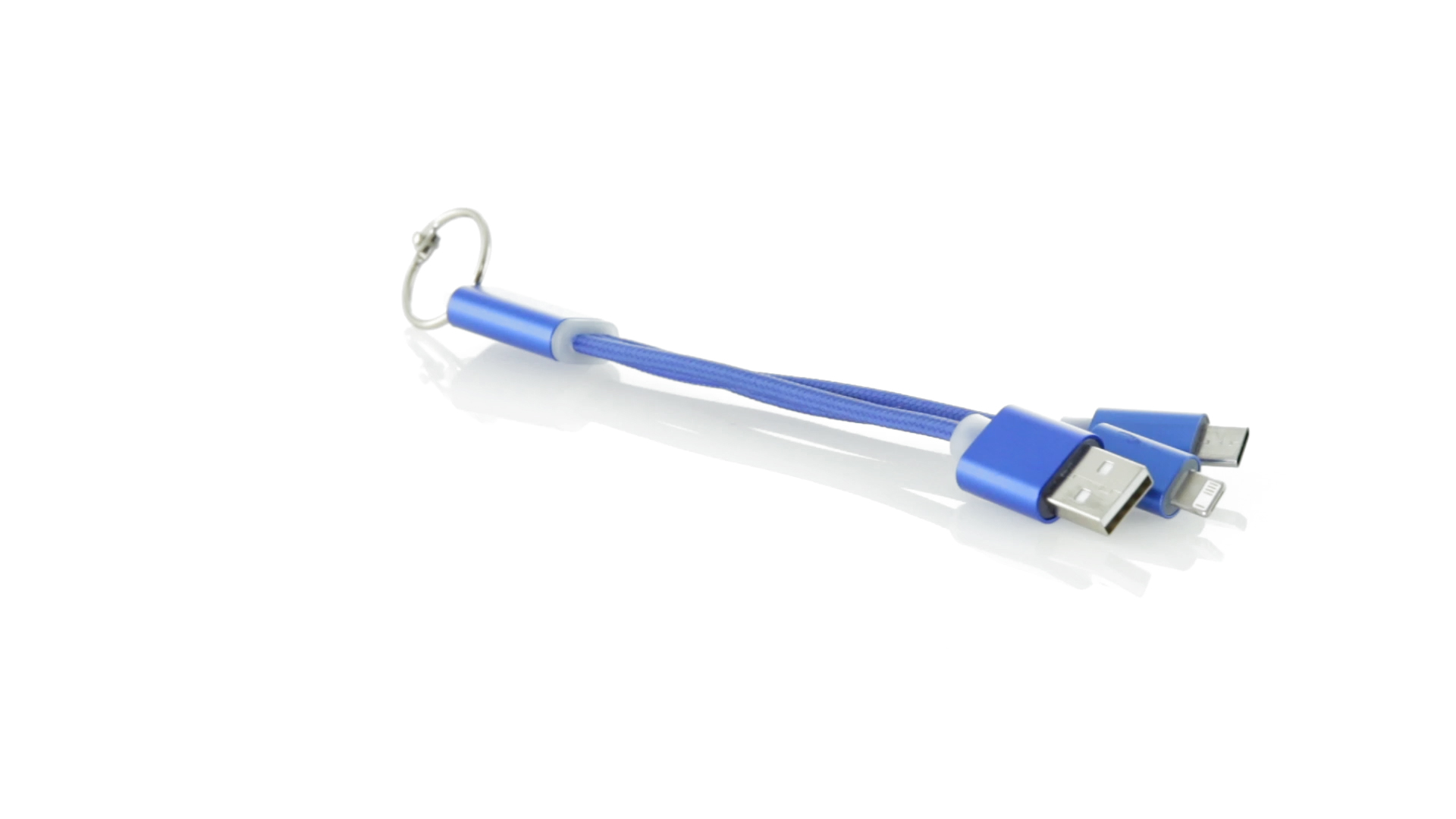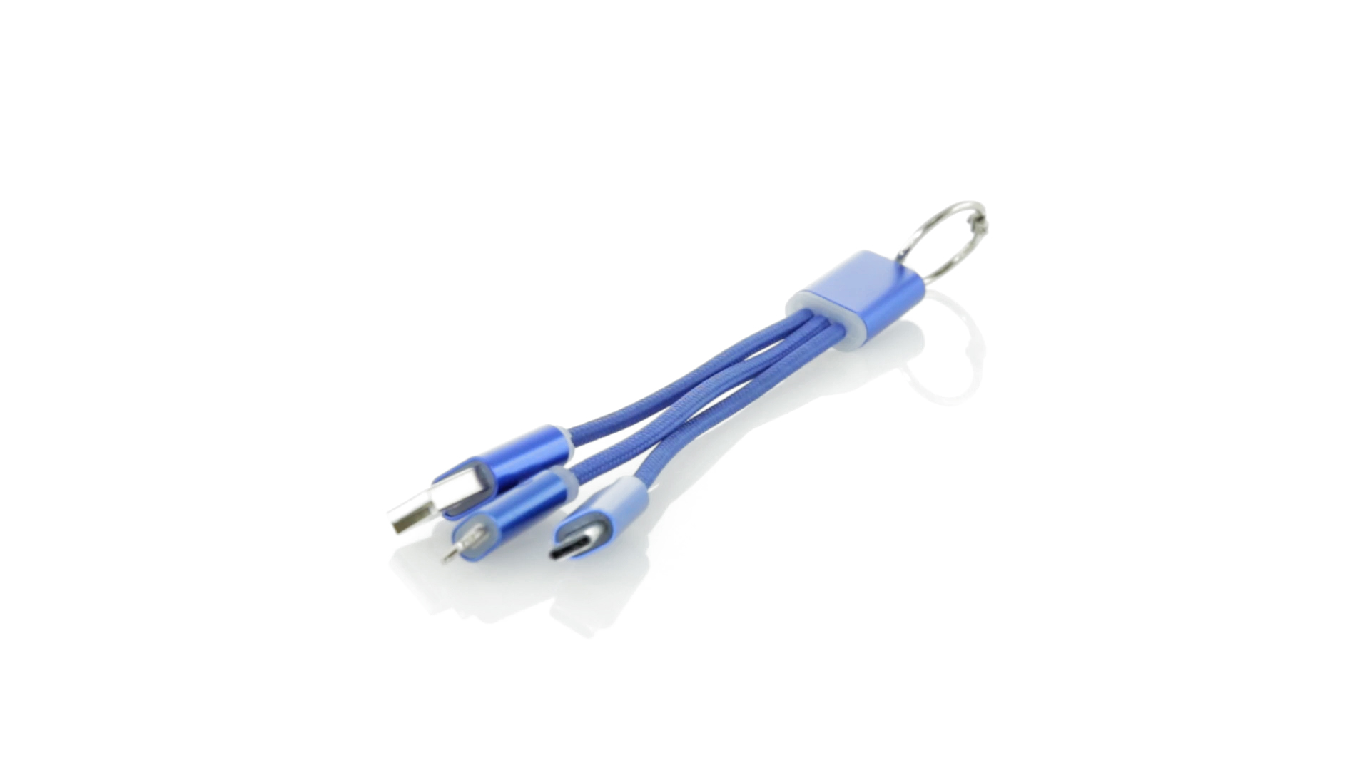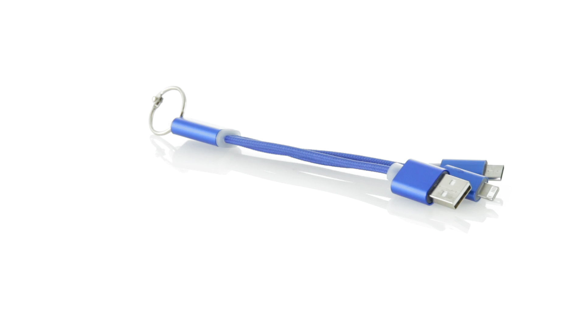 3-in-1 Ladekabel mit USB-C-, Micro-USB-und Lightning-Anschluss. Mit besonders resistenter Nylonbeschichtung für den intensiven Gebrauch und Aluminiumverbindern, die speziell für den Laserdruck entwickelt wurden. Erhältlich in einer Vielzahl von Farben. Mit Schlüsselring.