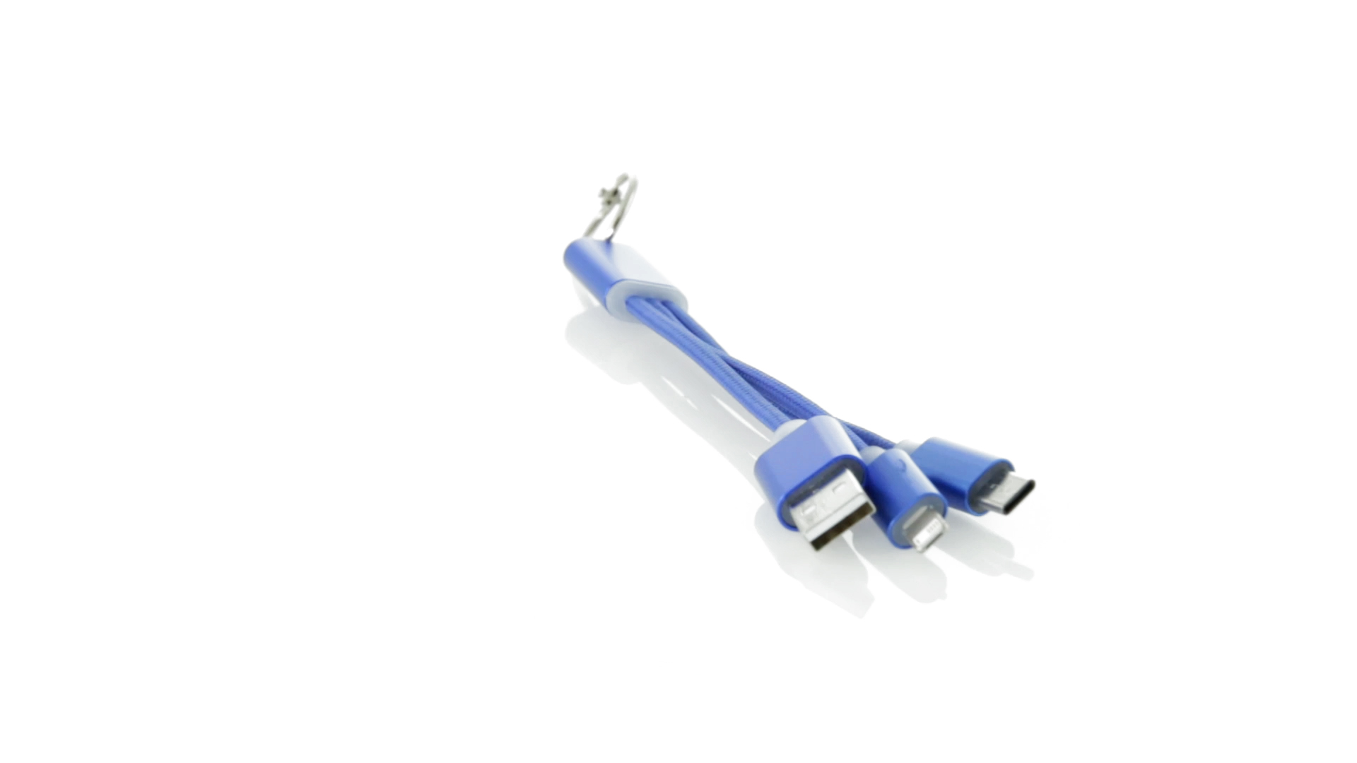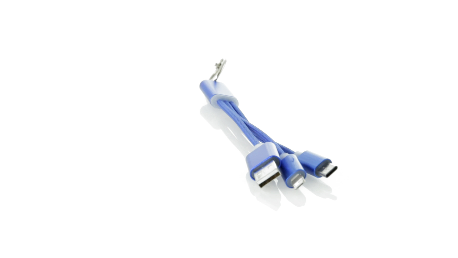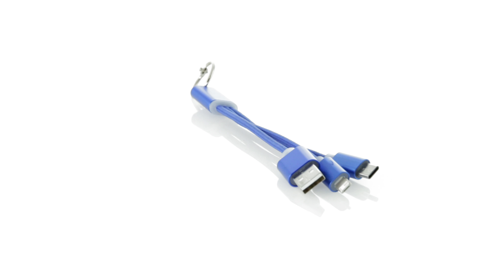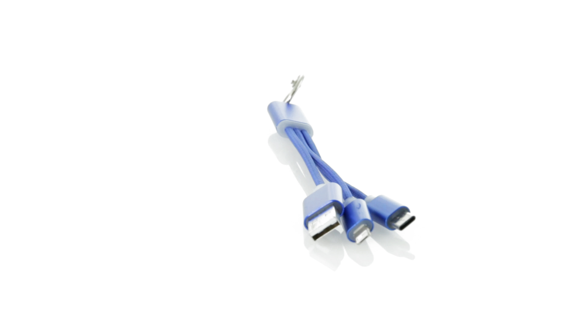 3-in-1 Ladekabel mit USB-C-, Micro-USB-und Lightning-Anschluss. Mit besonders resistenter Nylonbeschichtung für den intensiven Gebrauch und Aluminiumverbindern, die speziell für den Laserdruck entwickelt wurden. Erhältlich in einer Vielzahl von Farben. Mit Schlüsselring.