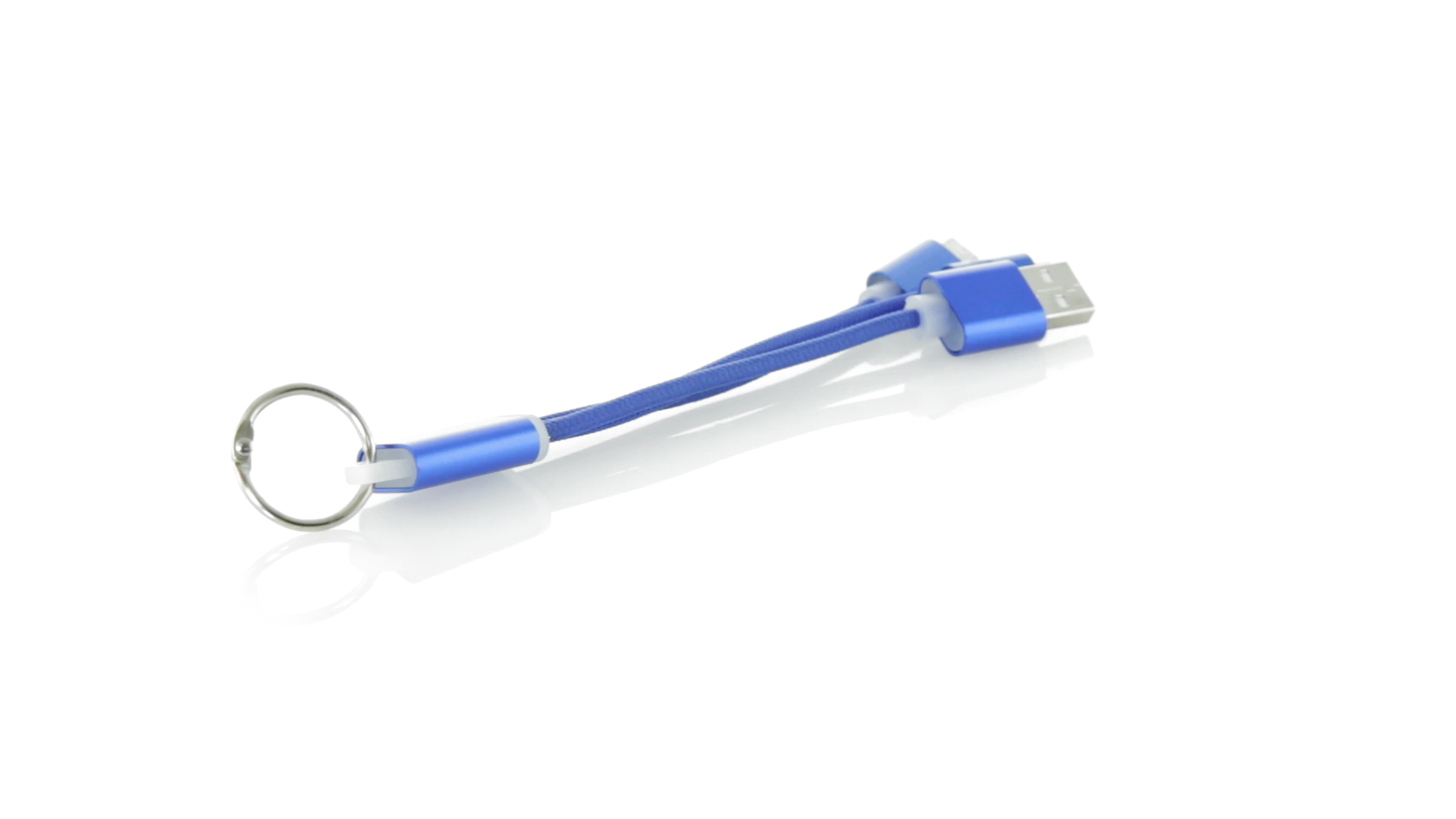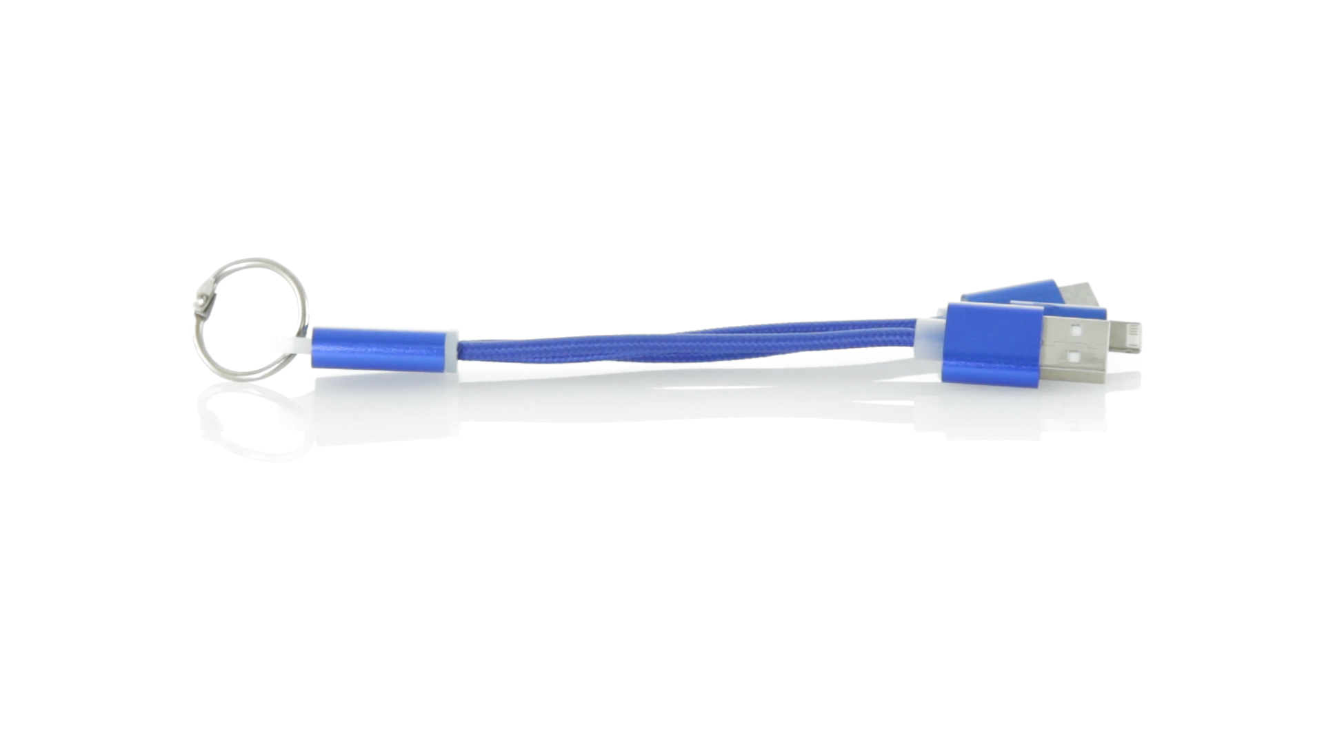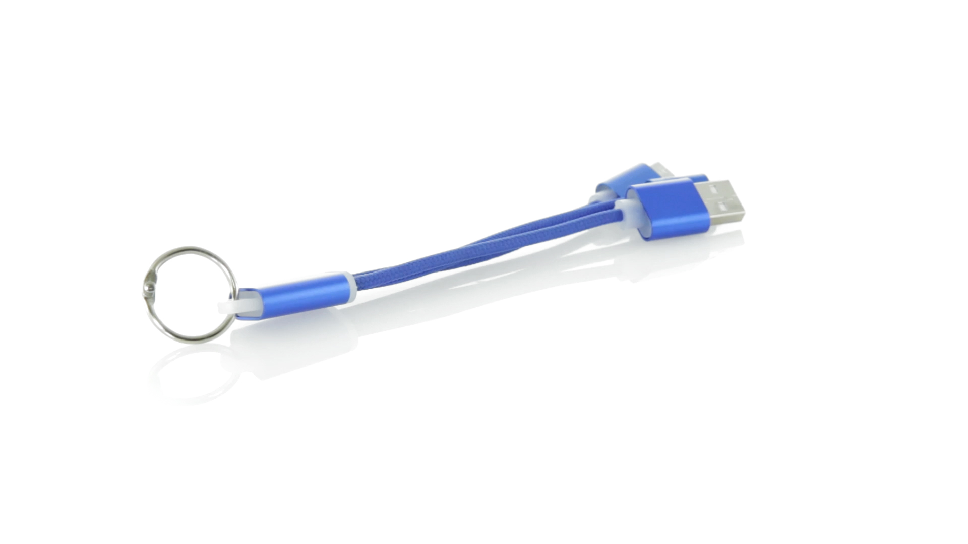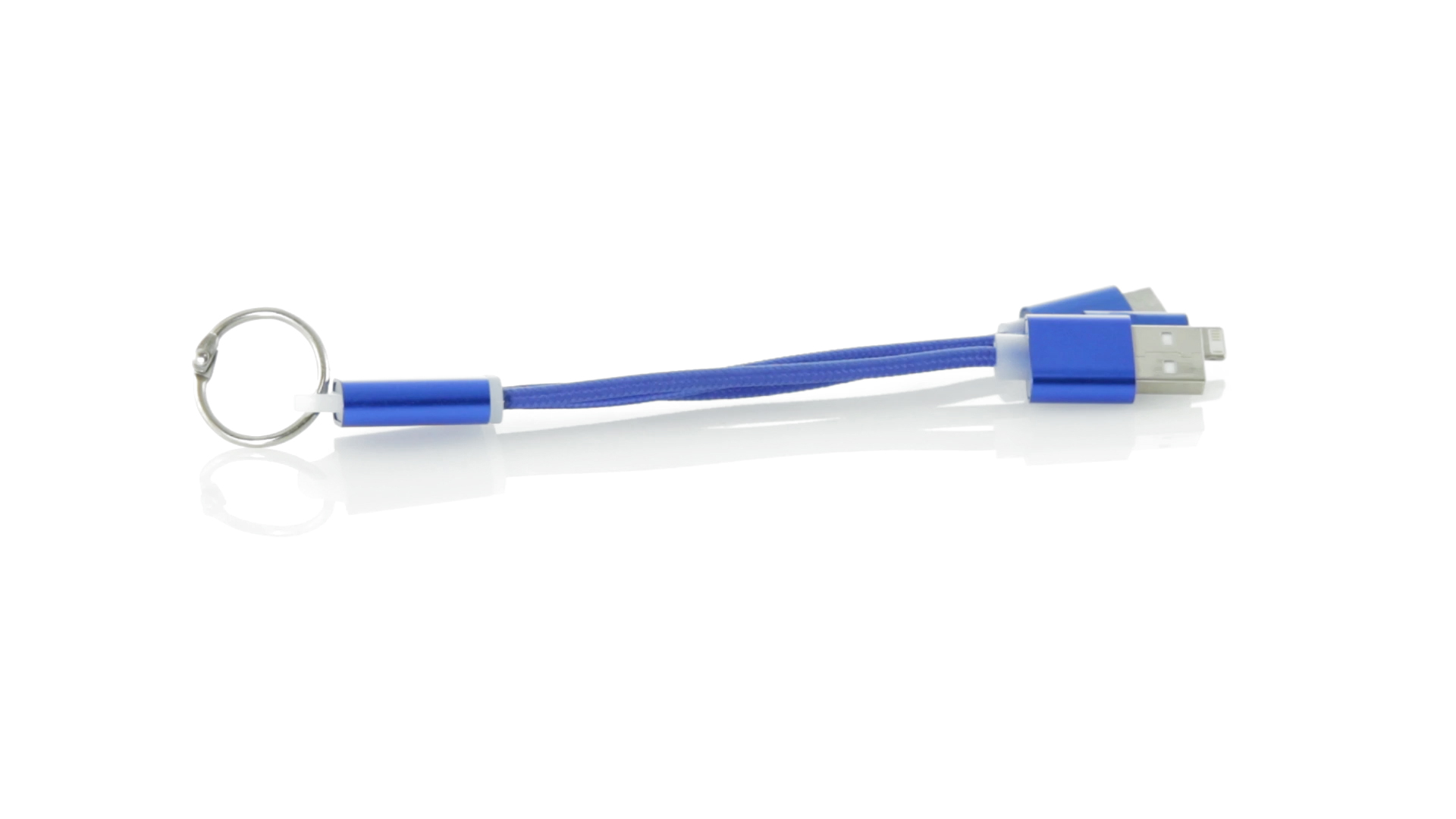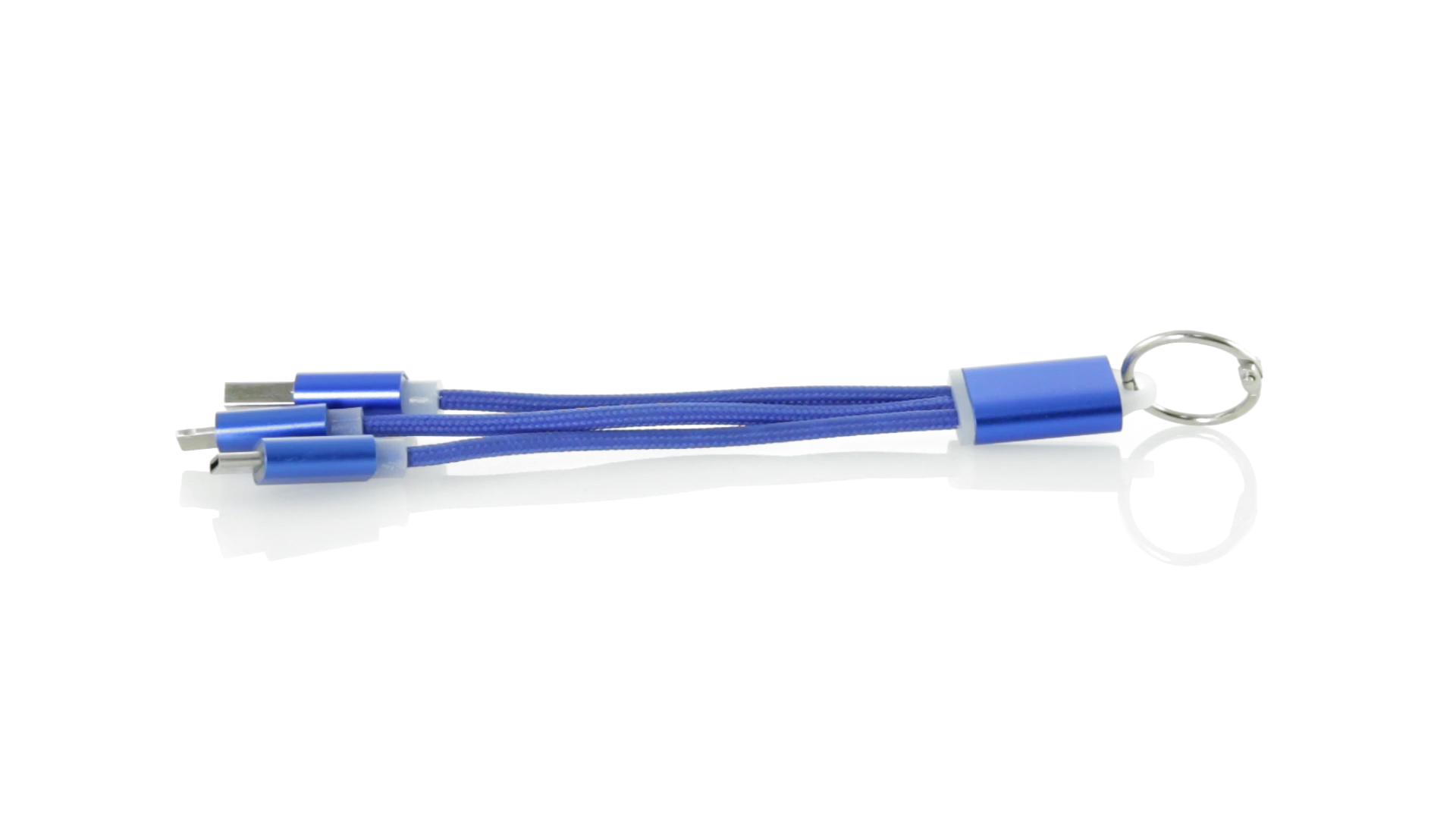 3-in-1 Ladekabel mit USB-C-, Micro-USB-und Lightning-Anschluss. Mit besonders resistenter Nylonbeschichtung für den intensiven Gebrauch und Aluminiumverbindern, die speziell für den Laserdruck entwickelt wurden. Erhältlich in einer Vielzahl von Farben. Mit Schlüsselring.