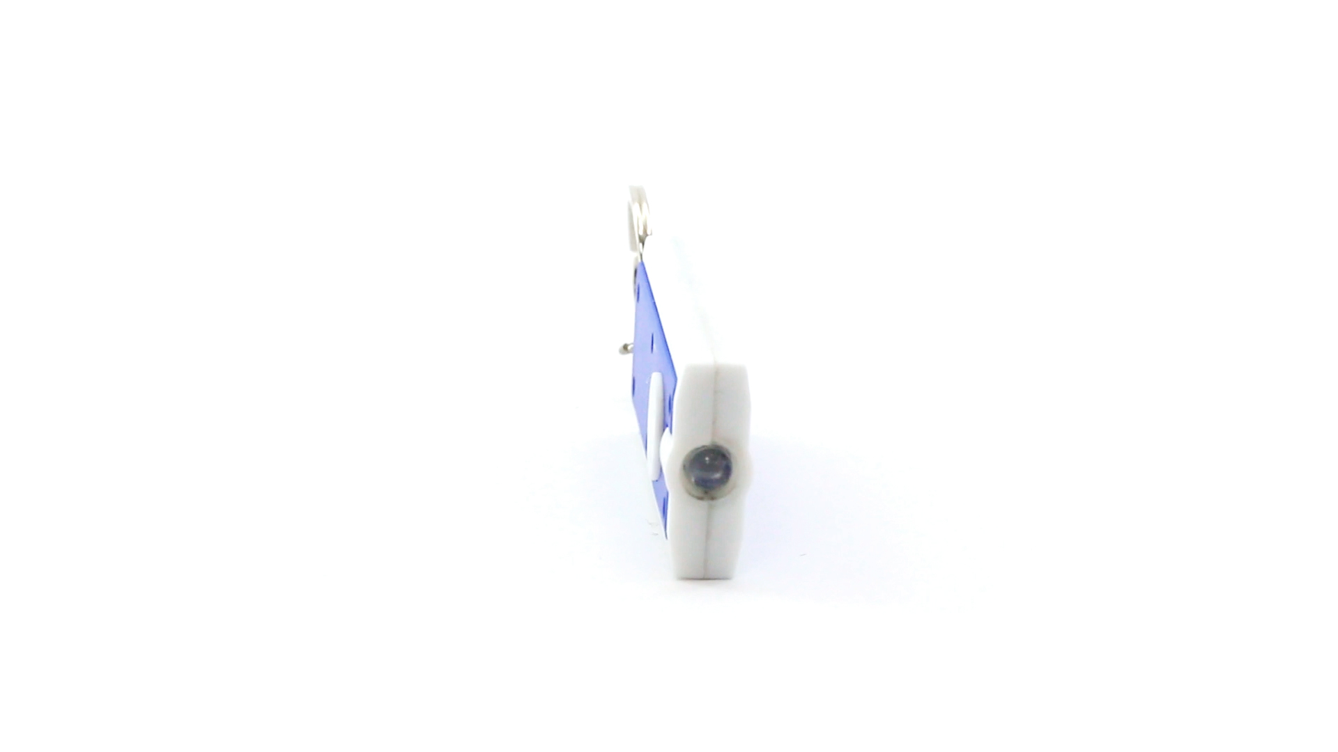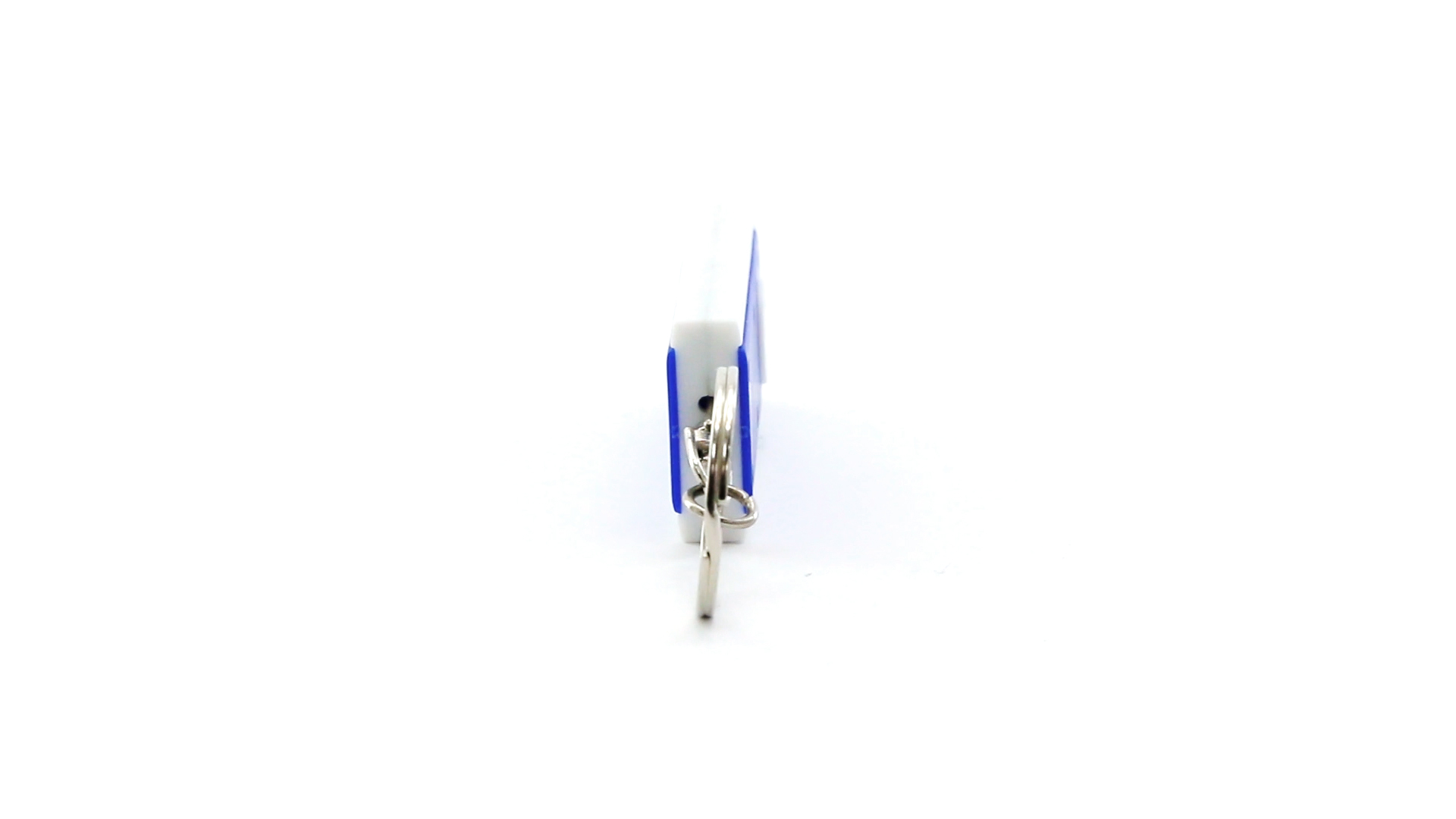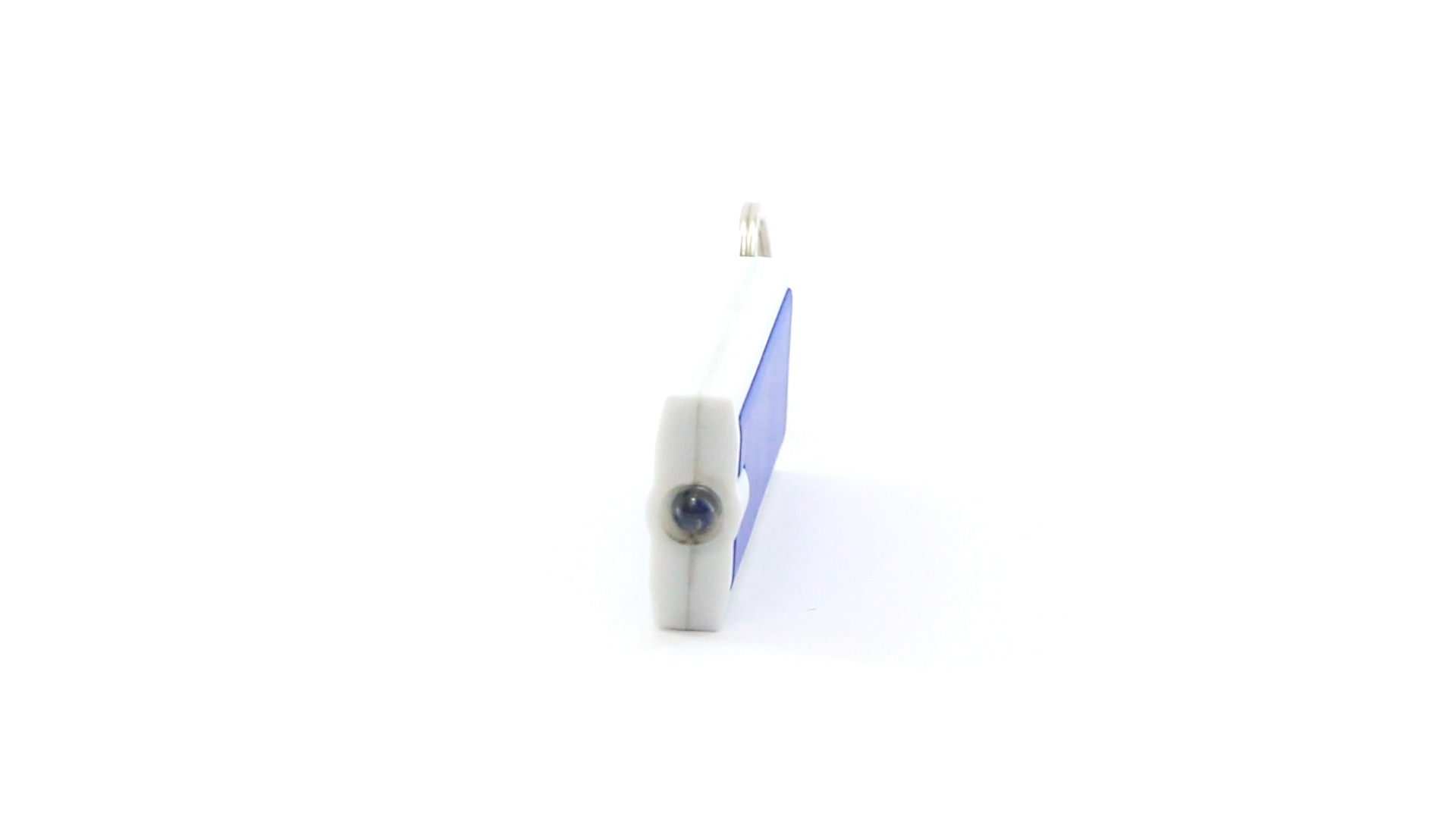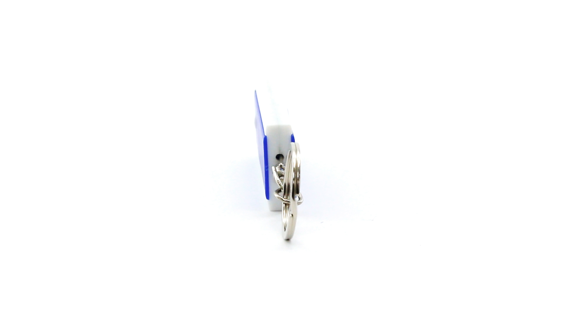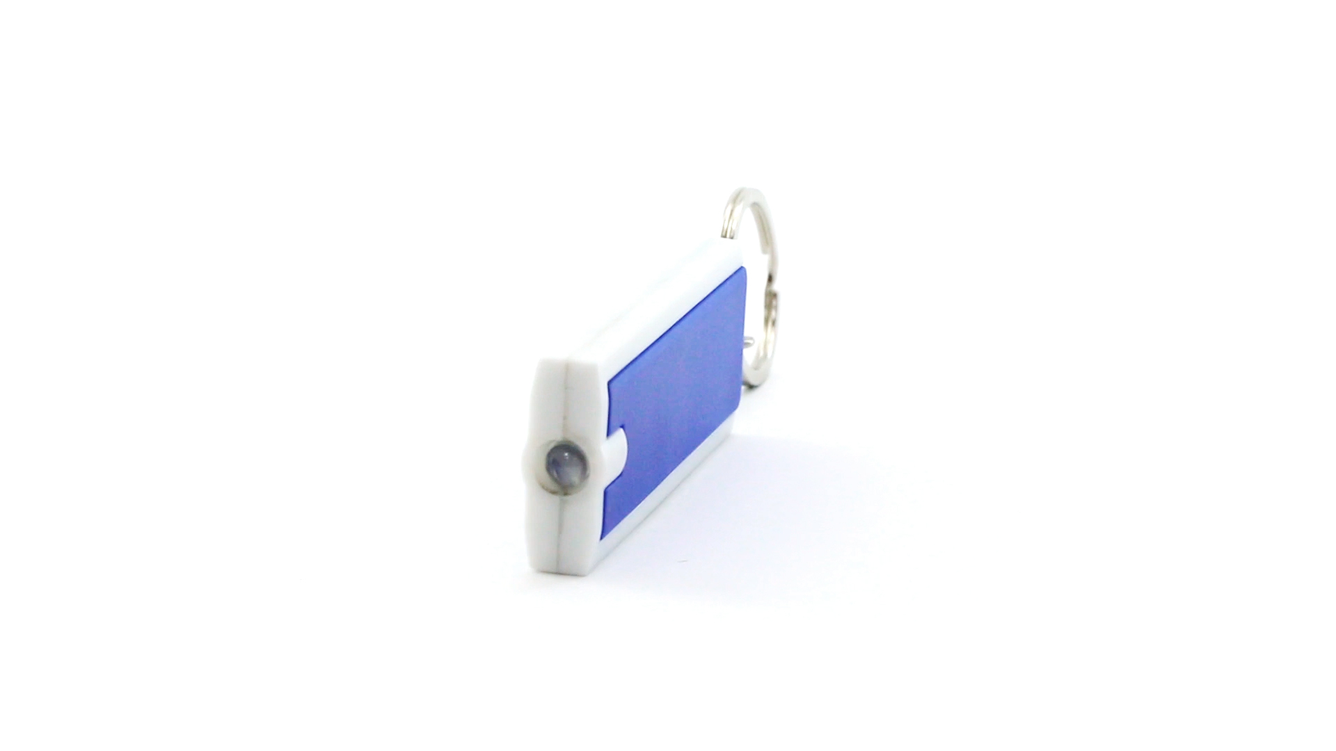 LED-Taschenlampe mit Schlüsselring und extra flachem Design in glänzenden Farben. Knopfzellen inklusive.